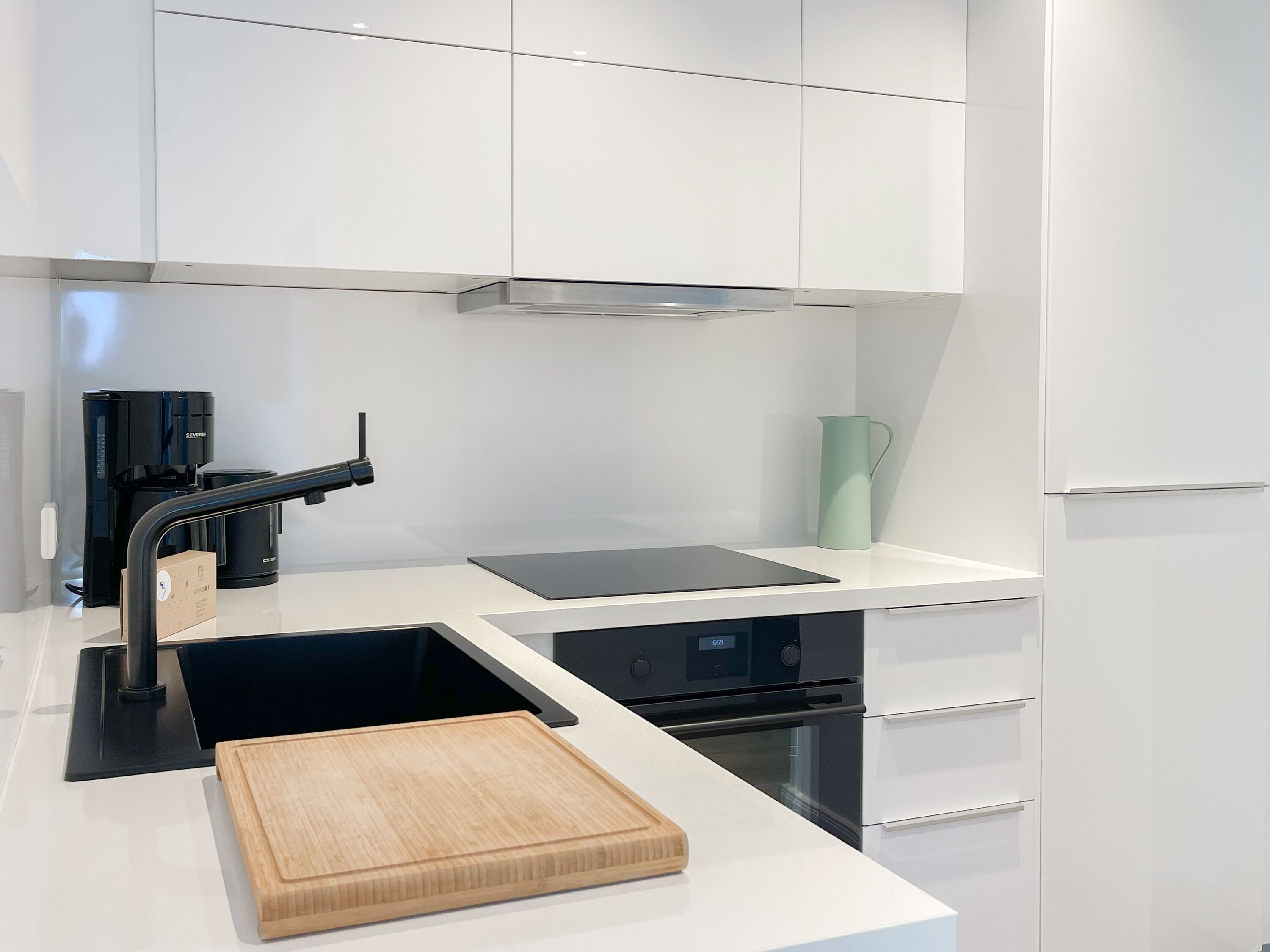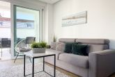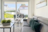 Bodentiefe Fensterelemente in der gesamten Eckwohnung, alle mit elektrischen Außenjalousien versehen, sorgen für lichtdurchflutete Räumlichkeiten. Hochwertige Bodenbeläge, die moderne, bestens ausgestattete Einbauküche und die geschmackvolle Einrichtung schaffen ein zeitgemäßes, schönes Wohnambiente. Die teilweise überdachte Sonnenterrasse ist großzügig um den gesamten Wohnbereich herum angelegt. Ausgestattet mit Gartenmöbeln und Sonnenliege ein idealer Rückzugsort zu jeder Tageszeit. Der Wohnbereich mit Terrassenzugang ist mit einem Schlafsofa (160x200), TV und WLAN ausgestattet, der integrierte Essbereich ist für 4 Personen ausgelegt. Das Schlafzimmer verfügt über ein Boxspringbett (180x200) und TV. Das hochwertige, helle Bad ist großzügig angelegt.
