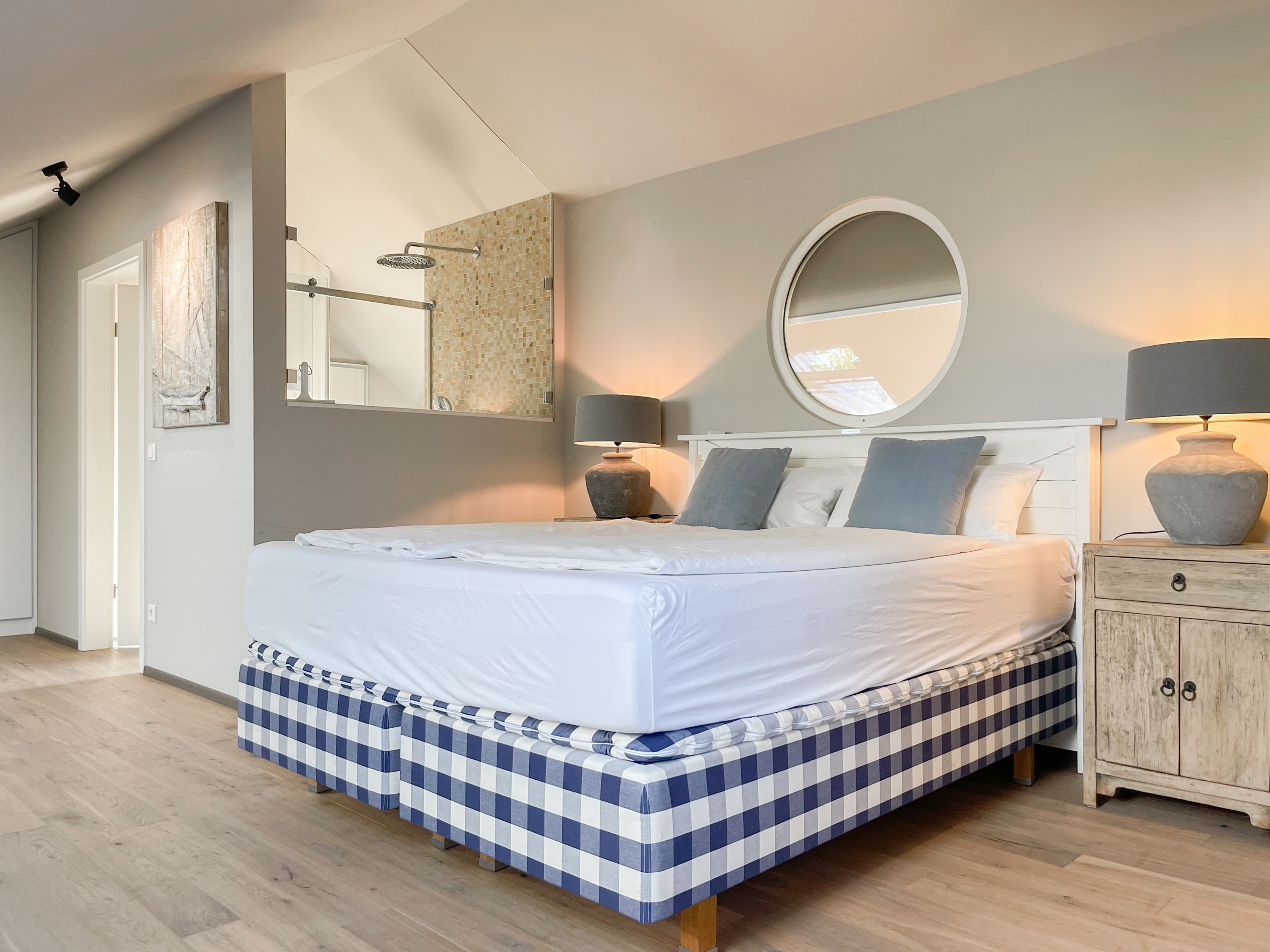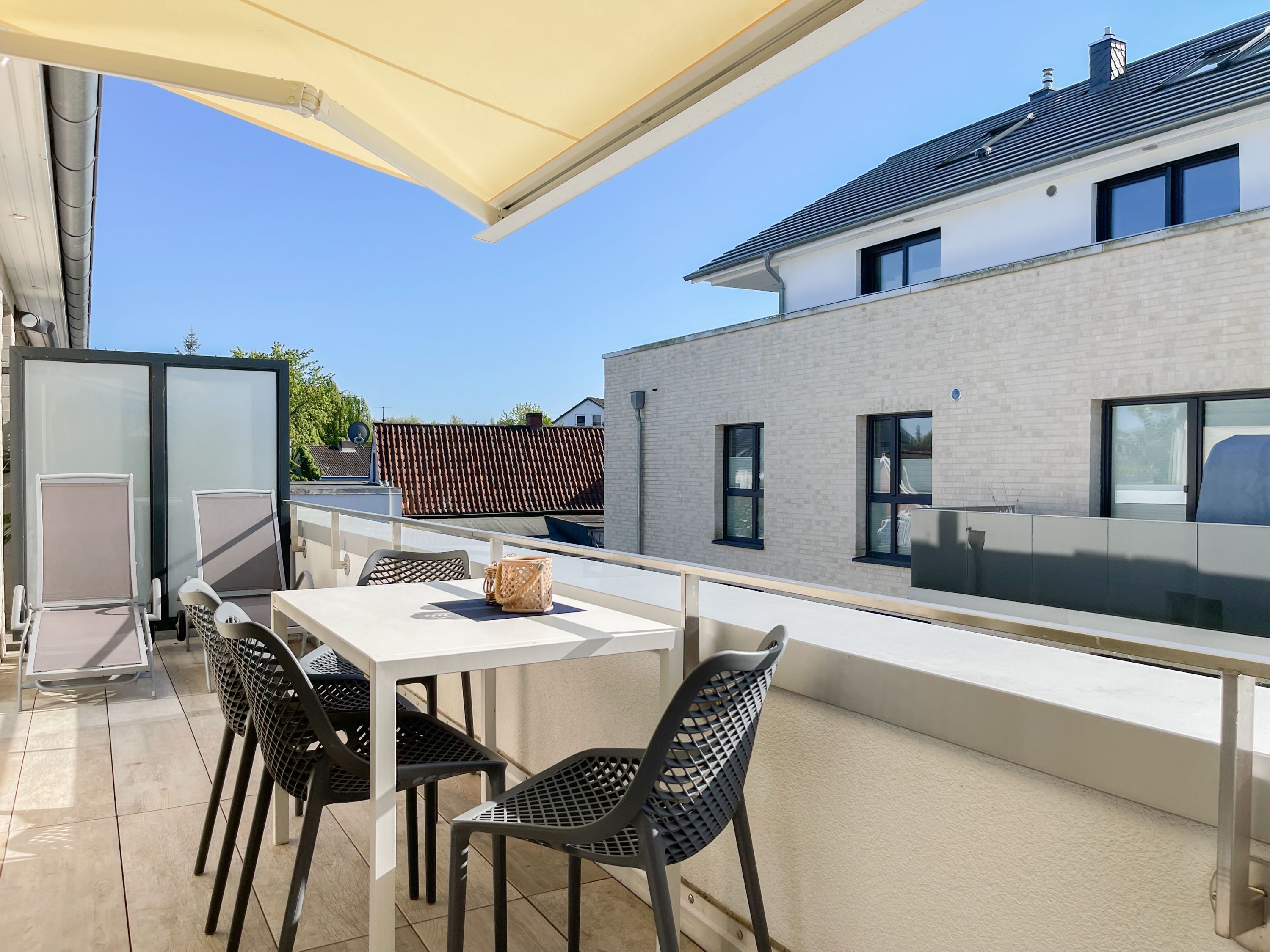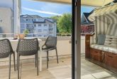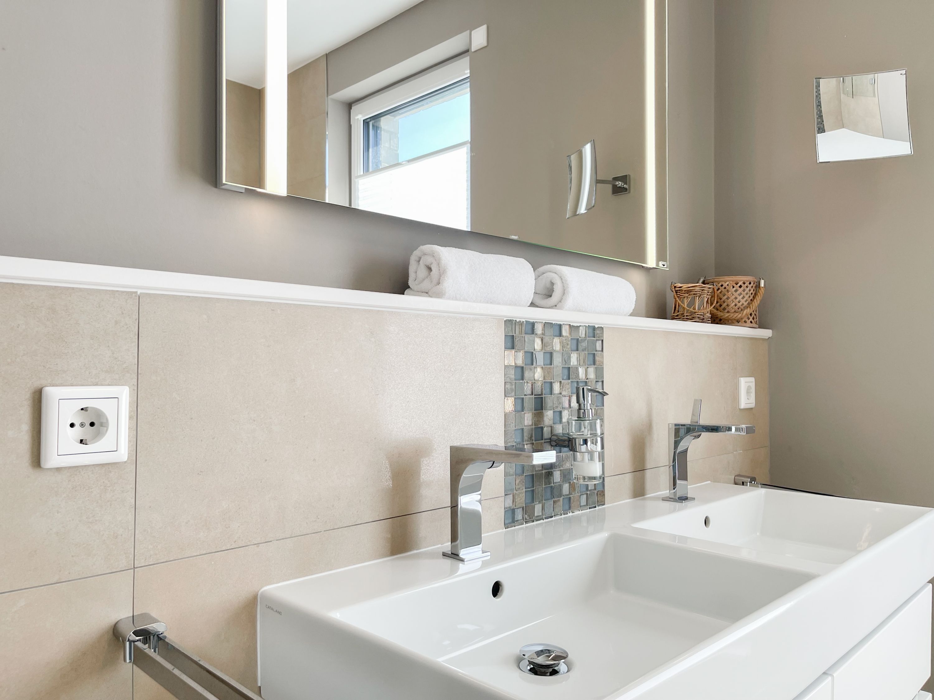 Das Penthouse präsentiert sich als traumhaftes Loft über 2 Ebenen. Die hochwertige, äußerst geschmackvolle Einrichtung vermittelt ein wunderbares Wohngefühl. Für erholsame Urlaubstage sorgen zwei großzügige Dachterrassen und die Infrarot Wärmekabine, besonders hilfreich gegen Verspannungen und zur Entschlackung. Auf der unteren Ebene ist der gemütliche Wohnbereich mit vorgelagerter Sonnenterrasse, der anschließende Essbereich und die offene, bestens ausgestattete Wohnküche mit integrierter Waschmaschine untergebracht. Den Mittelpunkt bildet der Kamin, der von zwei Seiten einsehbar ist. Auf dieser Wohnebene befindet sich ebenfalls ein Schlafzimmer, ausgestattet mit einem Boxspringbett und zusätzlichem TV. Highlight ist die vorgelagerte zweite Dachterrasse, um die ersten Sonnenstrahlen bei einem Morgenkaffee zu genießen. Ein hochwertiges Tageslichtbad mit kombinierter Badewanne/Dusche und ein separates Gäste WC stehen zur Verfügung. Auf der oberen Ebene befindet sich das zweite, abgeschlossene Schlafzimmer, das ebenfalls  mit einem Doppelbett und zusätzlichem TV ausgestattet ist und ein modernes, helles Duschbad mit integrierter Infrarot Wärmekabine.