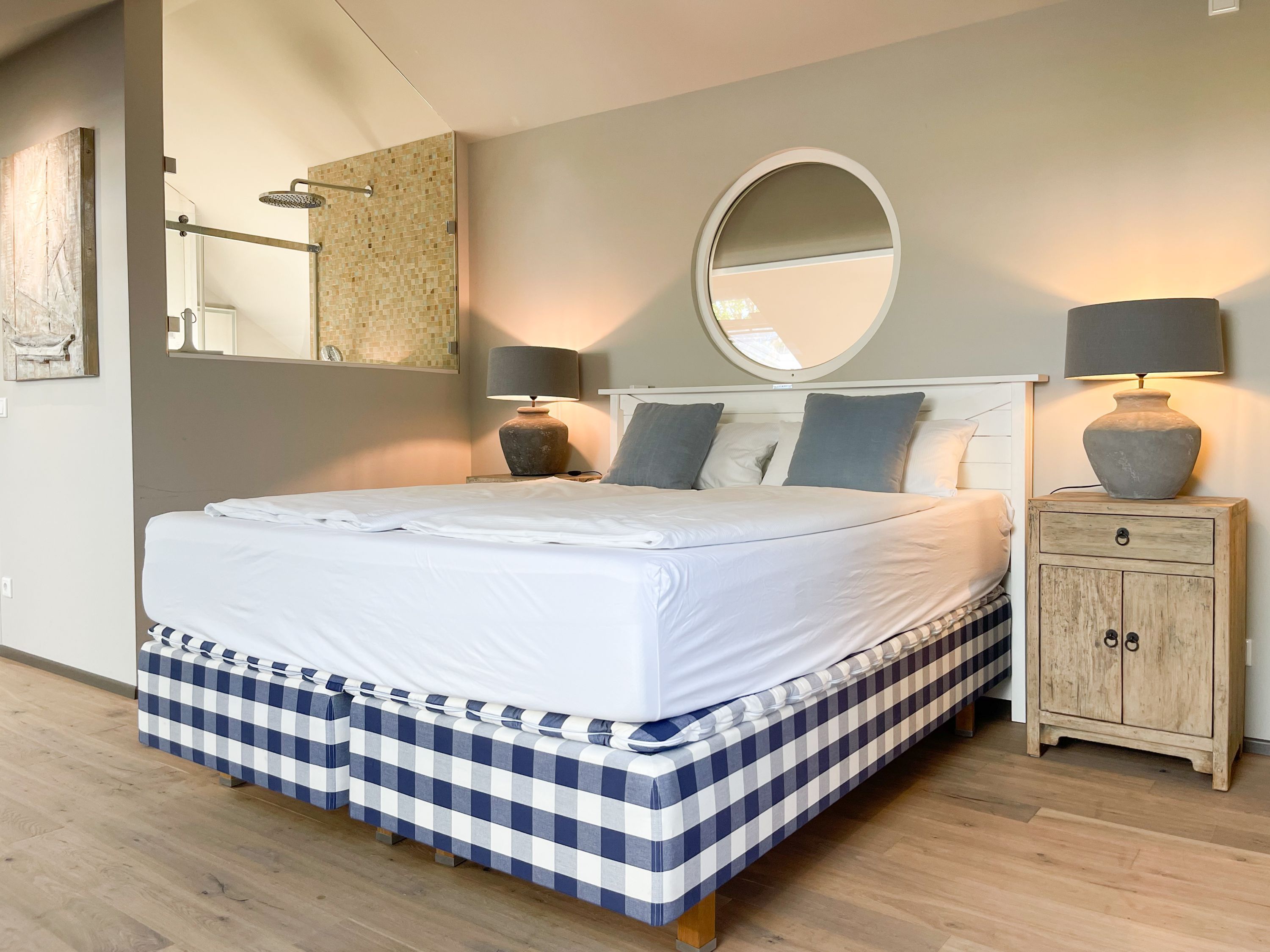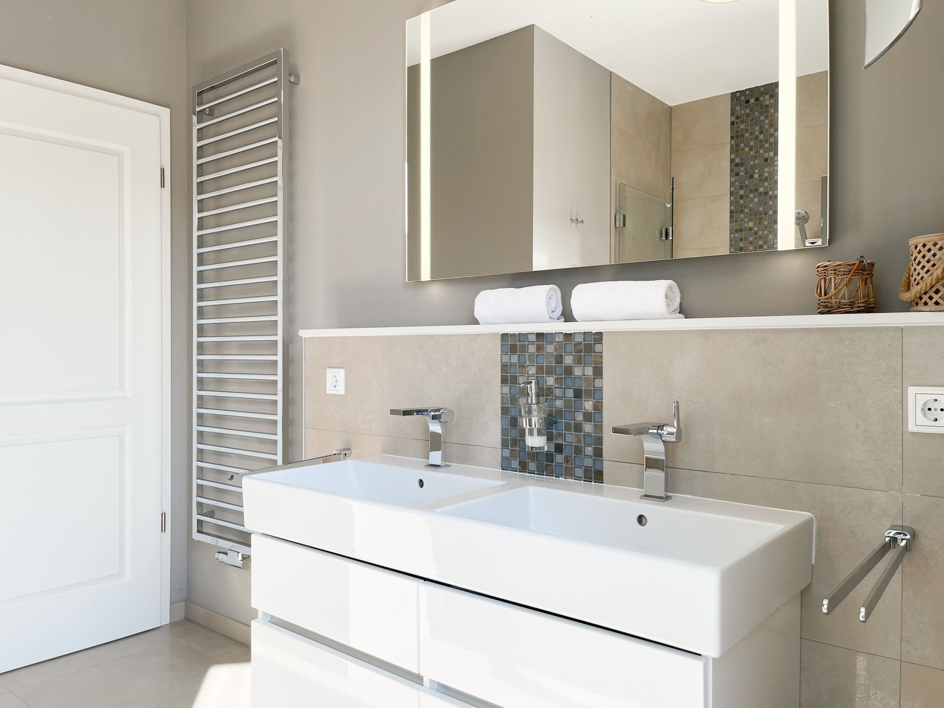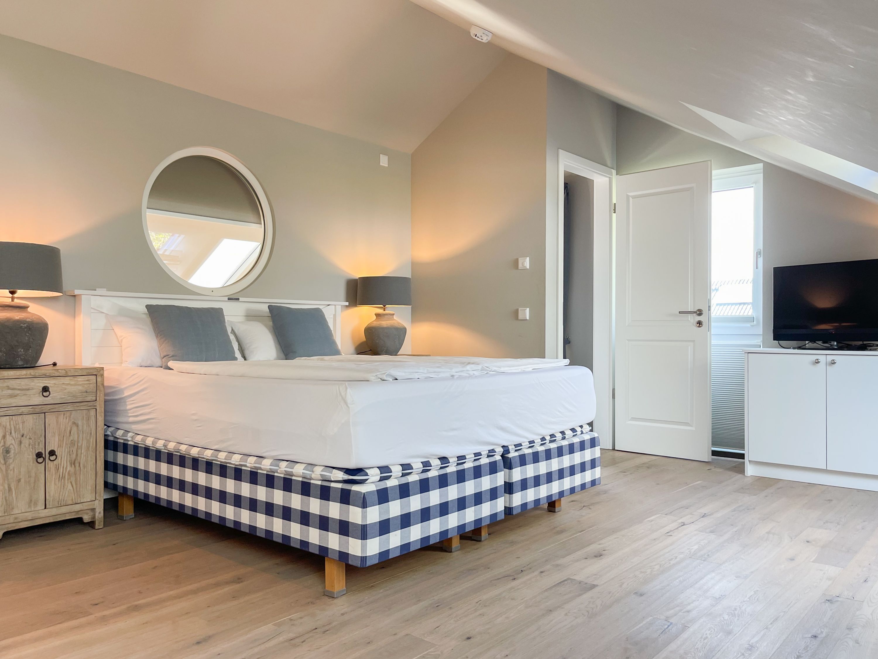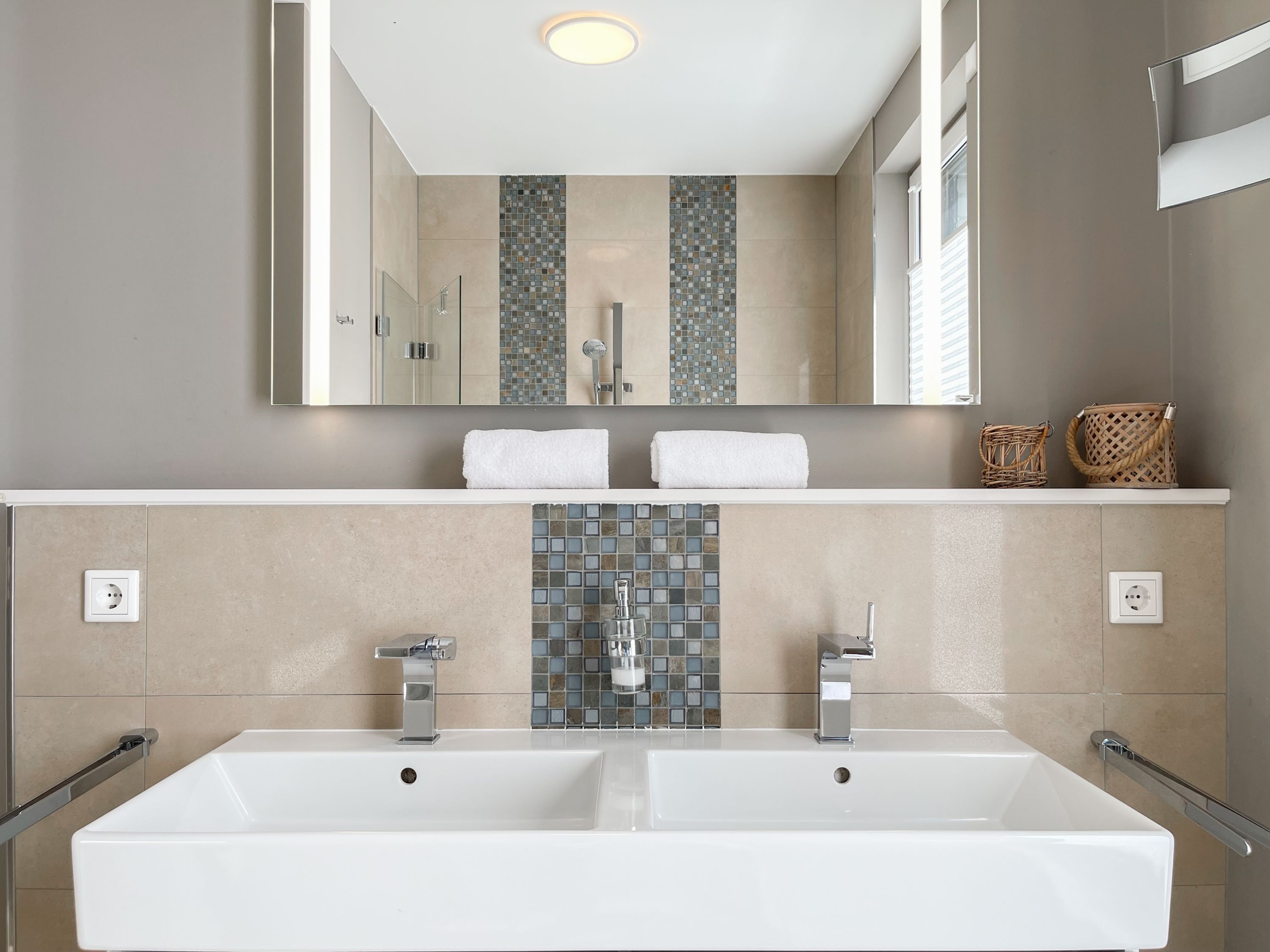 Das Penthouse präsentiert sich als traumhaftes Loft über 2 Ebenen. Die hochwertige, äußerst geschmackvolle Einrichtung vermittelt ein wunderbares Wohngefühl. Für erholsame Urlaubstage sorgen zwei großzügige Dachterrassen und die Infrarot Wärmekabine, besonders hilfreich gegen Verspannungen und zur Entschlackung. Auf der unteren Ebene ist der gemütliche Wohnbereich mit vorgelagerter Sonnenterrasse, der anschließende Essbereich und die offene, bestens ausgestattete Wohnküche mit integrierter Waschmaschine untergebracht. Den Mittelpunkt bildet der Kamin, der von zwei Seiten einsehbar ist. Auf dieser Wohnebene befindet sich ebenfalls ein Schlafzimmer, ausgestattet mit einem Boxspringbett und zusätzlichem TV. Highlight ist die vorgelagerte zweite Dachterrasse, um die ersten Sonnenstrahlen bei einem Morgenkaffee zu genießen. Ein hochwertiges Tageslichtbad mit kombinierter Badewanne/Dusche und ein separates Gäste WC stehen zur Verfügung. Auf der oberen Ebene befindet sich das zweite, abgeschlossene Schlafzimmer, das ebenfalls  mit einem Doppelbett und zusätzlichem TV ausgestattet ist und ein modernes, helles Duschbad mit integrierter Infrarot Wärmekabine.