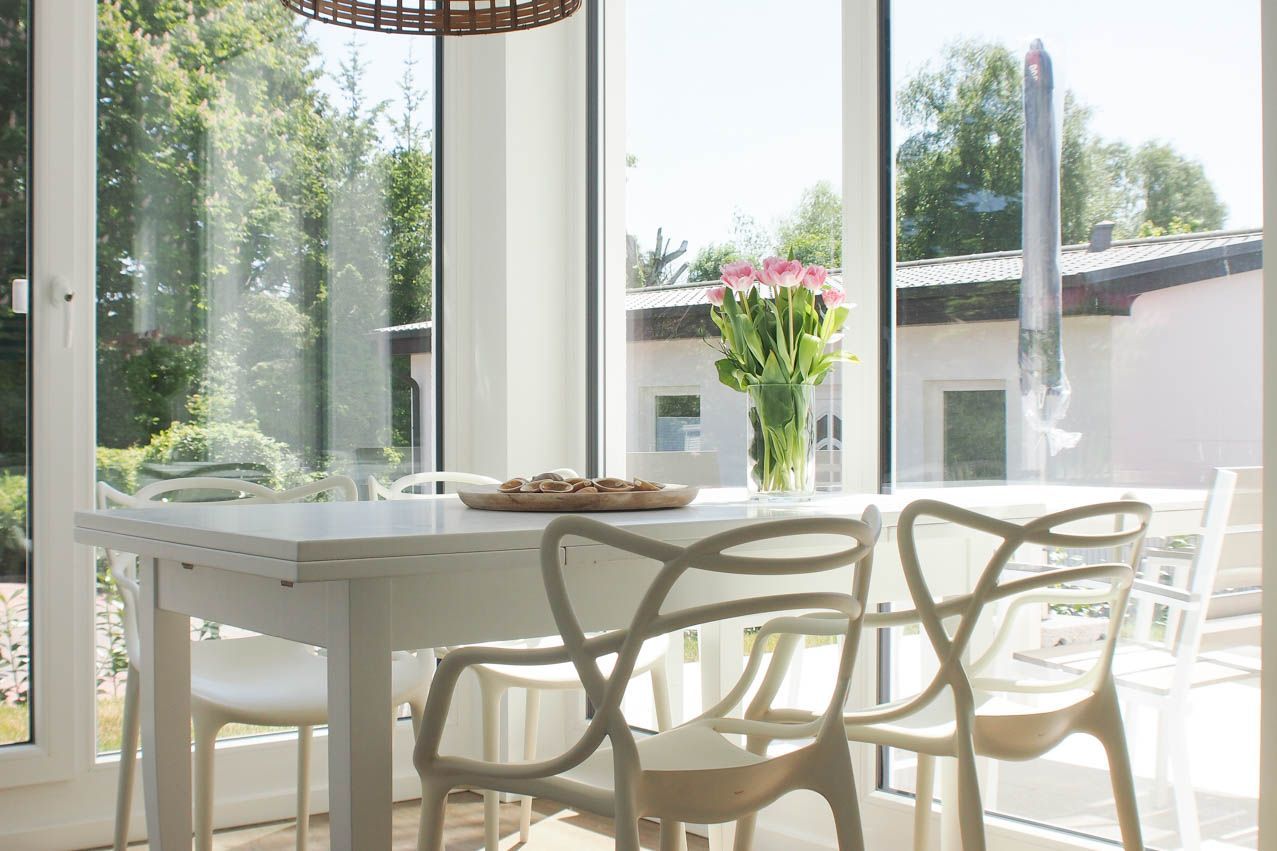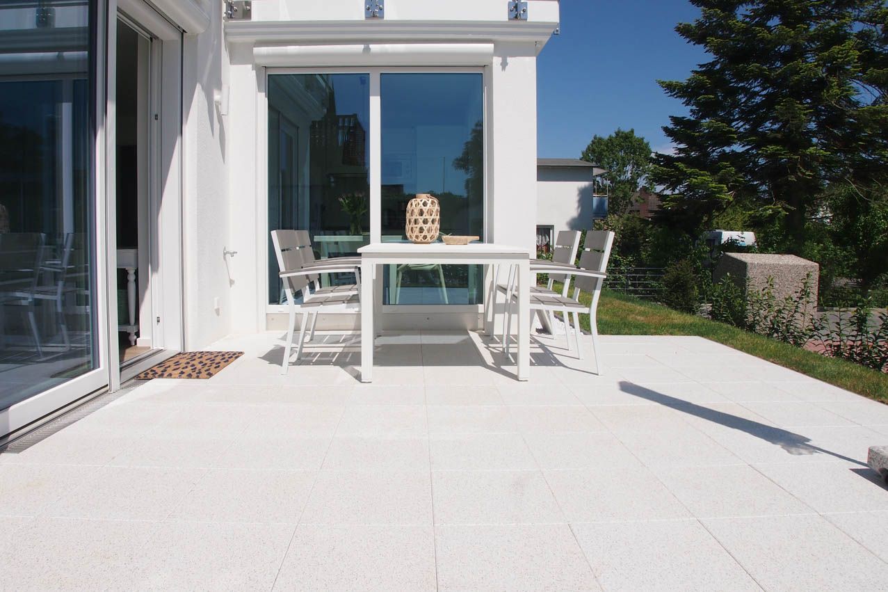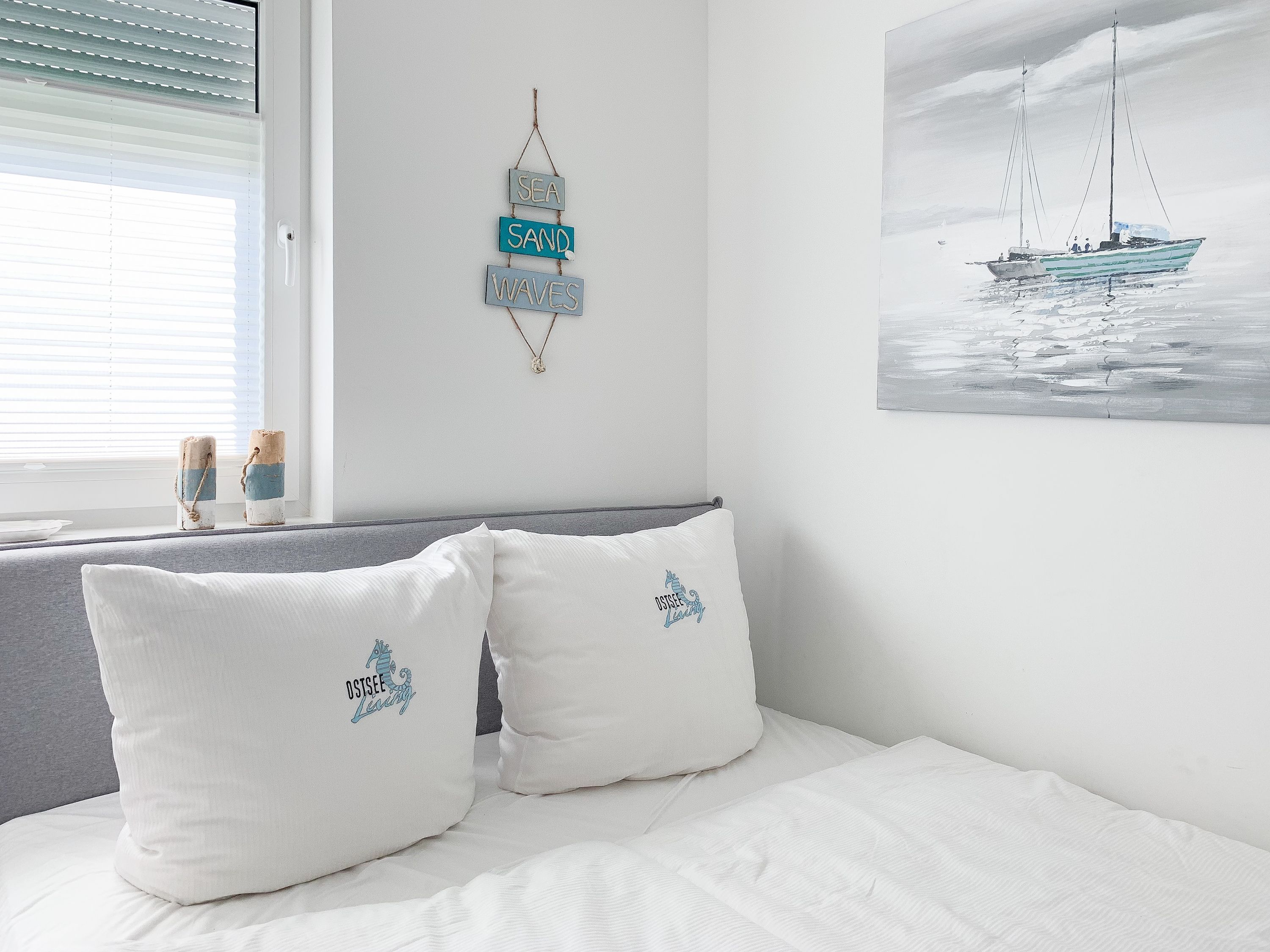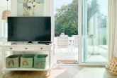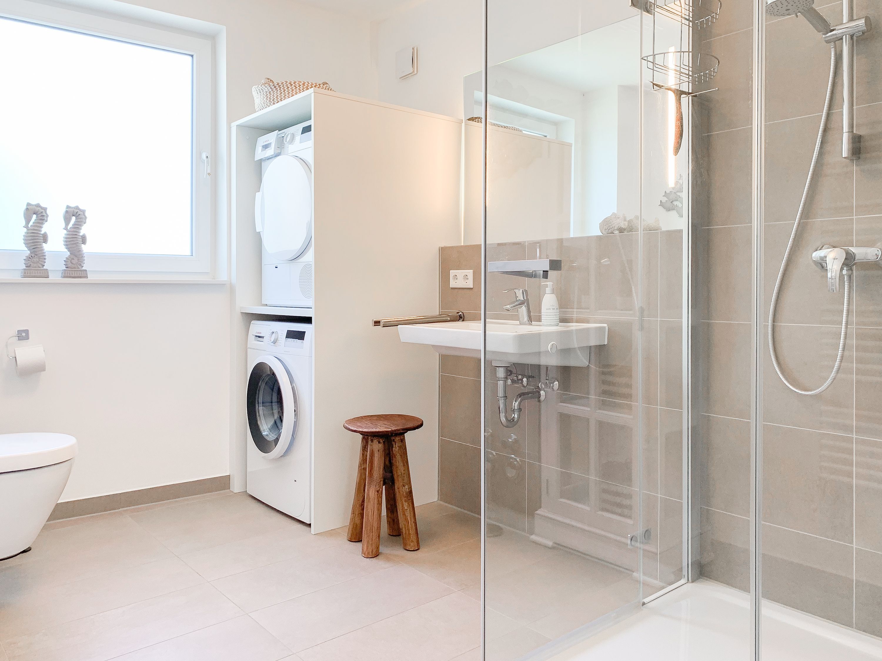 Die Ferienwohnung ist hochwertig ausgestattet und geschmackvoll eingerichtet. Bodentiefe Fensterflächen sorgen für einen lichtdurchfluteten Wohnbereich mit einem gemütlichen Sofa, Sessel und TV. Die vorgelagerte Sonnenterrasse ist ein wunderbarer Platz, um entspannte Urlaubstage zu genießen. Die offene Einbauküche mit angrenzendem Essbereich ist bestens mit allen technischen Geräten ausgestattet, um höchsten Ansprüchen zu genügen. Es stehen zwei separate Schlafzimmer zur Verfügung, die beide mit Boxspringbetten (180x200 und 160x200), Kleiderschrank und TV ausgestattet sind. Das hochwertige Duschbad mit integrierter Waschmaschine und integriertem Trockner ist großzügig angelegt und bietet reichlich Tageslicht. Die gesamte Wohnung ist mit elektrischen Außenjalousien versehen und verfügt über eine Fußbodenheizung für ein angenehmes Raumklima.
