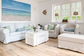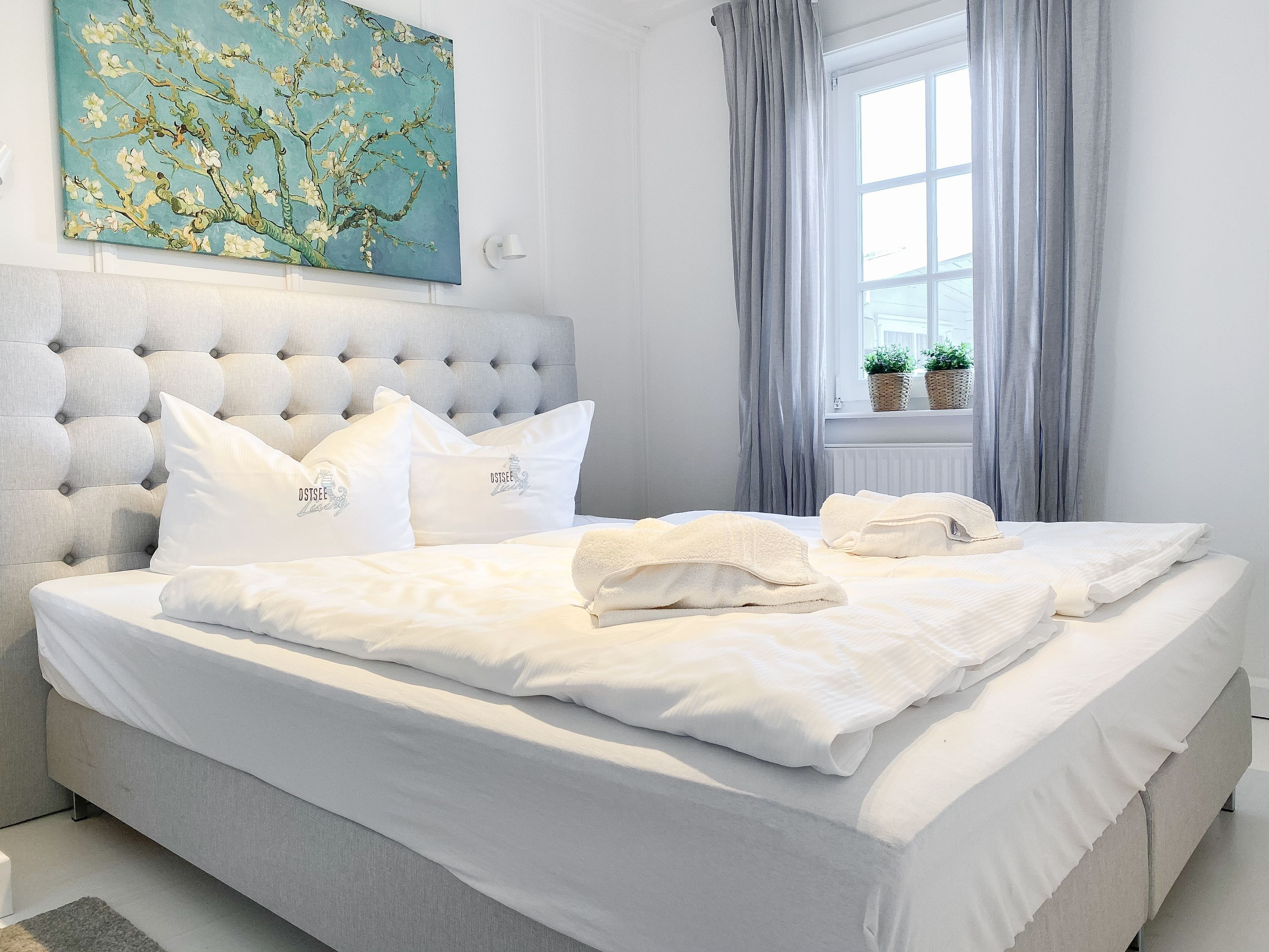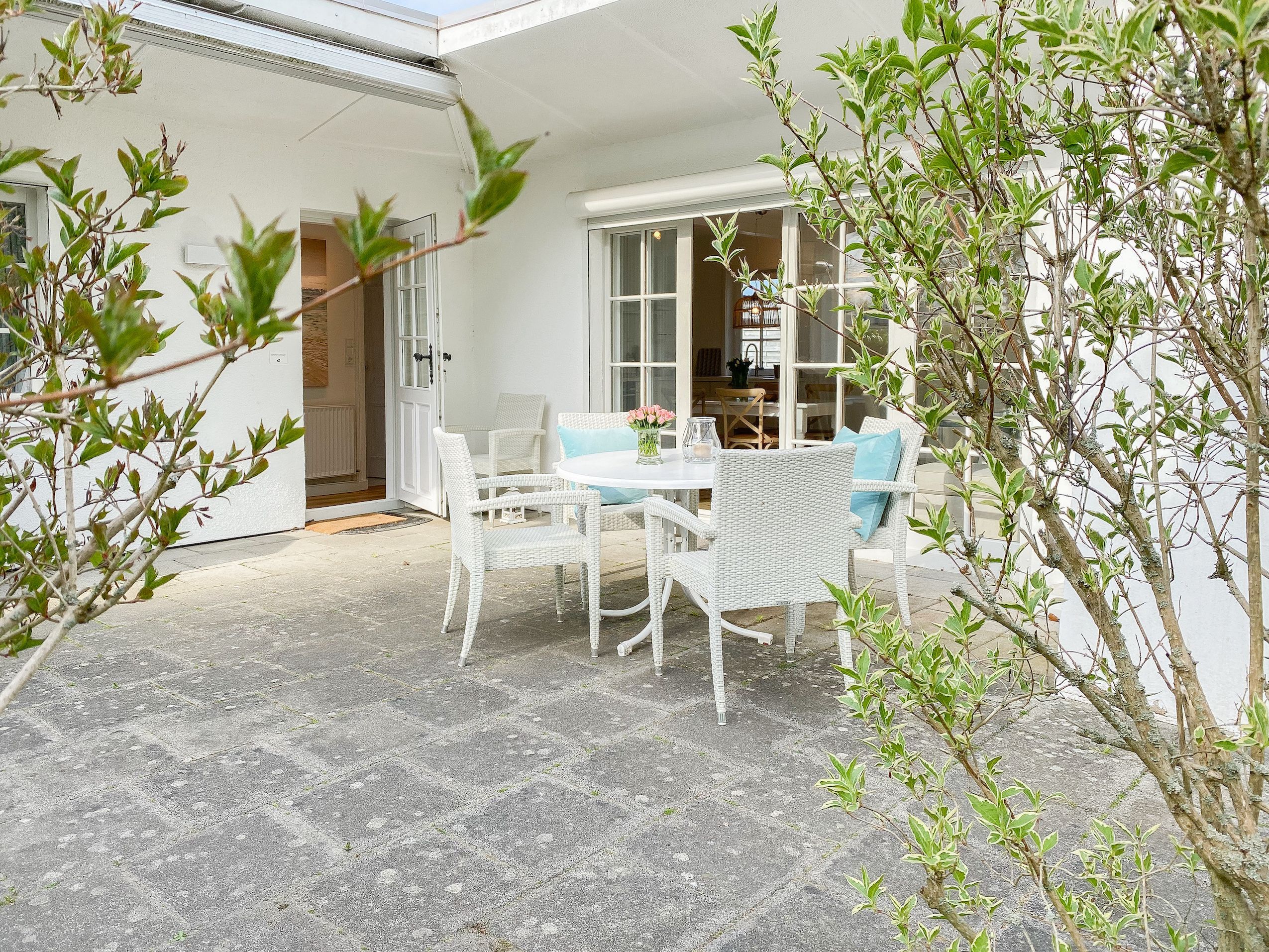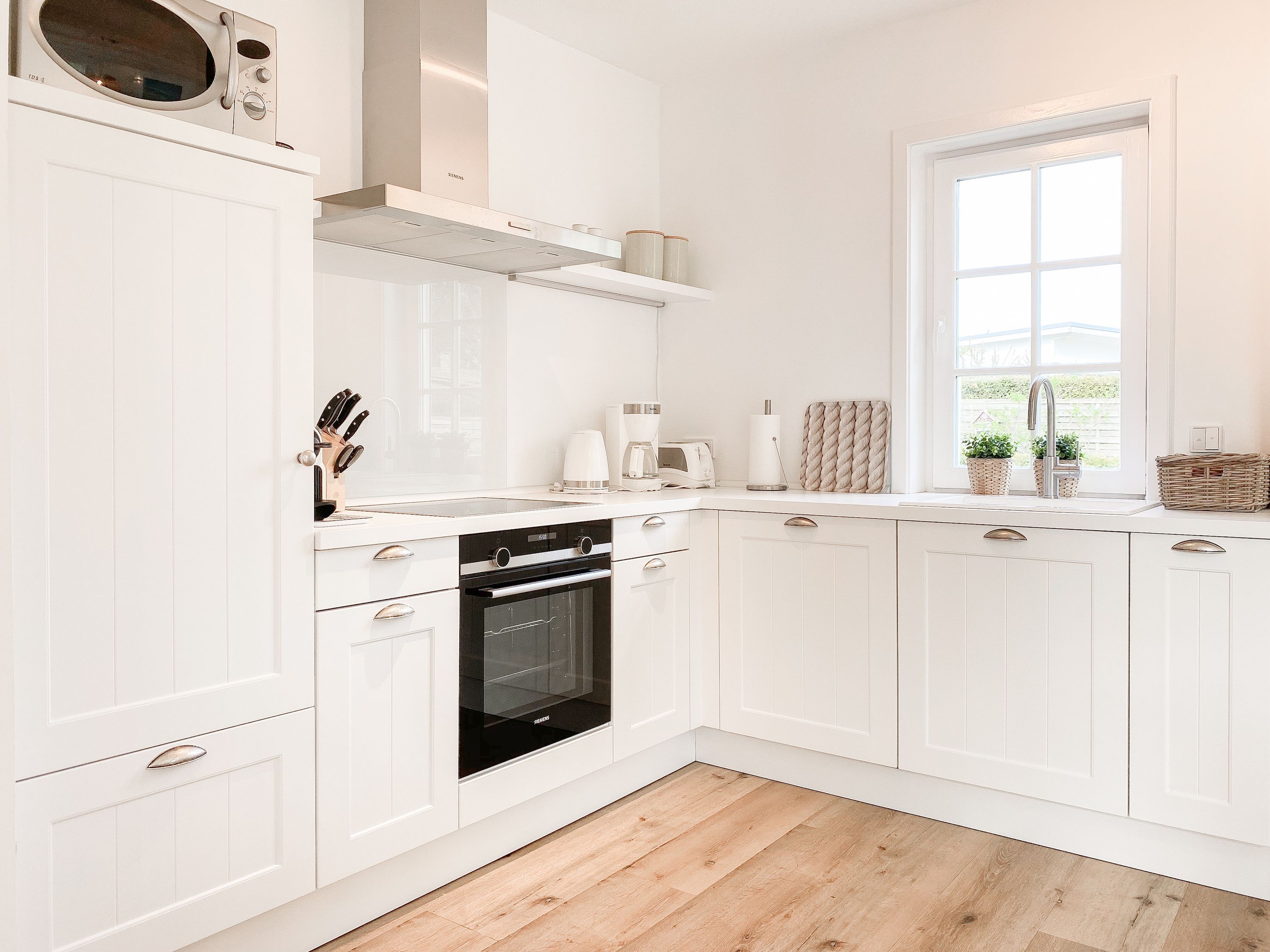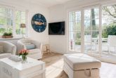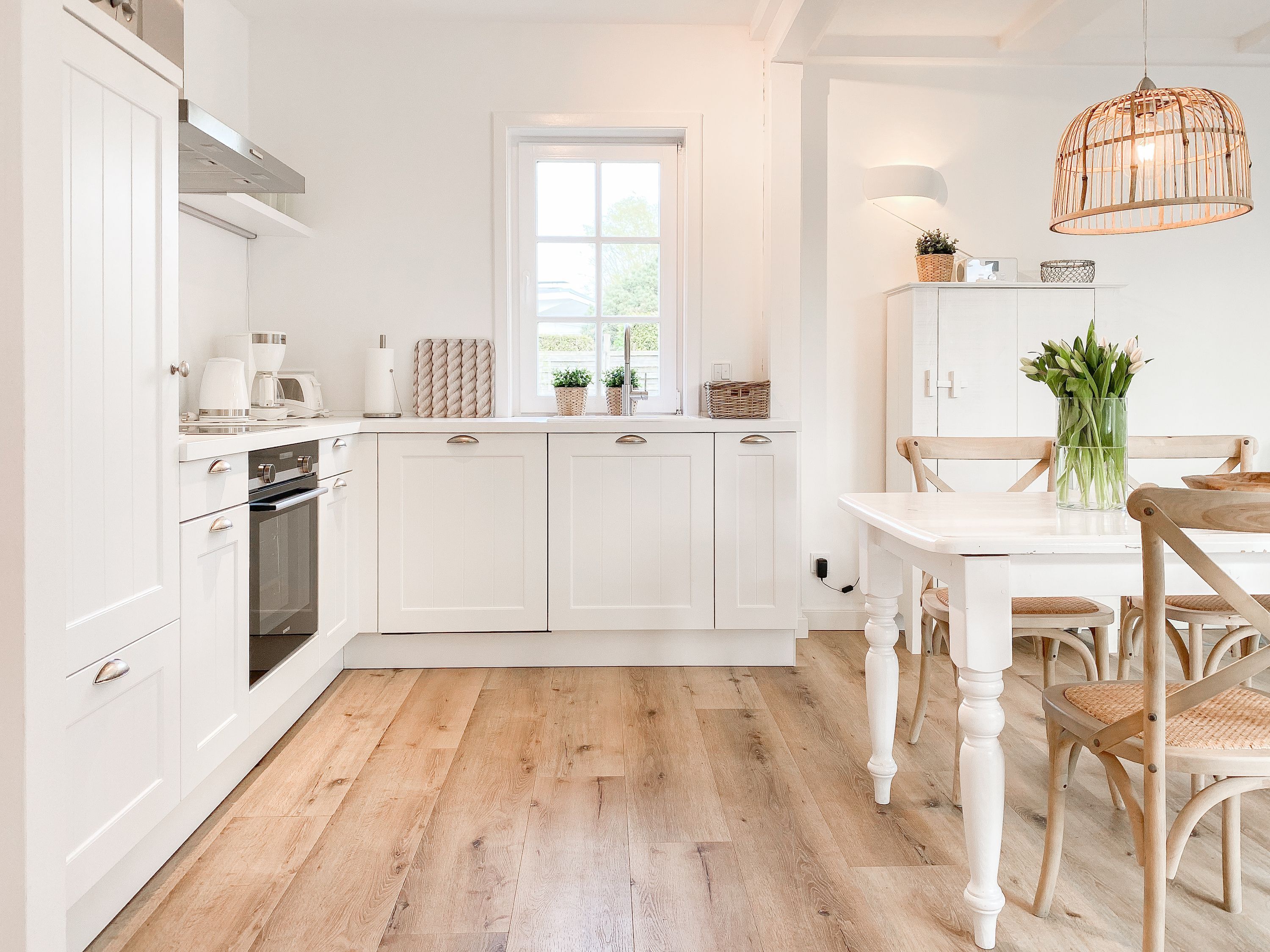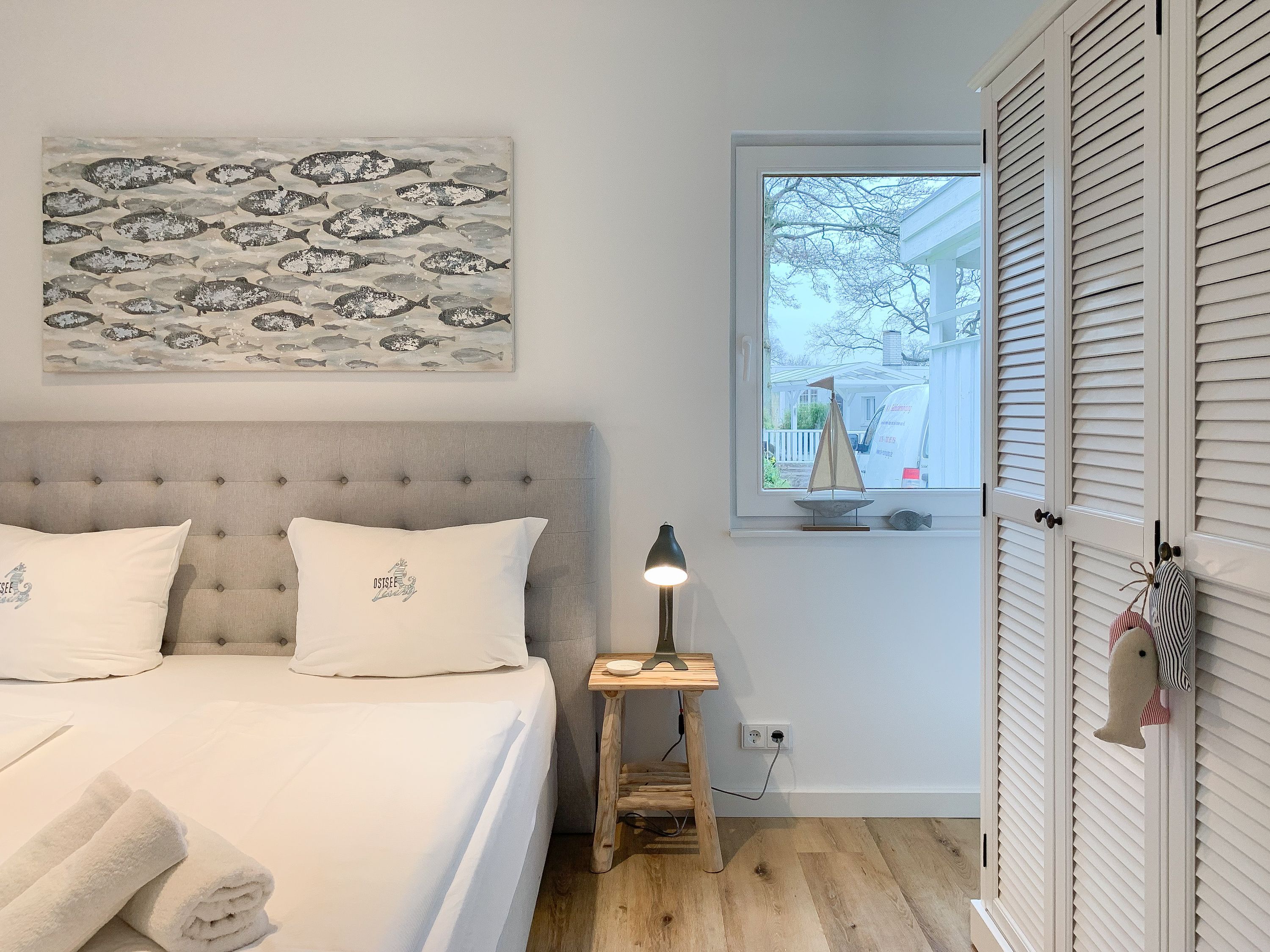 Strandflair pur! Das vollständig renovierte und hochwertig ausgestattete Cottage bietet jeglichen Komfort für 4 Personen, um einen entspannten Urlaub zu verleben! Die stilvolle Einrichtung mit Liebe zum Detail, helle Räumlichkeiten und zeitgemäßes Ambiente wie TV, Bluetooth Lautsprecher, Internetradio und WLAN sorgen für eine Atmosphäre zum Wohlfühlen. Es gibt einen gemütlichen Wohnbereich mit schönem Blick in den eingewachsenen Garten. Die vorgelagerte Sonnenterrasse ist teilweise überdacht und zum Südwesten ausgerichtet. Ein Außenkamin für gemütliche Urlaubsabende, Markise, Sonnenliegen und Gartenmöbel stehen zur Verfügung. Der Essbereich bietet ausreichend Platz für 4 Personen und die offene, hochwertige Einbauküche ist bestens ausgestattet. Es stehen zwei separate Schlafzimmer mit Boxspringbetten (180x200 und 160x200) sowie zwei Duschbäder zur Verfügung. Sämtliche Fenster sind mit elektrischen Außenjalousien versehen. Eine Waschmaschine ist im Bad untergebracht.