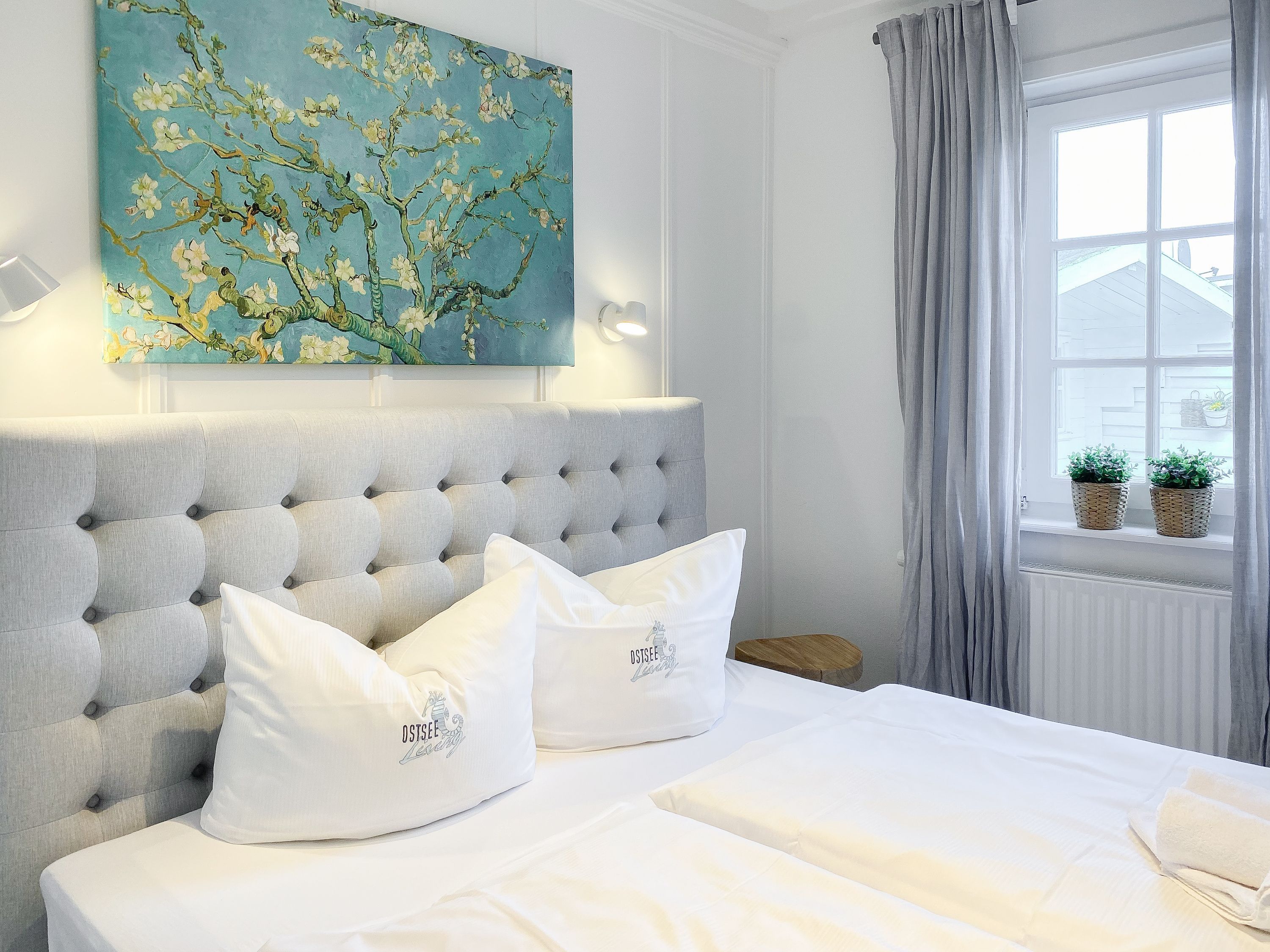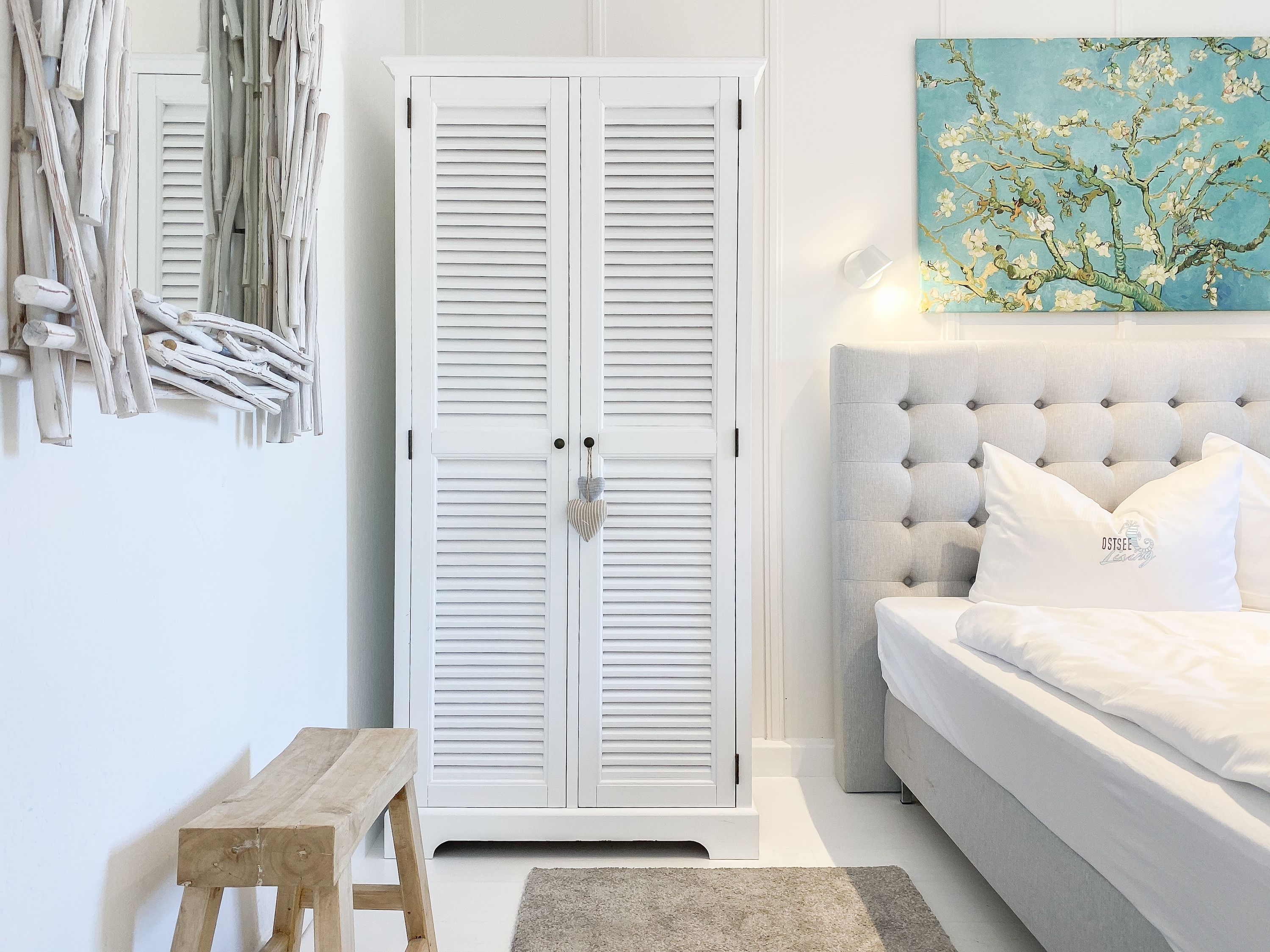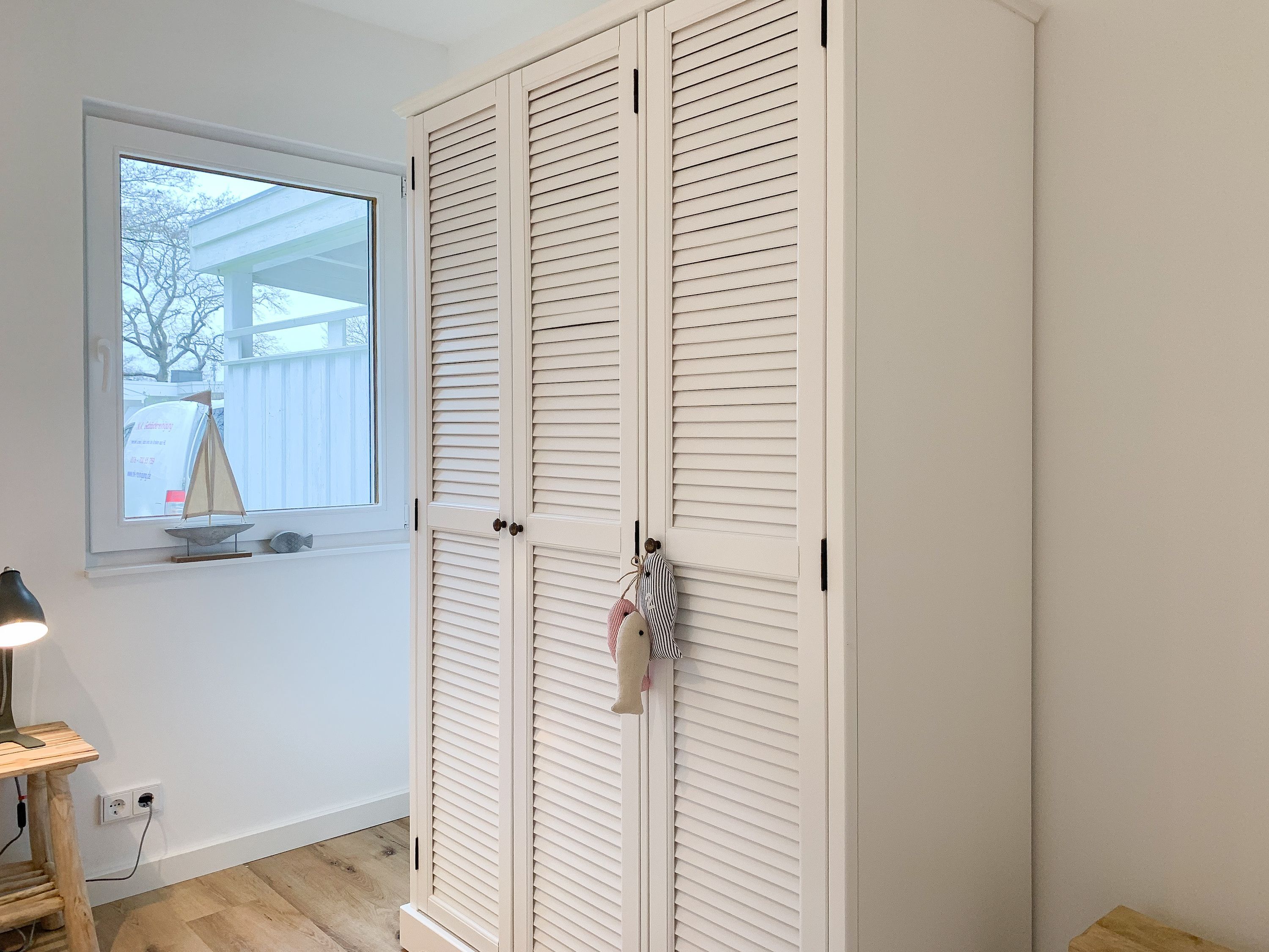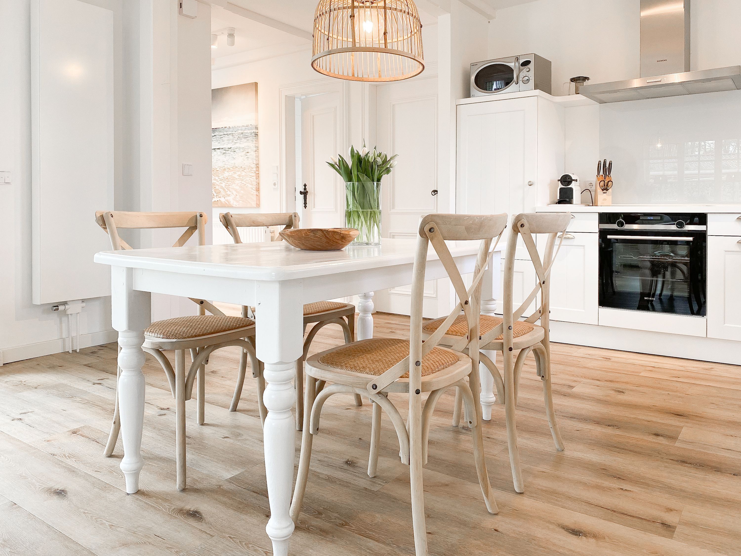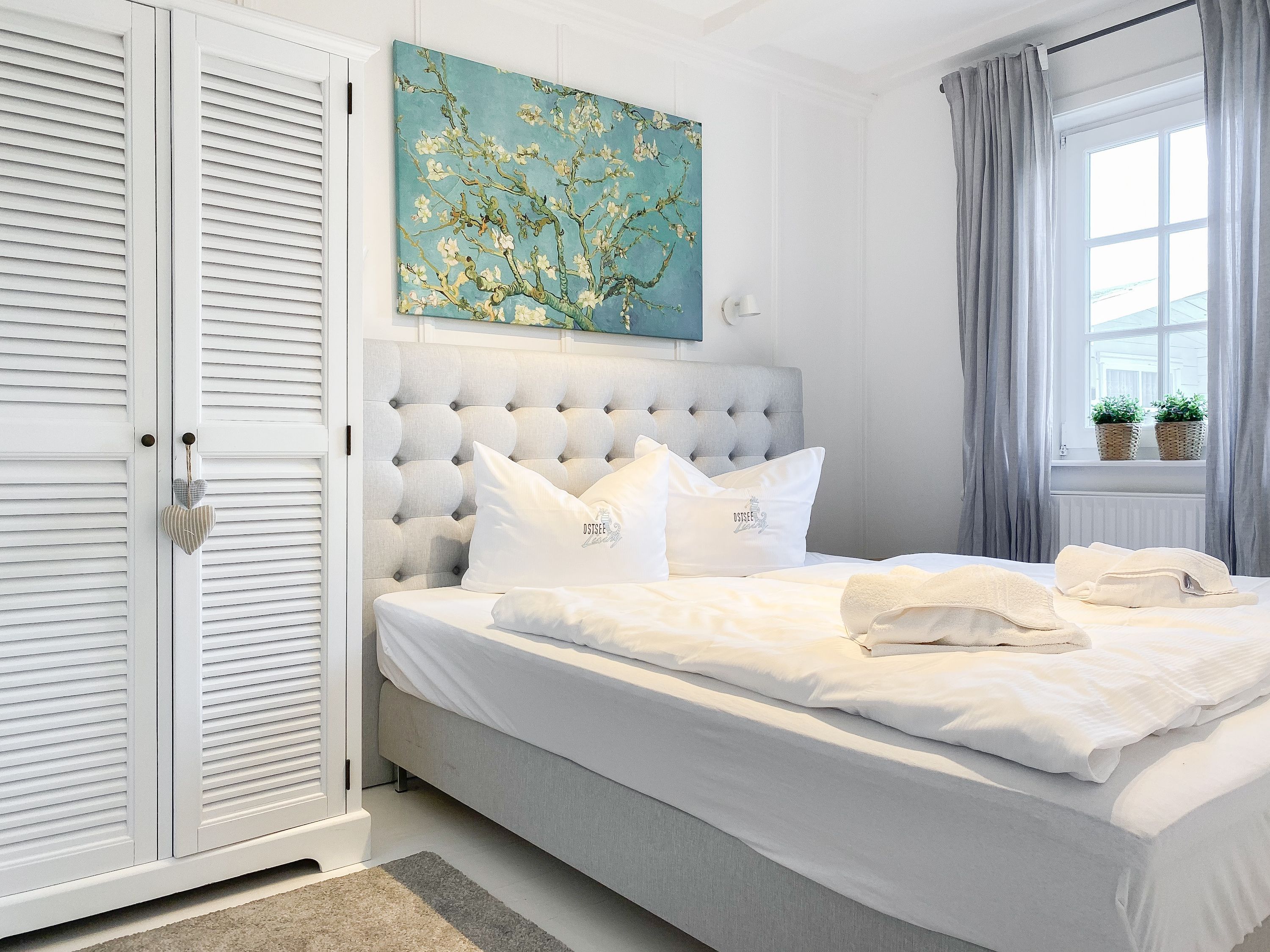 Strandflair pur! Das vollständig renovierte und hochwertig ausgestattete Cottage bietet jeglichen Komfort für 4 Personen, um einen entspannten Urlaub zu verleben! Die stilvolle Einrichtung mit Liebe zum Detail, helle Räumlichkeiten und zeitgemäßes Ambiente wie TV, Bluetooth Lautsprecher, Internetradio und WLAN sorgen für eine Atmosphäre zum Wohlfühlen. Es gibt einen gemütlichen Wohnbereich mit schönem Blick in den eingewachsenen Garten. Die vorgelagerte Sonnenterrasse ist teilweise überdacht und zum Südwesten ausgerichtet. Ein Außenkamin für gemütliche Urlaubsabende, Markise, Sonnenliegen und Gartenmöbel stehen zur Verfügung. Der Essbereich bietet ausreichend Platz für 4 Personen und die offene, hochwertige Einbauküche ist bestens ausgestattet. Es stehen zwei separate Schlafzimmer mit Boxspringbetten (180x200 und 160x200) sowie zwei Duschbäder zur Verfügung. Sämtliche Fenster sind mit elektrischen Außenjalousien versehen. Eine Waschmaschine ist im Bad untergebracht.
