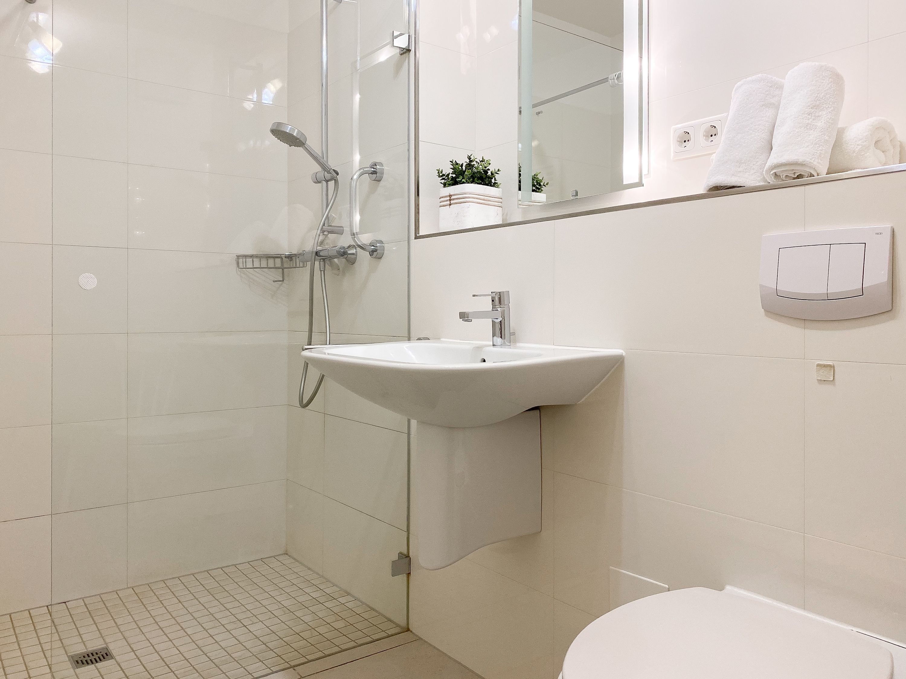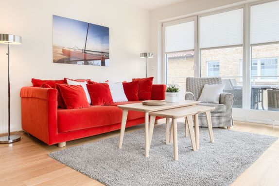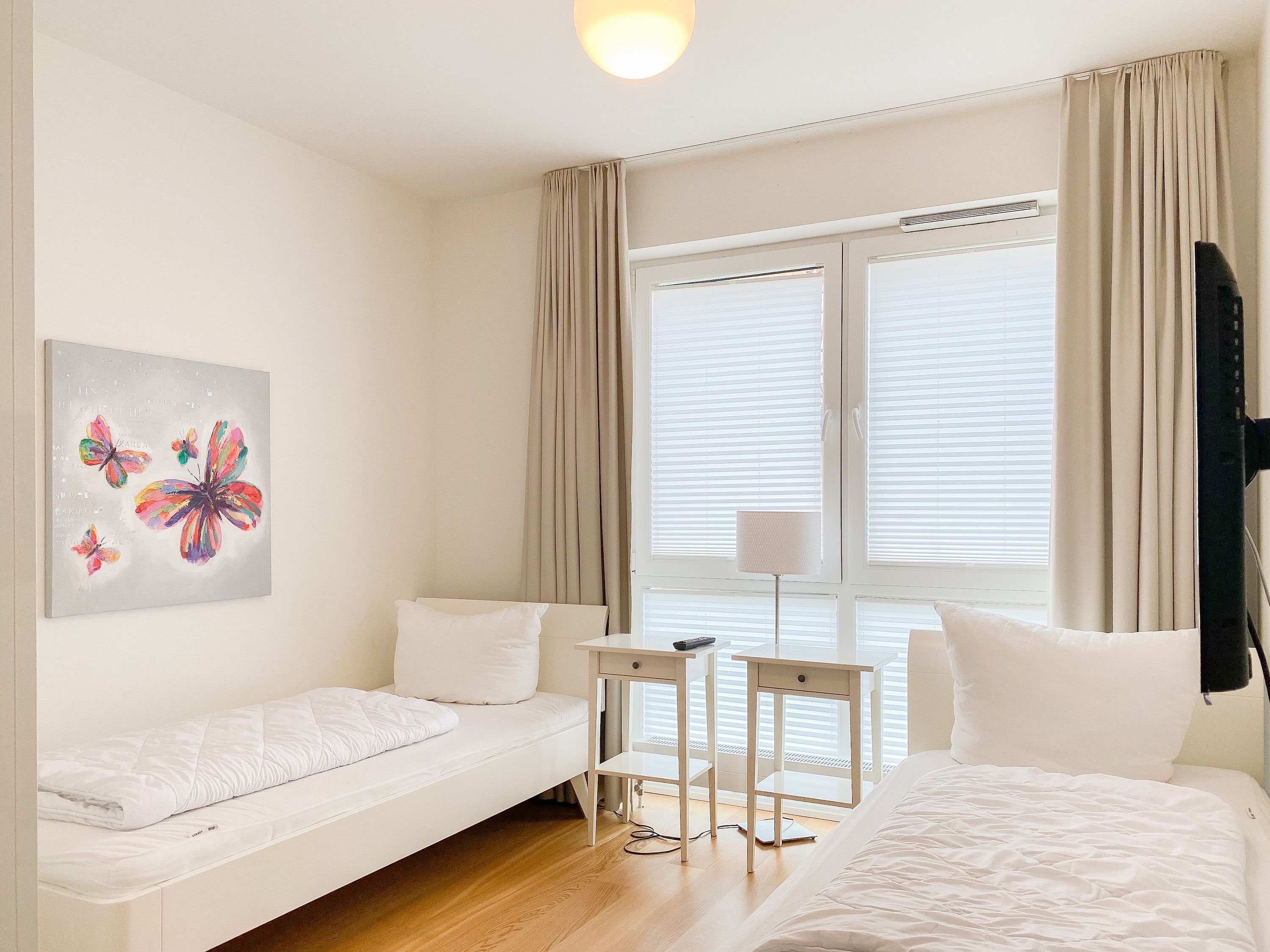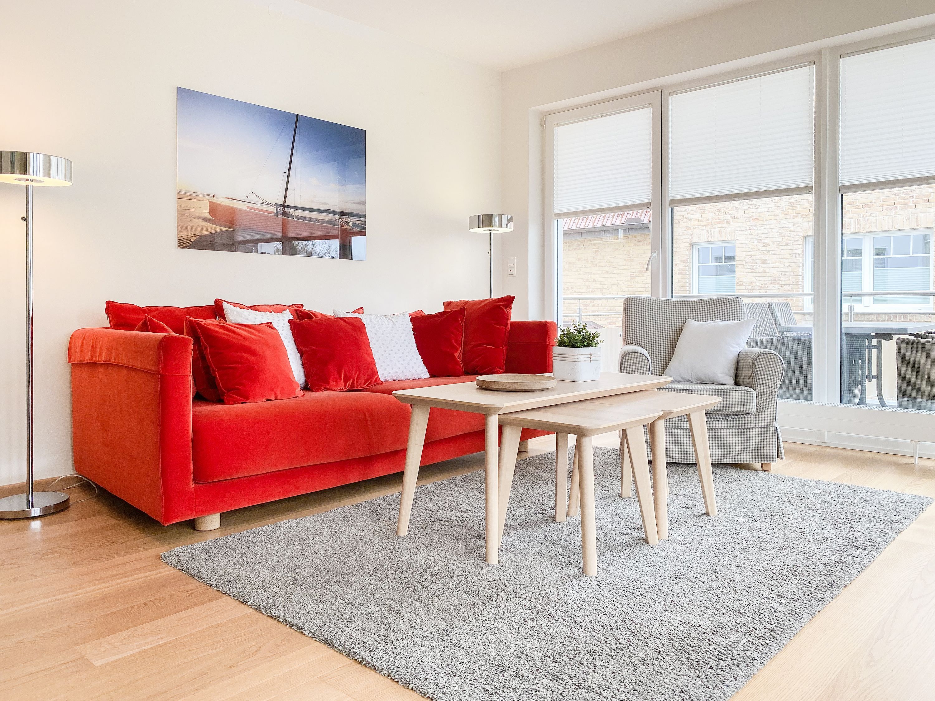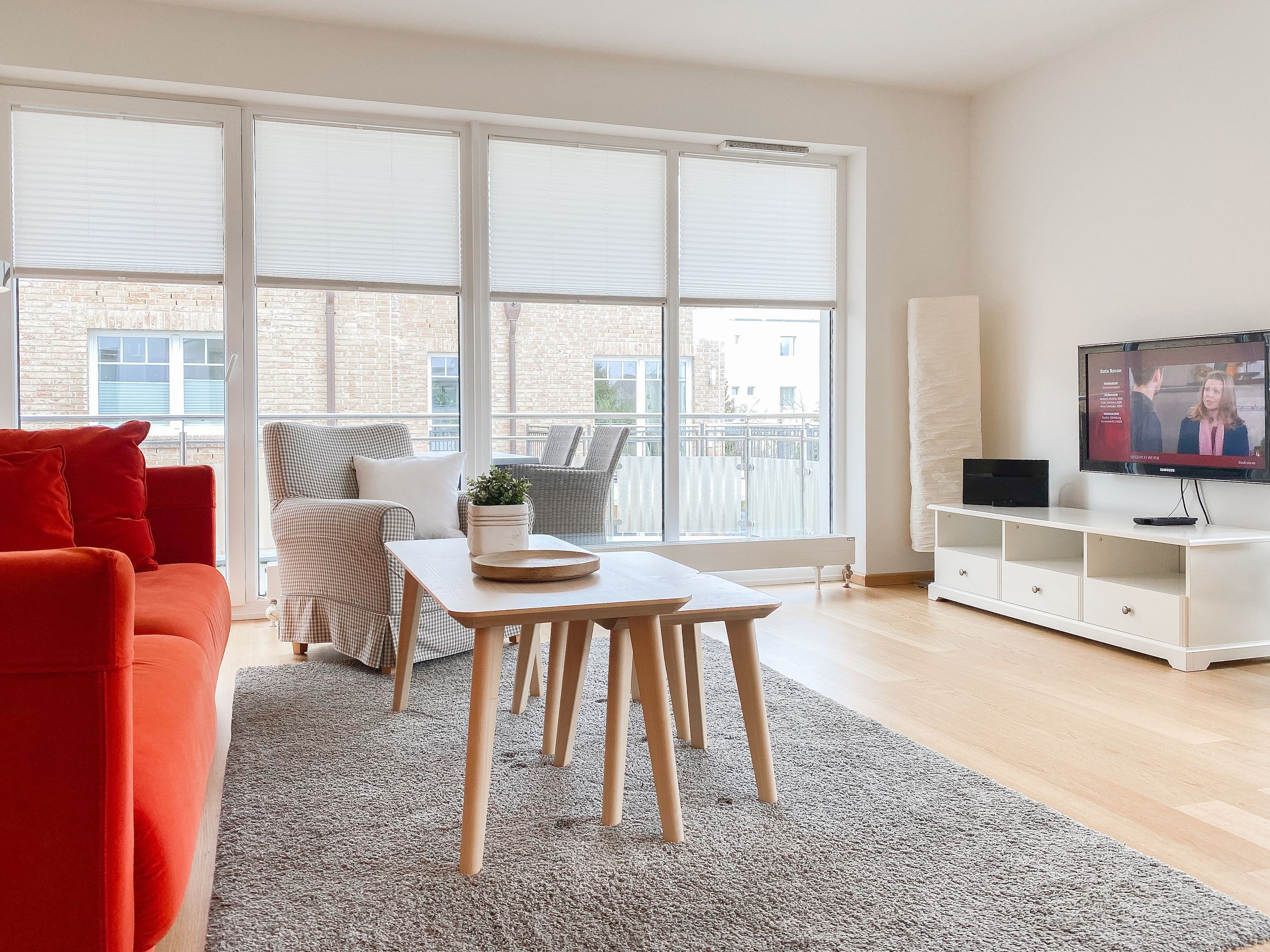 Die 92 qm große Wohnung befindet sich im ersten Obergeschoss und verfügt über zwei separate Schlafzimmer - ausgestattet mit Doppelbett (180x200) und zwei Einzelbetten (80x200) mit TV - ein komfortables Duschbad mit Fußbodenheizung sowie ein separates Gäste WC. Es gibt einen geschmackvollen Wohnbereich mit TV, Radio und WLAN, einen großzügigen Essbereich und eine offene Einbauküche, bestens ausgestattet mit Mikrowelle, Backofen und Spülmaschine. Der großzügige, überdachte Südbalkon bietet in östlicher Richtung einen schönen Blick auf den gegenüberliegenden Park und die Ostsee. Die großen Fensterelemente und das verwendete Echtholzparkett in diesem Objekt sorgen für eine helle, freundliche Wohnatmosphäre. Ankommen und Wohlfühlen!