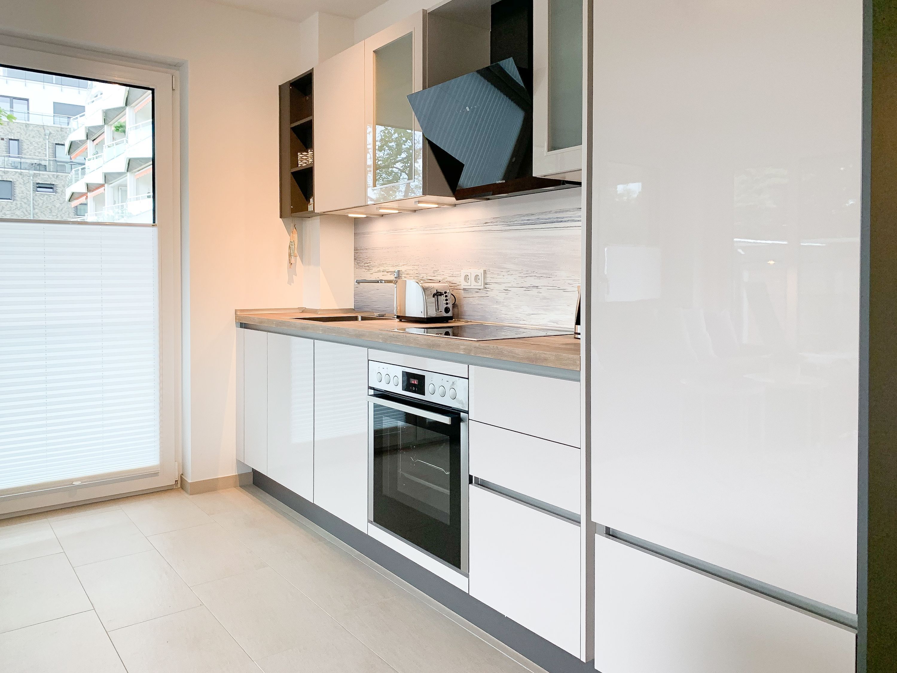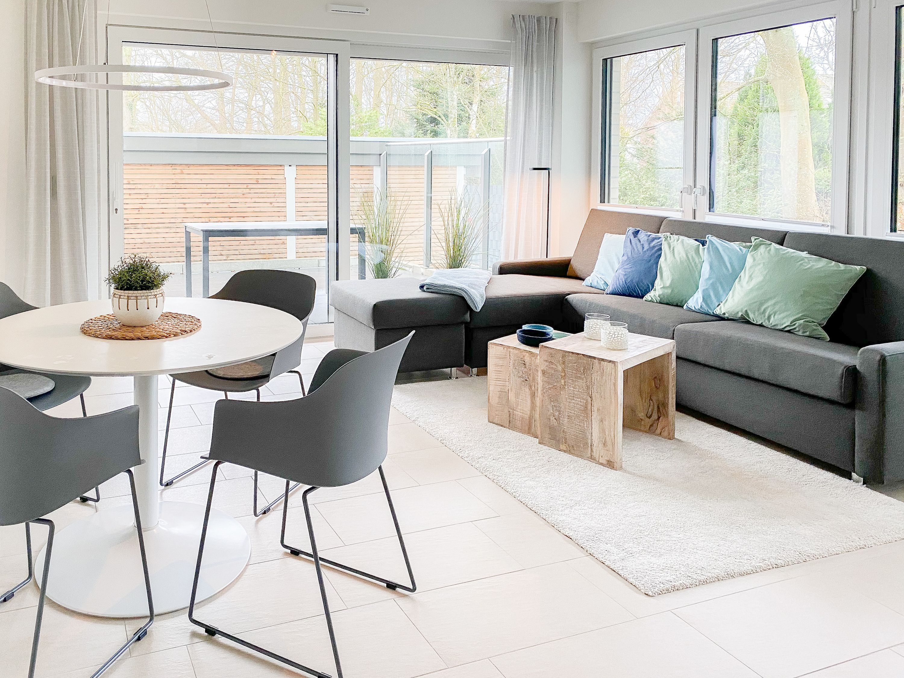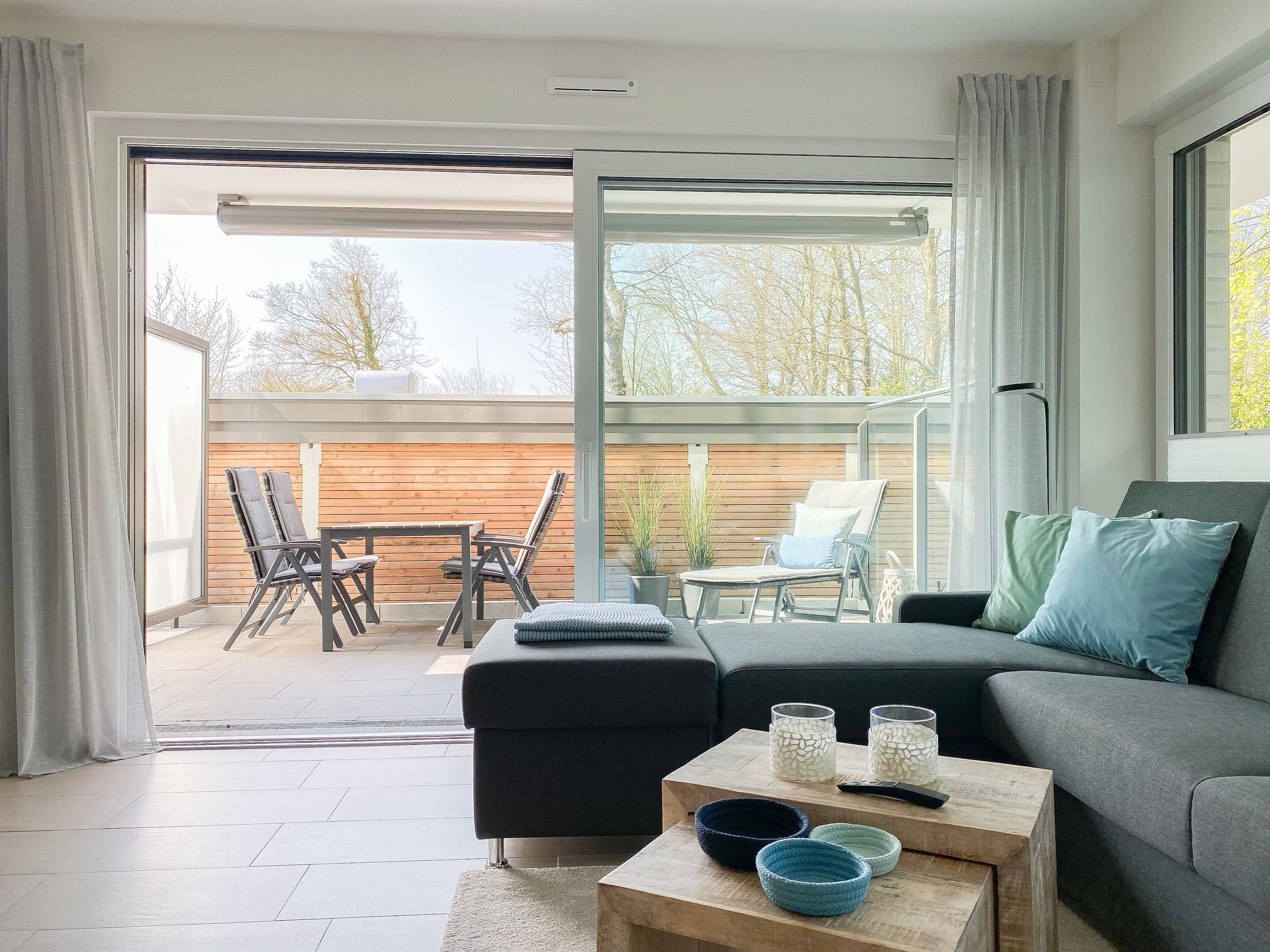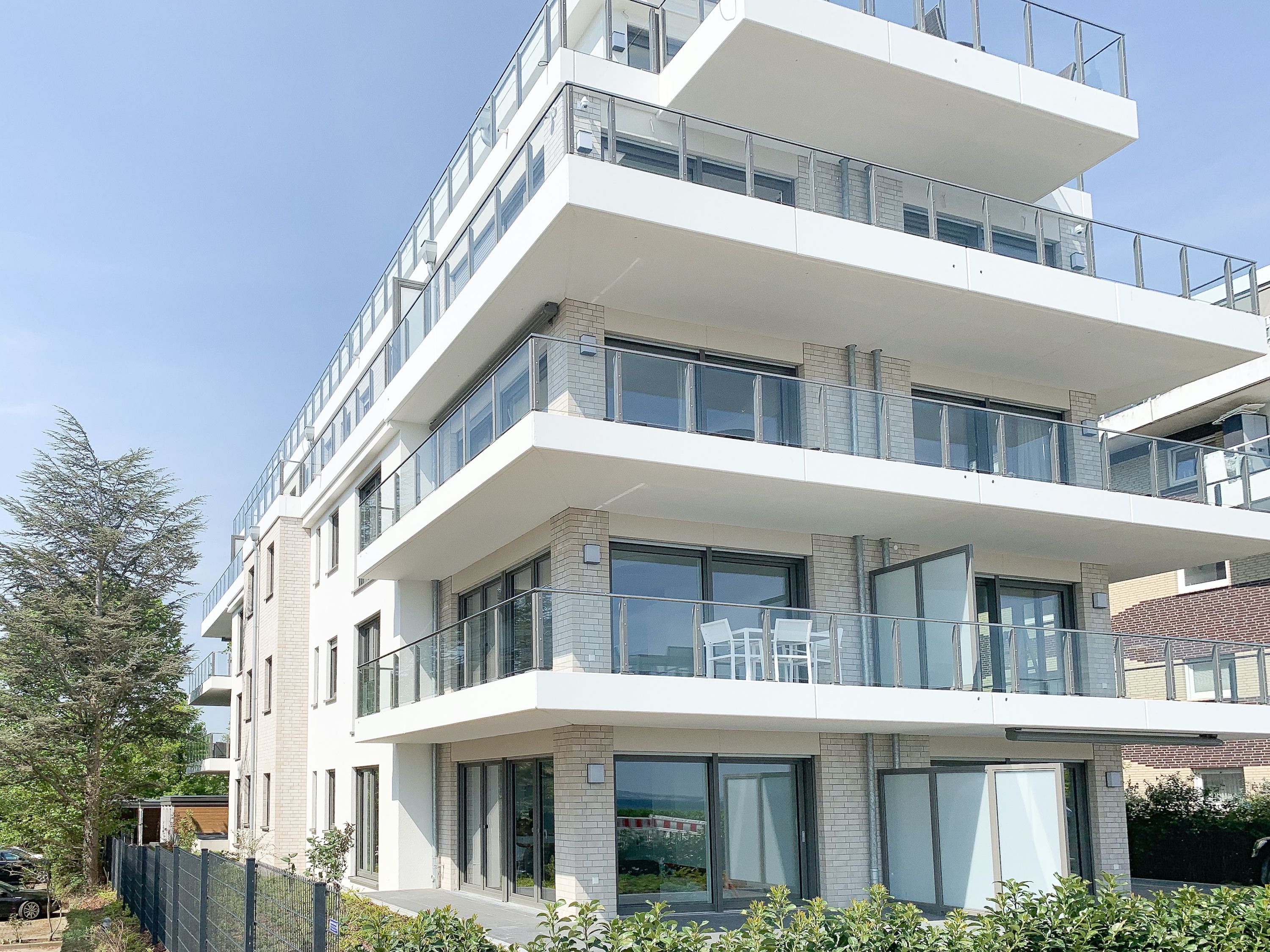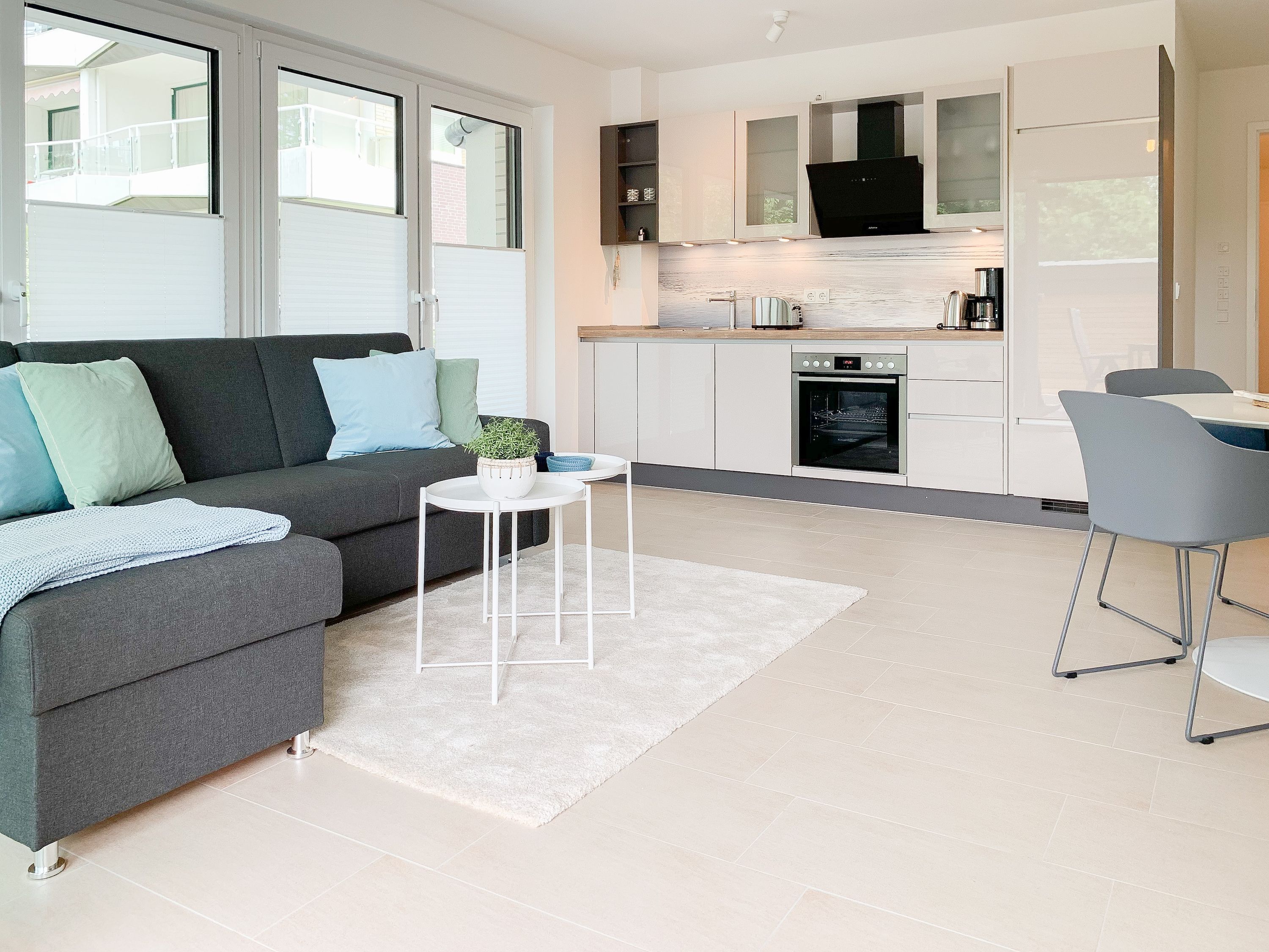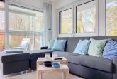 Die äußerst hochwertig eingerichtete und mit allen Annehmlichkeiten ausgestattete Wohnung bietet jeglichen Komfort für maximal 4 Personen, um einen entspannten Urlaub zu verleben. Helle Räumlichkeiten mit großen Fensterflächen, elektrischen Außenjalousien und Fußbodenheizung sorgen für ein zeitgemäßes Ambiente zum Wohlfühlen. Der Wohnbereich mit hochwertigem Sofa mit Schlaffunktion, die offene, bestens ausgestattete Küche sowie der anschließende Essbereich bilden den Mittelpunkt der Wohnung. Die großzügig angelegte Terrasse ist zum Südwesten ausgerichtet und mit Gartenmöbeln und Sonnenliege ausgestattet. Es steht ein großes Schlafzimmer mit Boxspringbett und TV sowie ein modernes Duschbad mit Walk In Dusche und integrierter Waschmaschine zur Verfügung.