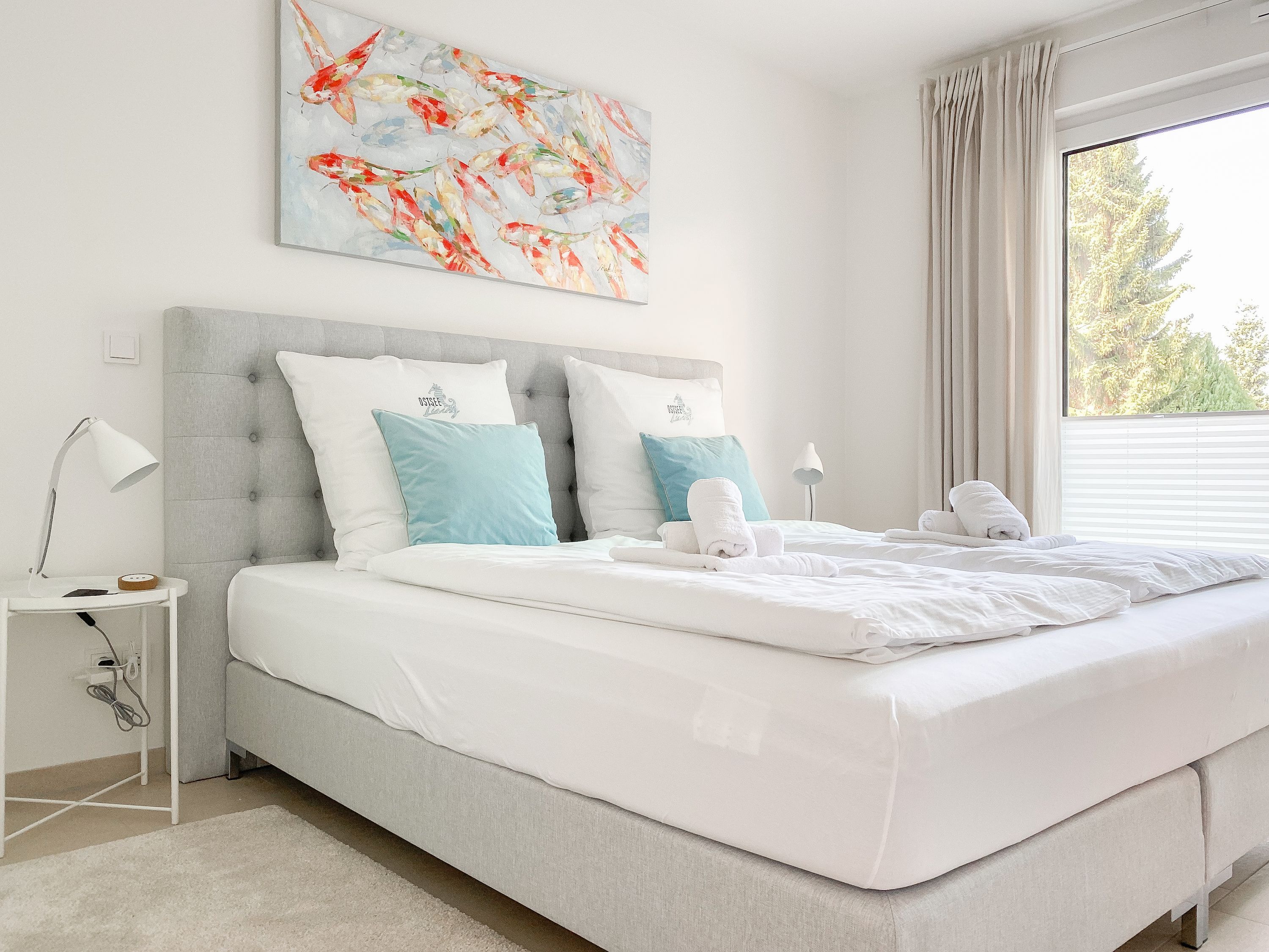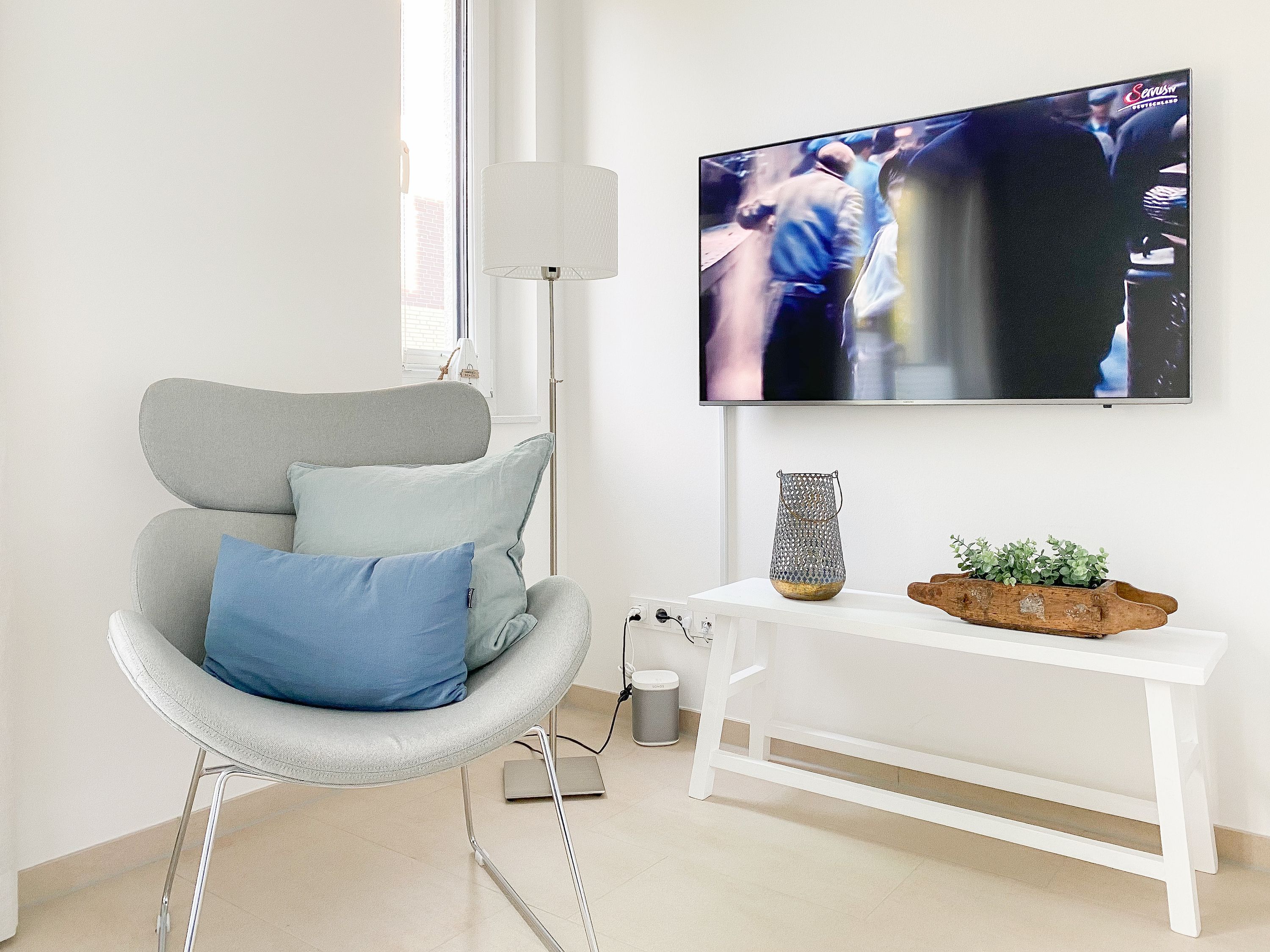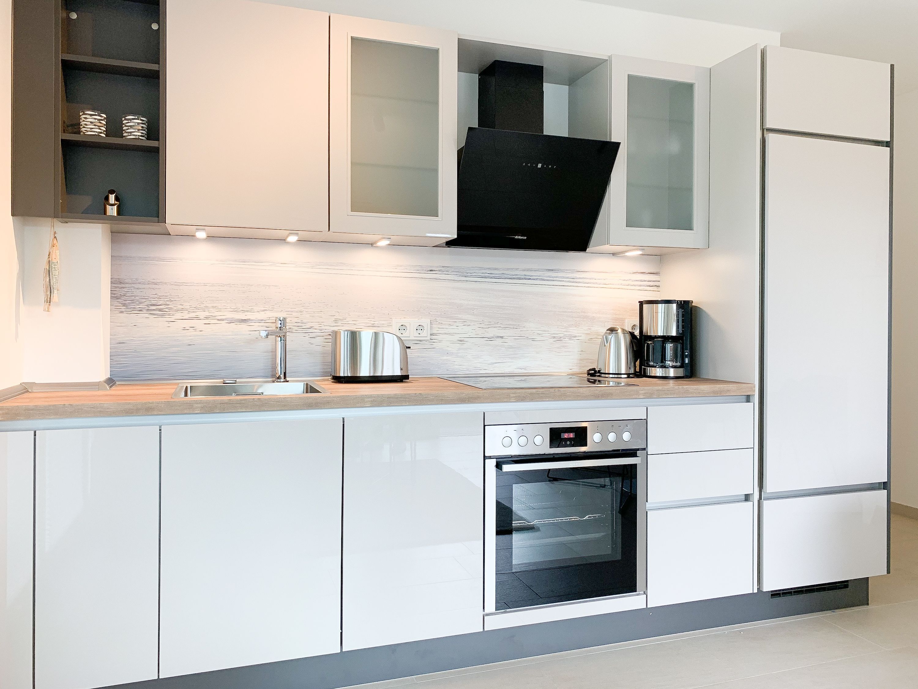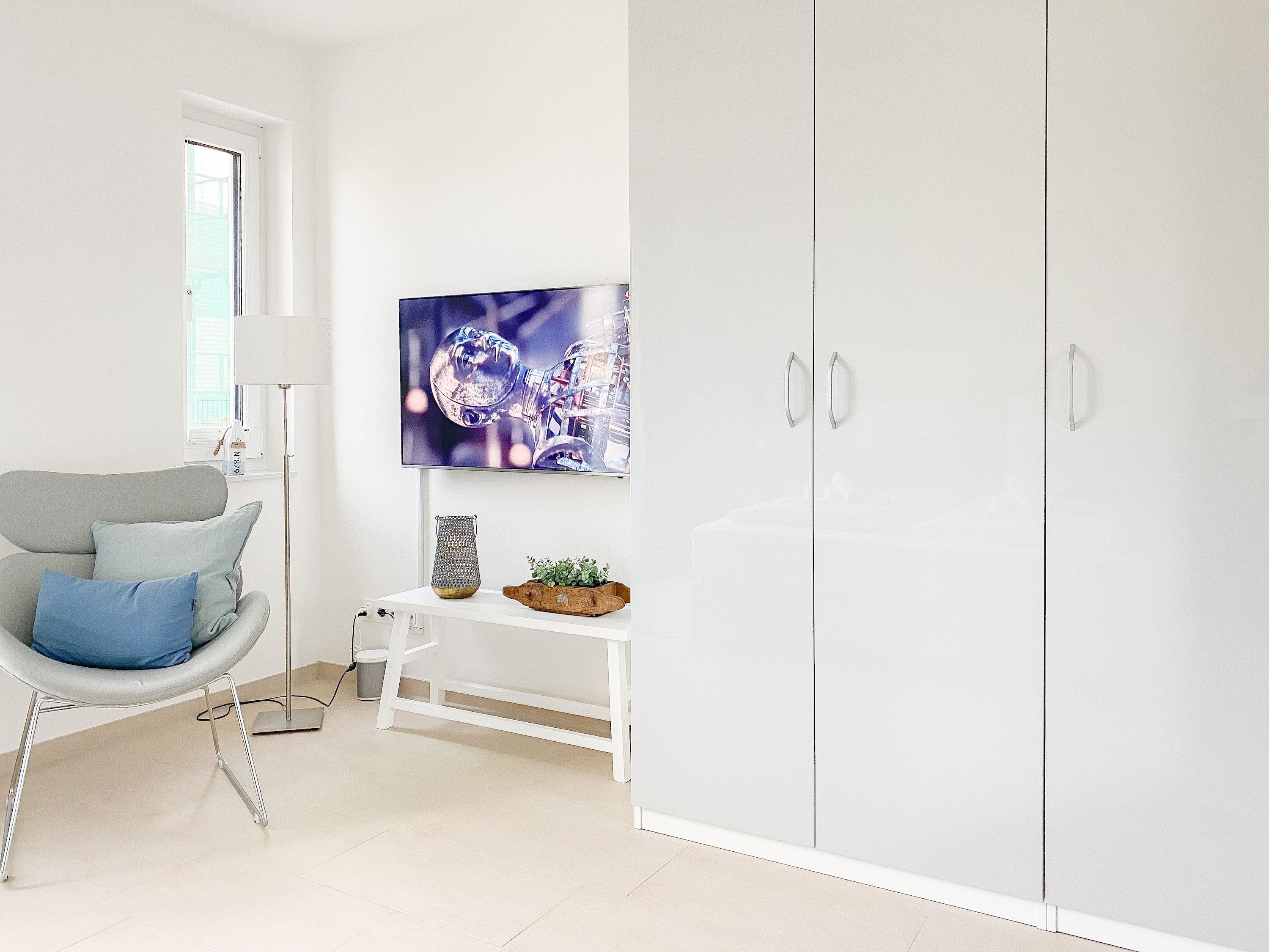 Die äußerst hochwertig eingerichtete und mit allen Annehmlichkeiten ausgestattete Wohnung bietet jeglichen Komfort für maximal 4 Personen, um einen entspannten Urlaub zu verleben. Helle Räumlichkeiten mit großen Fensterflächen, elektrischen Außenjalousien und Fußbodenheizung sorgen für ein zeitgemäßes Ambiente zum Wohlfühlen. Der Wohnbereich mit hochwertigem Sofa mit Schlaffunktion, die offene, bestens ausgestattete Küche sowie der anschließende Essbereich bilden den Mittelpunkt der Wohnung. Die großzügig angelegte Terrasse ist zum Südwesten ausgerichtet und mit Gartenmöbeln und Sonnenliege ausgestattet. Es steht ein großes Schlafzimmer mit Boxspringbett und TV sowie ein modernes Duschbad mit Walk In Dusche und integrierter Waschmaschine zur Verfügung.