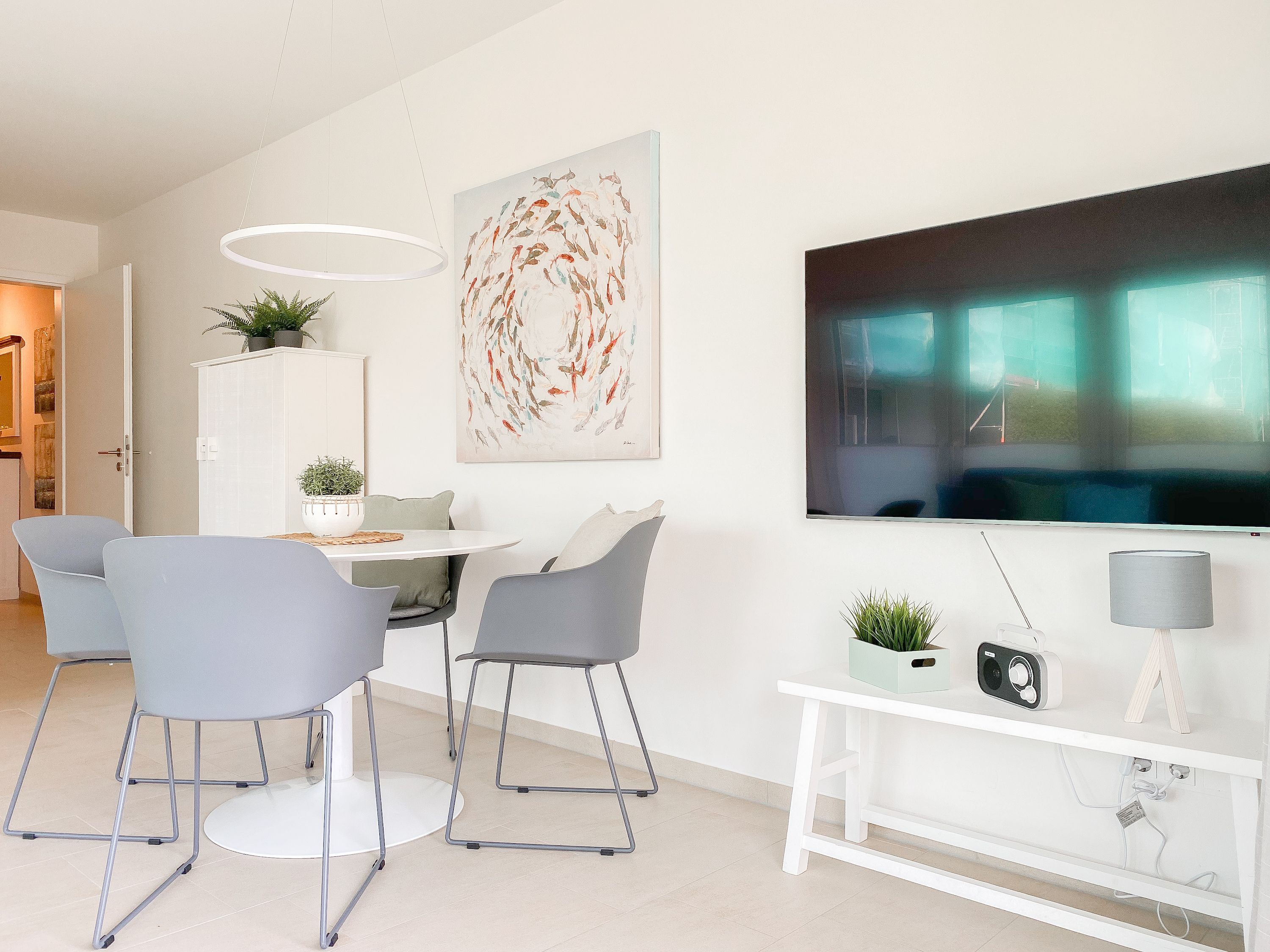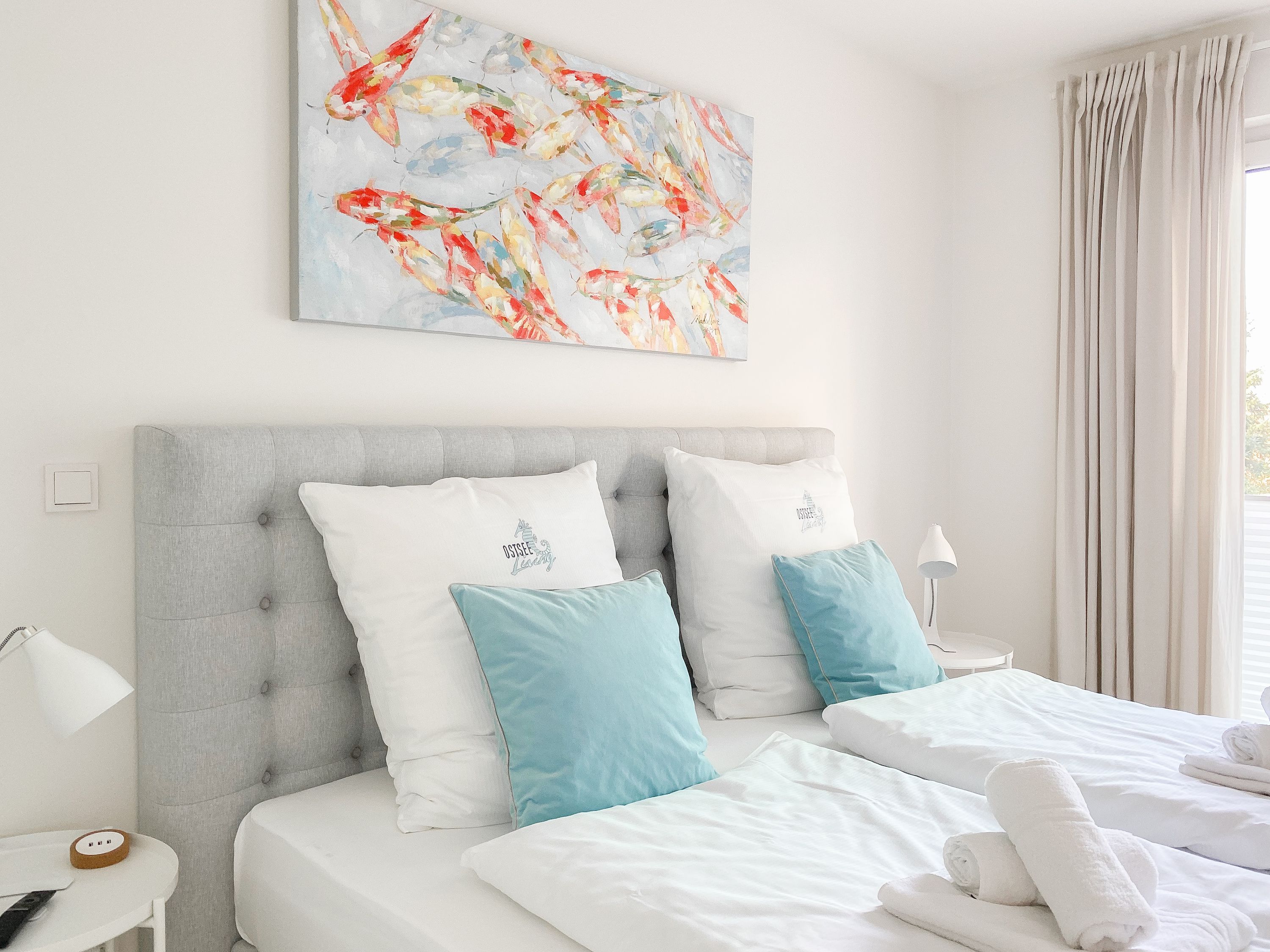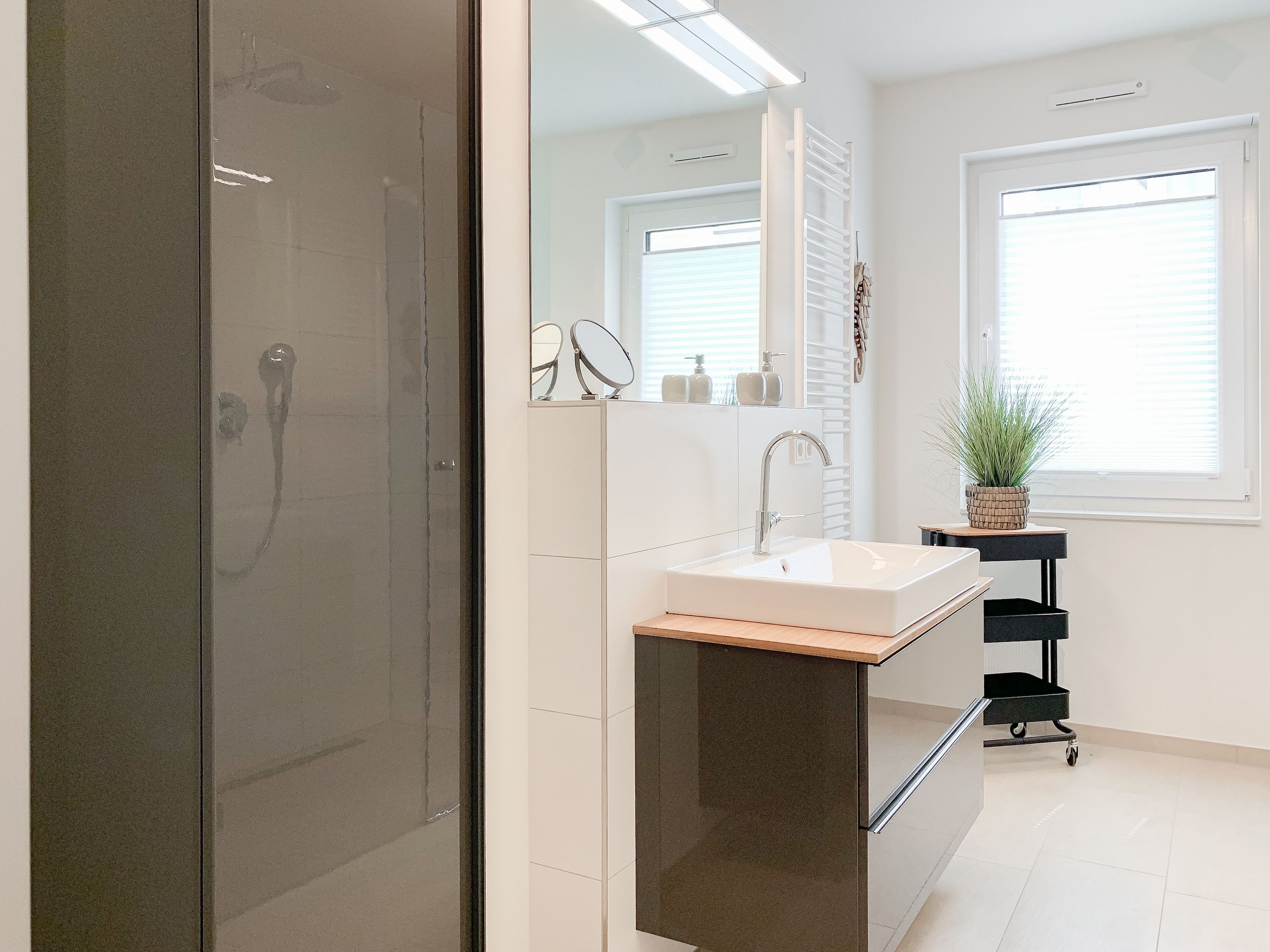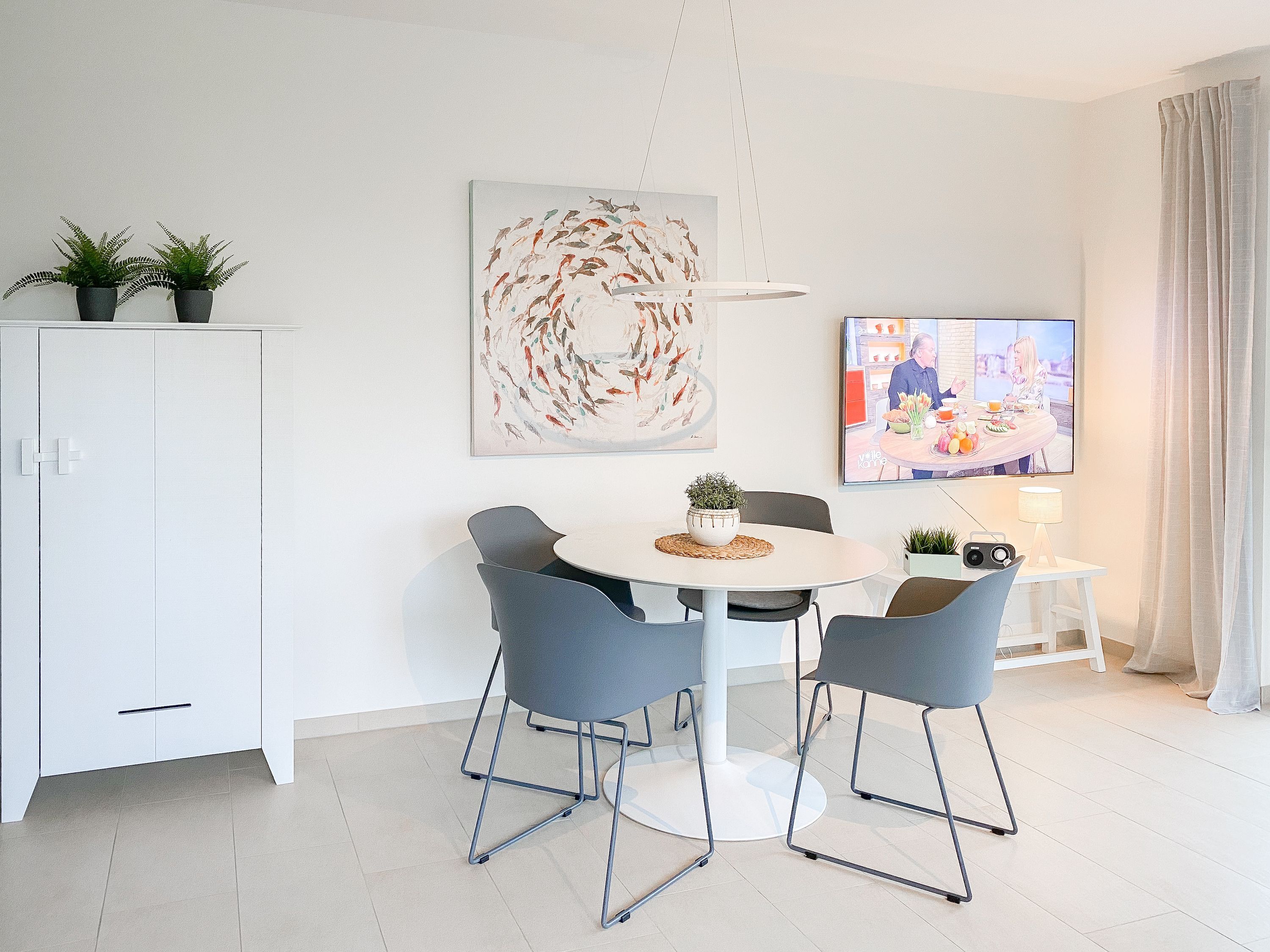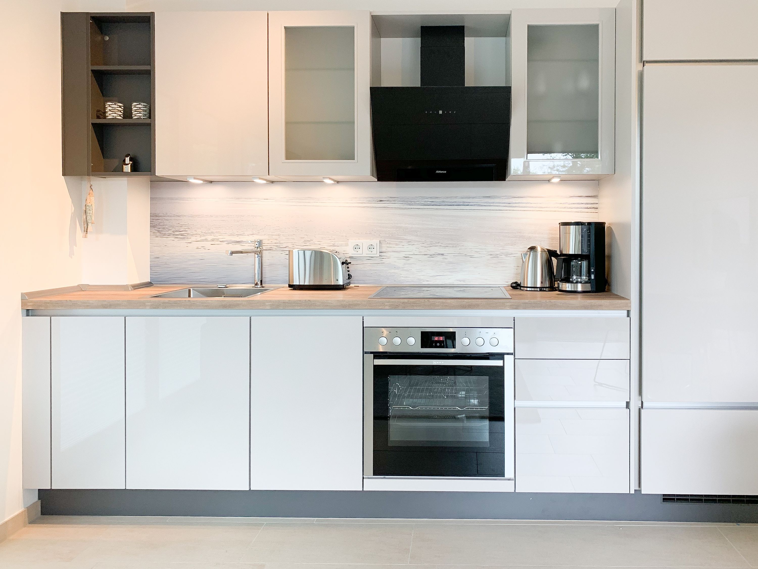Die äußerst hochwertig eingerichtete und mit allen Annehmlichkeiten ausgestattete Wohnung bietet jeglichen Komfort für maximal 4 Personen, um einen entspannten Urlaub zu verleben. Helle Räumlichkeiten mit großen Fensterflächen, elektrischen Außenjalousien und Fußbodenheizung sorgen für ein zeitgemäßes Ambiente zum Wohlfühlen. Der Wohnbereich mit hochwertigem Sofa mit Schlaffunktion, die offene, bestens ausgestattete Küche sowie der anschließende Essbereich bilden den Mittelpunkt der Wohnung. Die großzügig angelegte Terrasse ist zum Südwesten ausgerichtet und mit Gartenmöbeln und Sonnenliege ausgestattet. Es steht ein großes Schlafzimmer mit Boxspringbett und TV sowie ein modernes Duschbad mit Walk In Dusche und integrierter Waschmaschine zur Verfügung.