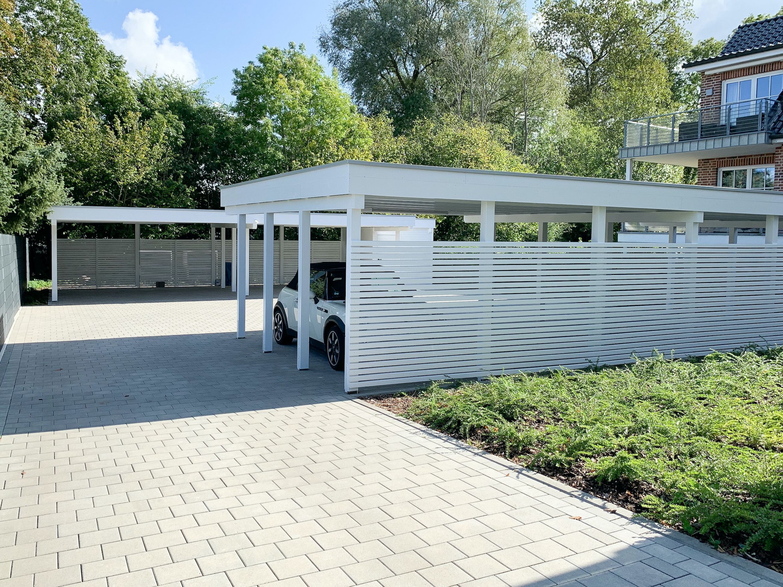 Ein fester Carport Stellplatz auf dem Grundstück gehört zur Wohnung. Das Haus verfügt über einen Aufzug.