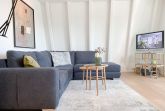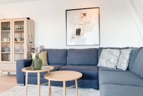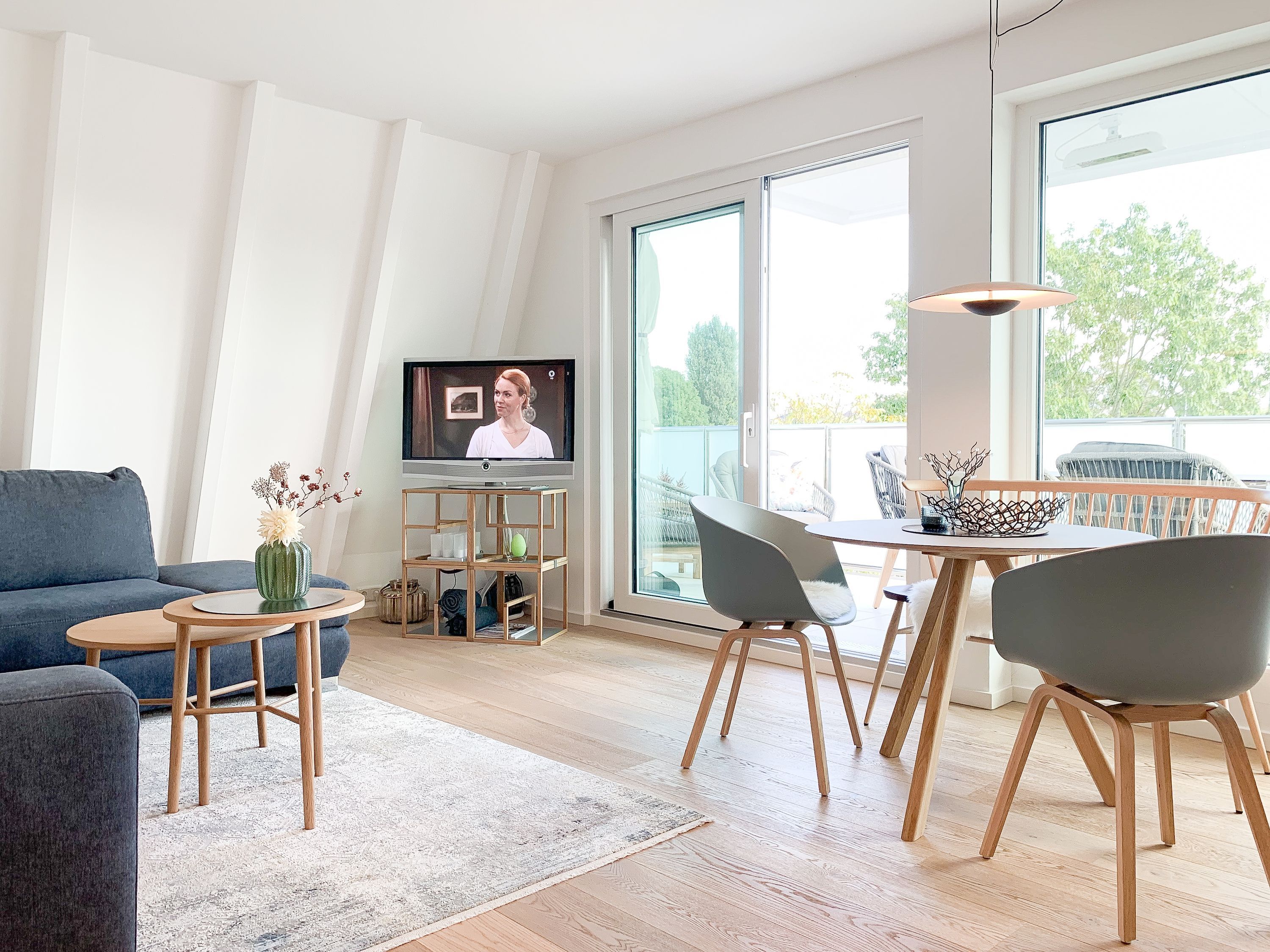 Durch das Zusammenspiel von Farben und hochwertigen Materialien mit viel Liebe zum Detail ist es gelungen eine wunderbare Atmosphäre zu schaffen. Echtholzparkett und Fußbodenheizung sorgen für ein angenehmes Raumklima und große Fensterflächen, alle mit elektrischen Außenjalousien versehen, für lichtdurchflutete Räumlichkeiten. Es erwartet Sie ein kombinierter Wohn- Essbereich mit hochwertigem Schlafsofa und integrierter Einbauküche. Der großzügige Südbalkon ist mit exklusiven Garten- und Loungemöbeln ausgestattet und mit einem Deckenheizstrahler versehen, um den Außenbereich auch an kühleren Abenden nutzen zu können. Vor dem Schlafzimmer, ausgestattet mit einem Boxspringdoppelbett und TV, befindet sich ein weiterer Balkon, um die Morgensonne bei einer Tasse Café zu genießen. Das Bad ist luxuriös und verfügt über eine großzügig angelegte Walk In Dusche.