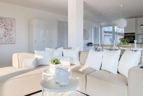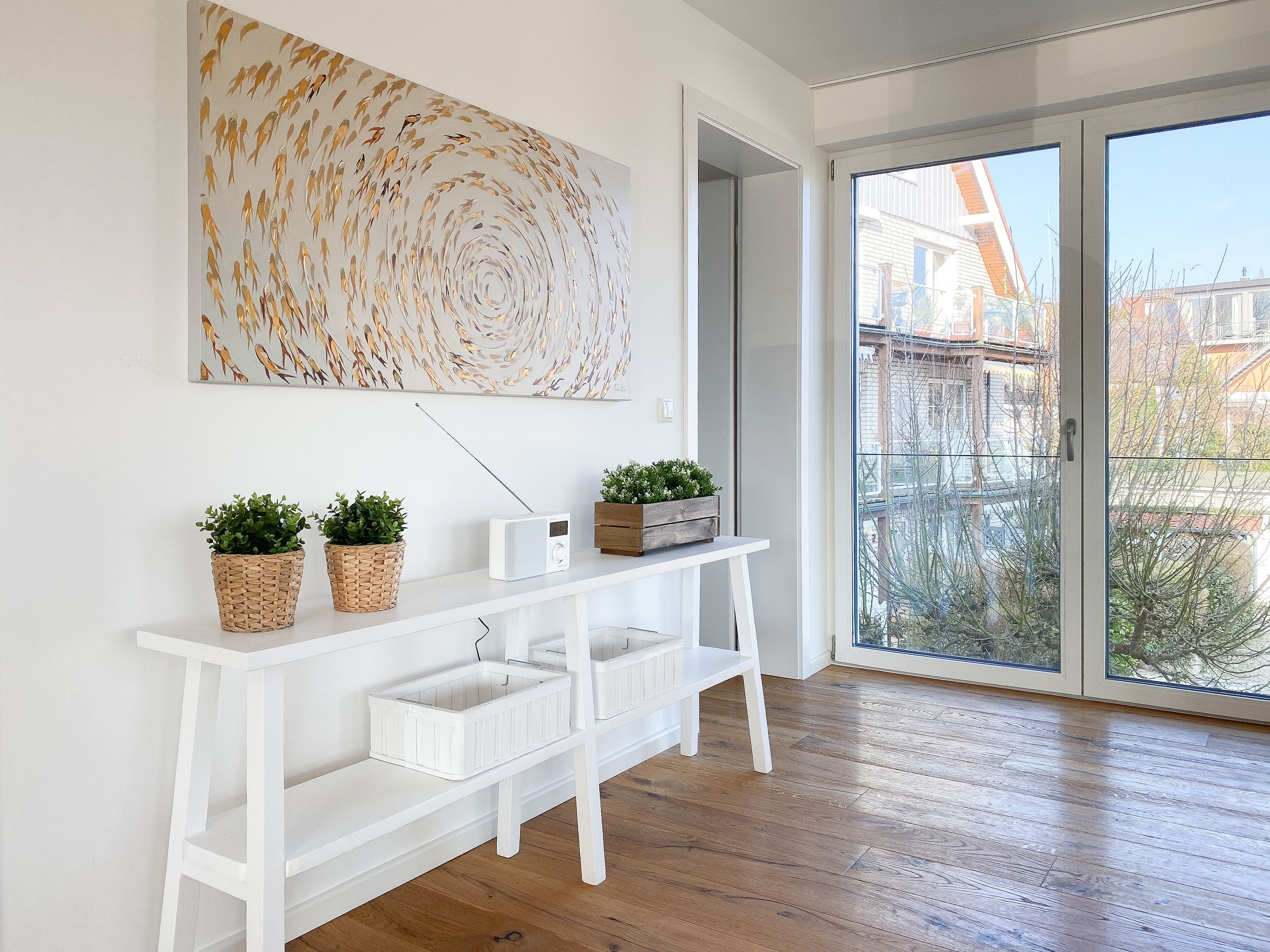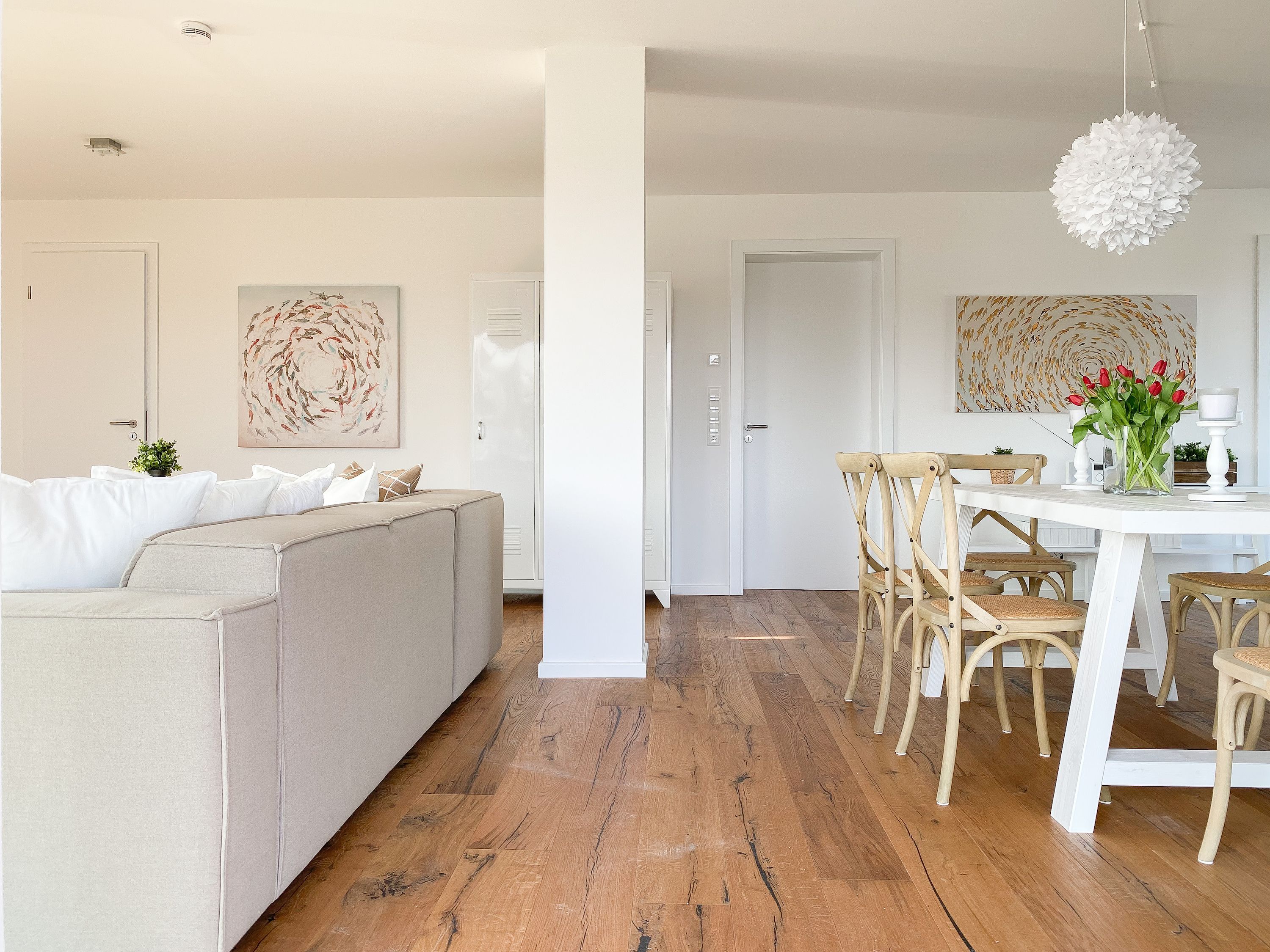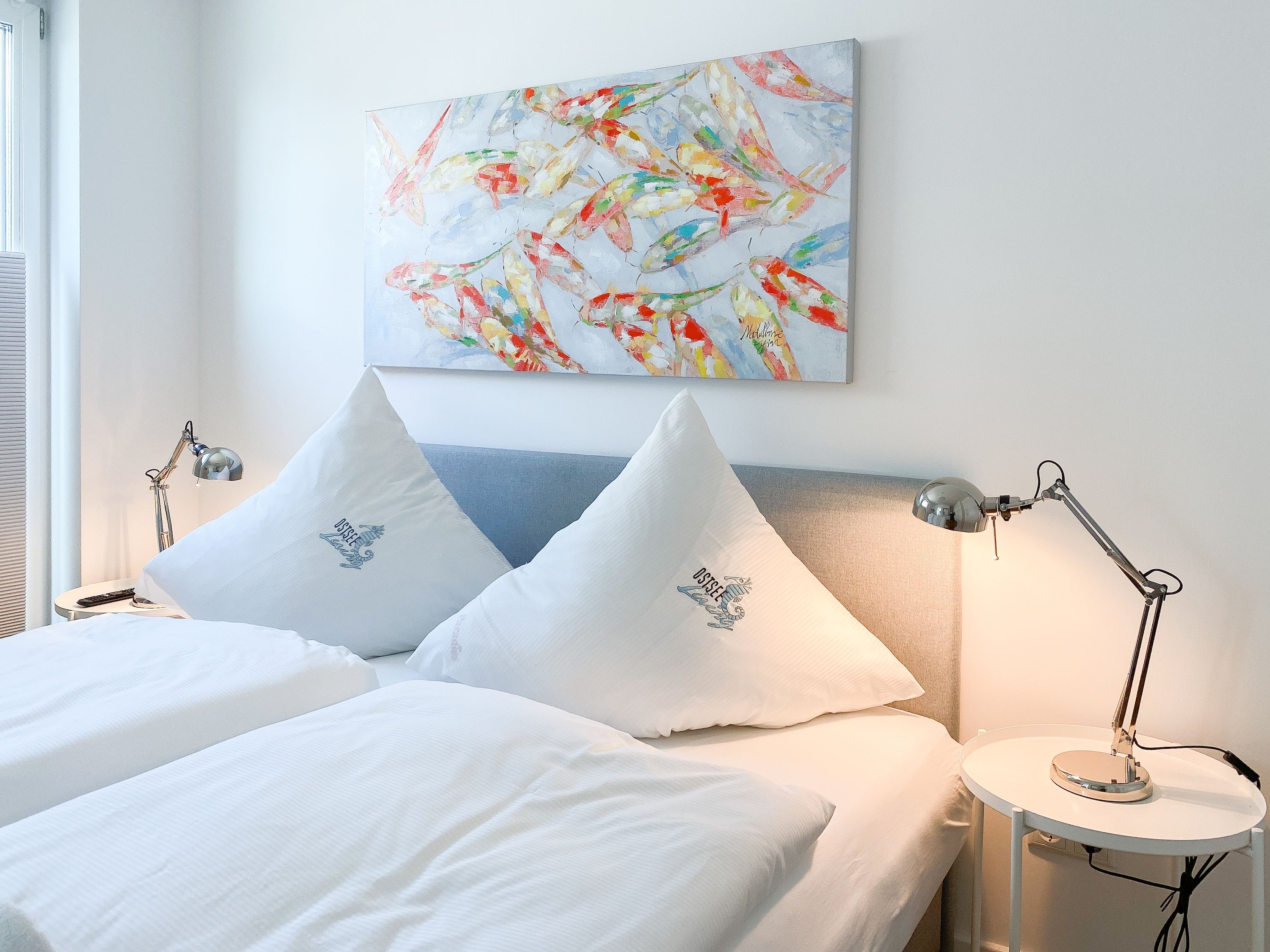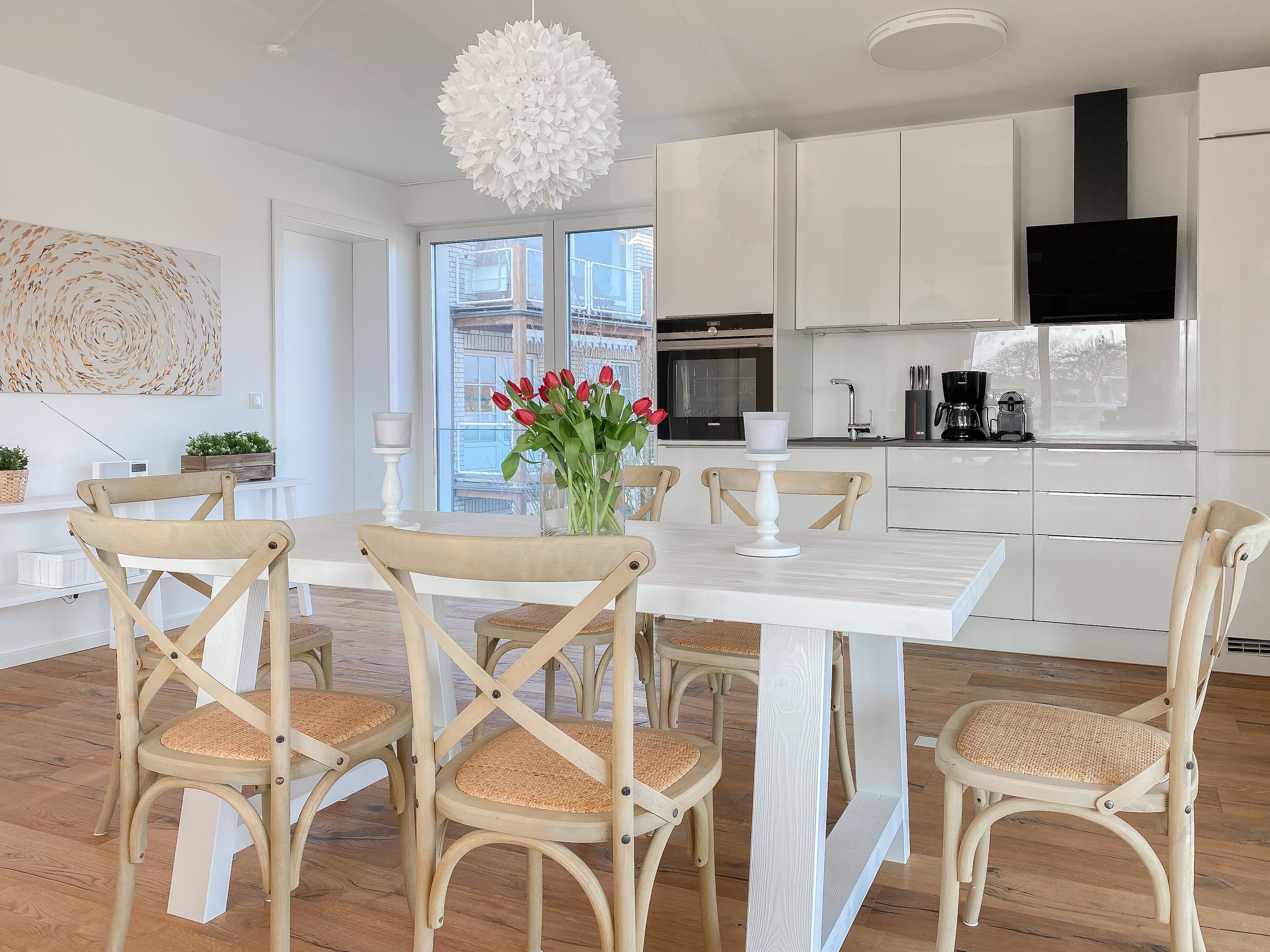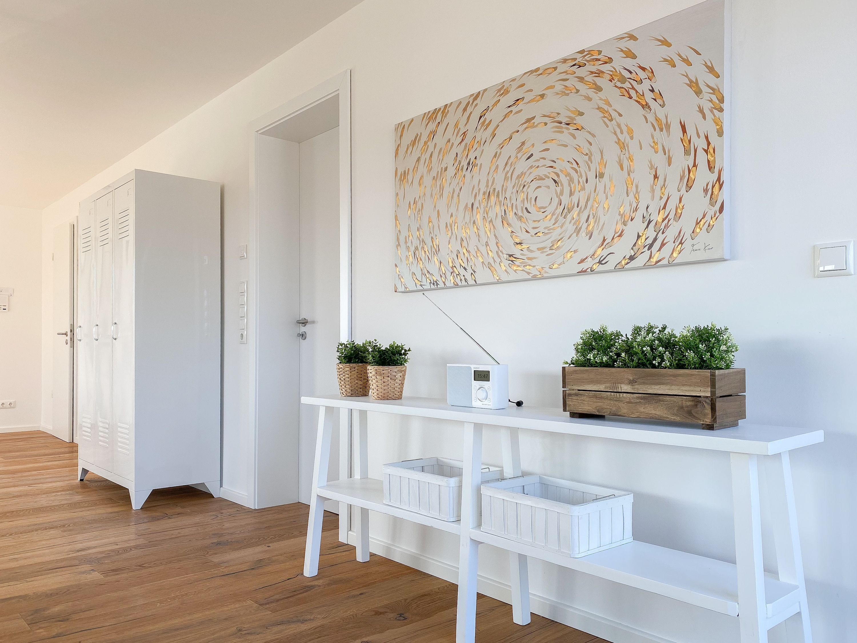 Diese einzigartige Ferienwohnung liegt im 1. Obergeschoss eines modernen Neubaus mit nur 3 Wohneinheiten und bietet auf 100 qm Wohnfläche mit 2 Schlafzimmern und 2 separaten Bädern jeglichen Komfort für 4 Personen. Das Herzstück der Wohnung bildet der stilvoll eingerichtete Wohn- und Essbereich mit riesigen Fensterelementen und einem phantastischen Ausblick auf die Ostsee und die ein- und ausfahrenden Schiffe vom Fischkutter bis zur Motoryacht. Echtholzböden und Fußbodenheizung sorgen für ein angenehmes Raumklima. Der großzügig angelegte Sonnenbalkon ist überdacht und sowohl zum Süden als auch zum Westen ausgerichtet. Genießen Sie die Sonne von früh bis spät, die einzigartige Hafenatmosphäre und beeindruckende Sonnenuntergänge bei einem Glas Wein.