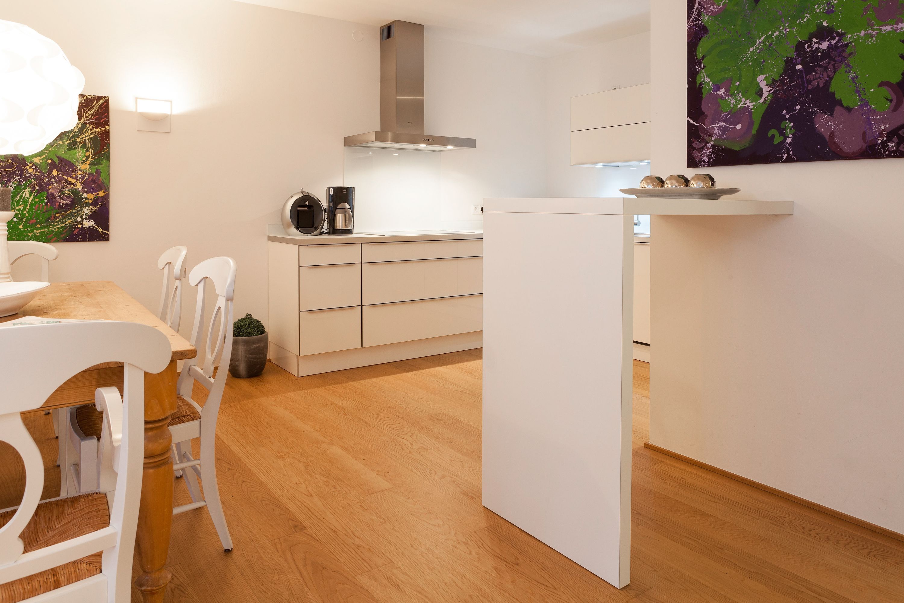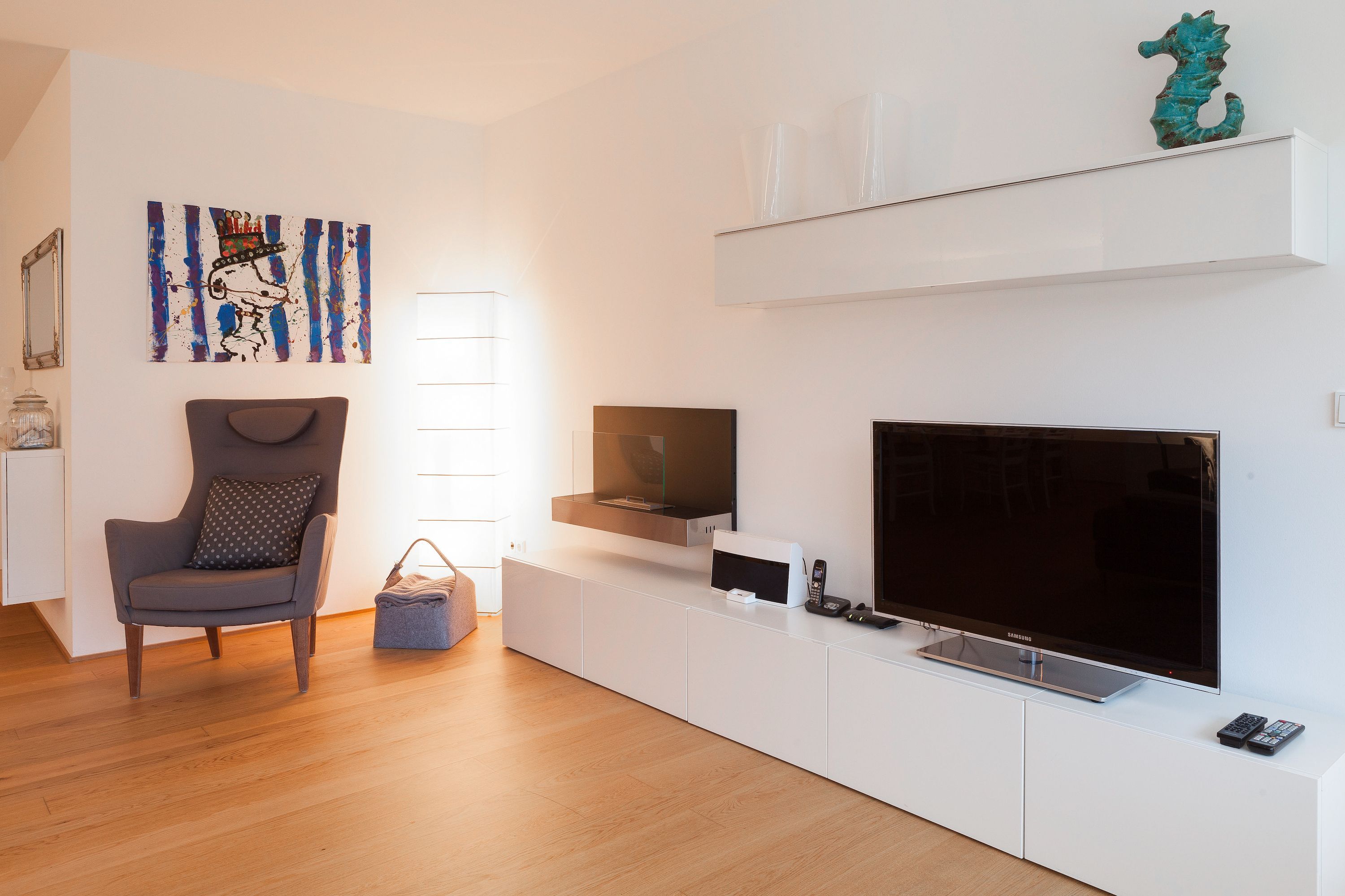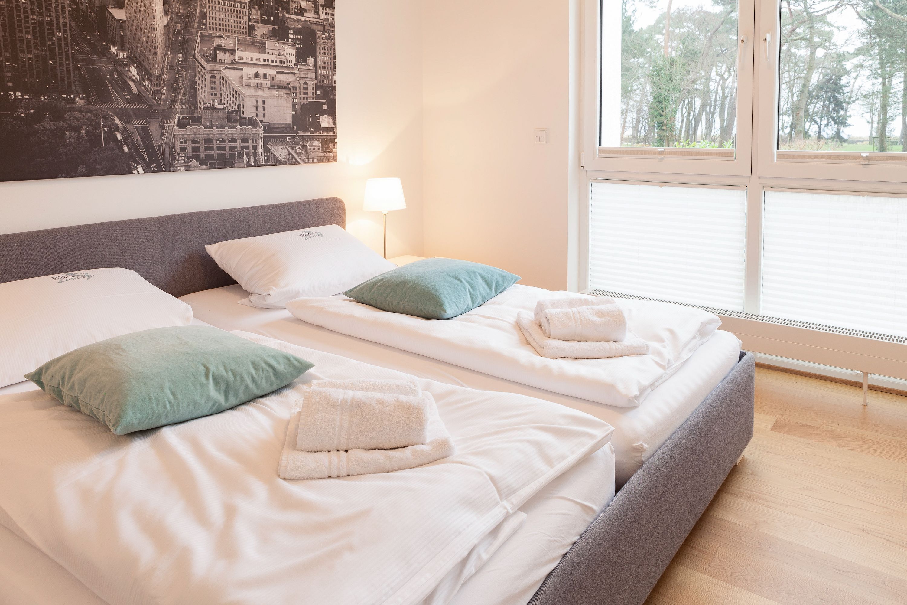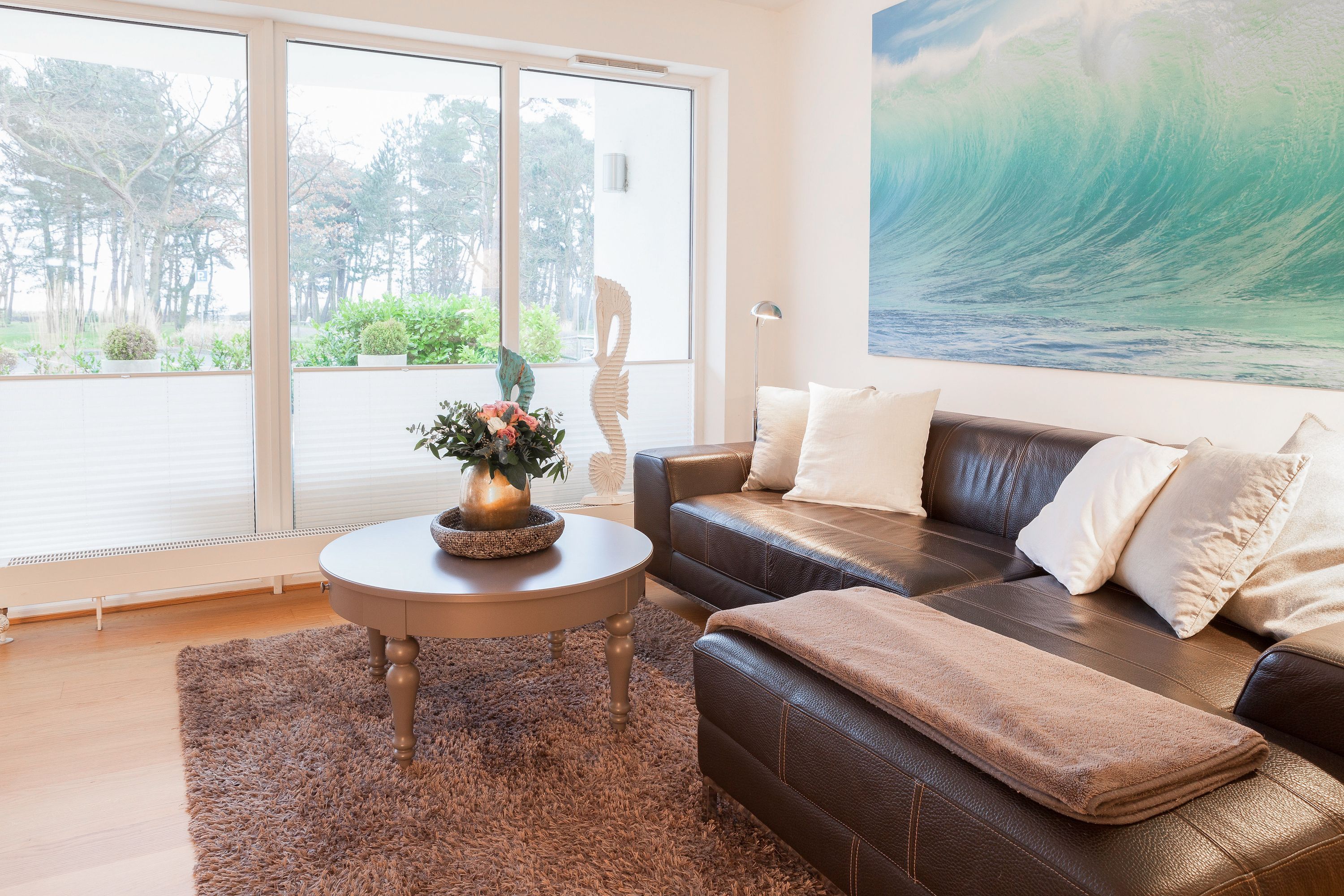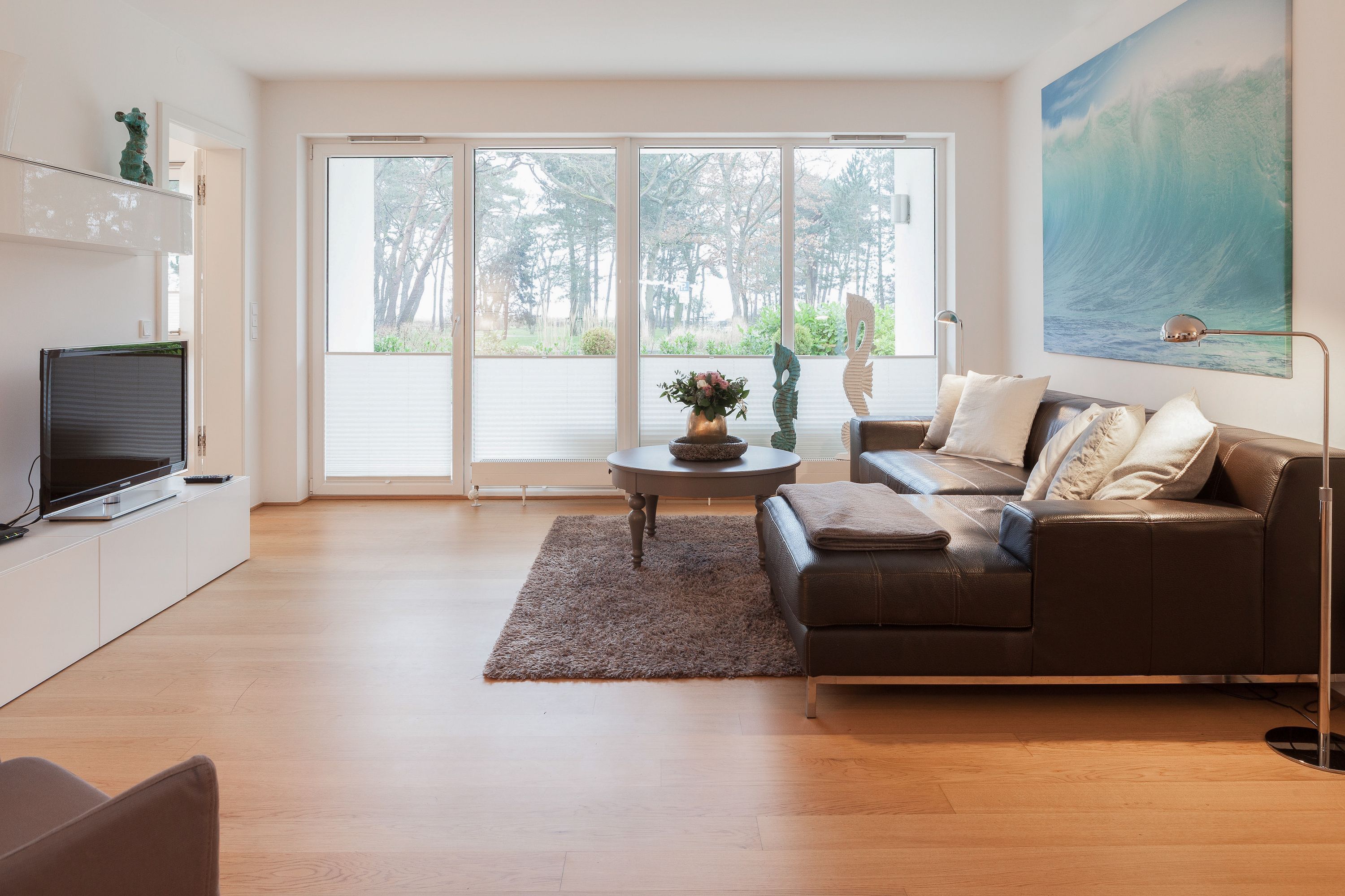 Die moderne, stilvoll eingerichtete Wohnung ist komplett mit Echtholzparkett ausgestattet. Alle Fensterelemente sind bodentief und mit elektrischen Außenjalousien versehen. Es gibt einen großzügigen Wohnraum mit Ethanolkamin, TV, Radio und WLAN und einen tollem Blick bis zur Ostsee. Die offene, moderne Einbauküche mit großzügigem Essbereich genügt höchsten Ansprüchen und verfügt über Mikrowelle, Backofen, Spülmaschine und Induktionskochfeld. Zwei separate Schlafzimmer (ein Doppelbett 200x200 und 2 Einzelbetten 80x200), ein weiterer TV mit integriertem DVD Laufwerk sowie ein modernes Bad mit großem, ebenerdigen Duschbereich und Fußbodenheizung stehen zur Verfügung. Die riesige, 50 qm große Terrasse ist mit Esstisch und Stühlen sowie mit gemütlichen Loungemöbeln ausgestattet, überdacht und windgeschützt. Herrlich zum Entspannen und den schönen Blick auf die Ostsee zu genießen. Das Haus am Meer verfügt über einen Fahrstuhl und eine Tiefgarage (Einfahrstshöhe 2 m), in der ein fester Stellplatz reserviert ist. Ein Fahrradkeller, Münzwaschmaschine und -Trockner sind vorhanden. Für unsere kleinen Gäste befindet sich auf der Gartenseite des Hauses ein Spielplatz.