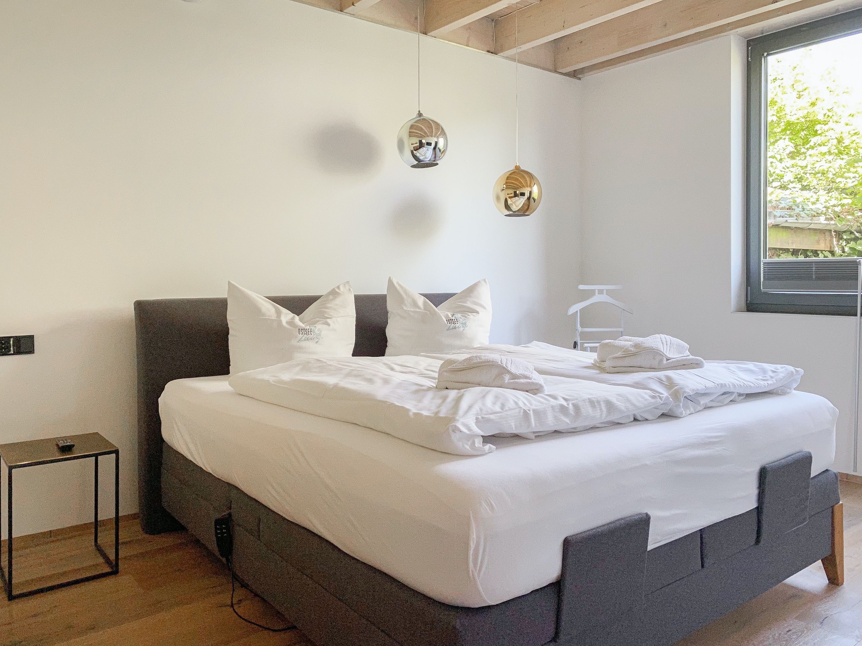 Die Erdgeschosswohnung Meerchenwald 4 verfügt über 2 separate Schlafzimmer mit elektromotorisch verstellbaren Boxspringbetten (180x200), Verdunkelungsplissees und TV sowie zwei moderne Duschbäder en Suite. Im Flur bietet ein großer Einbauschrank ausreichend Stauraum für Ihre Urlaubsgarderobe. Der großzügige Wohnbereich mit riesigen Glasfronten zur Süd Terrasse mit kleinem Garten verfügt über 2 Sofas und einen gemütlichen Sessel, TV, DVD-Player und Surround Anlage. Selbstverständlich steht WLAN zur kostenlosen Nutzung zur Verfügung. Der anschließende Essbereich ist für 6 Personen eingerichtet und die perfekt ausgestattete, hochmoderne Wohnküche lässt garantiert keine Wünsche offen.