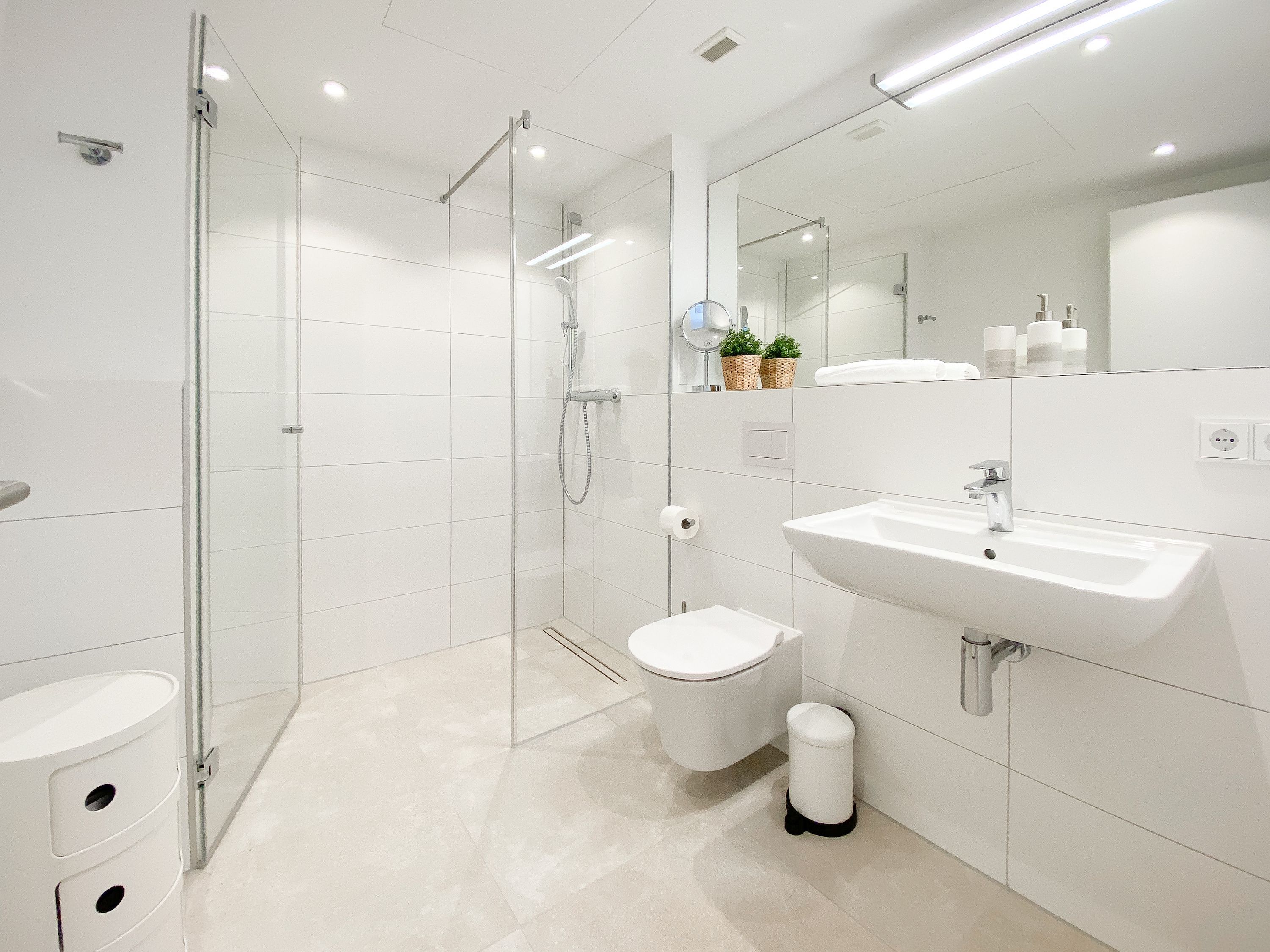 Zehn exklusive Wohnungen mit Balkonen und Terrassen zur Meerseite bieten traumhafte Ausblicke bis auf die Ostsee und jeglichen Komfort zur Gewährleistung eines hohen Wohnstandards in schönem Ambiente. Alle Wohnungen verfügen über moderne Bäder mit Walk In Duschen, Fußbodenheizung und elektrische Außenjalousien mit einstellbaren Lamellen, die gleichermaßen für Tageslicht und Privatsphäre sorgen.