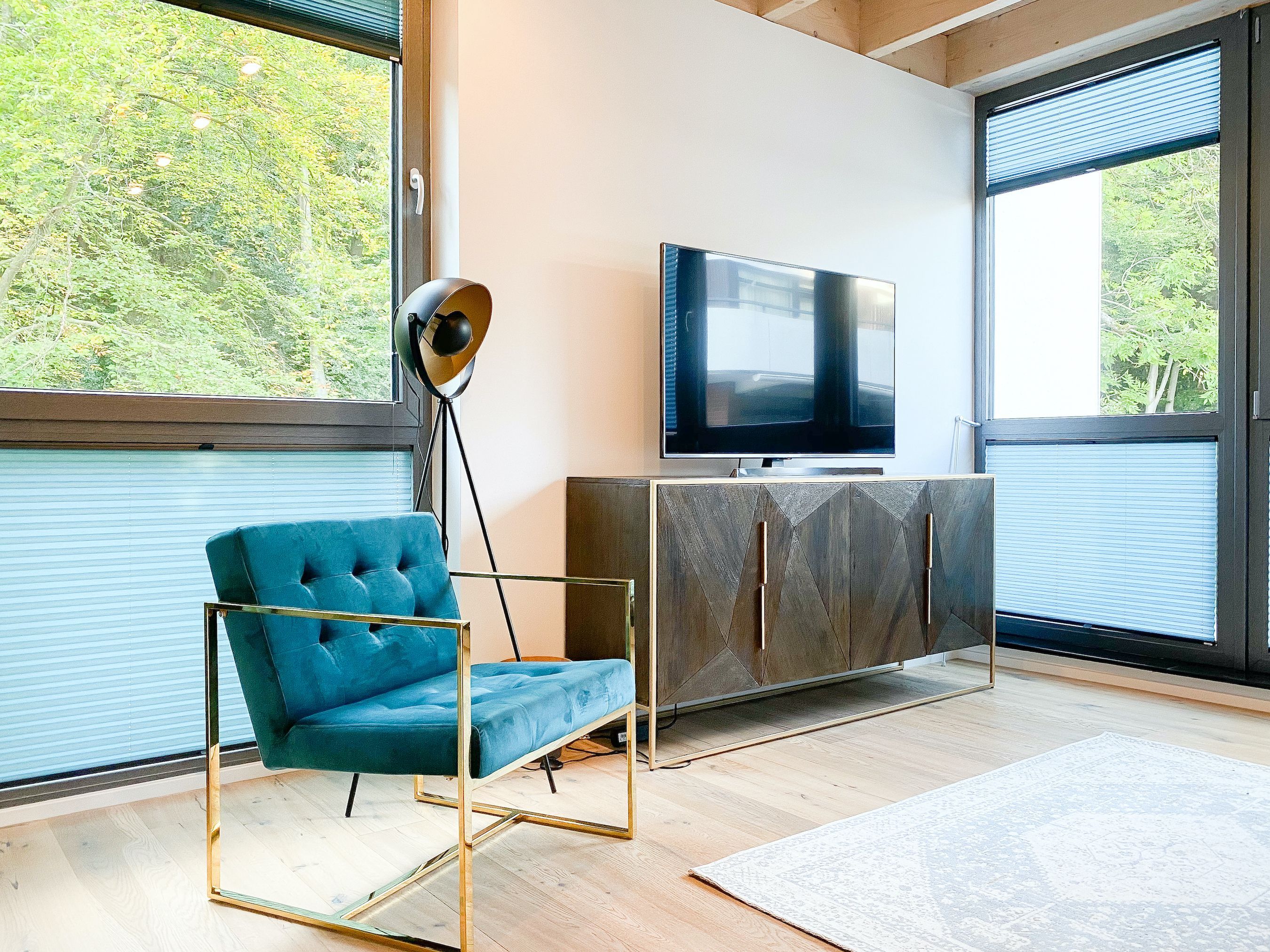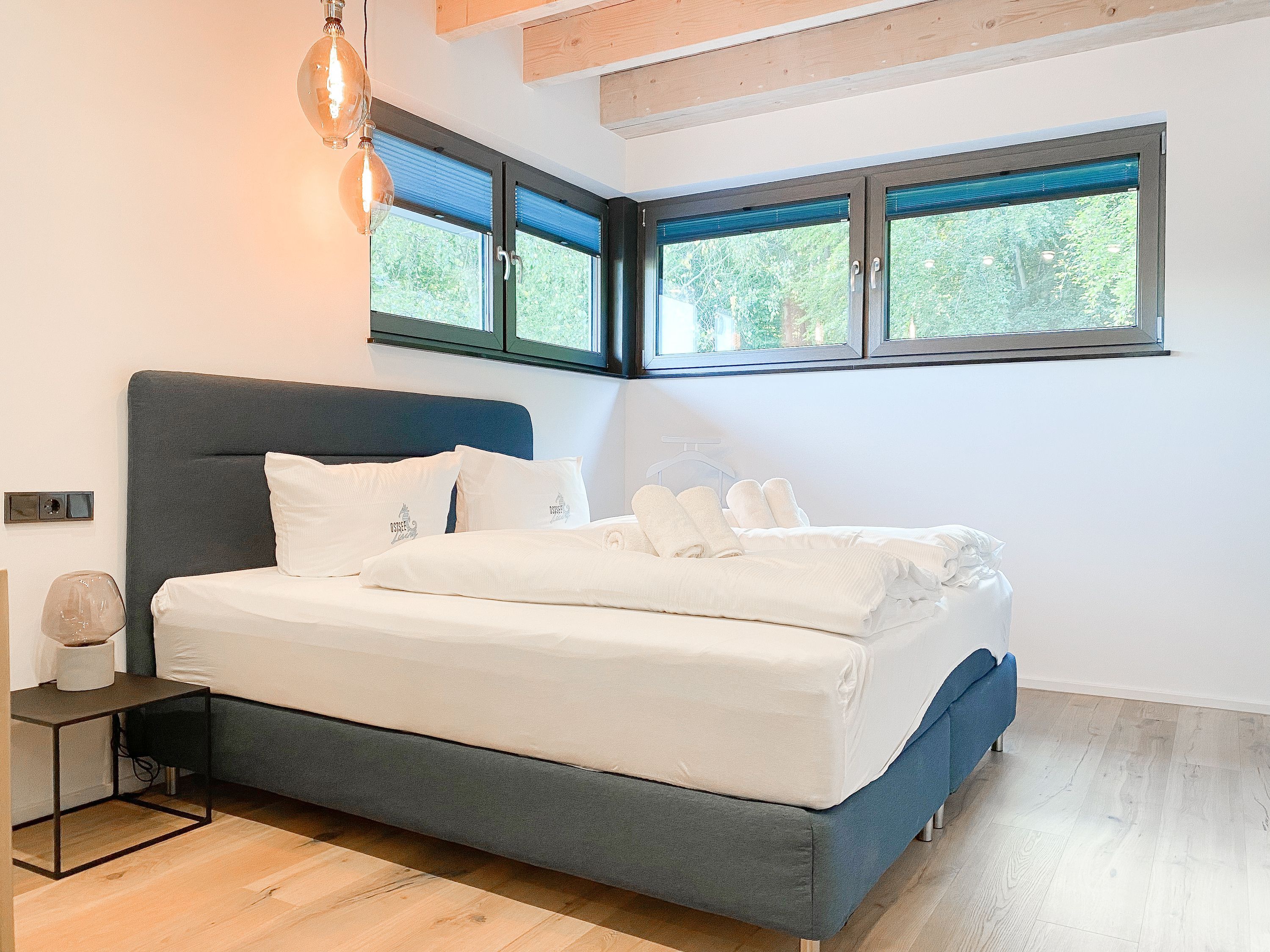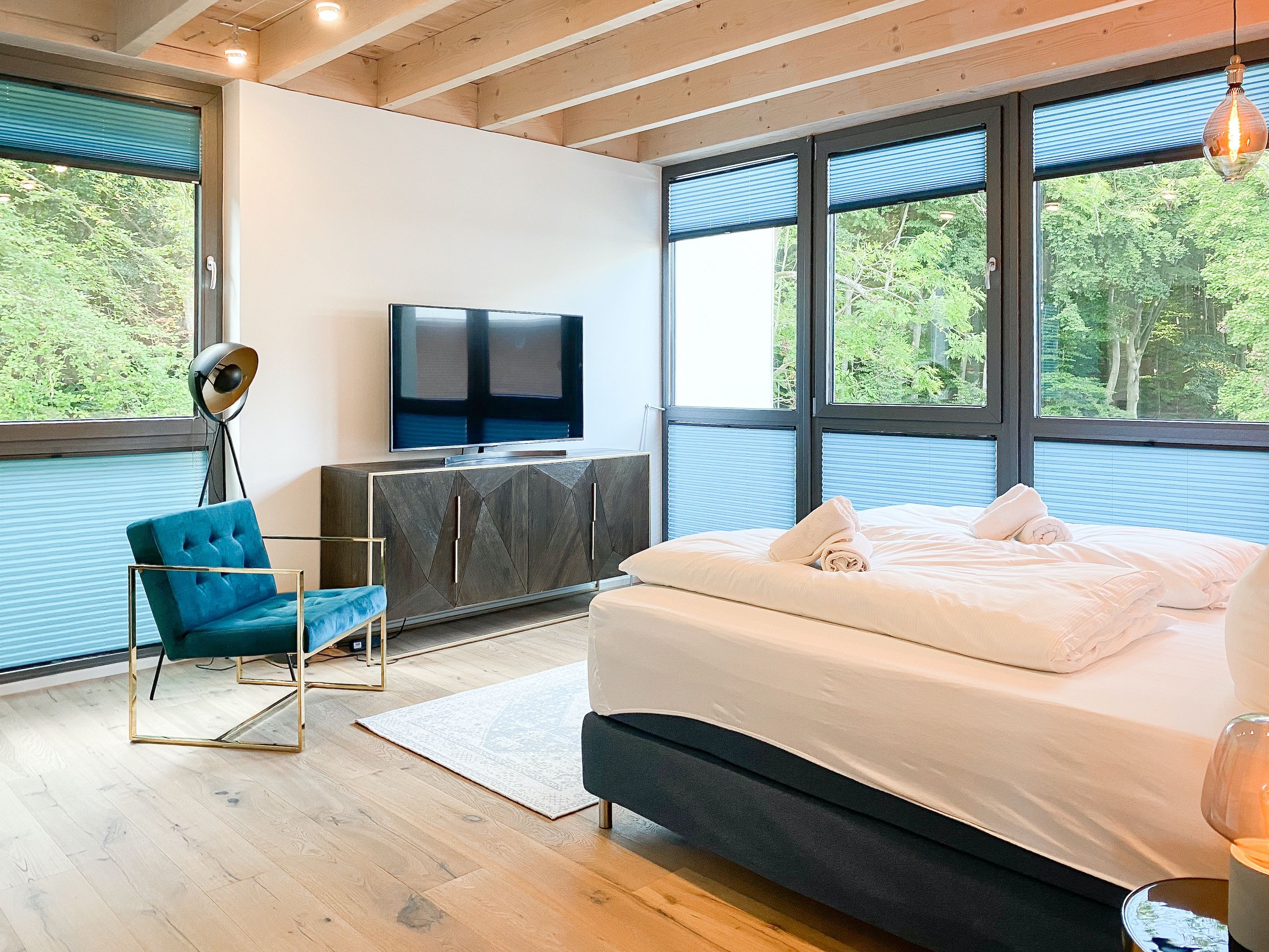 Das traumhafte Penthouse gewährleistet einen hohen Wohnstandard in einem herrlichen Ambiente und bietet jeglichen Komfort auf 100 qm Wohnfläche für 4 Personen. Das Penthouse befindet sich im 2. Obergeschoss und verfügt über zwei separate Schlafzimmer mit Boxspringbetten (180x200), TV und Plissees zur Abdunkelung der Räumlichkeiten (keine vollständige Verdunkelung) sowie zwei exklusive Tageslichtbäder ensuite mit Walk In Duschen. Der überaus großzügige Wohnbereich mit bodentiefen Fensterflächen zum Südbalkon, ist mit einem XXL Sofa und TV ausgestattet. WLAN steht selbstverständlich zur kostenlosen Nutzung zur Verfügung. Der anschließende Essbereich, eingerichtet mit Esstisch, Stühlen und Sofa, lädt zum gemütlichen Beisammensein ein und die hochmoderne Wohnküche ist selbstverständlich bestens ausgestattet. Entspannt wird zu jeder Jahreszeit in der im Bad integrierten Sauna.