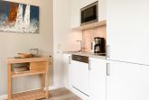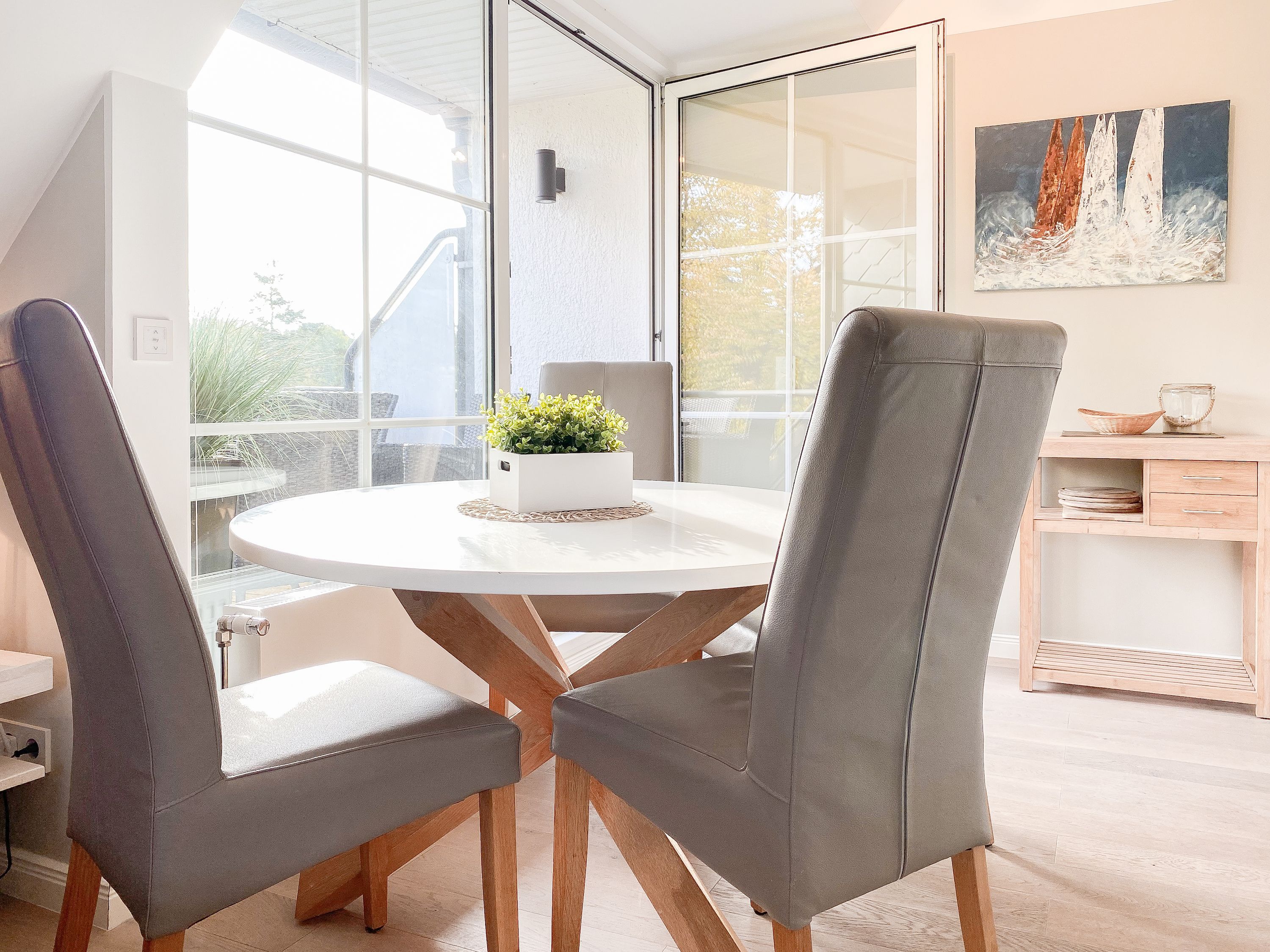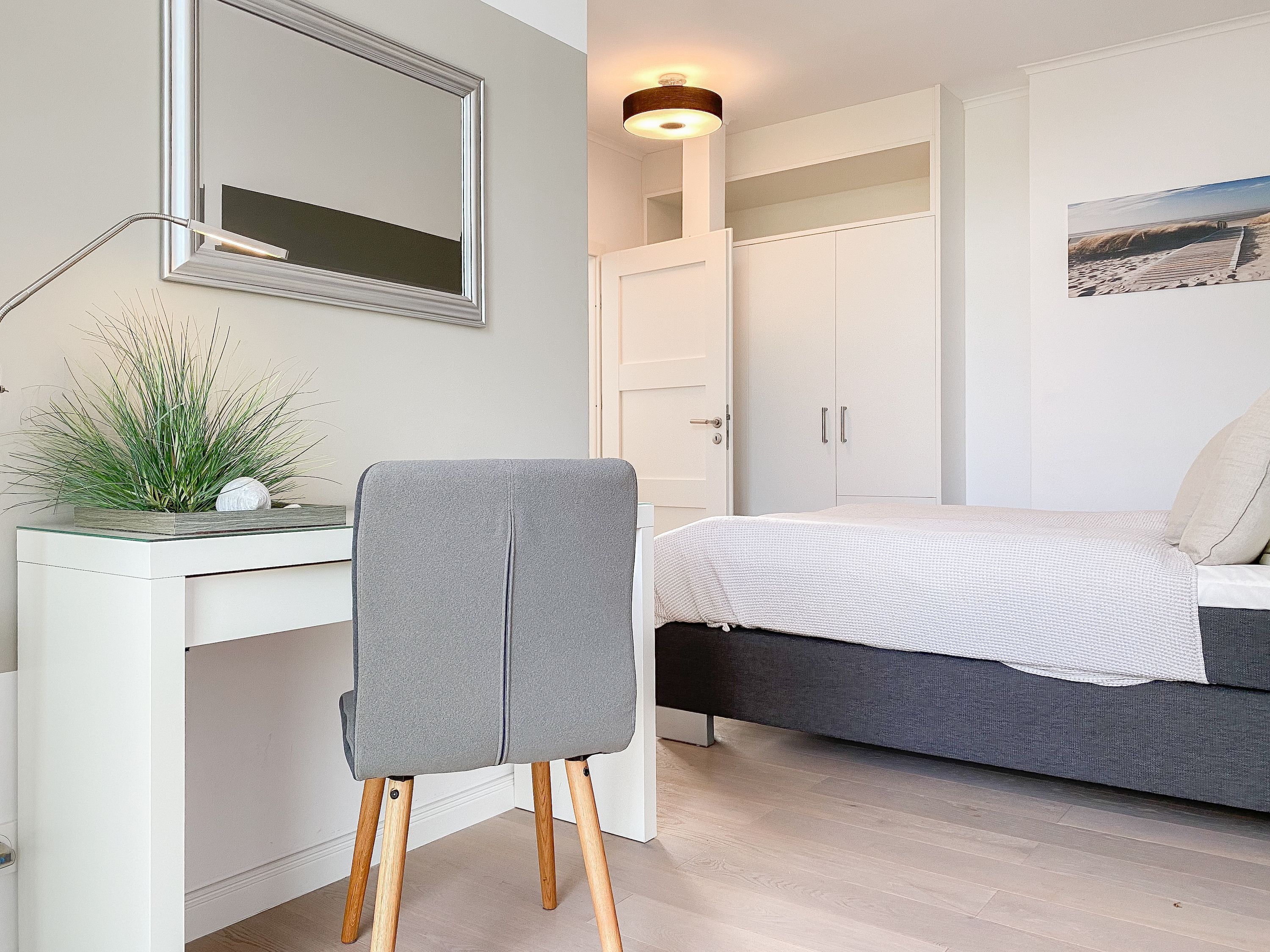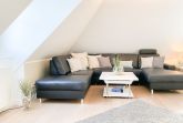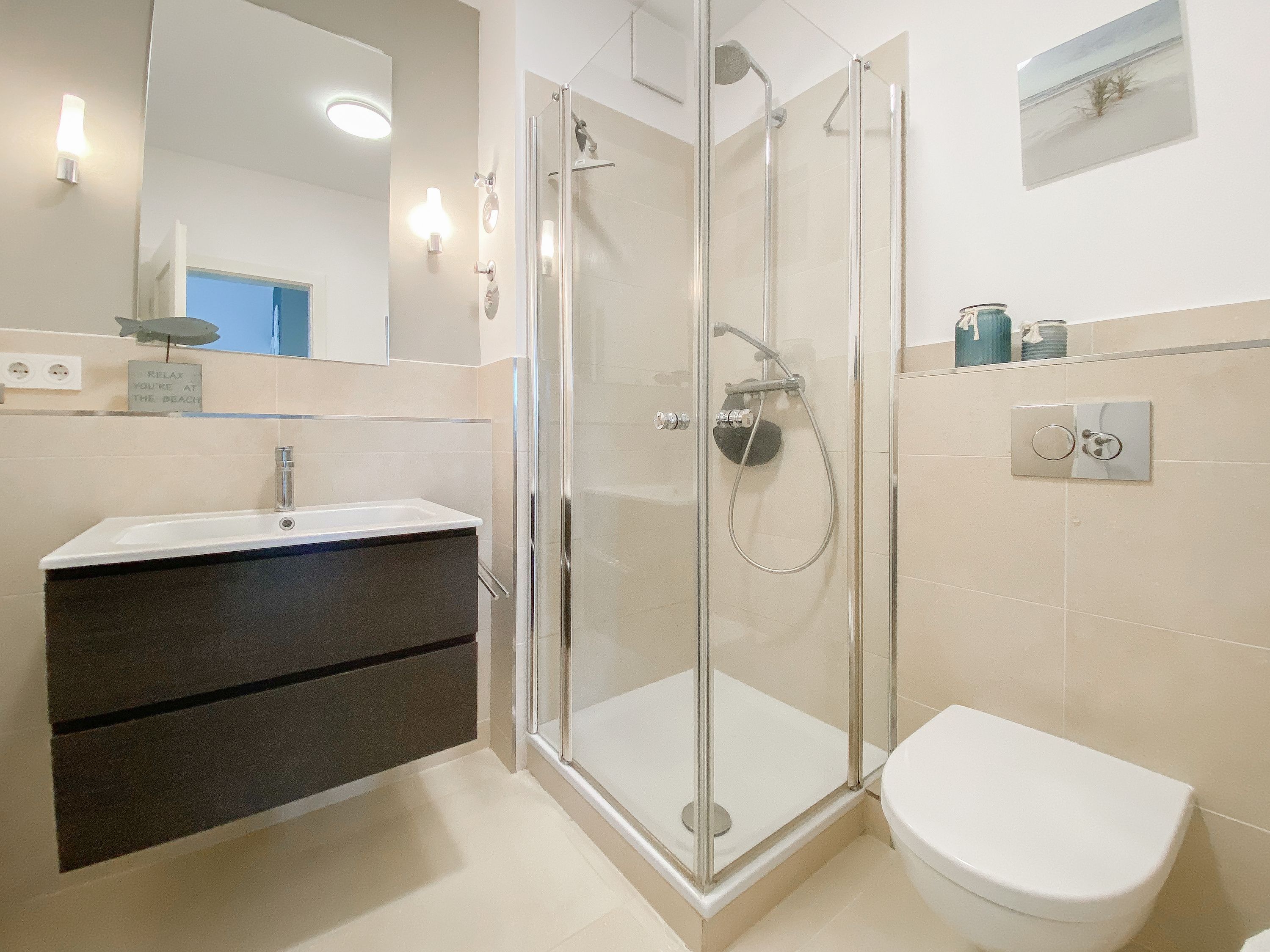 In der obersten Etage in der 4. Etage eines kernsanierten Hauses erstreckt sich die Wohnung über 2 Ebenen und bietet mit 2 separaten Schlafzimmern ausreichend Platz für 4 Personen. Echtholzböden und die geschmackvolle Einrichtung sorgen für eine Atmosphäre zum Wohlfühlen. Auf der unteren Ebene befindet sich ein gemütlicher Wohnbereich mit TV und Stereoanlage sowie ein Essbereich für 4 Personen und eine individuelle Küchenzeile mit Spülmaschine, Mikrowelle mit Grillfunktion und 2 Platten Cerankochfeld. Der vorgelagerte Sonnenbalkon ist mit einer elektrischen Markise ausgestattet. Ebenfalls auf dieser Ebene befinden sich ein modernes Duschbad und ein Schlafzimmer, ausgestattet mit einem Boxspringbett (160x200), TV und Verdunkelungsvorhängen. Das zweite Schlafzimmer erreichen Sie über eine Treppe vom Flurbereich. Es verfügt über ein Doppelbett (180x200), TV und Verdunkelungsrollos. Vom Dachfenster hat man einen schönen Blick auf die Ostsee. WLAN steht selbstverständlich zur kostenlosen Nutzung zur Verfügung.