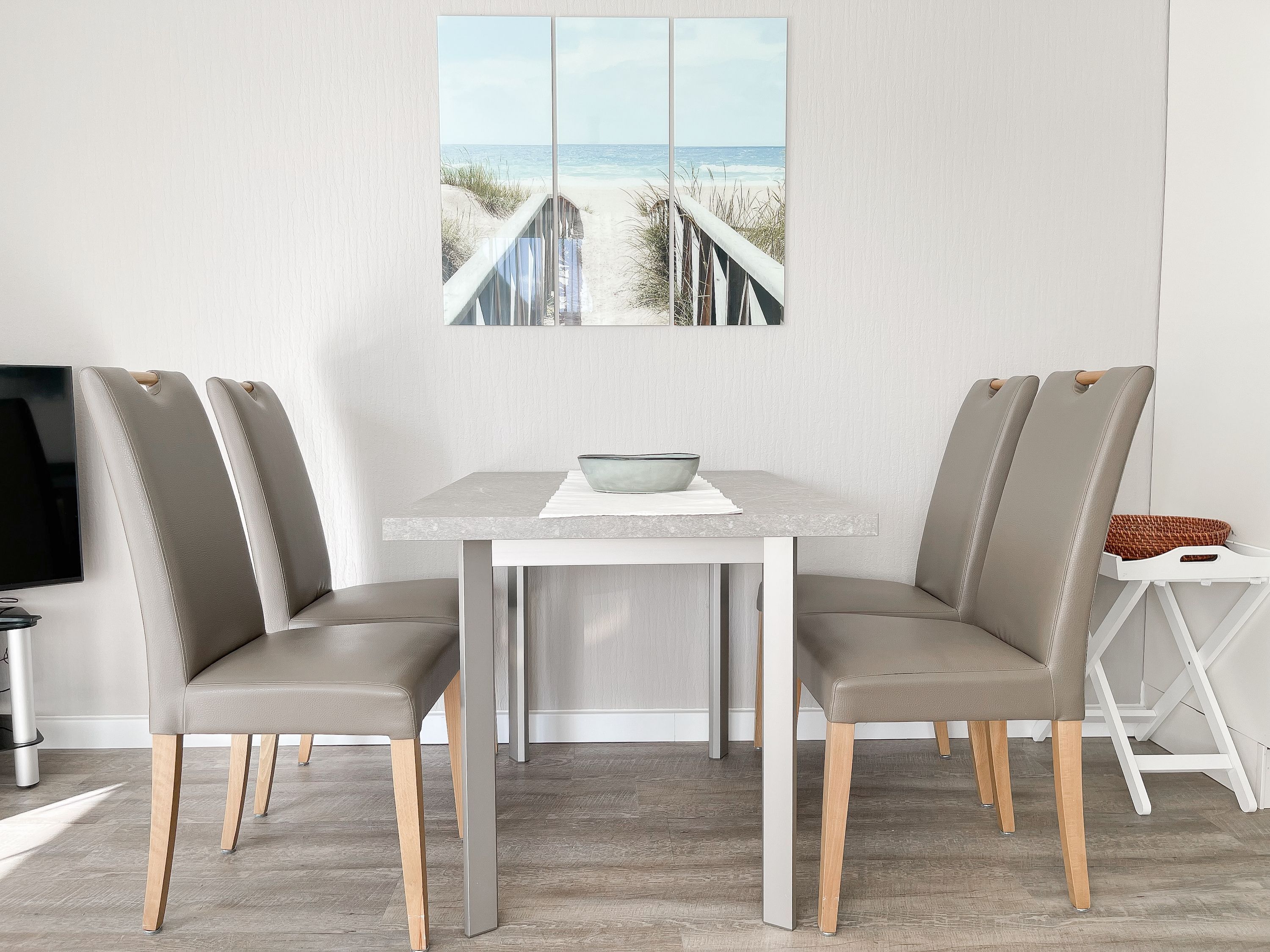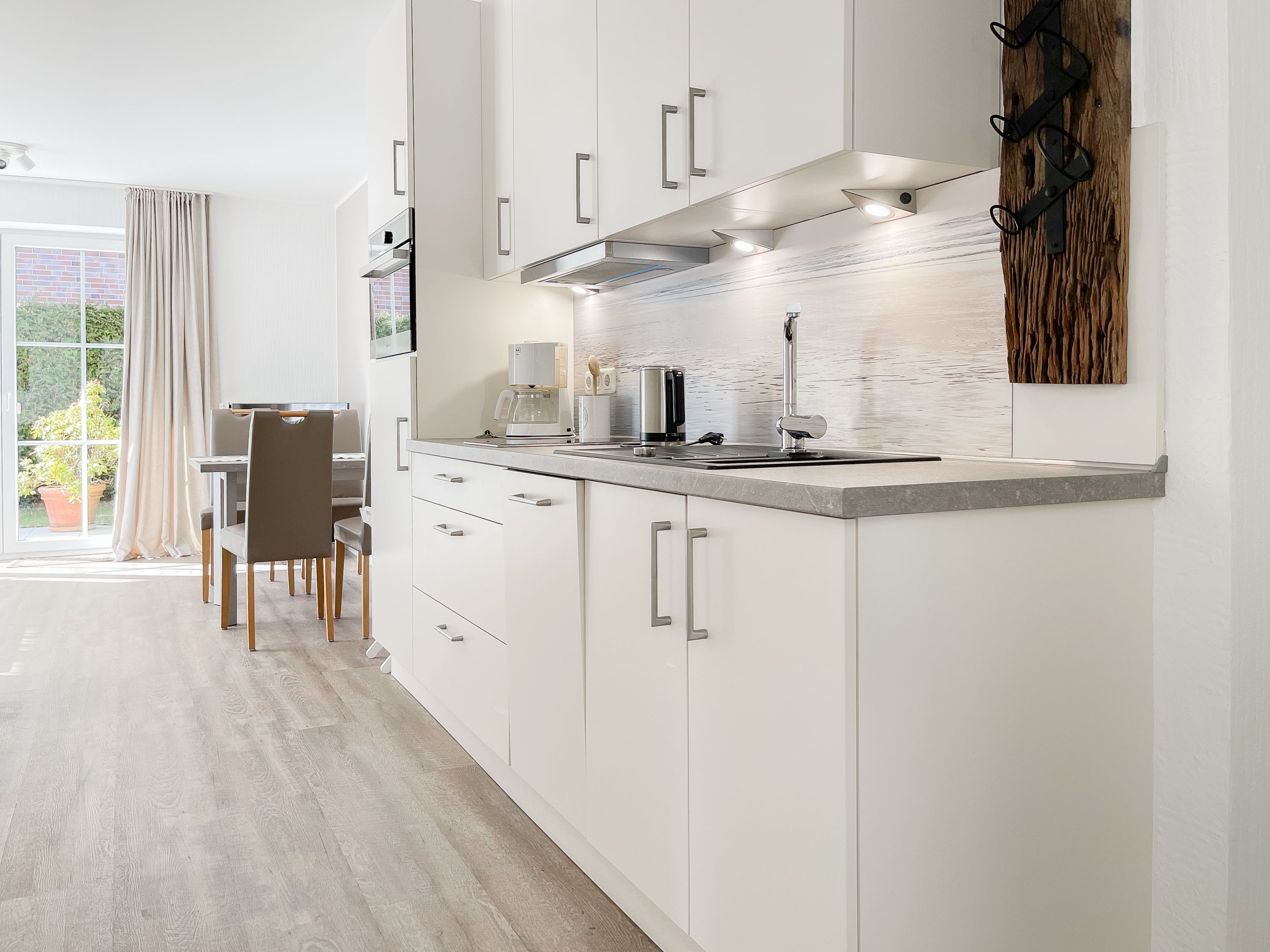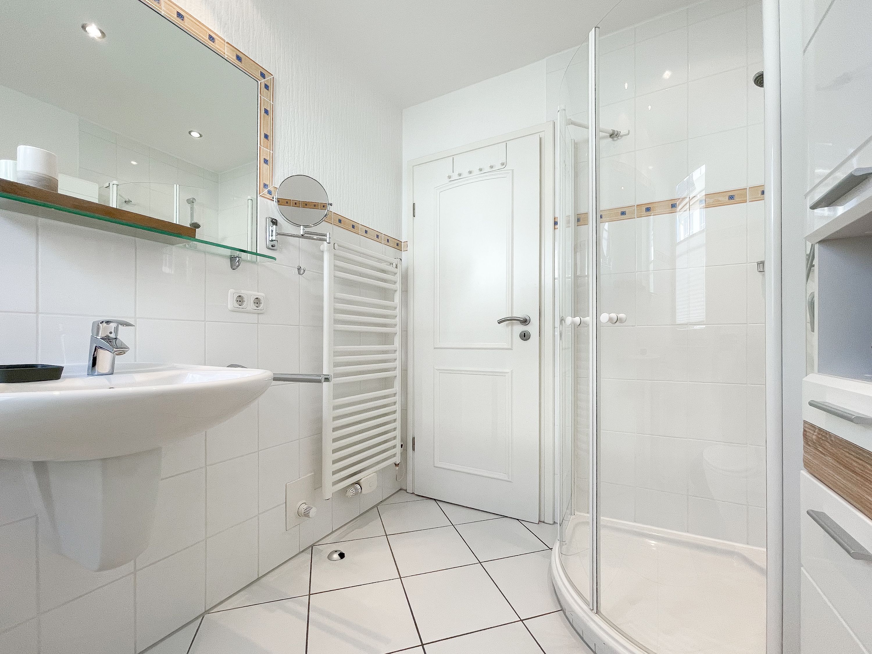 Es erwartet Sie eine gepflegte Ferienwohnung mit zwei separaten Schlafzimmern, die mit Doppelbetten (180x200 und 140x200) und Verdunkelungsvorhängen ausgestattet sind und ein helles Duschbad mit Fenster und Handtuchwärmer. Das Wohnzimmer ist komfortabel mit einer Couchgarnitur und einer integrierten Essecke für 4 Personen eingerichtet. TV, Hifi Anlage und kostenloses WLAN stehen zur Verfügung. Die offene Einbauküche ist gut ausgestattet. Dank großer Fensterflächen sind die Räumlichkeiten hell und freundlich. Als idealer Rückzugsort während eines entspannten Urlaubs eignet sich die großzügige, umlaufende Sonnenterrasse in Südausrichtung. Das Haus verfügt selbstverständlich über einen Aufzug. Zur Wohnung gehört ein Stellplatz auf dem Grundstück. Ein Fahrradständer ist vorhanden.