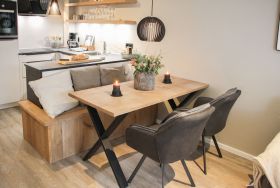 Die in 2022 renovierte Ferienwohnung befindet sich im Erdgeschoss im Haus Matito und ist bestens für 3 Personen geeignet, um einen schönen Urlaub zu verbringen. Warme Farben und die hochwertige Einrichtung mit viel Liebe zum Detail sorgen für eine wunderbare Atmosphäre zum wohl fühlen. Die neue Einbauküche ist bestens ausgestattet und der gemütliche Essbereich fügt sich perfekt ein. Das Sofa mit Schlaffunktion bietet eine Liegefläche von 140x200. TV, Radio und kostenloser Internetzugang über WLAN stehen zur Verfügung. Das separate Schlafzimmer ist mit einem Doppelbett (180x200) und einem Kleiderschrank mit ausreichend Staufläche, ausgestattet. Das neue Duschbad ist sehr hochwertig gestaltet. Die vorgelagerte, großzügig angelegte Sonnenterrasse erstreckt sich über die gesamte Breite der Wohnung und ist ein echtes Highlight. Ein herrlicher Platz, um die Sonne zu genießen und zu entspannen! Zur Wohnung gehört ein fester PKW Stellplatz auf dem Grundstück und ein Fahrradständer (außen) ist vorhanden.