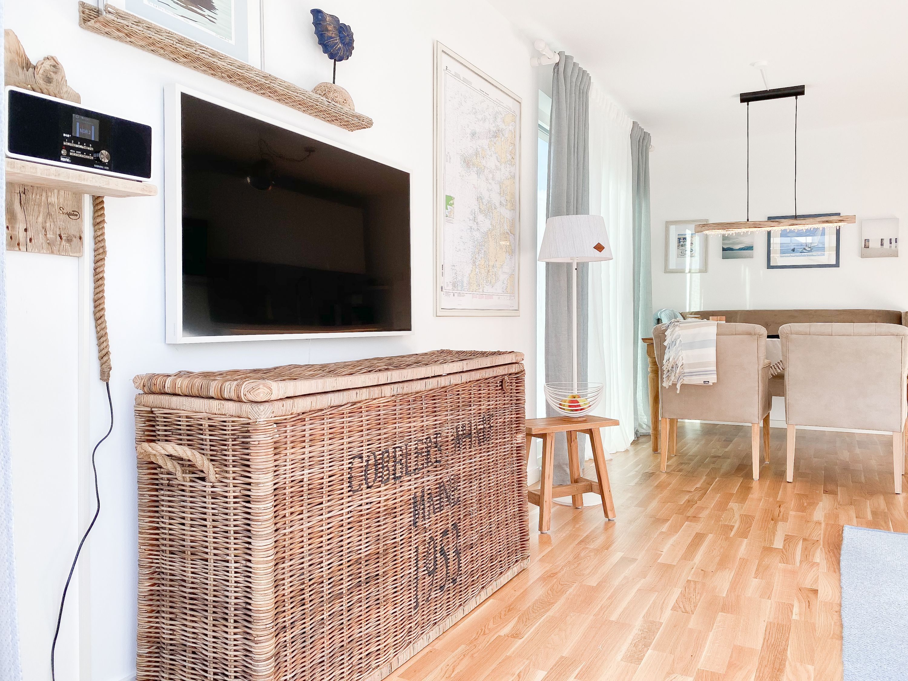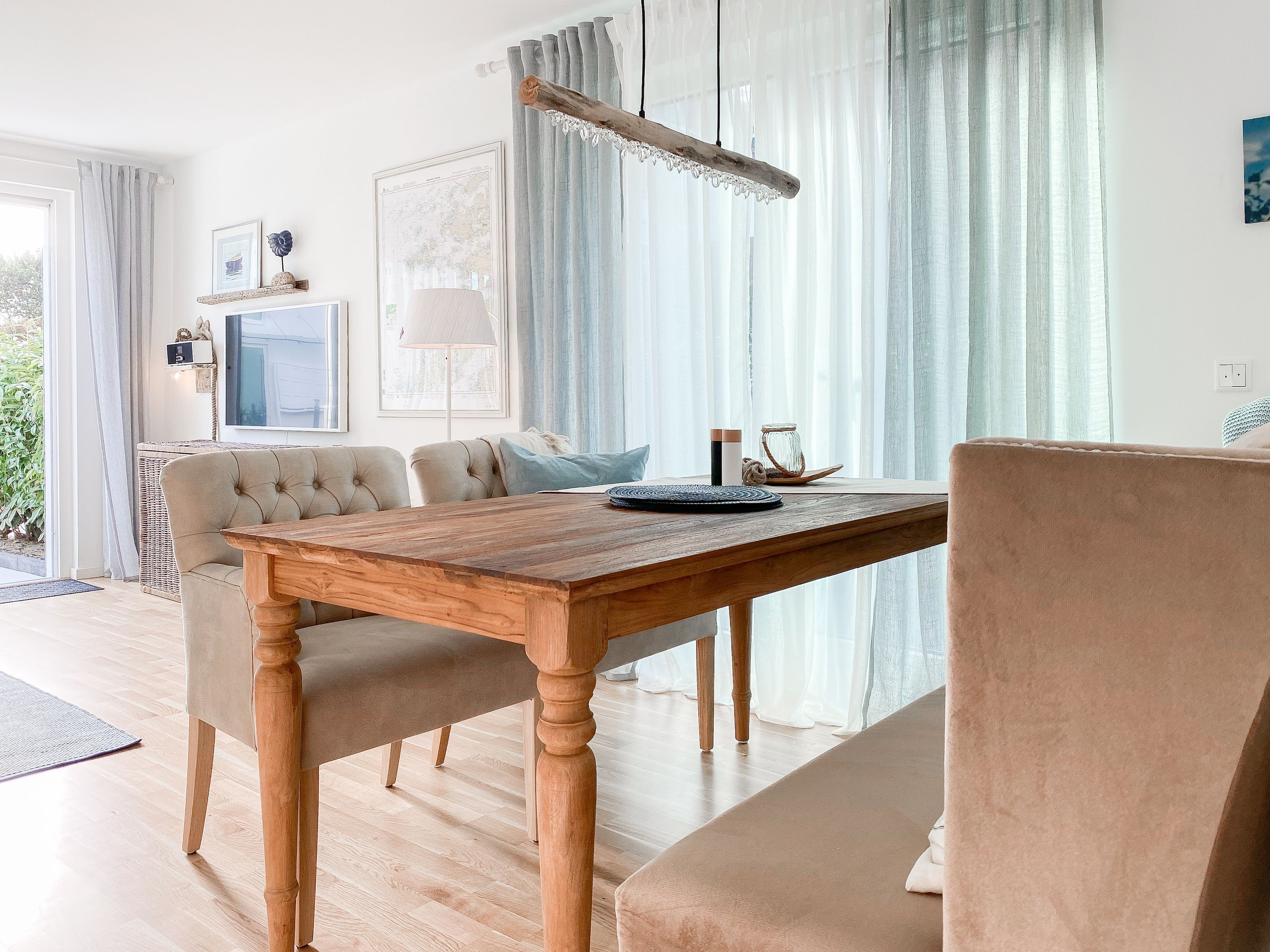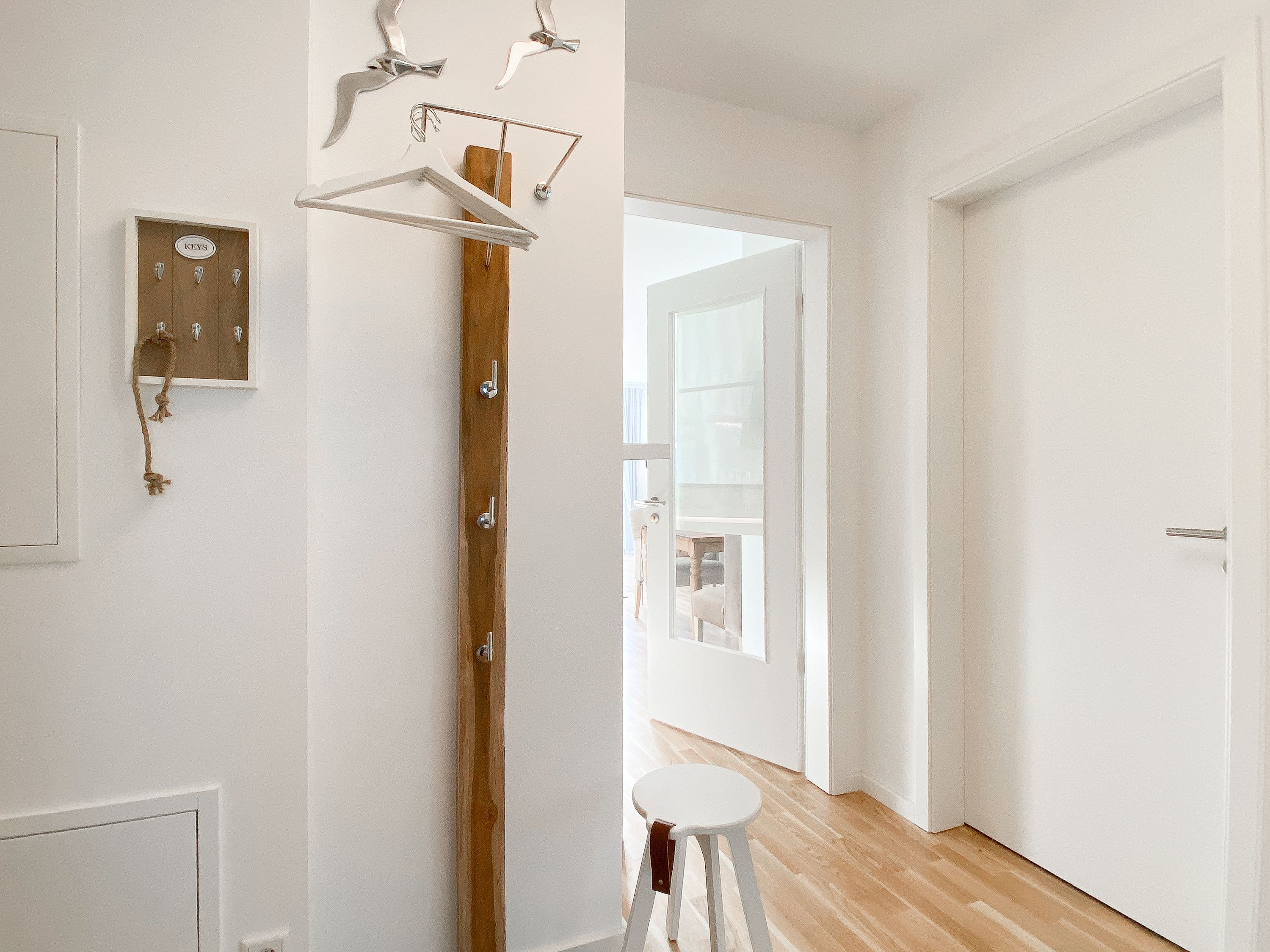 Das Kajütchen ist mit 2 separaten Schlafzimmern bestens für 3-4 Personen geeignet, um einen entspannten Ostseeurlaub zu verleben. Die hochwertige Inneneinrichtung mit vielen liebevollen Details im Beachstyle laden zum Wohlfühlen in Strandnähe ein. Es erwartet Sie ein lichtdurchfluteter Wohnbereich mit einem Kuschelsofa, TV, Radio und WLAN, ein gemütlicher Essbereich für 4 Personen und eine moderne Designküche in bester Ausstattung. Der Strandkorb und die Essgruppe auf der Sonnenterrasse garantieren entspannte Stunden an der frischen Seeluft. Eine elektrische Markise sorgt für entsprechende Beschattung. Das Hauptschlafzimmer ist mit einem komfortablen Boxspringbett (180x200), einem Kleiderschrank und TV ausgestattet. Das kleine Schlafzimmer verfügt über ein Doppelbett (160x200) mit zusätzlichem Stauraum im Fußteil; bitte beachten Sie, dass das Bett nur über das Fußende zu erreichen ist. Das Bullaugenfenster ist mit Verdunkelungslamellen versehen. Alle weiteren bodentiefen Fensterflächen sind mit elektrischen Außenjalousien ausgestattet. Das Duschbad ist hochwertig und modern. Ein Bullauge und ein Handtuchwärmer sorgen für zusätzlichen Komfort.