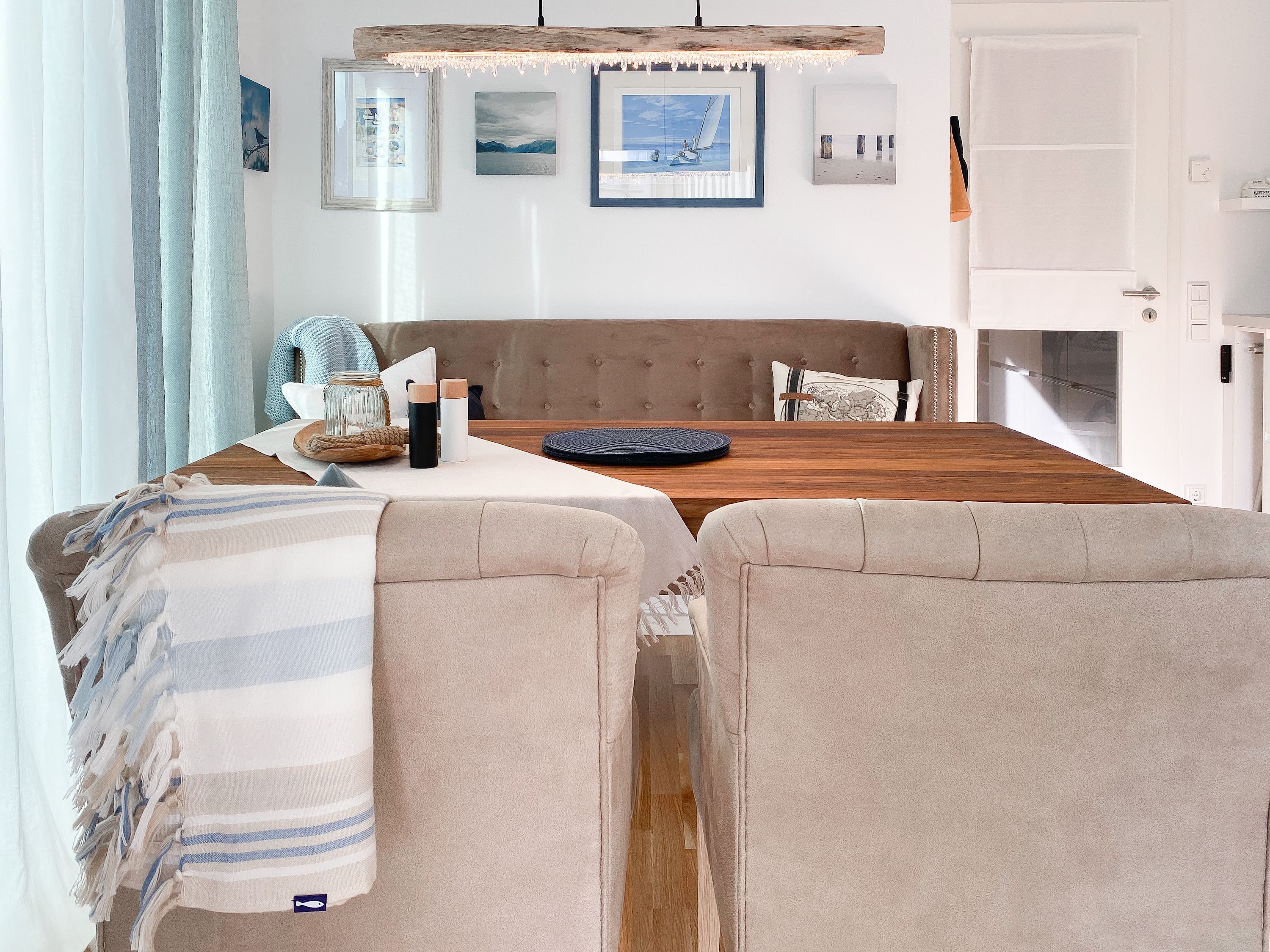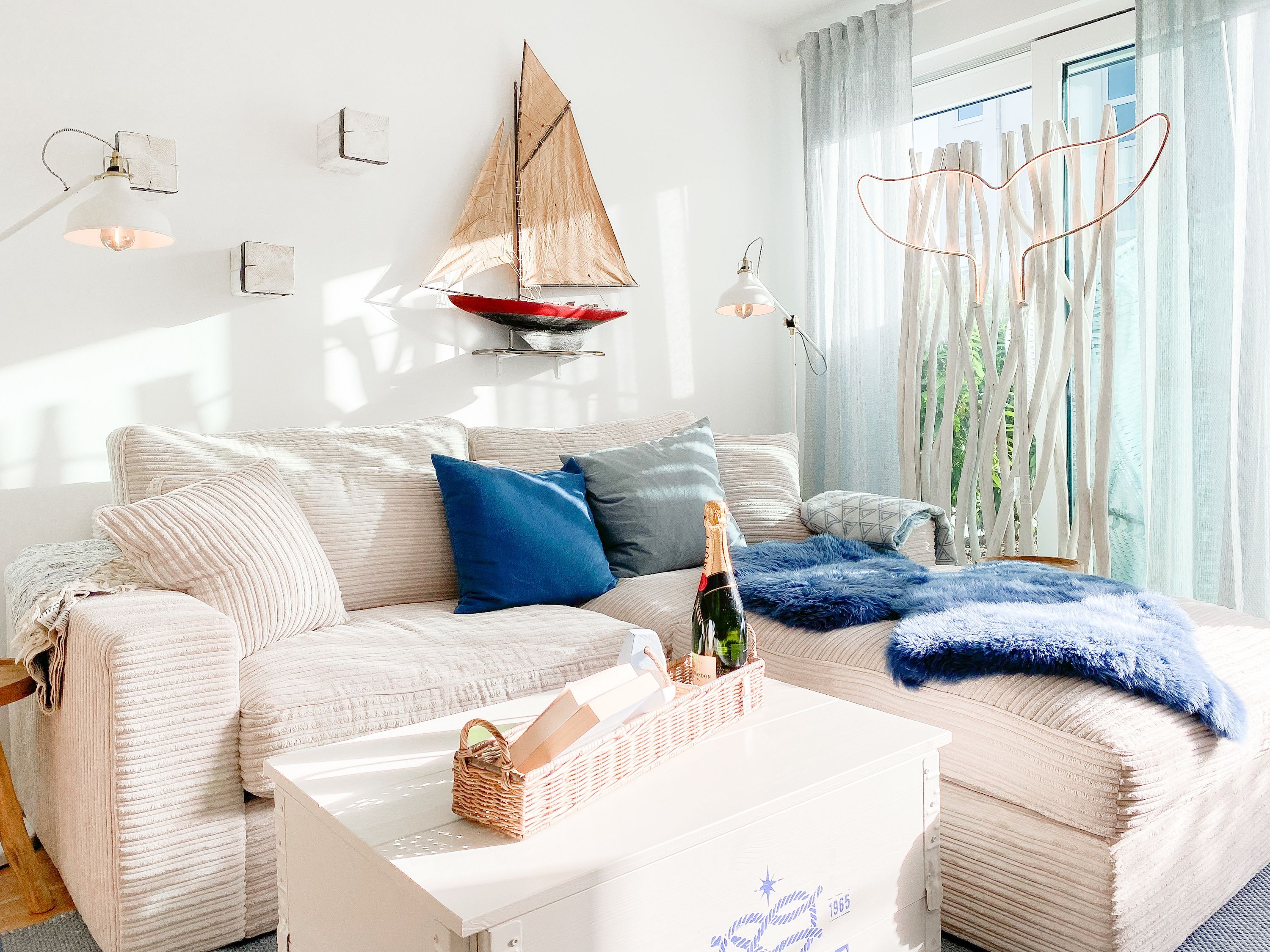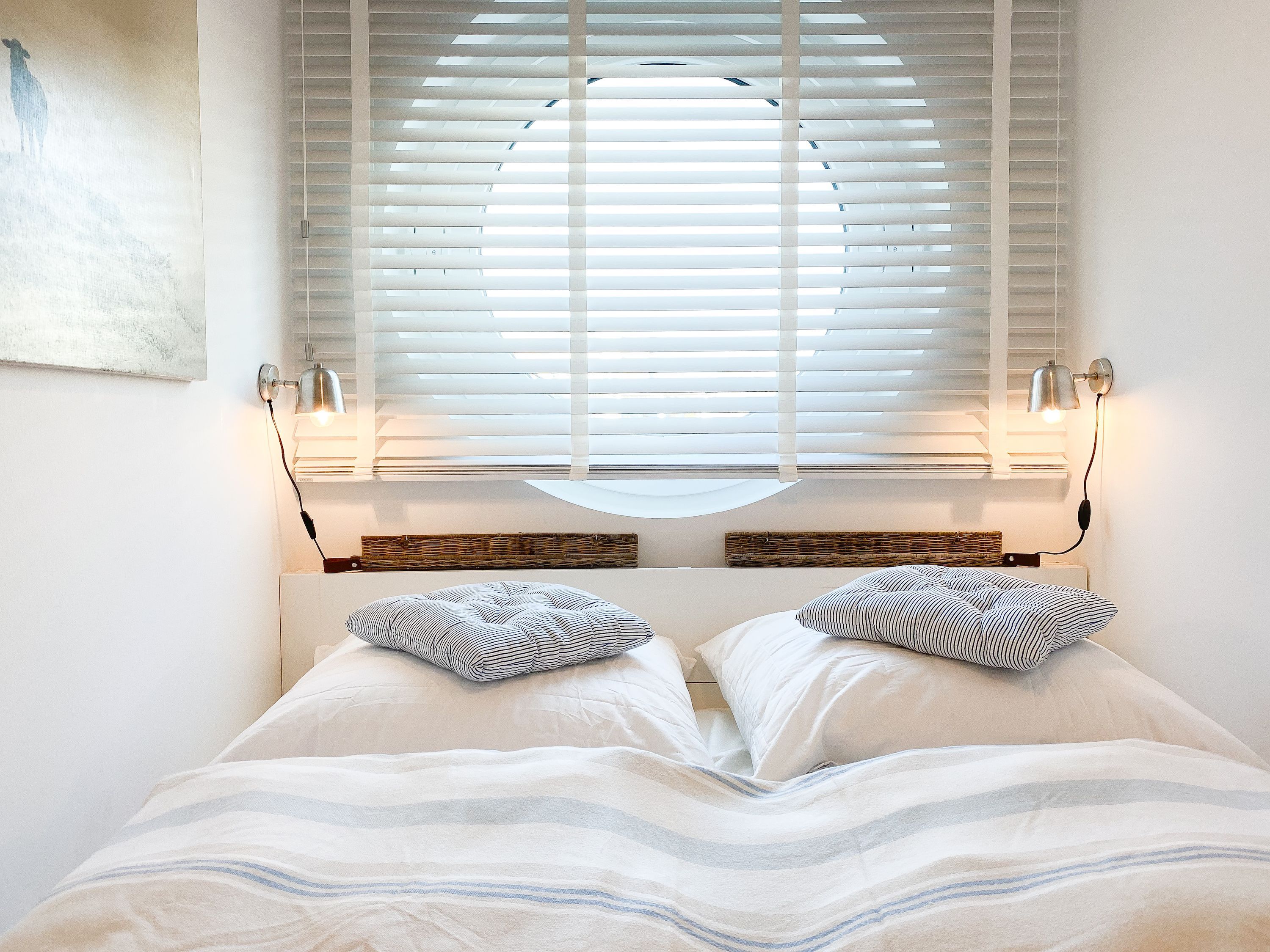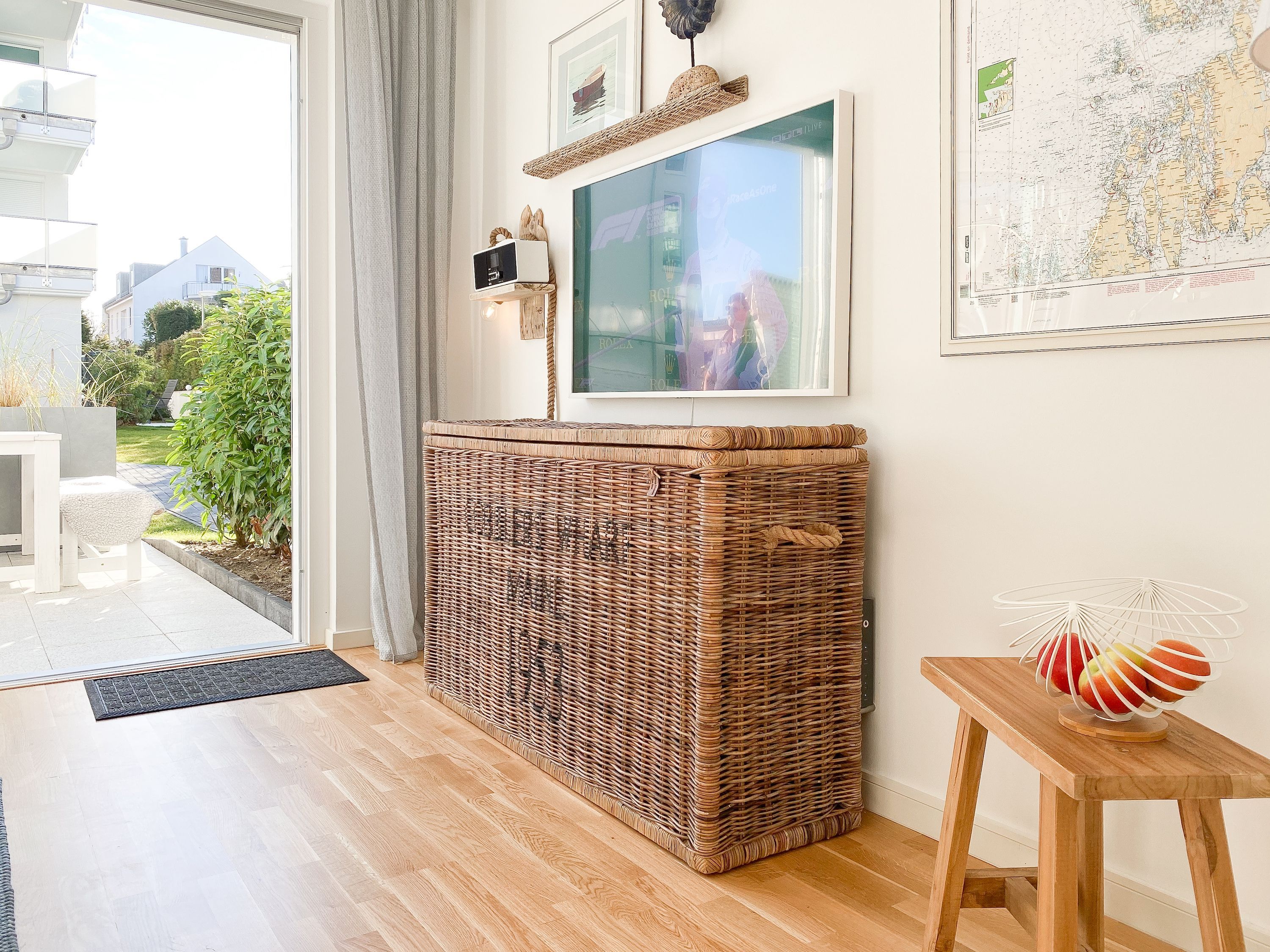 Das Kajütchen ist mit 2 separaten Schlafzimmern bestens für 3-4 Personen geeignet, um einen entspannten Ostseeurlaub zu verleben. Die hochwertige Inneneinrichtung mit vielen liebevollen Details im Beachstyle laden zum Wohlfühlen in Strandnähe ein. Es erwartet Sie ein lichtdurchfluteter Wohnbereich mit einem Kuschelsofa, TV, Radio und WLAN, ein gemütlicher Essbereich für 4 Personen und eine moderne Designküche in bester Ausstattung. Der Strandkorb und die Essgruppe auf der Sonnenterrasse garantieren entspannte Stunden an der frischen Seeluft. Eine elektrische Markise sorgt für entsprechende Beschattung. Das Hauptschlafzimmer ist mit einem komfortablen Boxspringbett (180x200), einem Kleiderschrank und TV ausgestattet. Das kleine Schlafzimmer verfügt über ein Doppelbett (160x200) mit zusätzlichem Stauraum im Fußteil; bitte beachten Sie, dass das Bett nur über das Fußende zu erreichen ist. Das Bullaugenfenster ist mit Verdunkelungslamellen versehen. Alle weiteren bodentiefen Fensterflächen sind mit elektrischen Außenjalousien ausgestattet. Das Duschbad ist hochwertig und modern. Ein Bullauge und ein Handtuchwärmer sorgen für zusätzlichen Komfort.