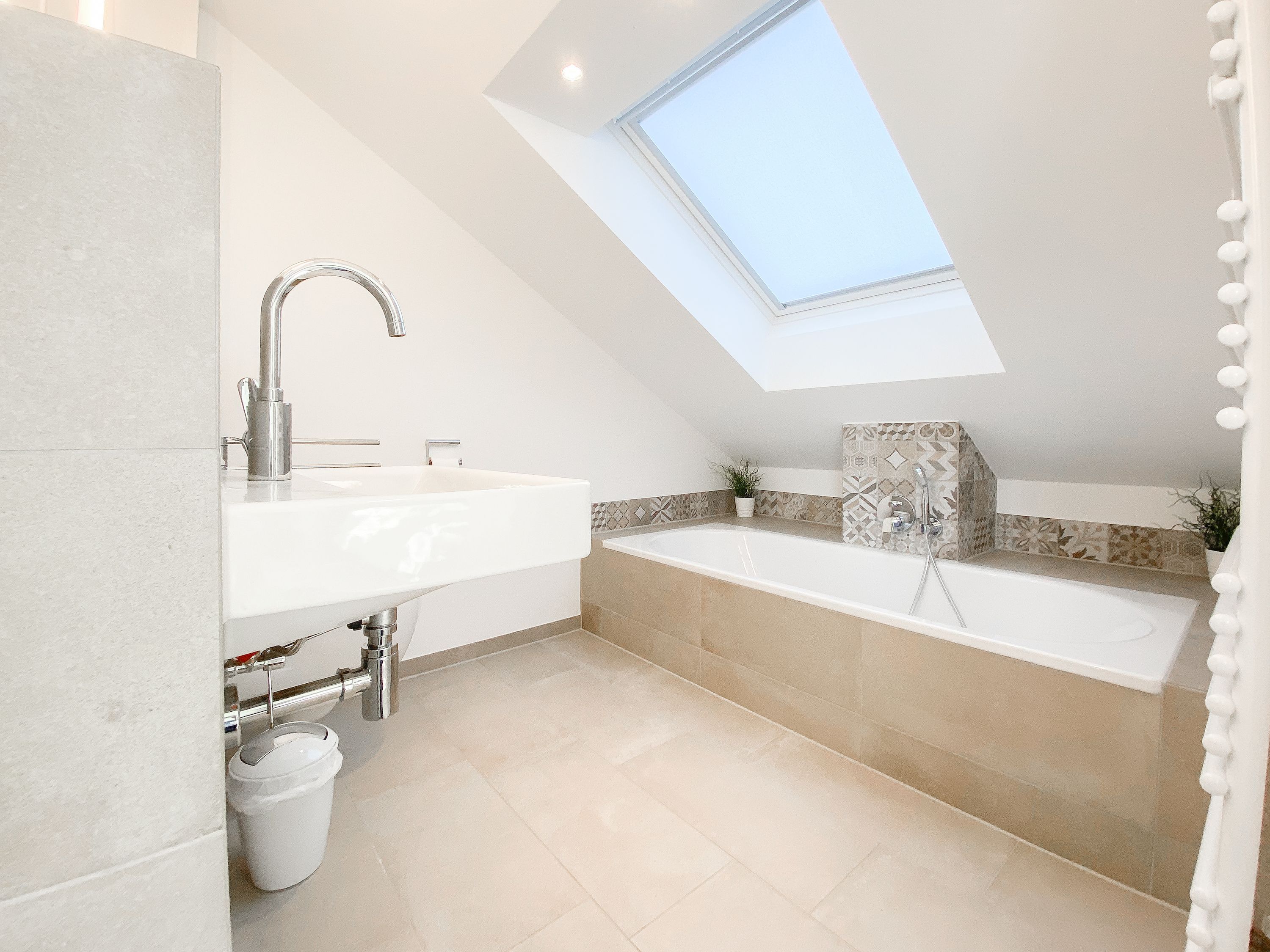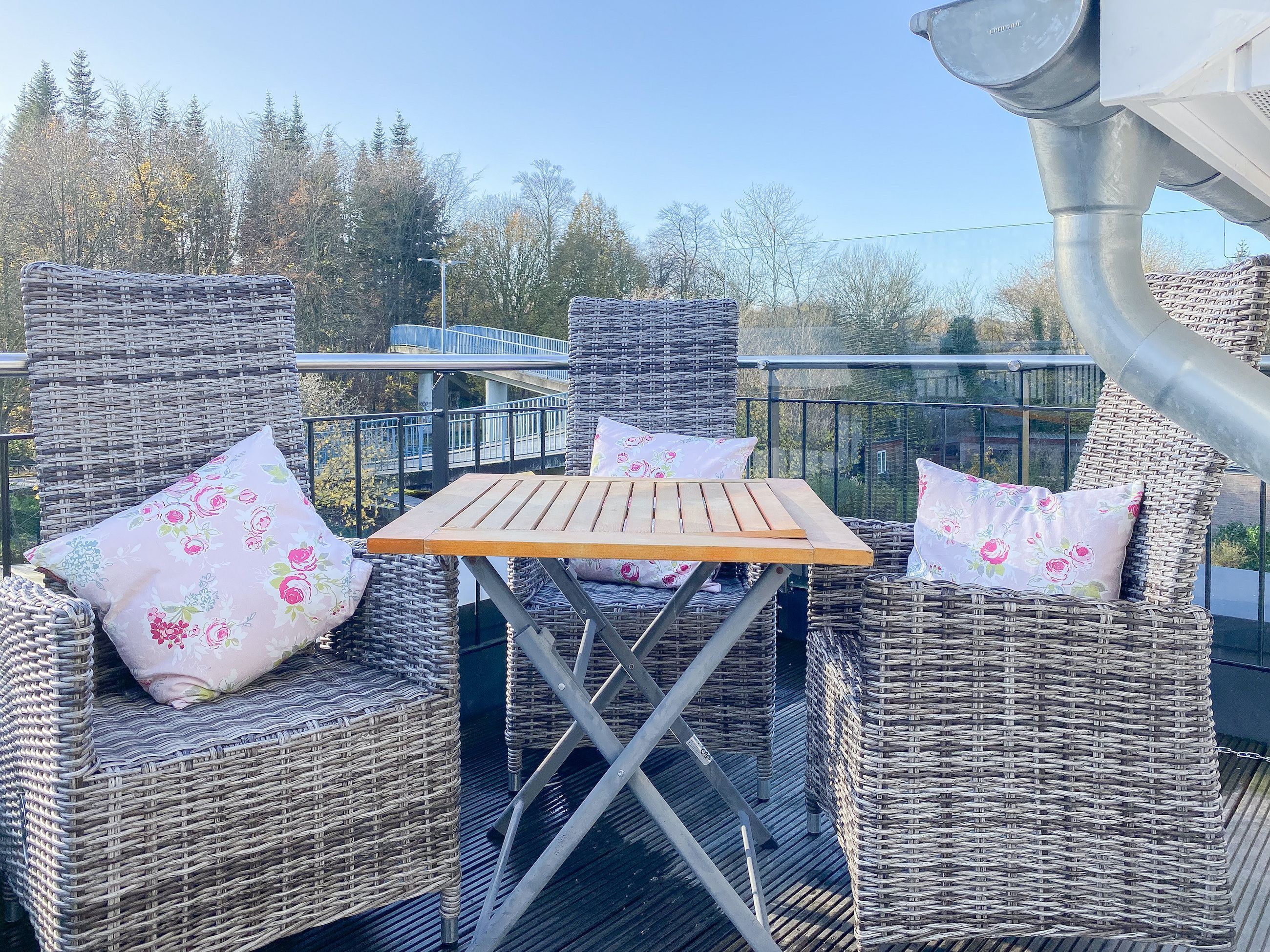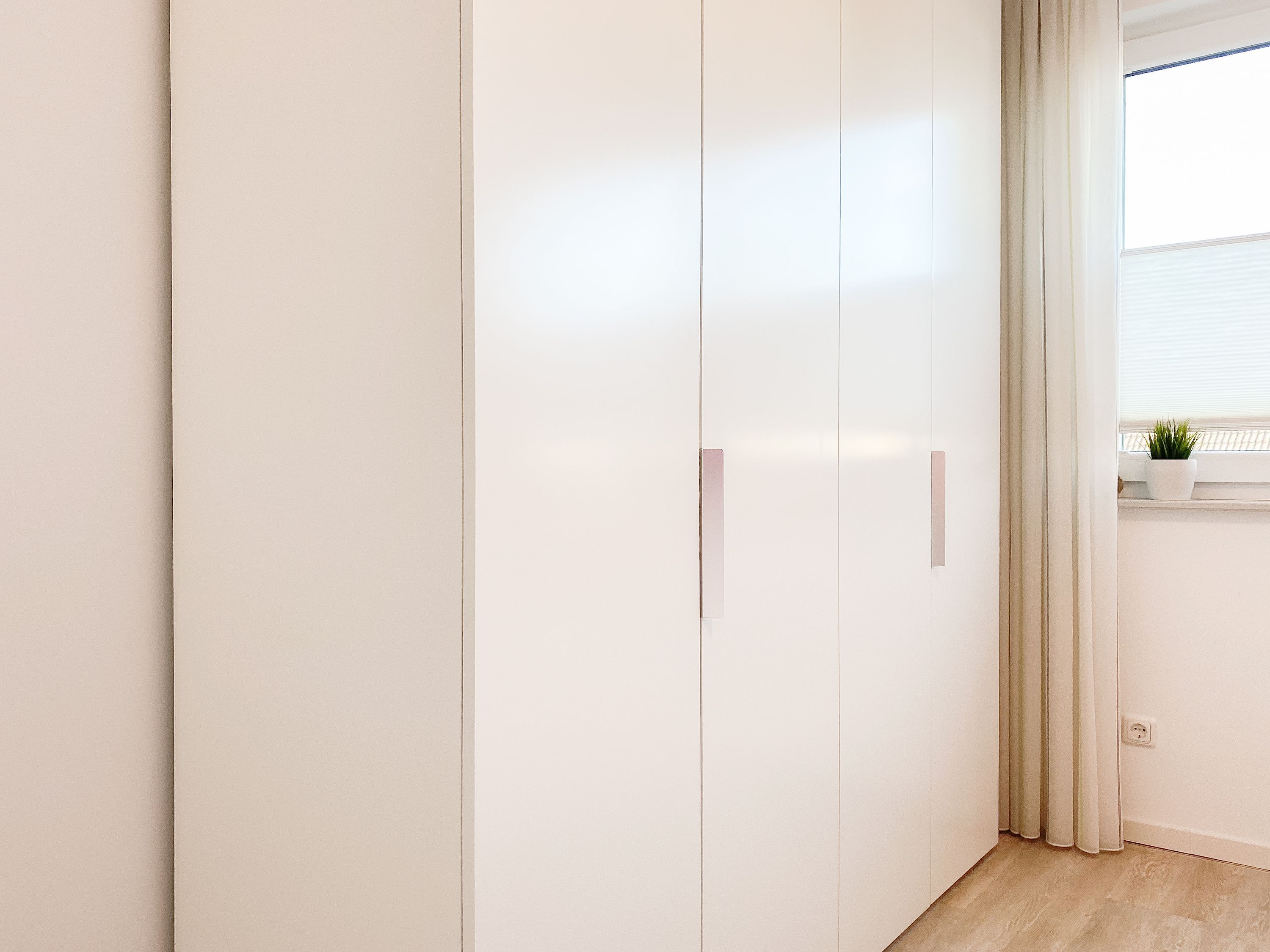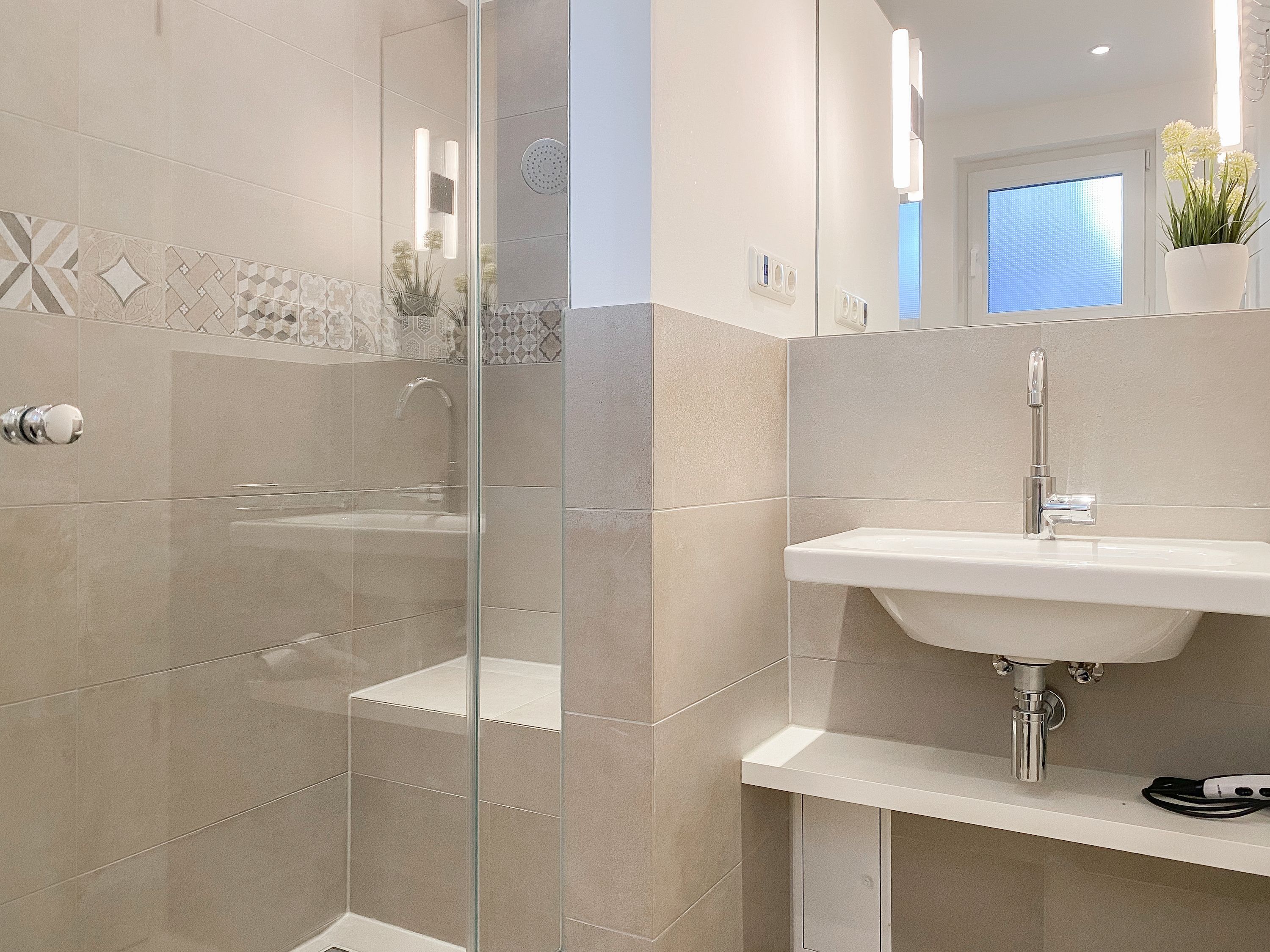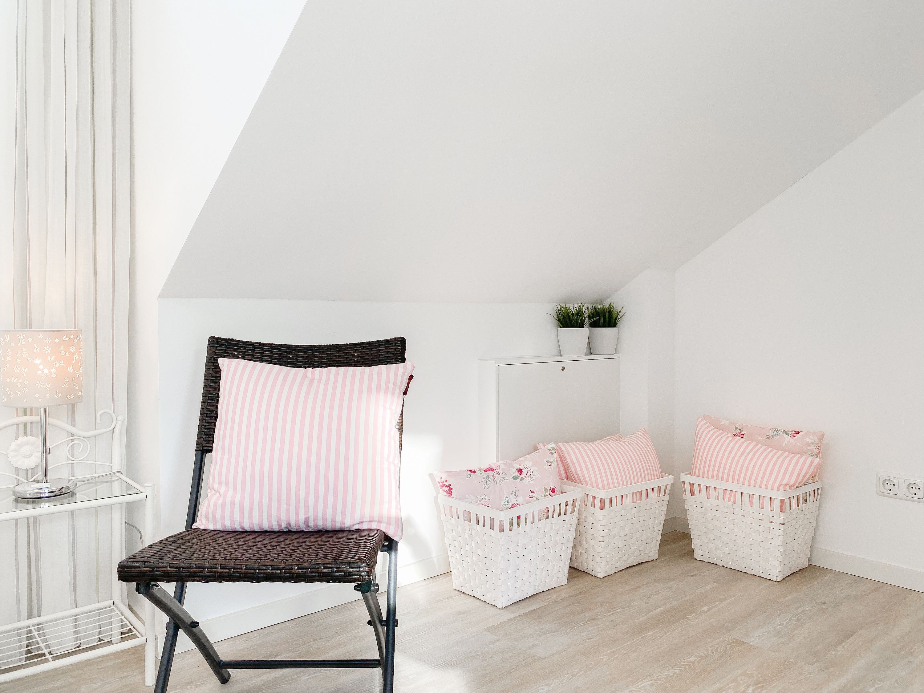 Die lichtdurchflutete Maisonette mit zwei separaten Schlafzimmern, zwei Bädern und zwei Balkonen erstreckt sich über zwei Wohnebenen. Fröhliche Farben und ein jugendlich- modernes Innendesign sorgen für gute Laune. In der unteren Etage erwartet Sie ein offener Wohn-Essbereich, an den sich eine voll ausgestattete moderne Küche anschließt. Der möblierte Balkon in Südwest Lage lädt zu Mahlzeiten an der frischen Seeluft ein. Hier können Sie gemütlich die Sonnenstunden am Nachmittag und späten Abend genießen. Das Schlafzimmer ist mit einem hochwertigen und großen Doppelbett (200 x 200) ausgestattet und verspricht erholsame Stunden nach einem ereignisreichen Urlaubstag. Gegenüber befindet sich ein Tageslichtbad mit komfortabler Walk In Dusche. Über eine Holztreppe gelangen Sie zur oberen Wohnebene. Das zweite Schlafzimmer ist ebenfalls mit einem Doppelbett (160 x 200) eingerichtet und verfügt über einen Sitzbereich mit TV. Ein modernes, großzügiges Bad mit Badewanne schließt sich direkt an das Schlafzimmer an und bietet Ihnen entsprechende Privatsphäre. Das Highlight ist der eigene Zugang zur hochwertig möblierten Dachterrasse, ausgestattet mit bequemen Rattansesseln, die in eine Liegeposition verstellbar sind. In jedem Raum ist ein Fenster mit einem Fliegengitter ausgestattet, sodass mückenfreies Lüften gewährleistet ist. Auf Wunsch können alle Wohnräume mit elektrischen Außenjalousien verdunkelt werden. Eine zusätzliche, zentrale Steuerung befindet sich im Eingangsbereich. Die Temperatur der Fußbodenheizung lässt sich für jeden Raum separat regulieren. Zwei TV, ein Radio und kostenloses WLAN gehören zum Entertainment-Paket. Ein Fahrstuhl ist selbstverständlich vorhanden.