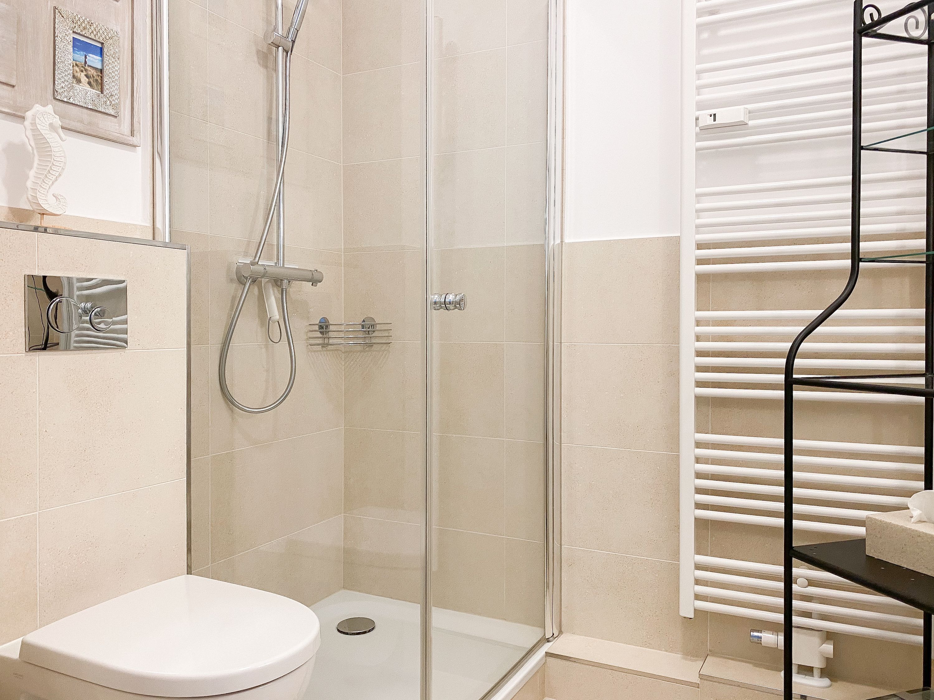Klein aber fein, besticht das Studio mit vielen liebevollen Wohndetails und lädt 2 Personen zum Wohlfühlen in Strandnähe ein. Es erwartet Sie ein heller, freundlicher Wohnraum mit bodentiefen Fensterflächen, geschmackvoll gestaltet und hochwertig eingerichtet mit einem gemütlichen Sofa und TV. Highlight ist der vorgelagerte Balkon mit Nachmittagssonne und herrlichem Blick bis zur Ostsee. Der Schlafbereich ist optisch durch einen Raumteiler getrennt und mit 2 Einzelbetten als Doppelbett mit hochwertigen Tempur Matratzen und Verdunkelungsvorhängen ausgestattet. Der Essbereich ist als Bartisch mit 2 bequemen Barstühlen gestaltet und schließt direkt an die moderne Küchenzeile an. Das hochwertige Bad verfügt über eine Dusche, Waschtisch, WC und Handtuchwärmer. WLAN steht selbstverständlich zur kostenlosen Nutzung zur Verfügung. Ein fester Tiefgaragen Stellplatz gehört zu der Wohnung. Fahrradkeller (eine Platzgarantie für Ihre Fahrräder besteht nicht) sowie Waschmaschine und Trockner (Münzgeräte) zur gemeinschaftlichen Nutzung sind vorhanden.