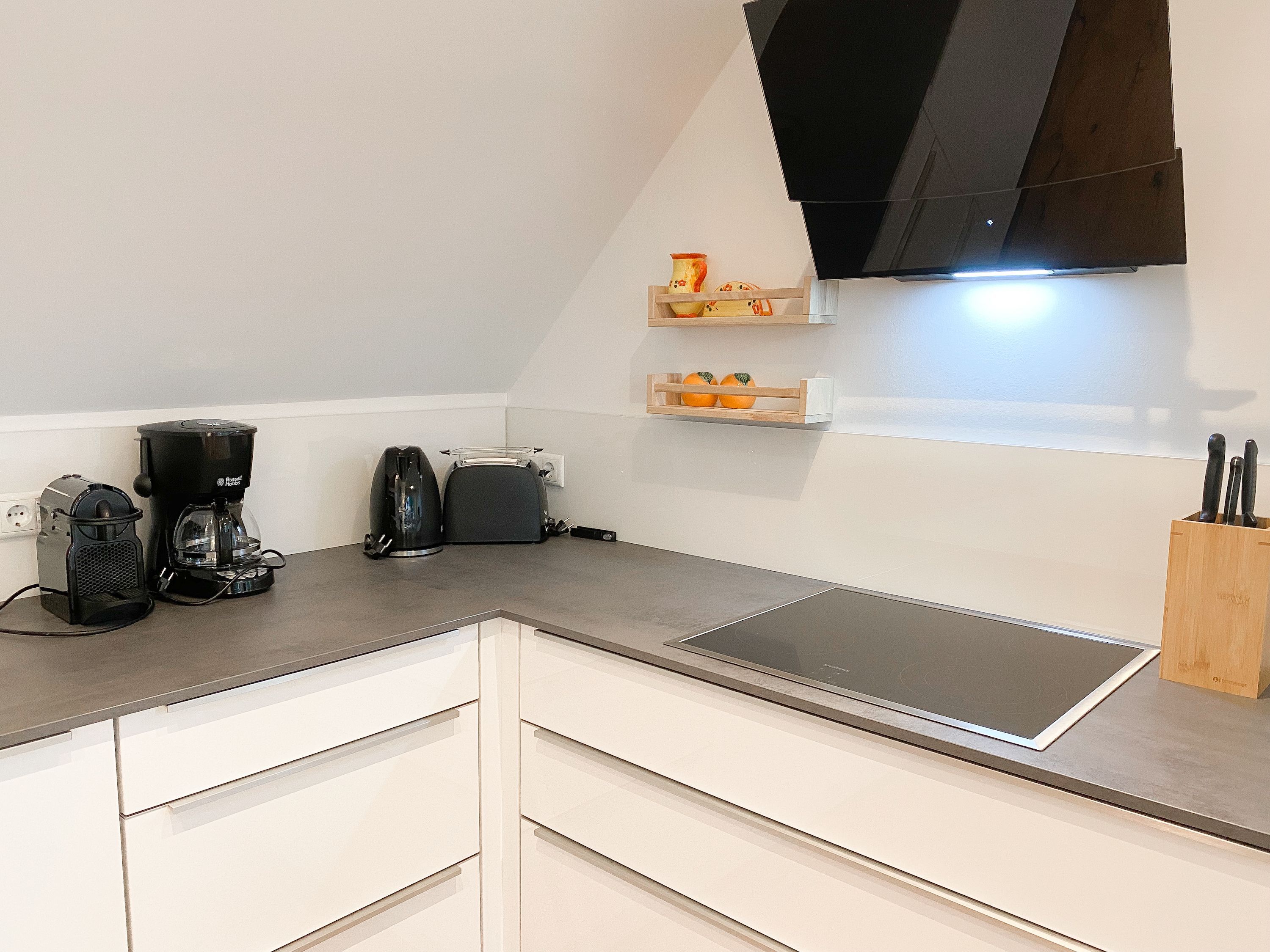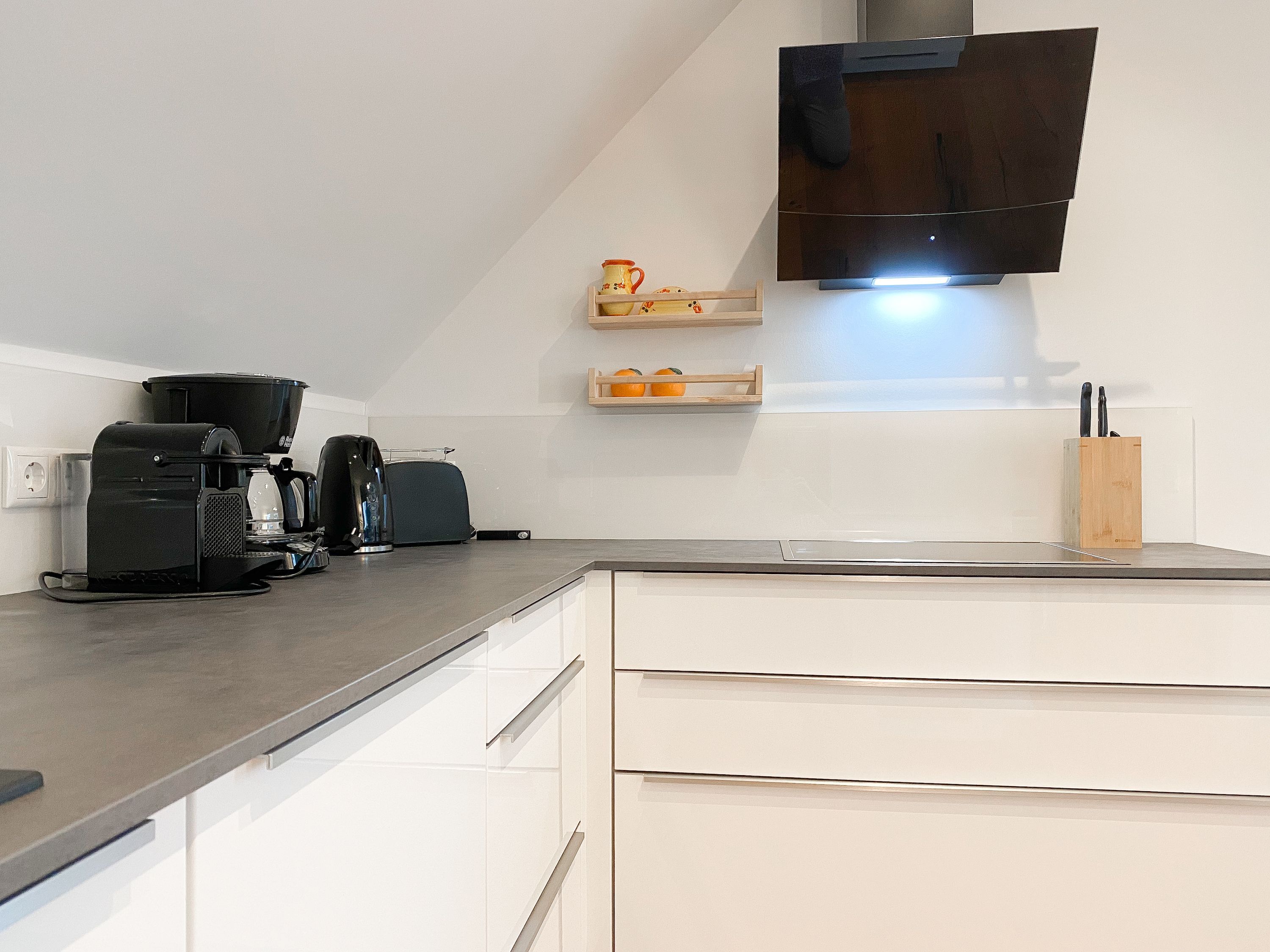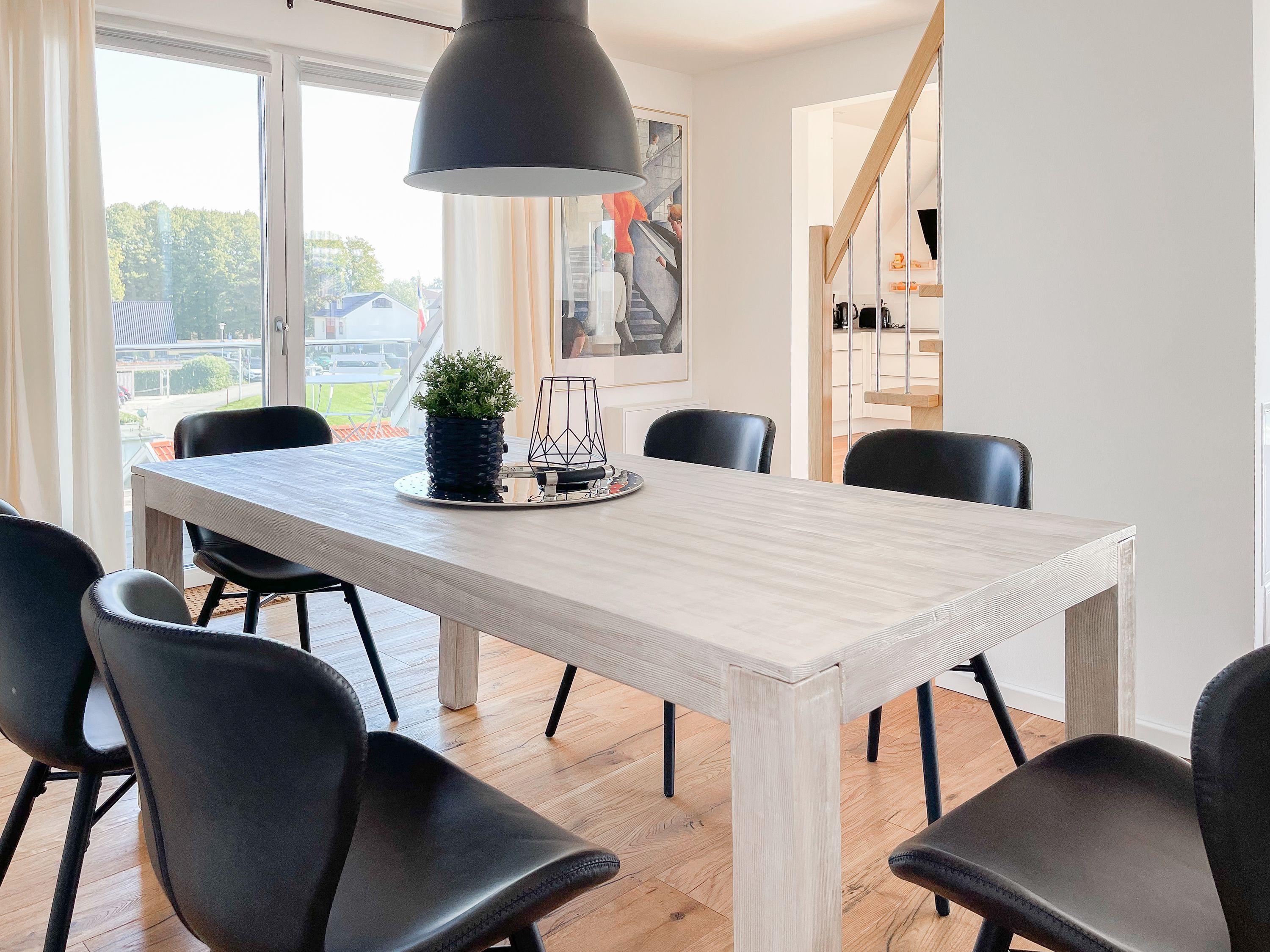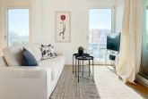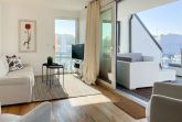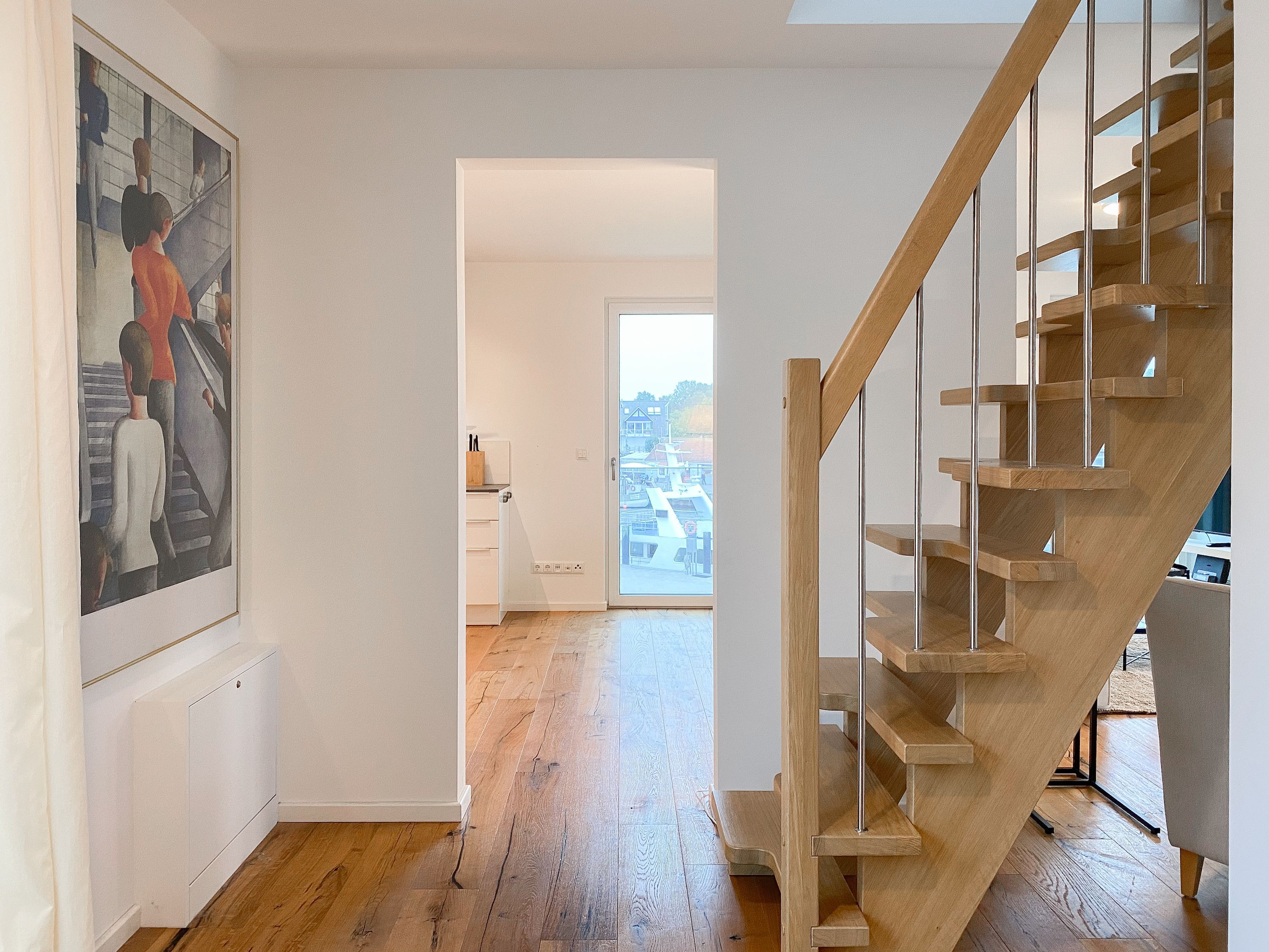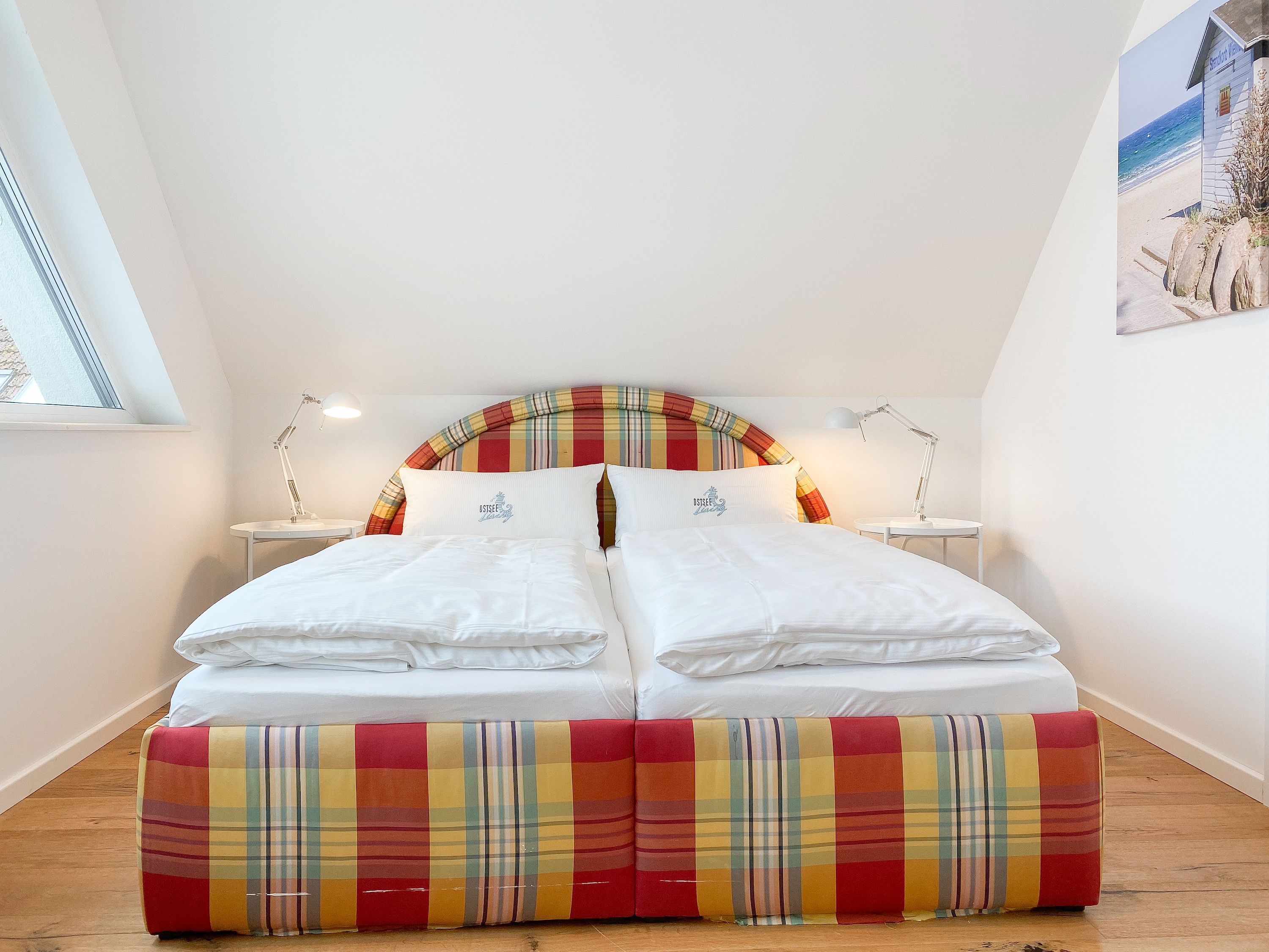 Das einzigartige Penthouse erstreckt sich über 2 Ebenen und liegt im 2. Obergeschoss eines modernen Neubaus mit nur 3 Wohneinheiten. Auf 130 qm Wohnfläche mit 2 Schlafzimmern, 2 separaten Bädern und 2 Wohnbereichen können 4 Personen einen entspannten Urlaub verleben. Auf der unteren Wohnebene erwartet Sie ein Schlafzimmer mit Doppelbett, Verdunkelungsplissees und Ostseeblick, ein Duschbad sowie ein offener Wohn- Essbereich, TV und eine integrierte moderne Einbauküche. Bodentiefe Fensterelemente bieten einem phantastischen Ausblick auf die Ostsee und die ein- und ausfahrenden Schiffe vom Fischkutter bis zur Motoryacht. Echtholzböden und Fußbodenheizung sorgen für ein angenehmes Raumklima. Die sehr großzügig angelegte Dachterrasse vor dem Wohnbereich ist mit einer Gartenlounge und einem Essbereich ausgestattet. Genießen Sie viele Sonnenstunden, die einzigartige Hafenatmosphäre und beeindruckende Sonnenuntergänge bei einem Glas Wein. Vor dem Essbereich befindet sich eine weitere Dachterrasse mit Bistrotisch und 2 Stühlen, um die ersten Sonnenstrahlen mit Ostseeblick bei einem Morgenkaffee zu genießen. Die zweite Wohnebene ist über eine schmale recht steile Raumspartreppe zu erreichen. Hier erwartet Sie ein weiterer Wohnbereich mit traumhaftem Blick auf den Hafen und das zweite Schlafzimmer mit TV, Ostseeblick und Verdunkelungsplissees, ebenfalls mit Doppelbett (160x200) sowie ein weiteres Duschbad.