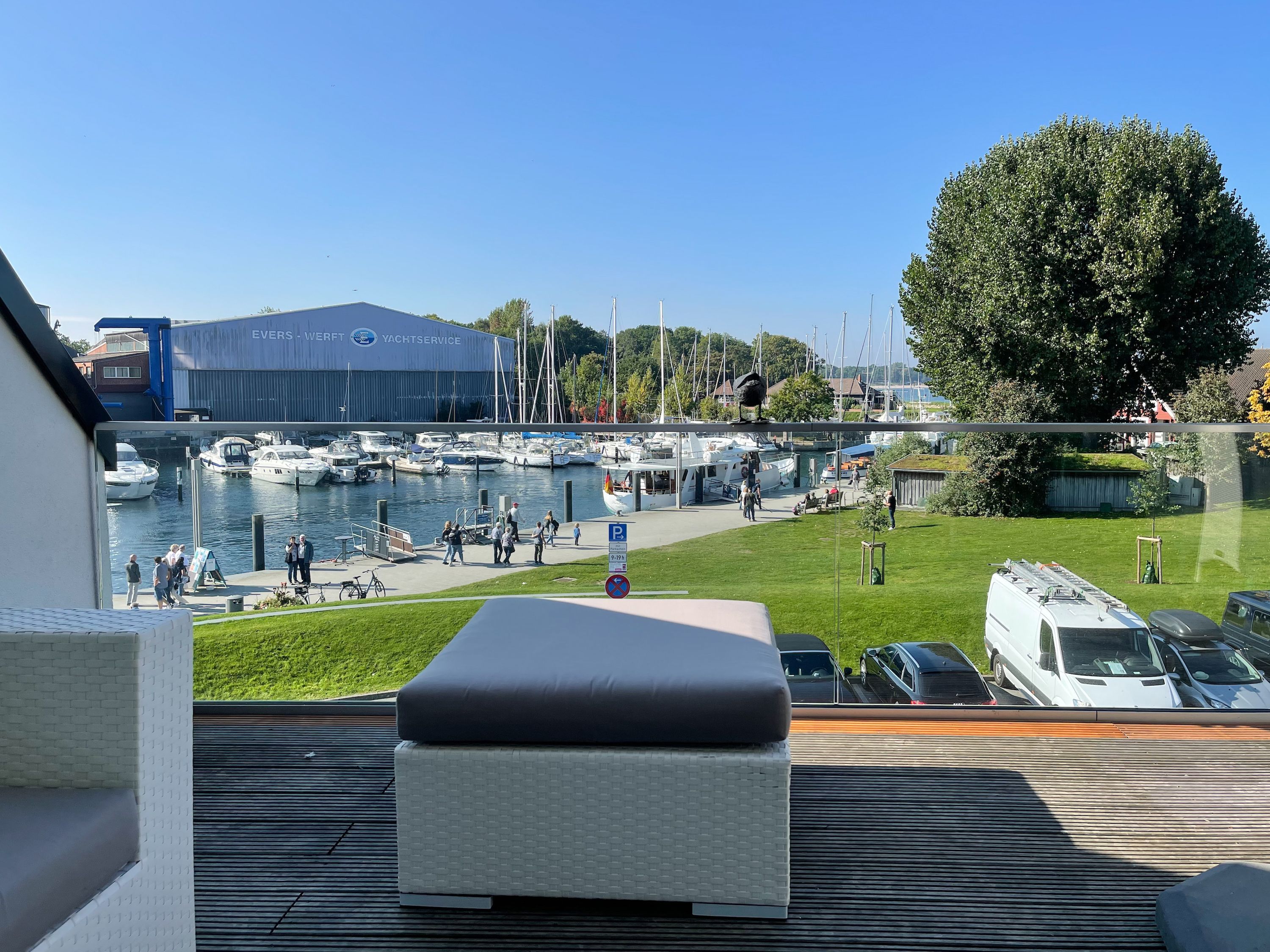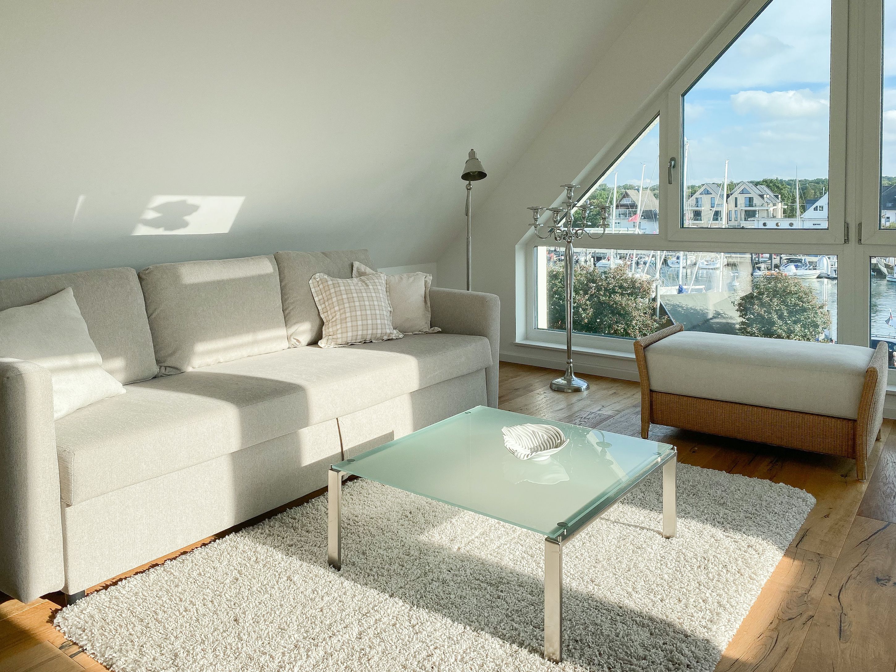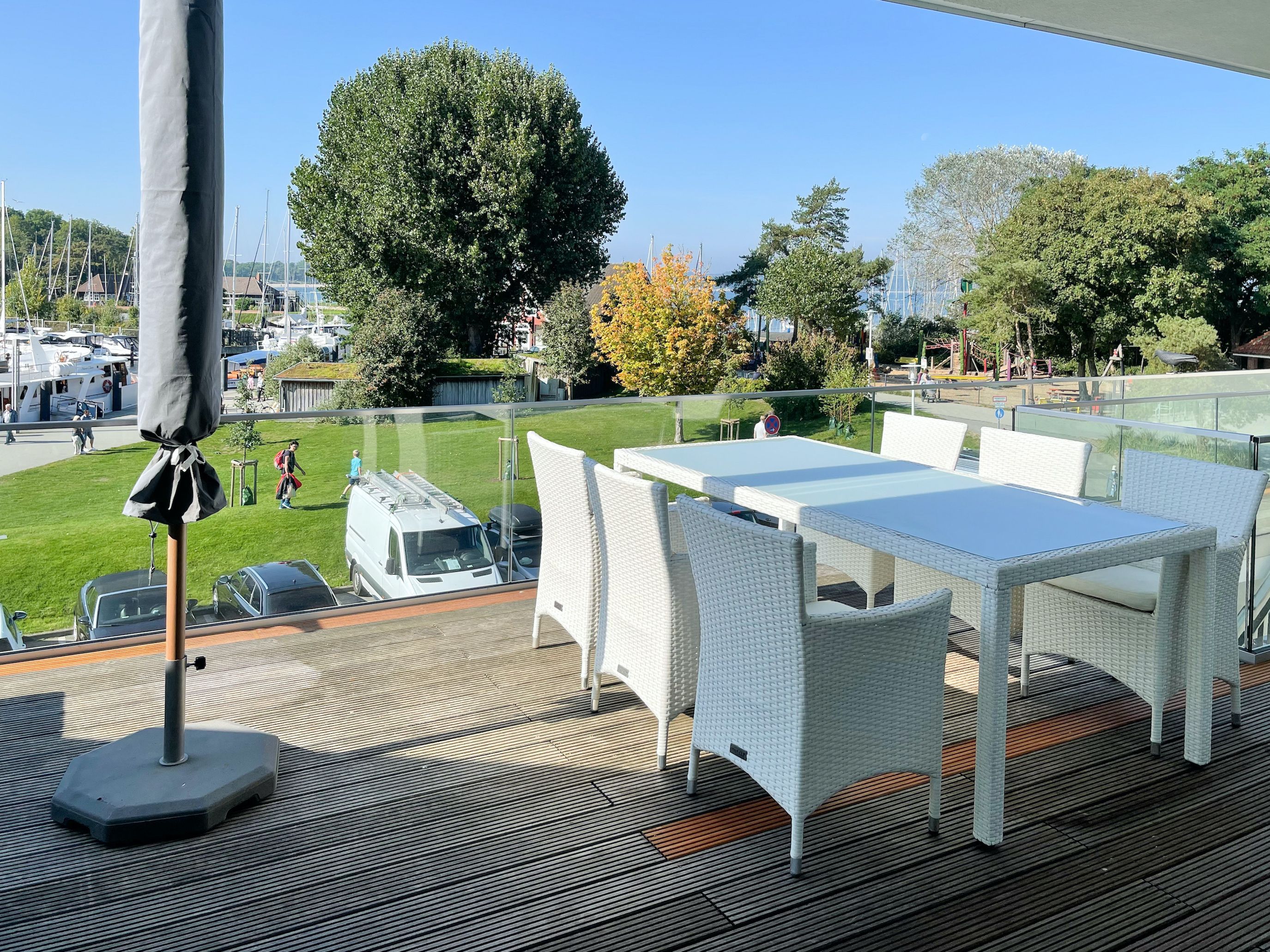 Traumhafter Blick über den Niendorfer Hafen bis zur Ostsee. Die Ferienwohnung Hafenloge befindet sich in hervorragender Strandlage in zweiter Reihe zur Ostsee direkt am Niendorfer Hafen. Frische Brötchen gibt es beim Bäcker um die Ecke, fangfrischen Fisch direkt vom Kutter und zahlreiche Restaurants und Cafés sowie ein Fahrradverleih und ein Spielplatz befinden sich in unmittelbarer Umgebung.