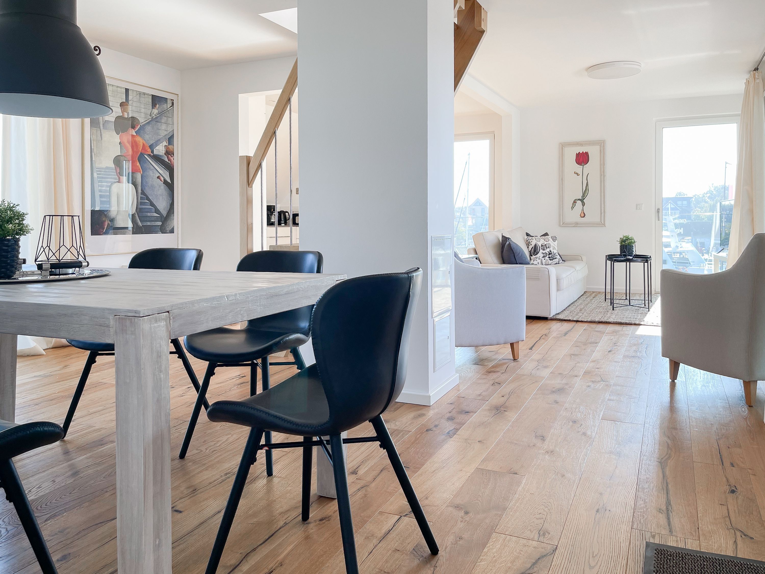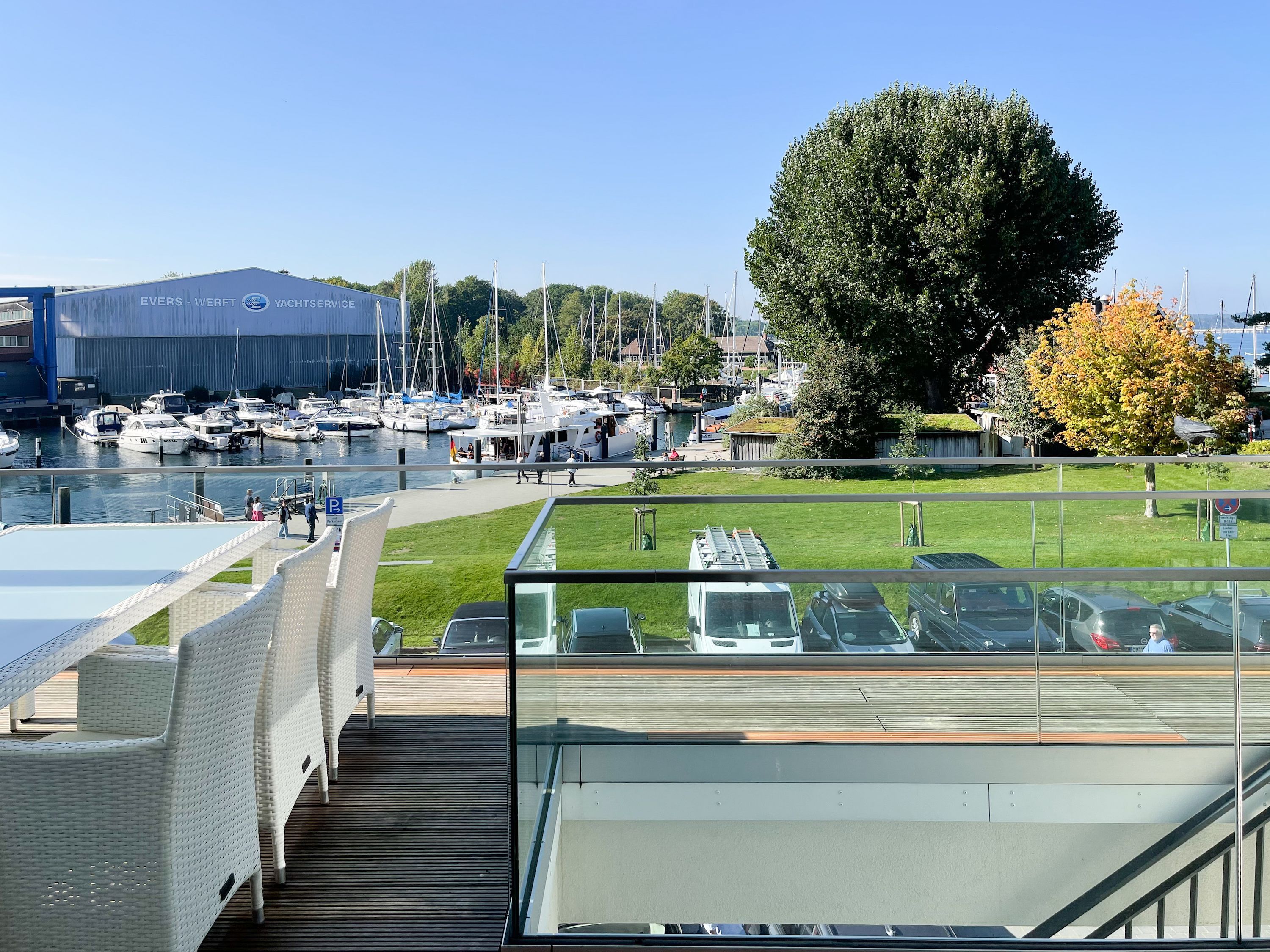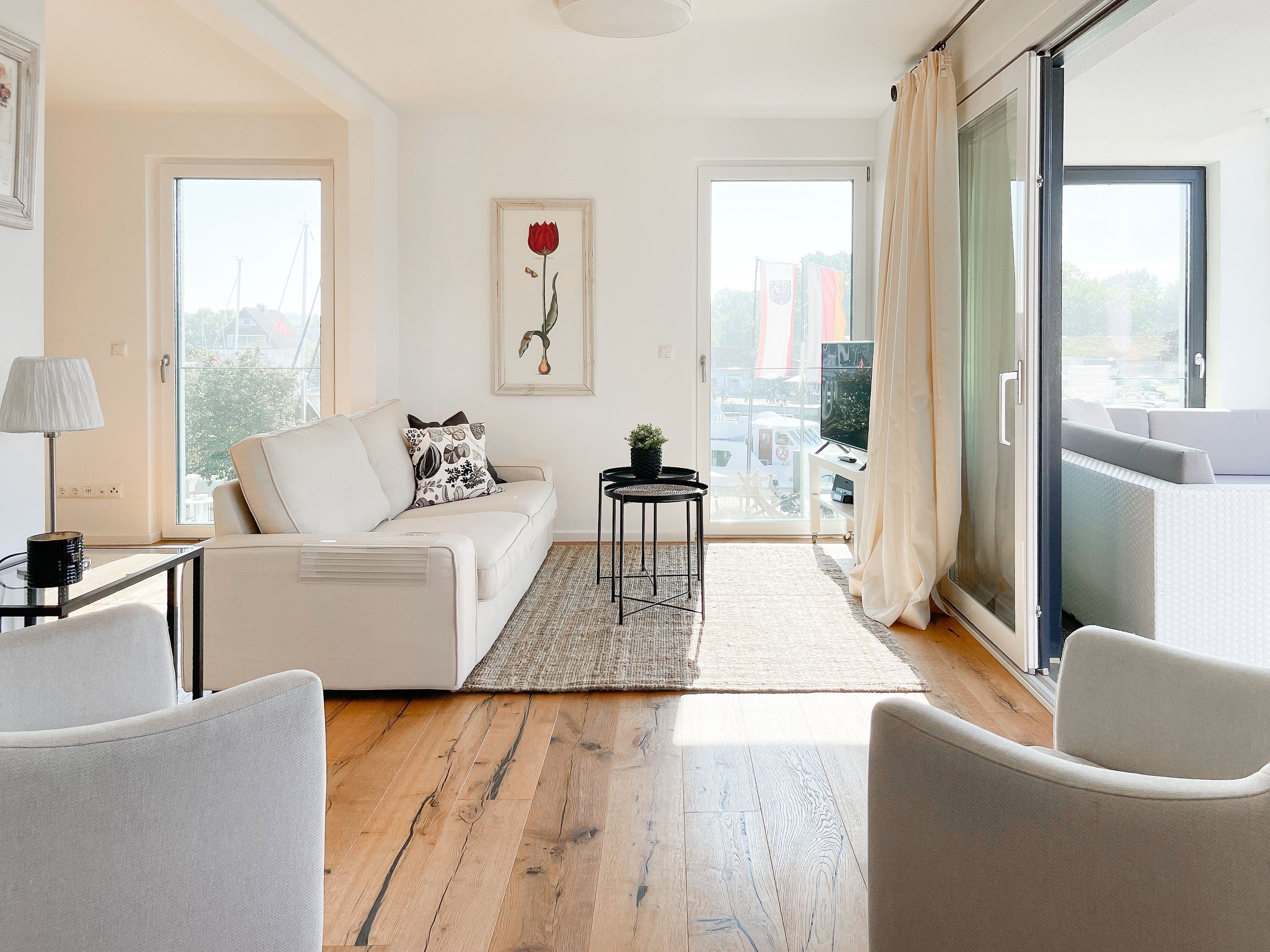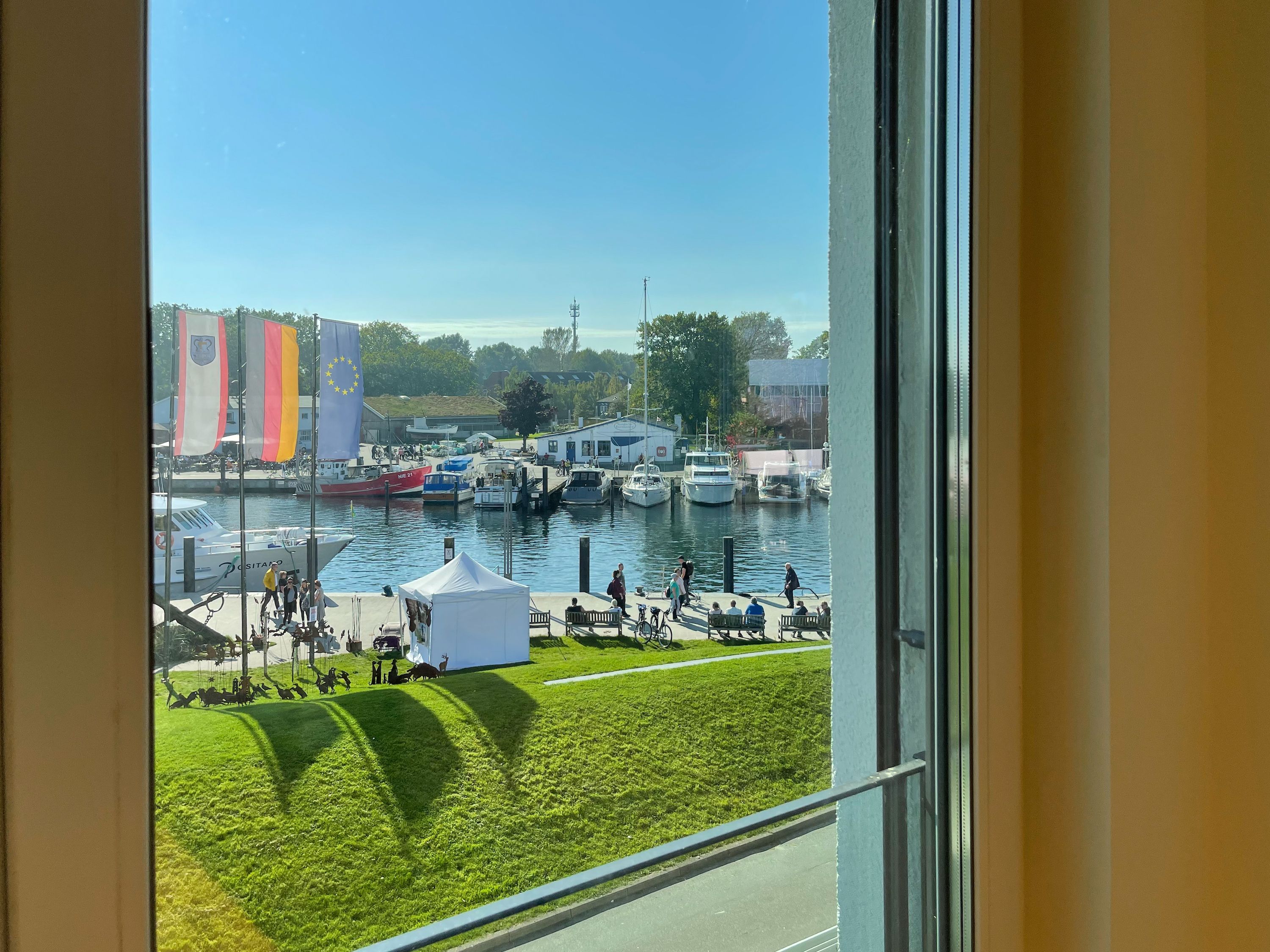 Traumhafter Blick über den Niendorfer Hafen bis zur Ostsee. Die Ferienwohnung Hafenloge befindet sich in hervorragender Strandlage in zweiter Reihe zur Ostsee direkt am Niendorfer Hafen. Frische Brötchen gibt es beim Bäcker um die Ecke, fangfrischen Fisch direkt vom Kutter und zahlreiche Restaurants und Cafés sowie ein Fahrradverleih und ein Spielplatz befinden sich in unmittelbarer Umgebung.