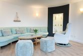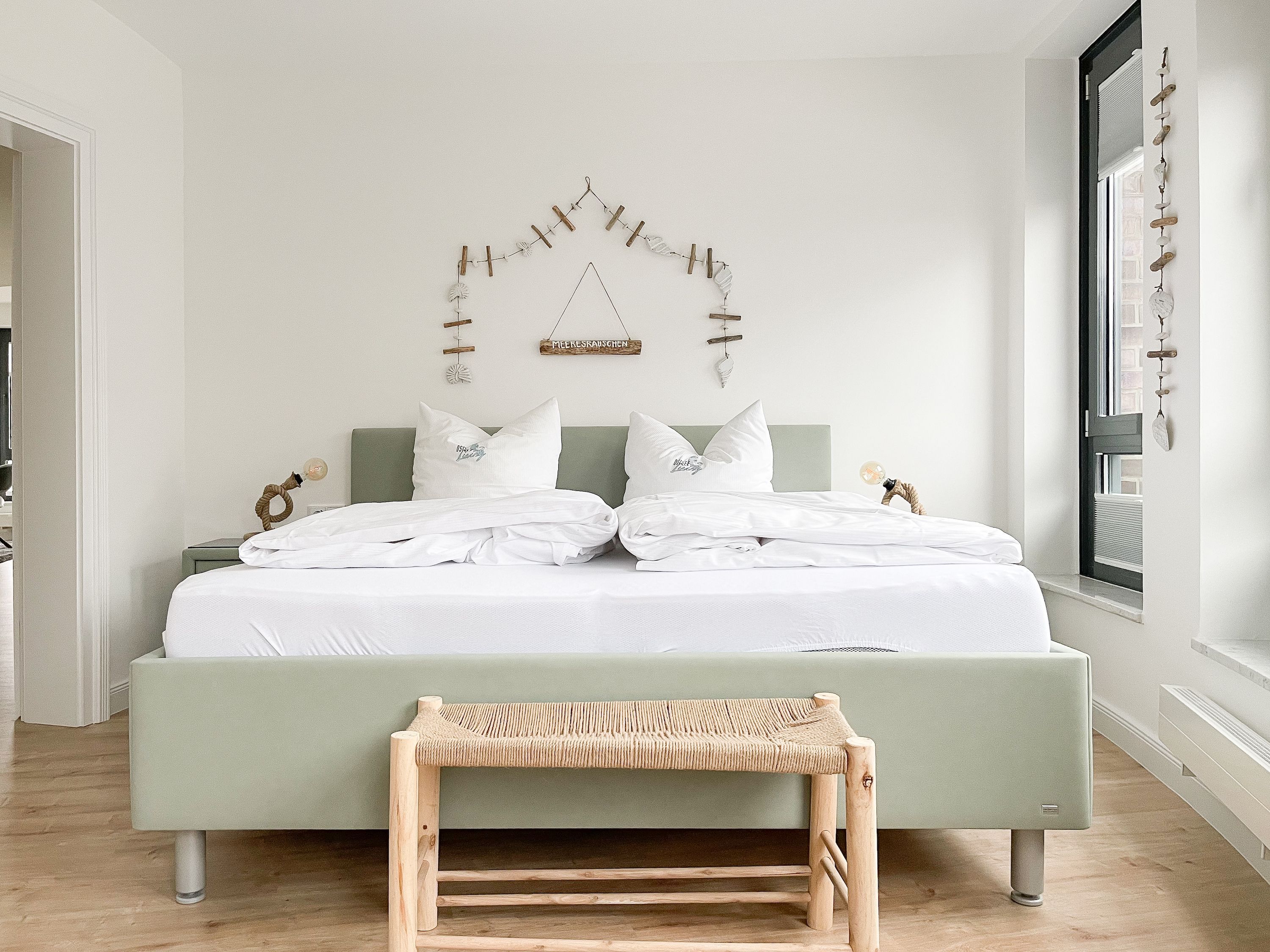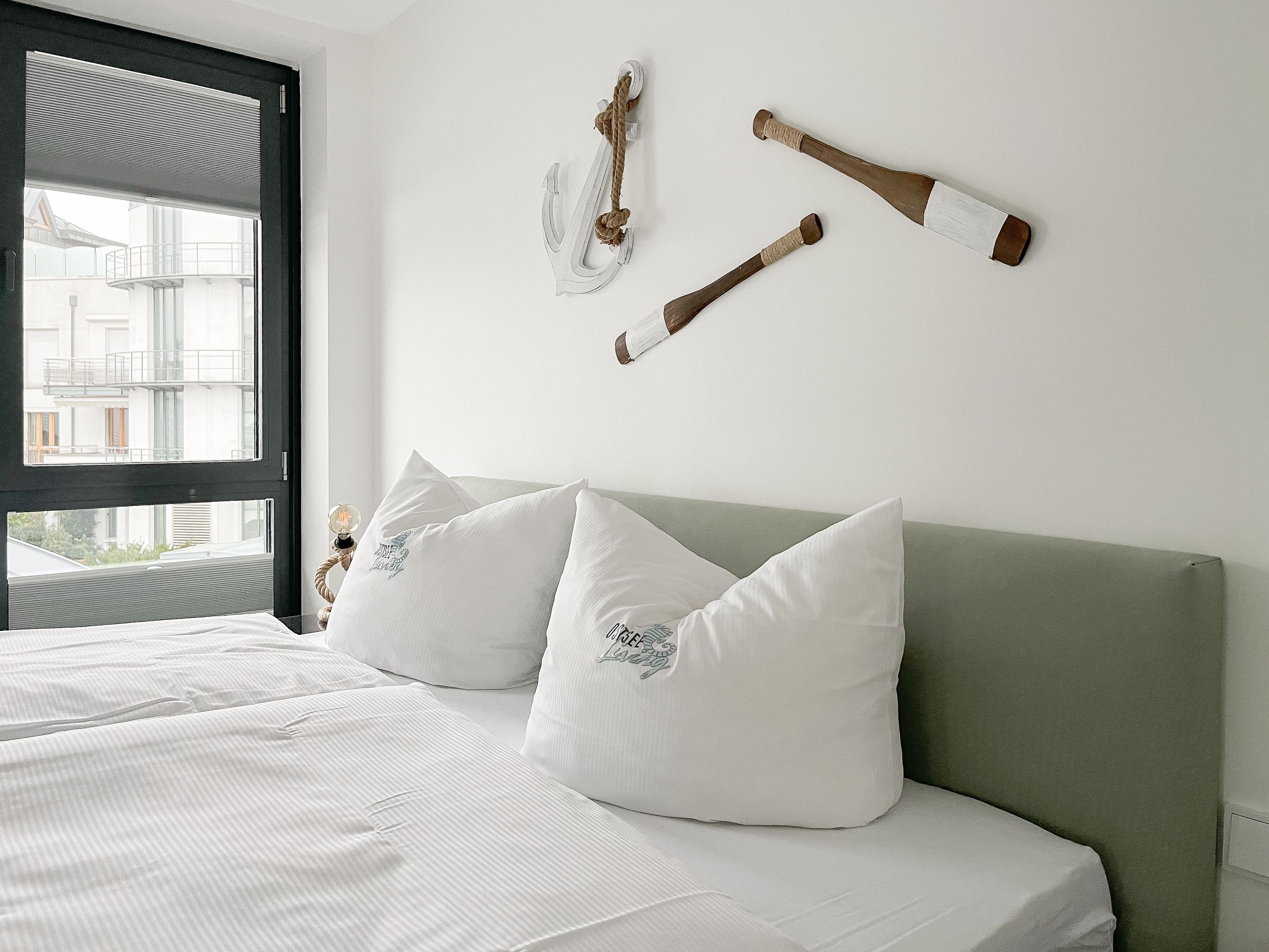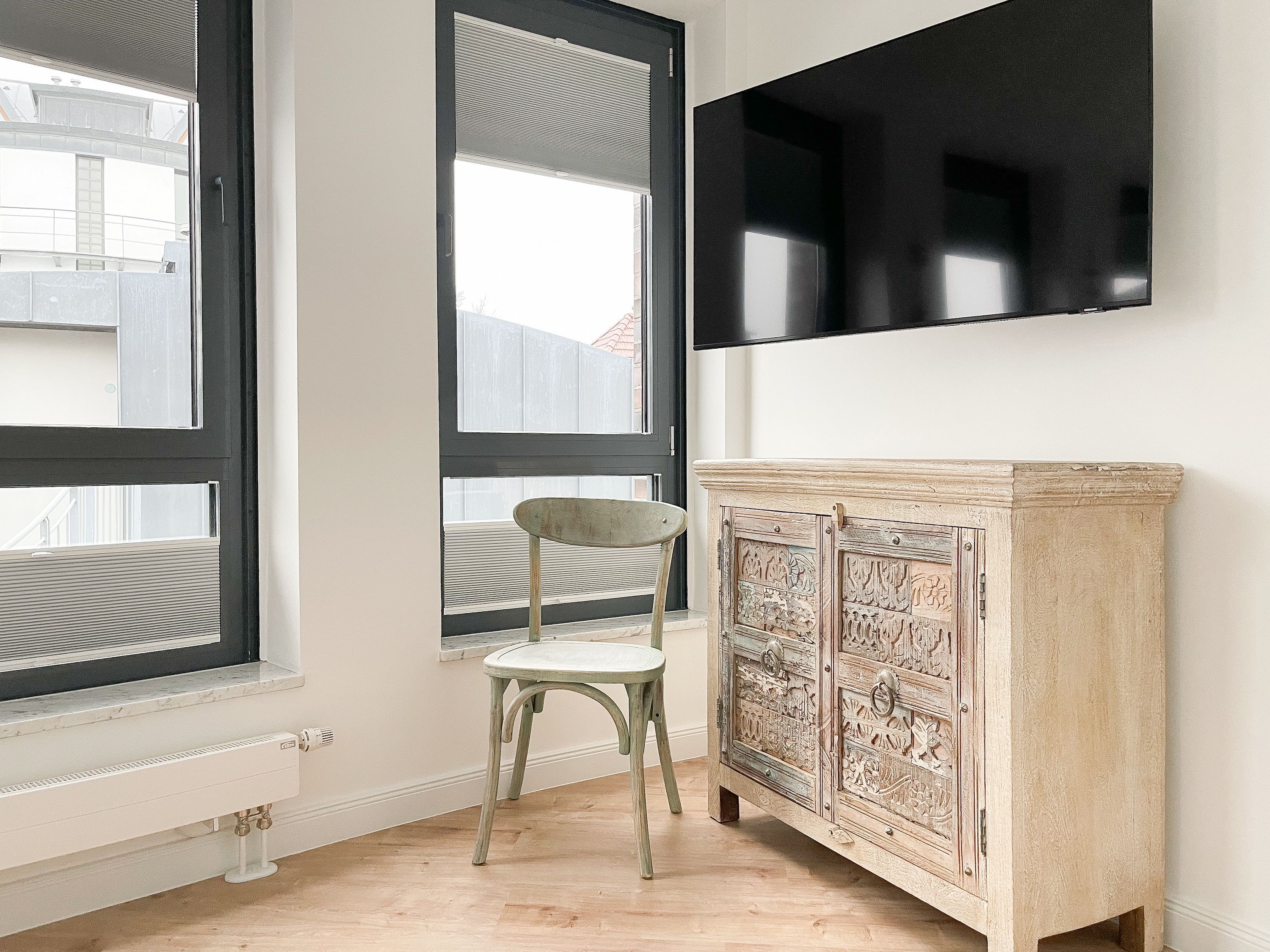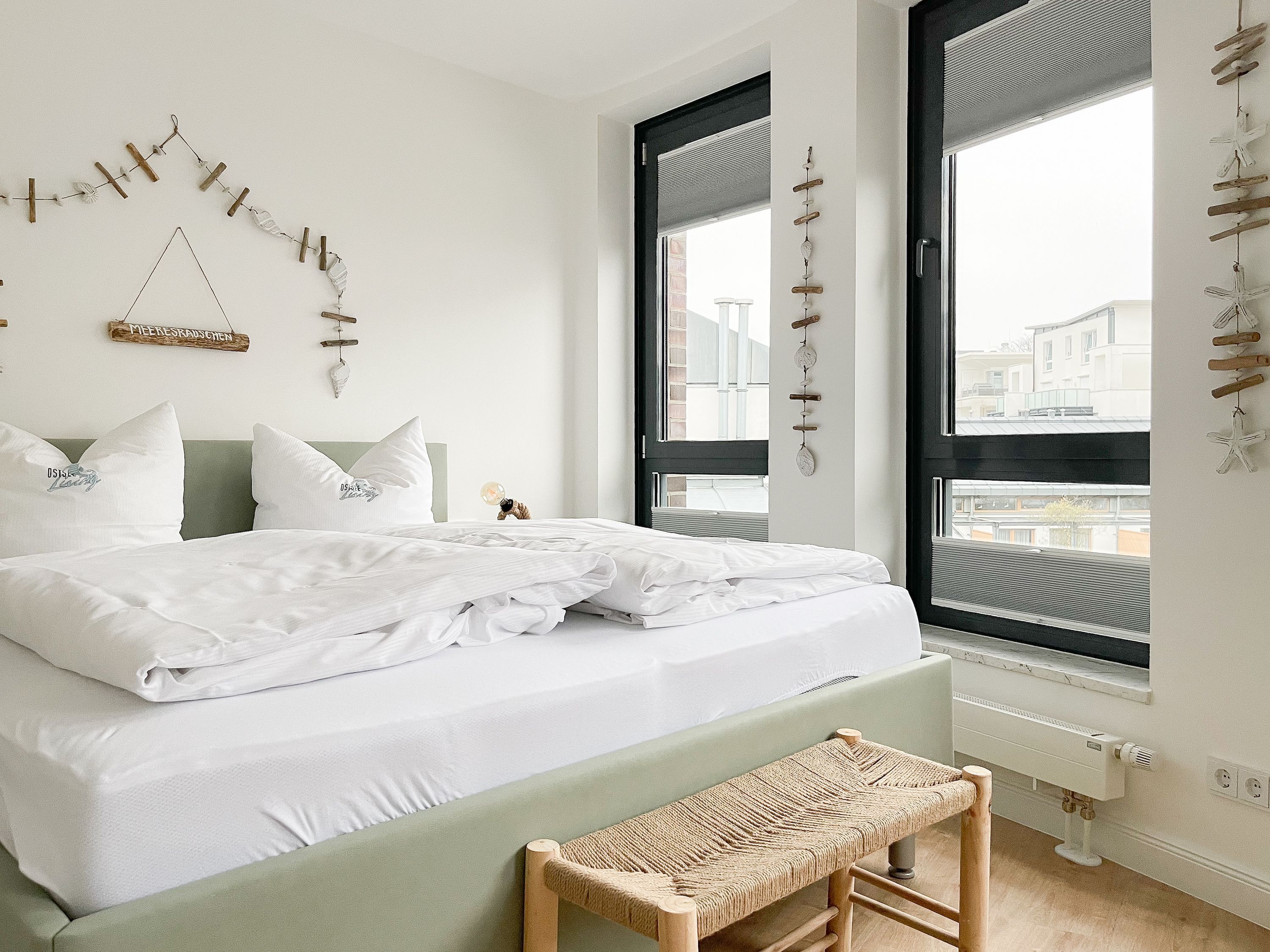 Das Penthouse Leuchtturm Lounge präsentiert sich als lichtdurchflutetes Loft mit unglaublich großzügigen Räumlichkeiten und einer faszinierenden Deckenhöhe über 2 Ebenen im Wohnbereich. Eine Wendeltreppe führt auf die riesige Empore, ein echtes architektonisches Highlight, eingerichtet mit einem traumhaften Schlafzimmer mit Klimaanlage und TV, einem Büro und kleinem exklusiven Duschbad ensuite. Ein weiteres Highlight ist definitiv die riesige Dachterrasse in Südausrichtung für viele gemeinsame Sonnenstunden, die mit einer Essgruppe und XXL Strandkorb ausgestattet ist. Im überaus weitläufigen Wohn- Essbereich mit anschließender Wohnküche in top Ausstattung, spielt sich das Leben ab. Die gemütliche Sofalandschaft und der großzügige Essbereich bieten viel Raum, um einen entspannten Urlaub zu verleben. Durch die Kombination von anspruchsvollem Design, hochwertigen Materialien und warmen Farben ist es der Innenarchitektin gelungen, eine wunderbare Wohnatmosphäre zu schaffen. Es gibt 2 weitere großzügige Schlafzimmer, die wie auch das Emporenschlafzimmer über hochwertige Ruf Boxspringbetten (180x200), Einbauschränke, TV und Verdunkelungsplissees verfügen sowie ein weiteres exklusives Duschbad. Beide Bäder sind mit einem Radio ausgestattet. Eine Waschmaschine ist in die Küche integriert. Zum Penthouse (2. Etage) gehört ein reservierter Stellplatz in der Tiefgarage ( Einfahrtshöhe 1,90 m ). Ein Fahrstuhl ist nicht vorhanden. Das Penthouse ist aufgrund der offenen Treppe und Empore nicht unbedingt für Kleinkinder geeignet.