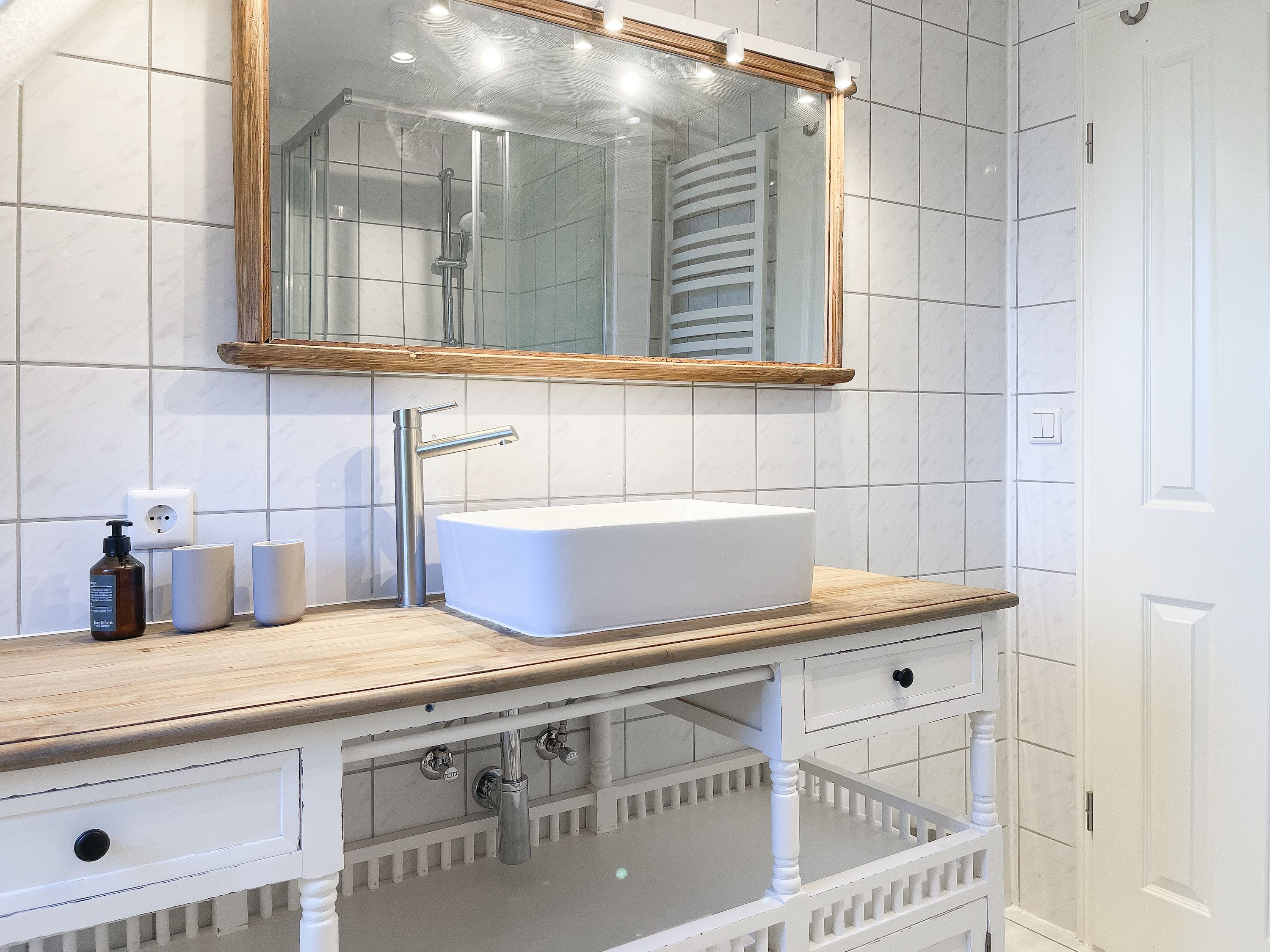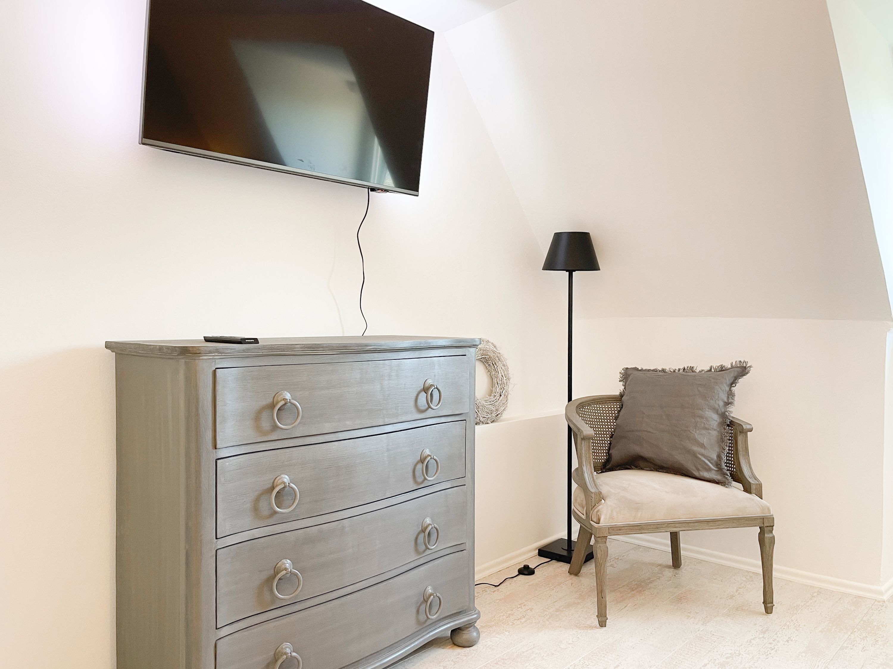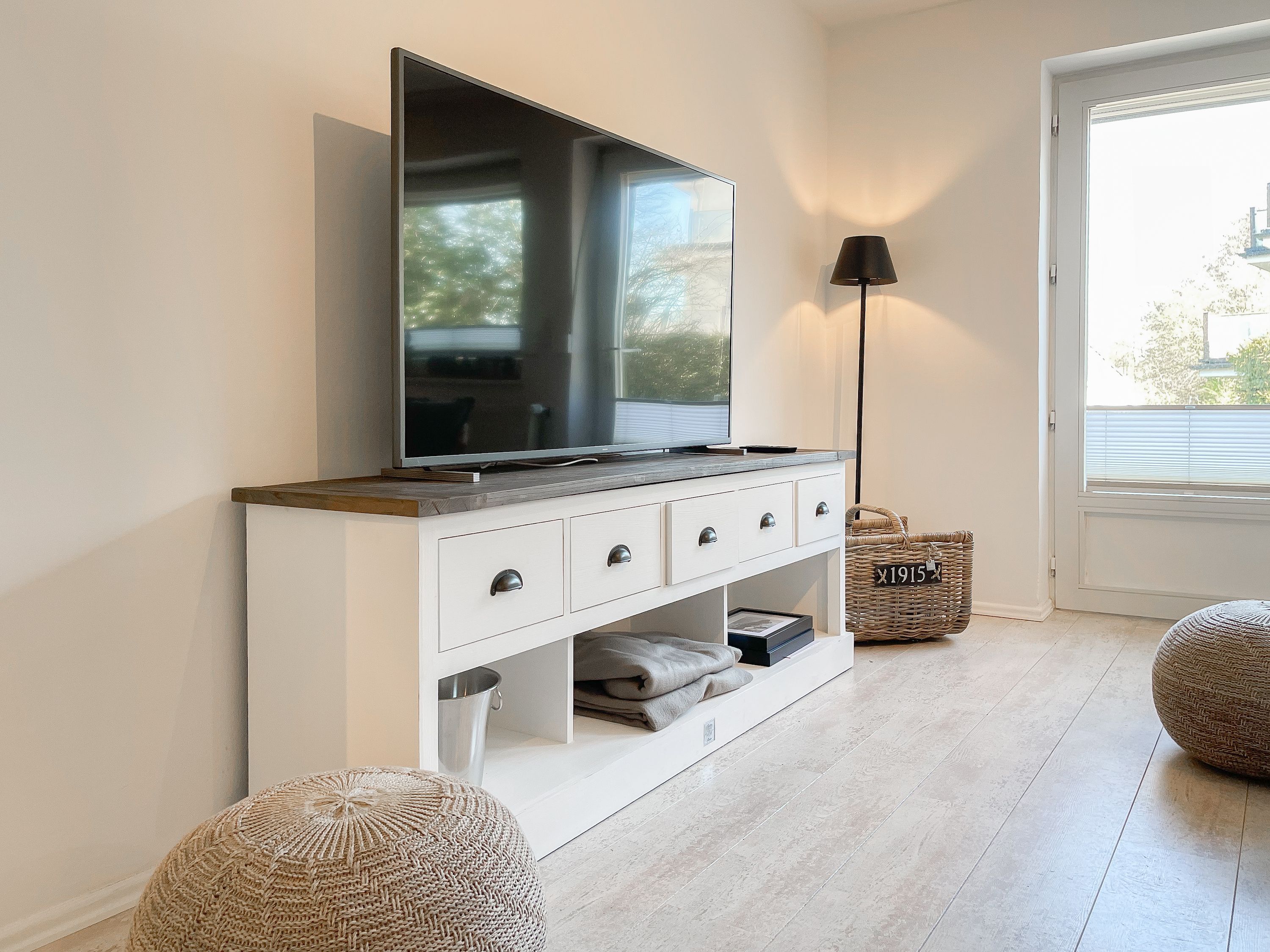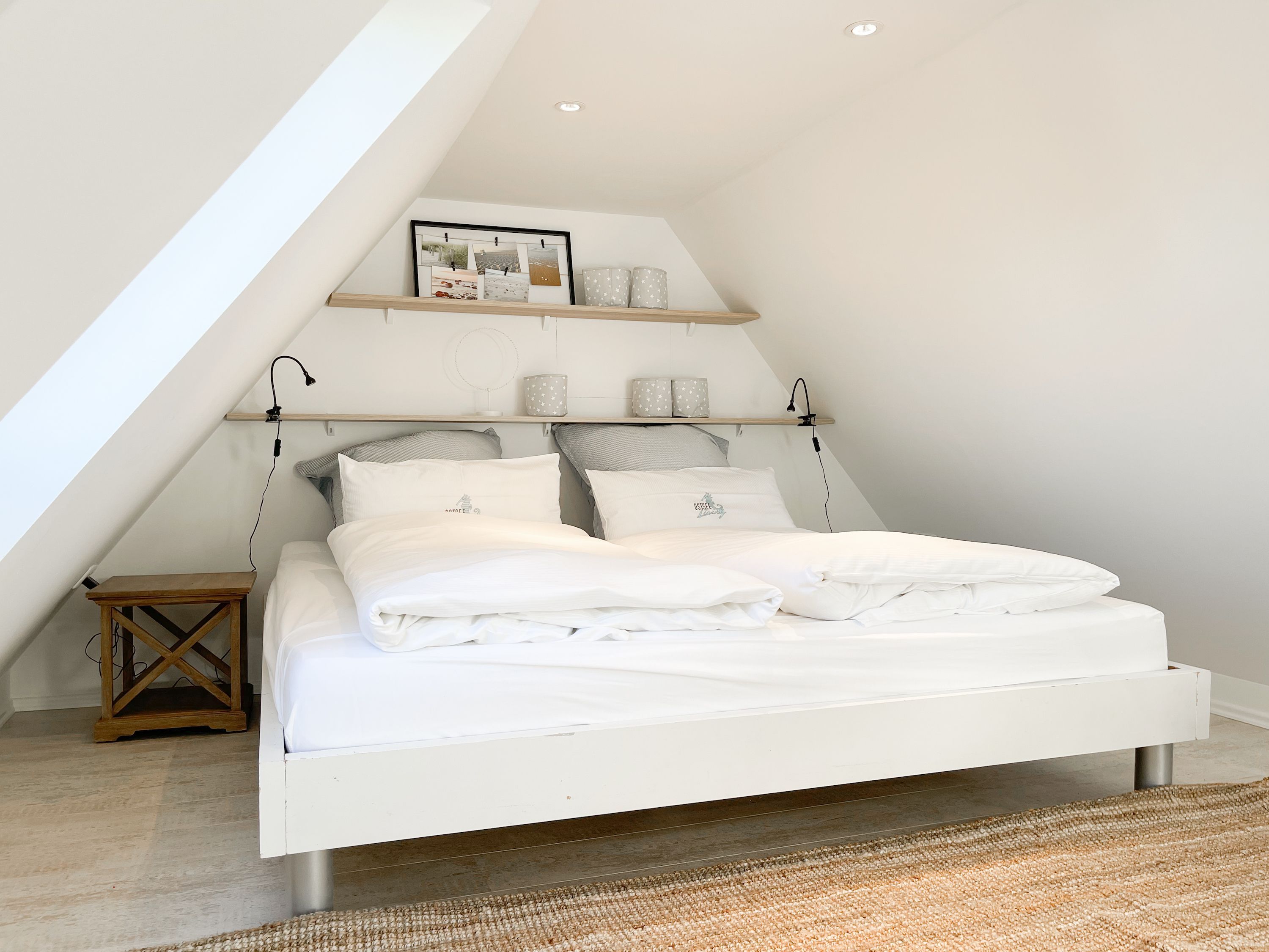 Strandflair pur! Das renovierte und mit viel Liebe zum Detail ausgestattete Ferienhaus Strandbude bietet tolles Strandambiente, um einen entspannten Urlaub in Ostseenähe zu verleben. Natürliche Materialien und die äußerst geschmackvolle Einrichtung des Altbaus sorgen für eine herrliche Wohnatmosphäre im Hampton Style. Es erwartet Sie ein charmanter Wohnbereich mit einem hochwertigen Sofa, Sessel und XL TV. Auf der vorgelagerten Terrasse 1 können sie bereits die ersten Sonnenstrahlen beim Morgenkaffee genießen. Die anschließende Küche ist gut ausgestattet und der geschmackvoll gestaltete Essbereich ist ebenso Treffpunkt für gemütliches Beisammensein wie auch die anschließende Terrasse 2 mit Sonne satt. Die Außenbereiche sind mit Gartenmöbeln und einem Strandkorb ausgestattet. Im Obergeschoss befindet sich ein Schlafzimmer mit einem Boxspringdoppelbett (180x200), Kleiderschrank und TV und ein weiteres Schlafzimmer mit einem Einzelbett, kleinem Kleiderschrank und einem Schreibtisch. Im Spitzboden (Deckenhöhe 1,80 m), der über eine Raumspartreppe zu erreichen ist, befindet sich das 3. Schlafzimmer mit einem Doppelbett (180x200) und eine Kleiderstange auf Rollen. Die Fenster der Schlafräume lassen sich verdunkeln. Ein Bad mit Badewanne befindet sich im Erdgeschoss, das zweite Bad mit Dusche im Obergeschoss. WLAN steht selbstverständlich zur kostenlosen Nutzung zur Verfügung. Eine Waschmaschine und ein Trockner sind im Keller untergebracht. Ein Parkplatz und ein abschließbarer Fahrradschuppen befinden sich direkt am Haus.