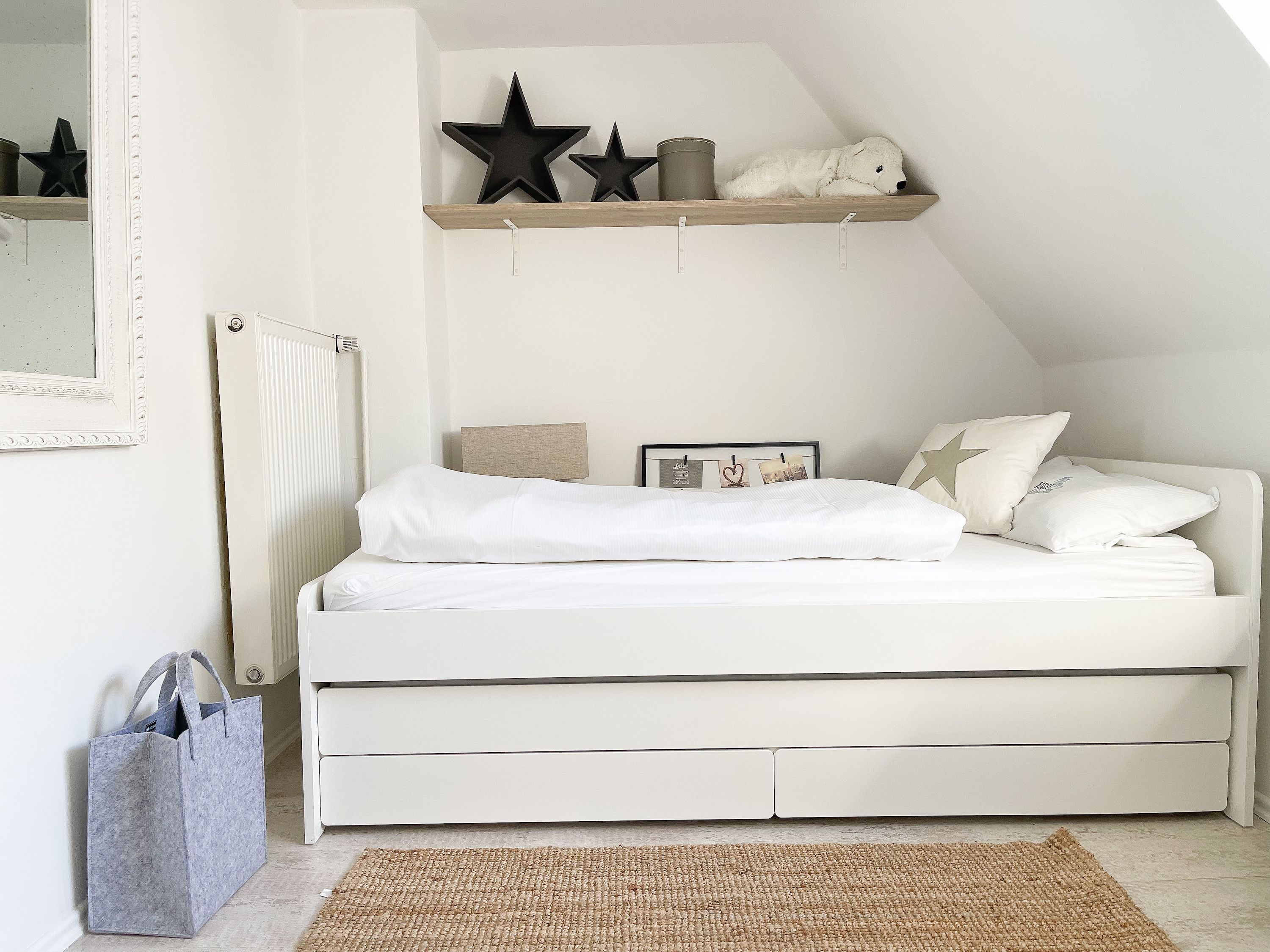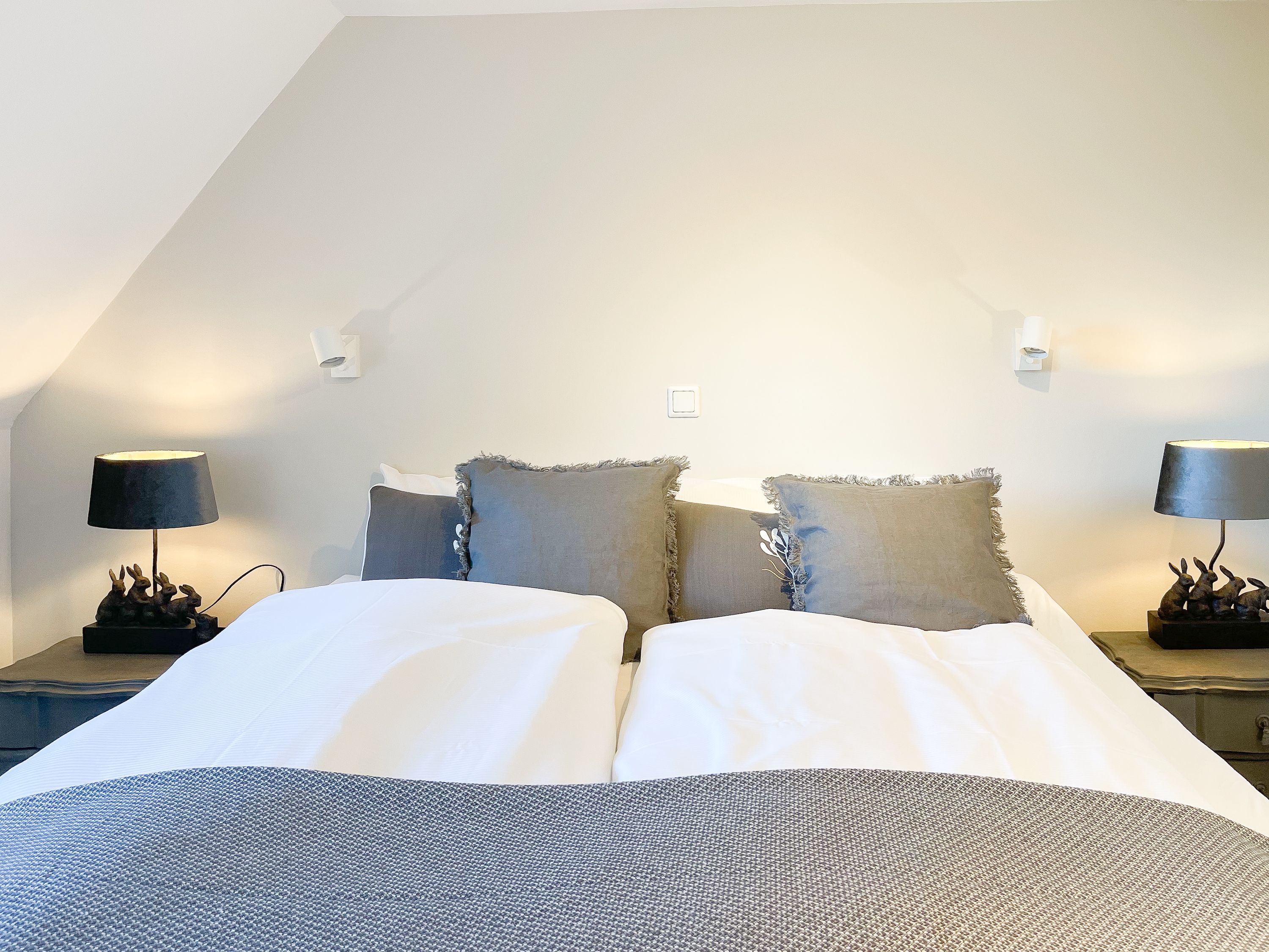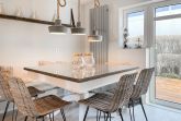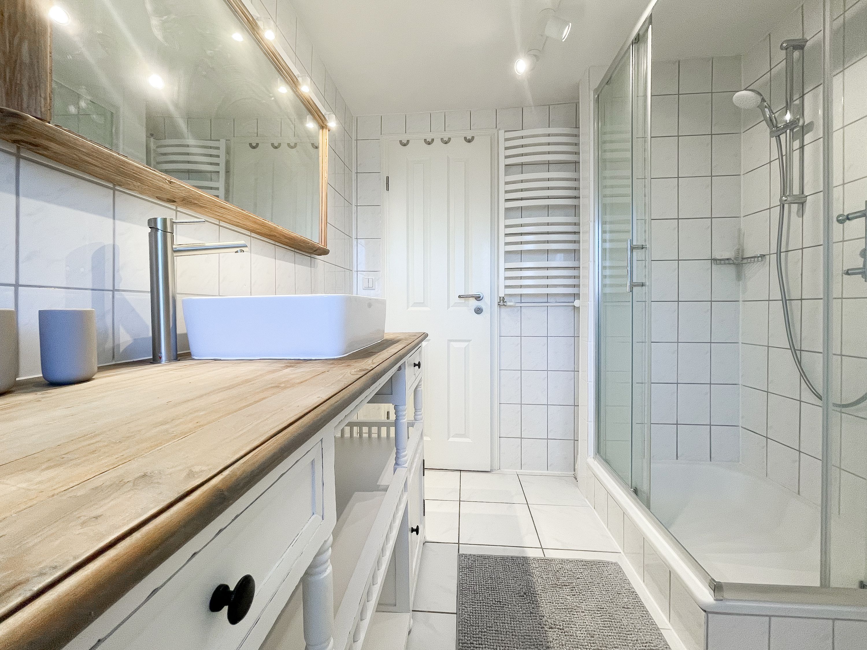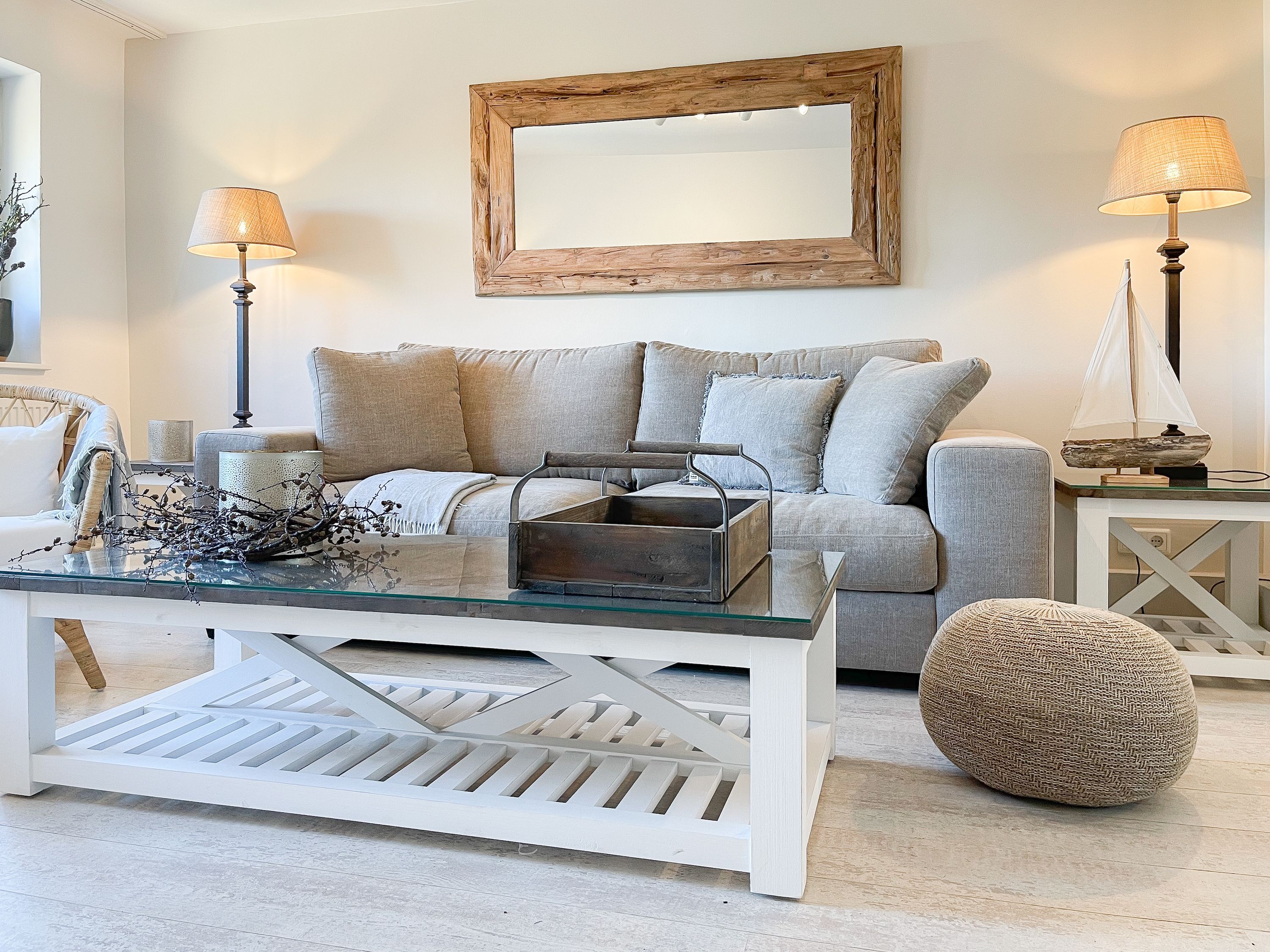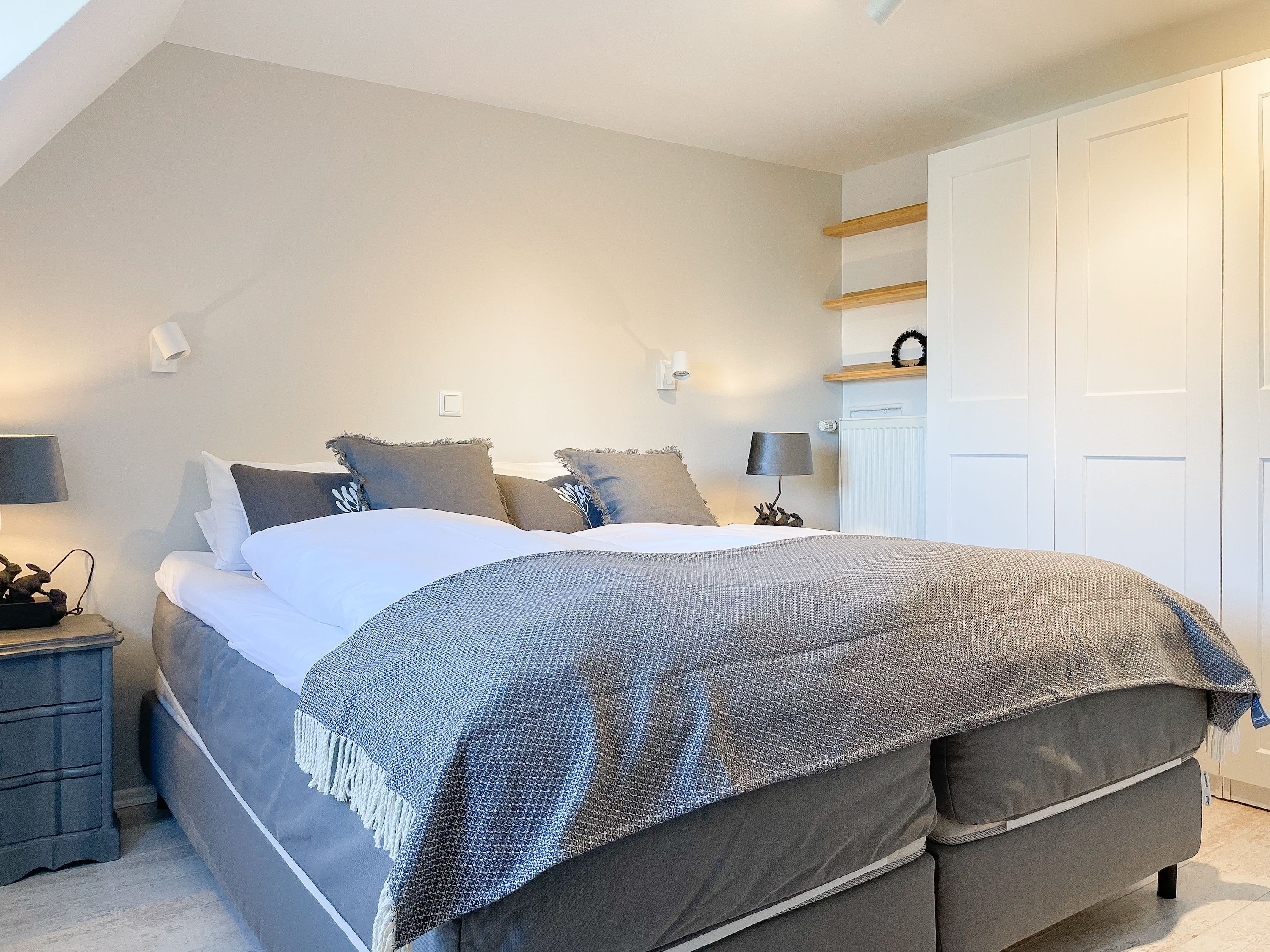 Strandflair pur! Das renovierte und mit viel Liebe zum Detail ausgestattete Ferienhaus Strandbude bietet tolles Strandambiente, um einen entspannten Urlaub in Ostseenähe zu verleben. Natürliche Materialien und die äußerst geschmackvolle Einrichtung des Altbaus sorgen für eine herrliche Wohnatmosphäre im Hampton Style. Es erwartet Sie ein charmanter Wohnbereich mit einem hochwertigen Sofa, Sessel und XL TV. Auf der vorgelagerten Terrasse 1 können sie bereits die ersten Sonnenstrahlen beim Morgenkaffee genießen. Die anschließende Küche ist gut ausgestattet und der geschmackvoll gestaltete Essbereich ist ebenso Treffpunkt für gemütliches Beisammensein wie auch die anschließende Terrasse 2 mit Sonne satt. Die Außenbereiche sind mit Gartenmöbeln und einem Strandkorb ausgestattet. Im Obergeschoss befindet sich ein Schlafzimmer mit einem Boxspringdoppelbett (180x200), Kleiderschrank und TV und ein weiteres Schlafzimmer mit einem Einzelbett, kleinem Kleiderschrank und einem Schreibtisch. Im Spitzboden (Deckenhöhe 1,80 m), der über eine Raumspartreppe zu erreichen ist, befindet sich das 3. Schlafzimmer mit einem Doppelbett (180x200) und eine Kleiderstange auf Rollen. Die Fenster der Schlafräume lassen sich verdunkeln. Ein Bad mit Badewanne befindet sich im Erdgeschoss, das zweite Bad mit Dusche im Obergeschoss. WLAN steht selbstverständlich zur kostenlosen Nutzung zur Verfügung. Eine Waschmaschine und ein Trockner sind im Keller untergebracht. Ein Parkplatz und ein abschließbarer Fahrradschuppen befinden sich direkt am Haus.
