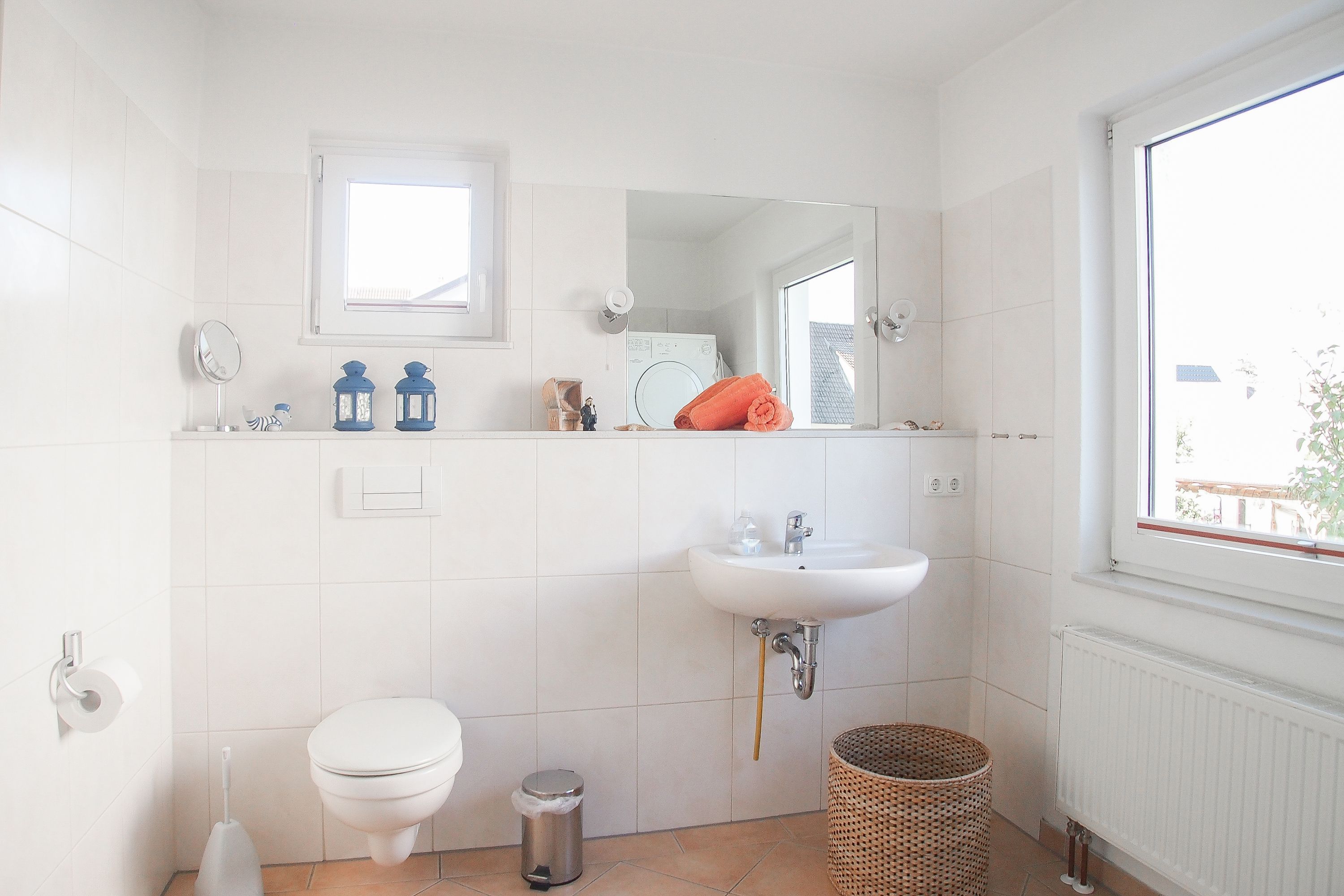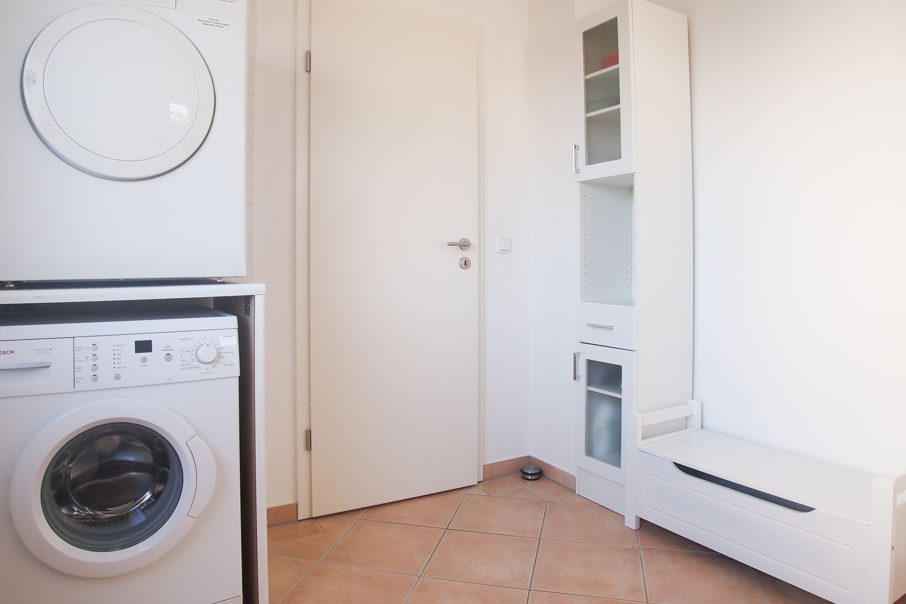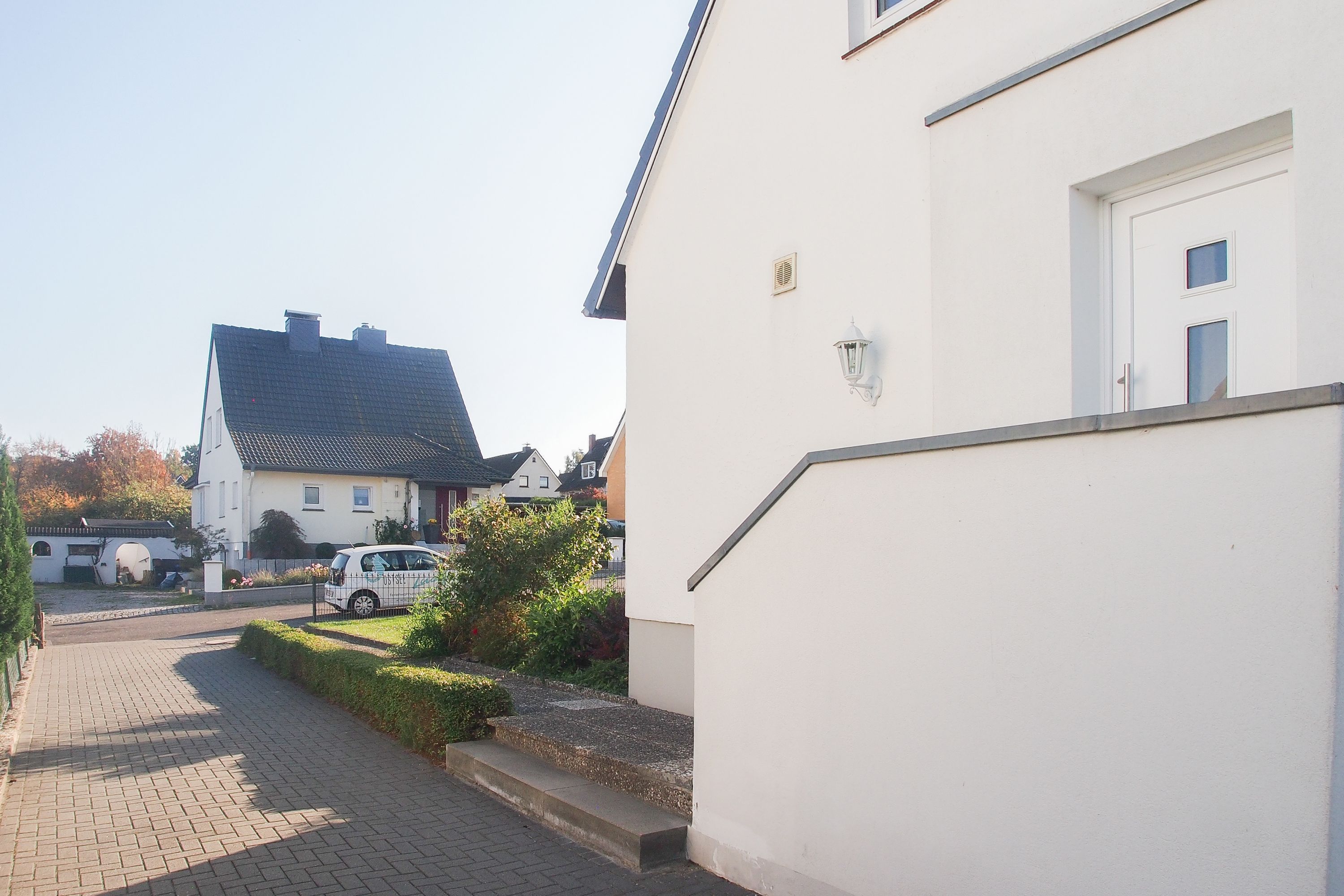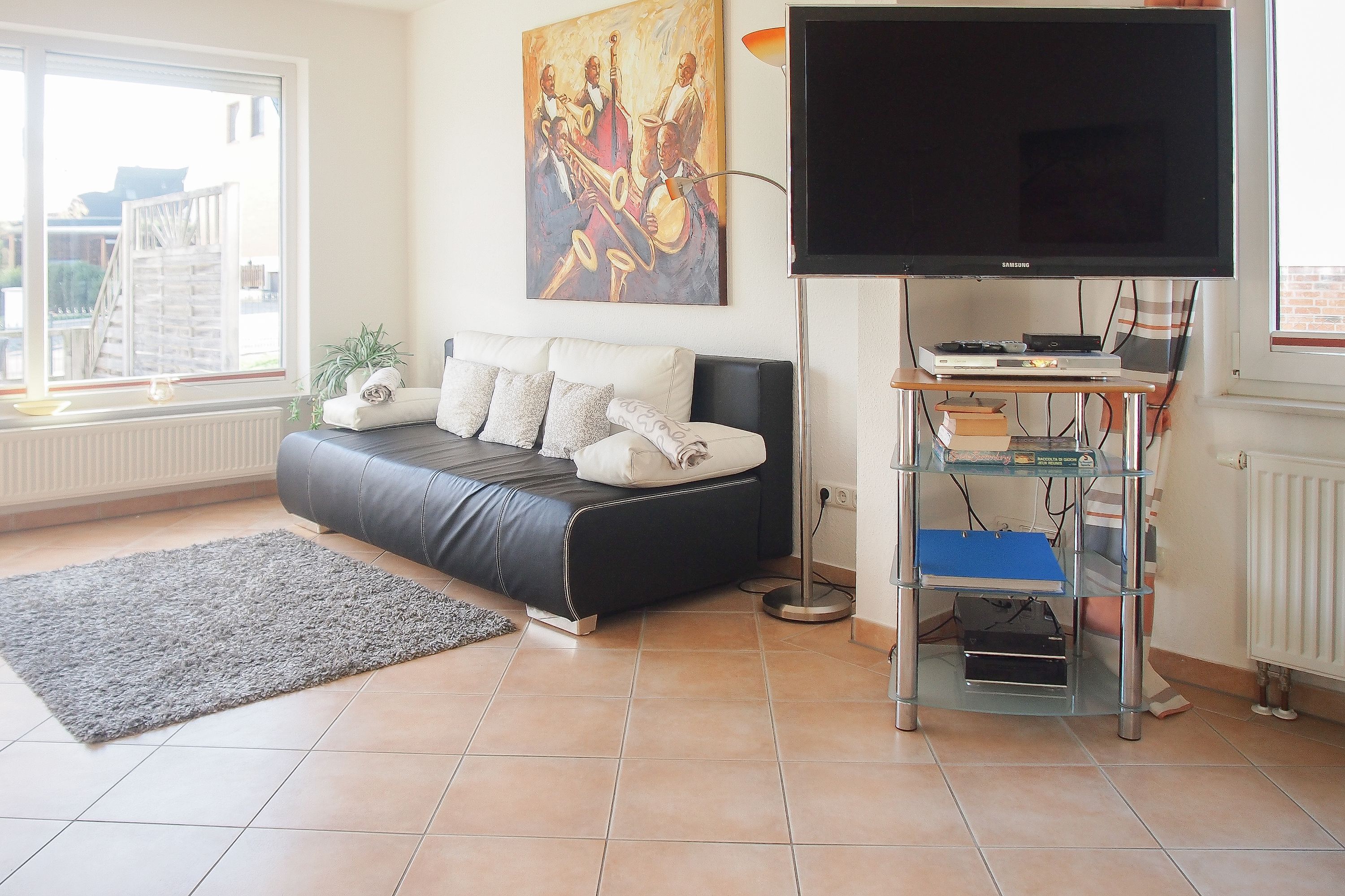In Obergeschoss befinden sich 3 separate Schlafzimmer und ein geräumiges Duschbad. Zwei der Schlafräume sind mit einem Doppelbett (180x200) und einem TV ausgestattet, das dritte mit einem Doppelbett (160x200) und einem zusätzlichen Kinderbett. Die Fenster sind mit Verdunkelungsrollos versehen. Zwei PKW Stellplätze befinden sich auf dem Grundstück. In der abschließbaren Garage können mitgebrachte Fahrräder trocken und sicher untergestellt werden. Ein Bollerwagen steht unseres Gästen zur freien Verfügung.