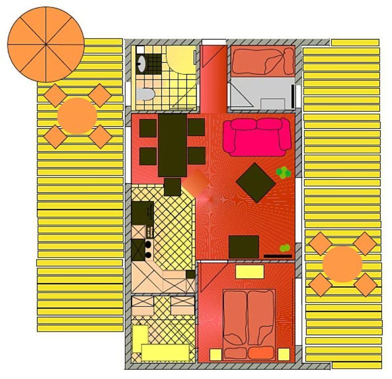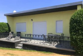 Der frisch renovierte auf ca. 55 Quadratmeter große Bungalow ist komfortabel und gemütlich eingerichtet. Insgesamt verfügt er über 3 Zimmer und bietet eine Ausstattung für 4 Gäste + Kleinkind.