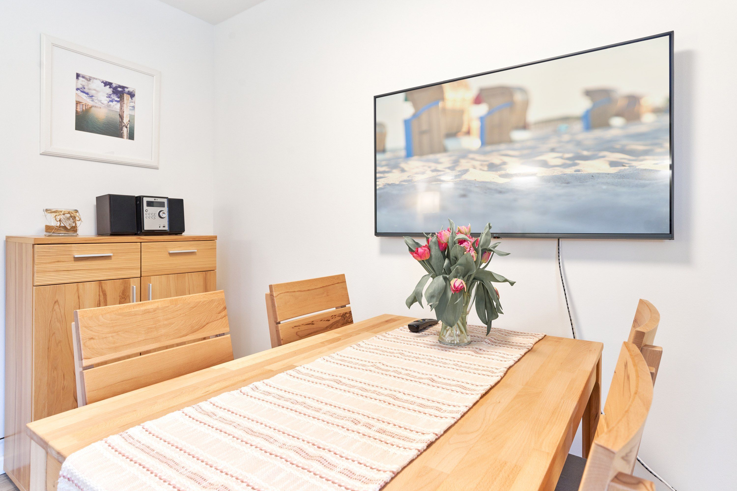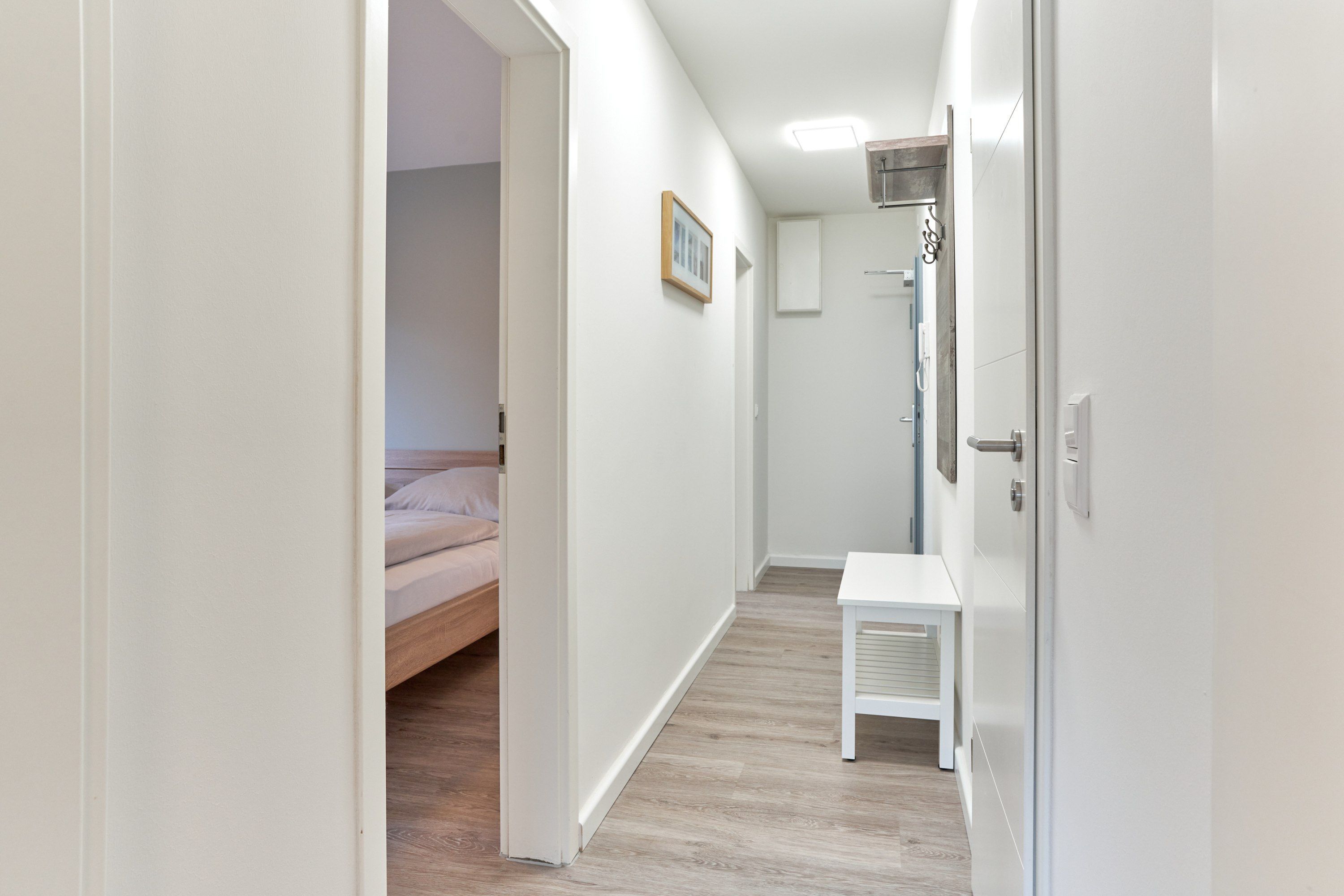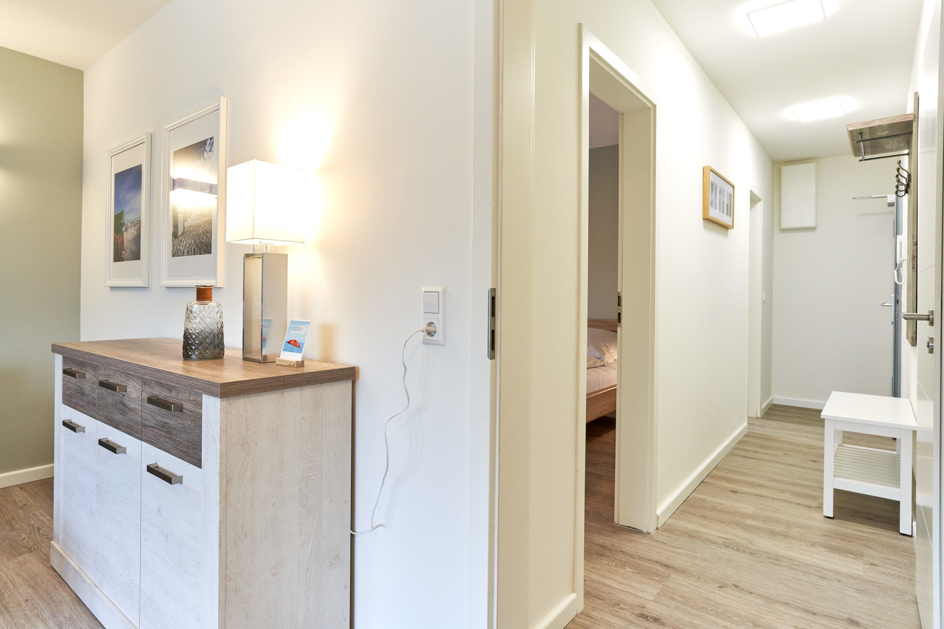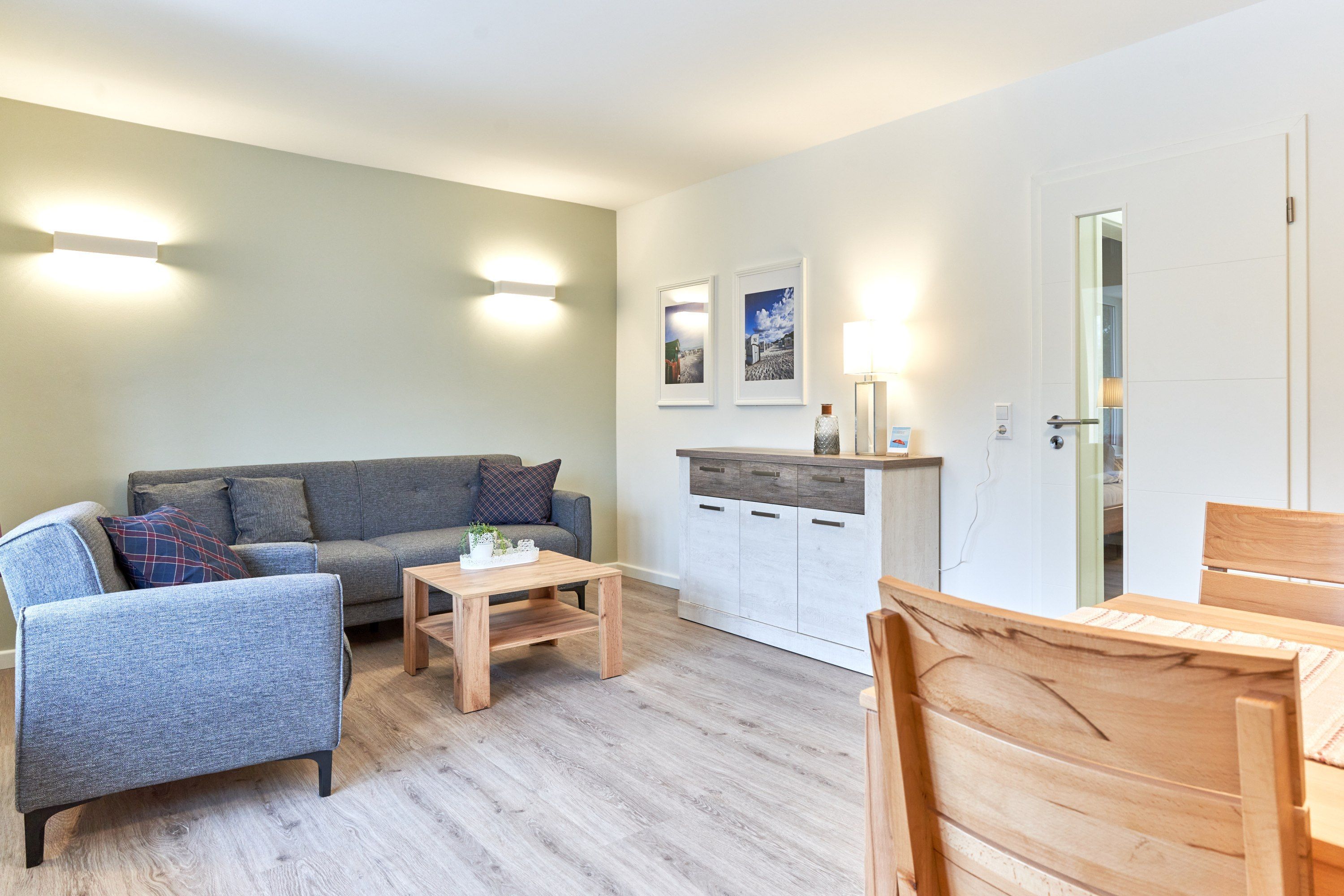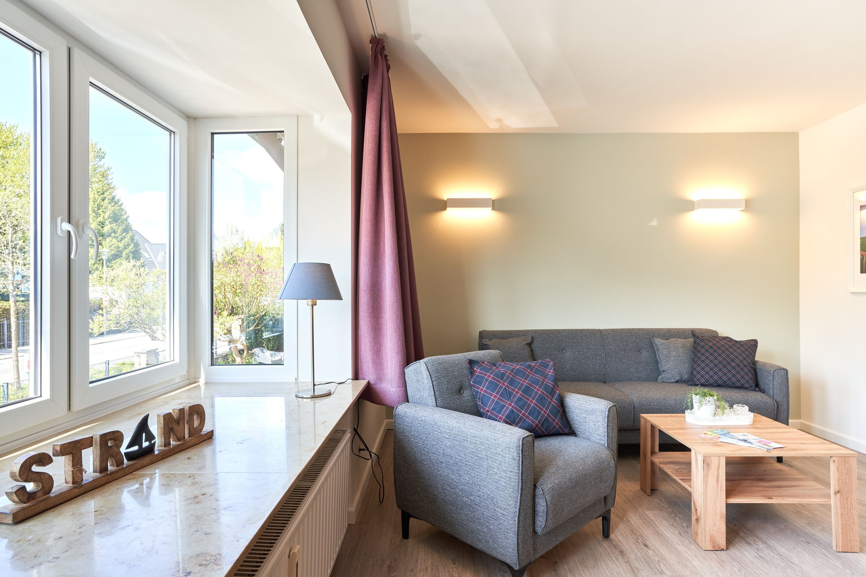 Dieses in 2022 umfassend renovierte Apartment teilt sich auf in Küche, Flur, Bad, Schlafzimmer und Wohnzimmer. Die Einbauküche ist komplett ausgestattet und im neu gestalteten Badezimmer finden Sie eine Echtglasdusche, neue Badobjekte sowie einen Badheizkörper für Handtücher. Der moderne Wohnbereich ist mit großzügigem Erkerfenster, großer gemütlicher Sitzecke (mit Schlafoption für eine dritte Person), Flachbildschirmfernseher, sowie einem Essplatz ausgestattet. Zusätzlichen Stauraum bietet eine Kommmode. Im modern eingerichteten Schlafzimmer finden Sie ein Doppelbett, einen offenen Kleiderschrank und einen zweiten Fernseher. Verdunkelungsgardinen in Wohn- und Schlafzimmer sorgen für eine gemütliche Atmosphäre und ungestörten Schlaf.