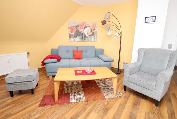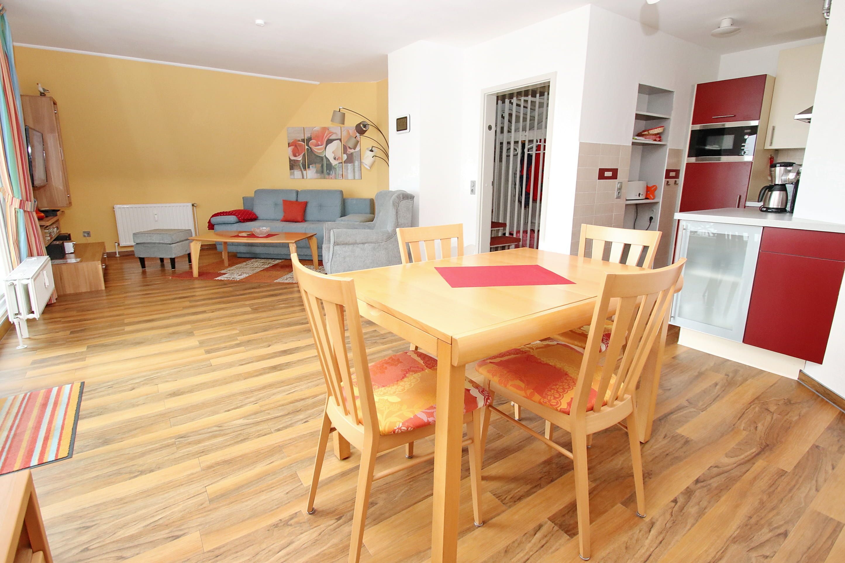 Balkon mit Strandkorb, Küche, Geschirrspüler, Mikrowelle, Duschbad/WC, Fön, 2x TV, DVD, Stereoanlage, kostenl. W-Lan, inkl. Außenstellplatz ca. 300 m vom Haus entfernt.
