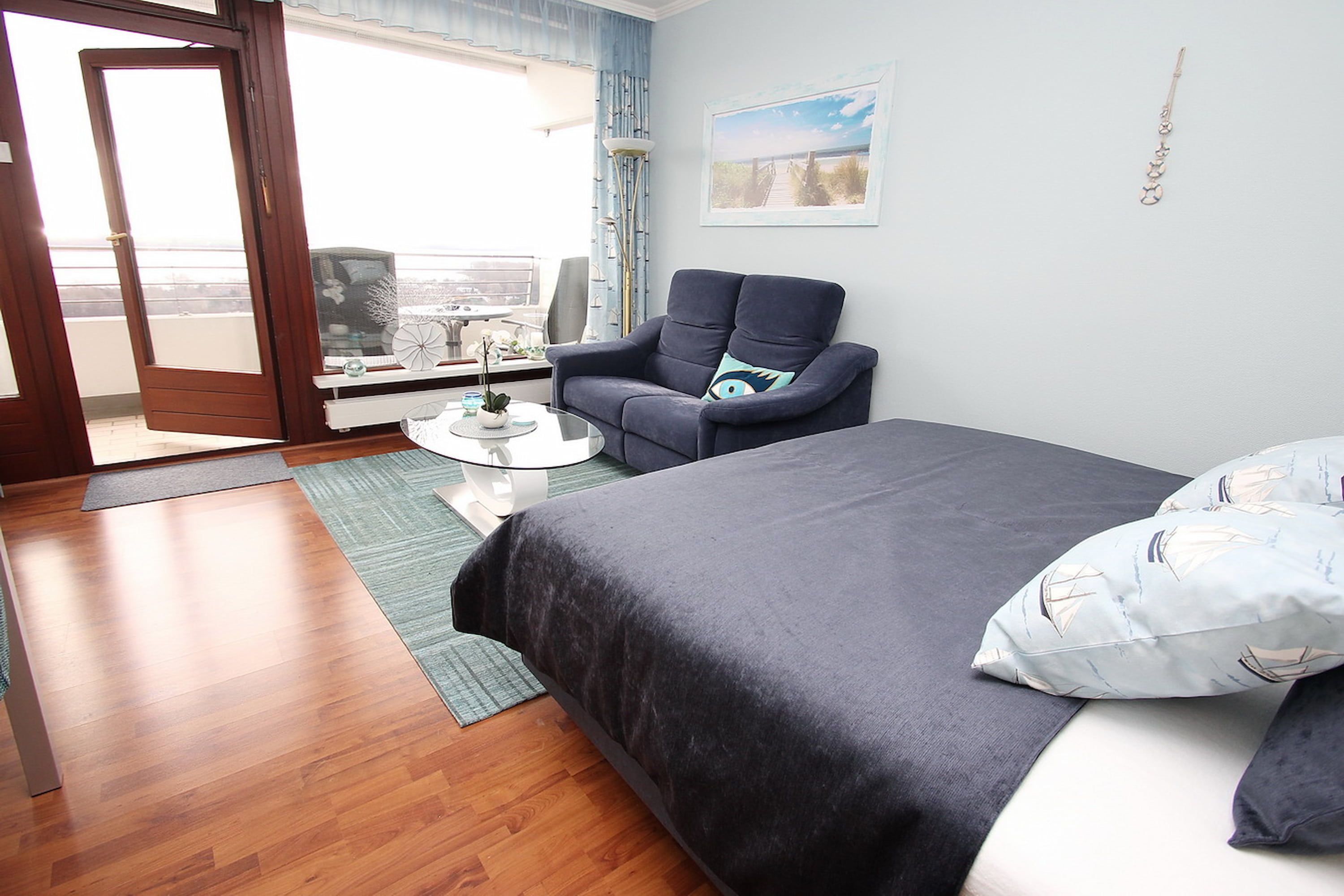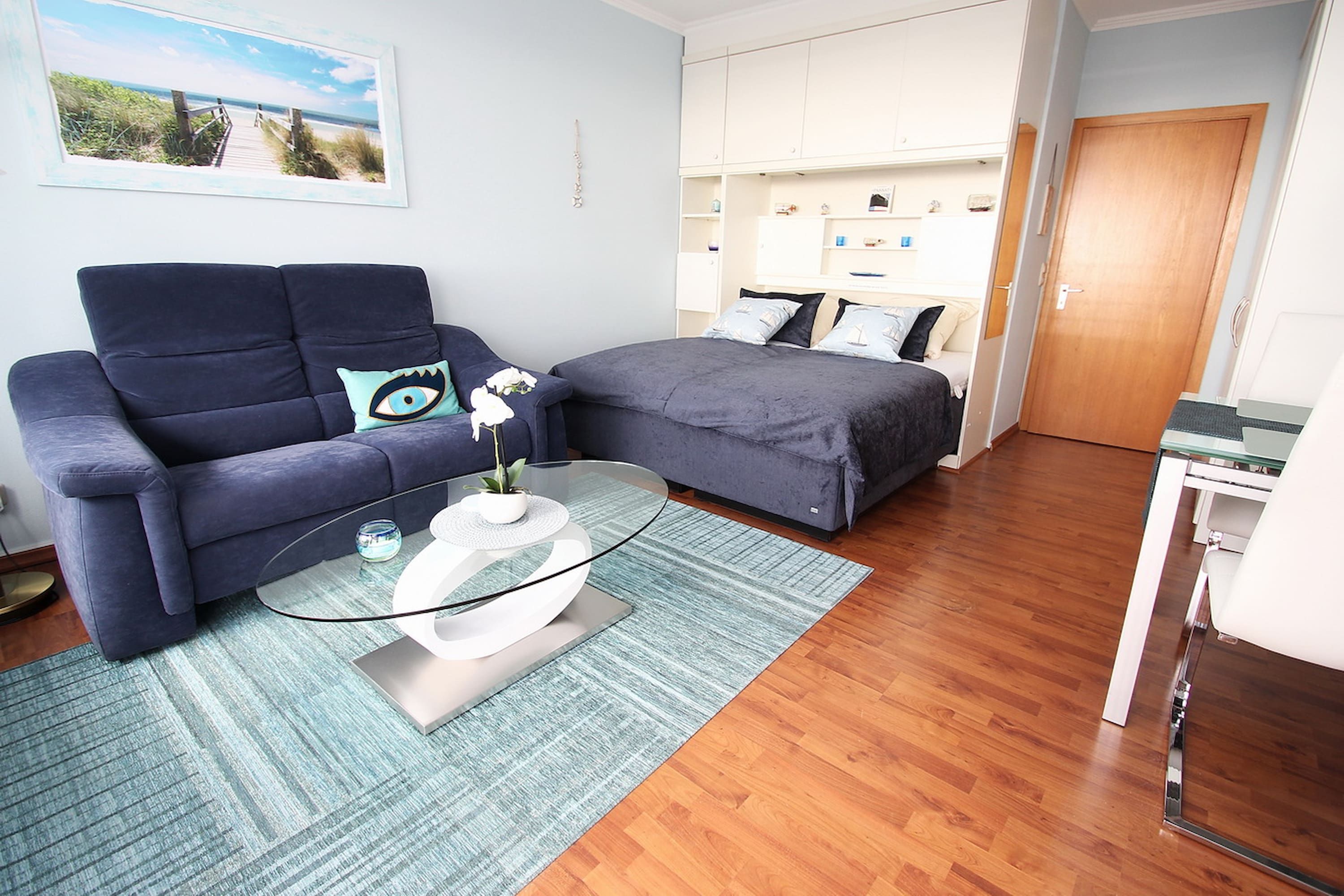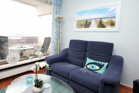 Dieses charmante und geschmackvoll eingerichtete Appartement wird Sie begeistern. Es ist hell und freundlich, ideal für zwei Personen. Der Wohnbereich ist ausgestattet mit einem bequemen Doppelbett (2x 80 cm x 200 cm), einer gemütlichen Couch mit Tisch. Des Weiteren gehören zu der Einrichtung ein Kleiderschrank und ein kleiner Esstisch mit zwei Stühlen. Die Küche ist im Flurbereich integriert, von dem Sie auch das Bad erreichen. Dieses strandnah gelegene, bezaubernde Appartement hat die besten Voraussetzungen für einen erholsamen Urlaub. Auch Ihr Vierbeiner ist in diesem Appartement herzlich willkommen. Vom sonnigen Balkon schauen Sie auf die Mecklenburger Bucht, die Hafeneinfahrt und die Trave mit lebhaftem Schiffsverkehr.