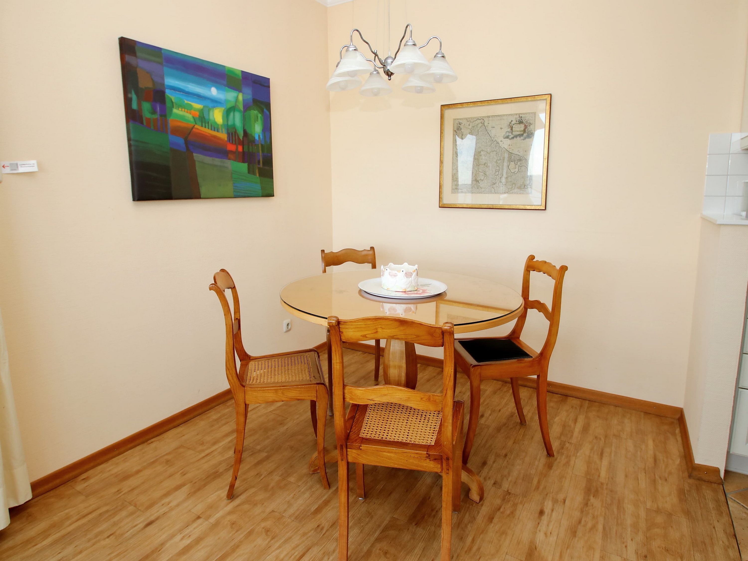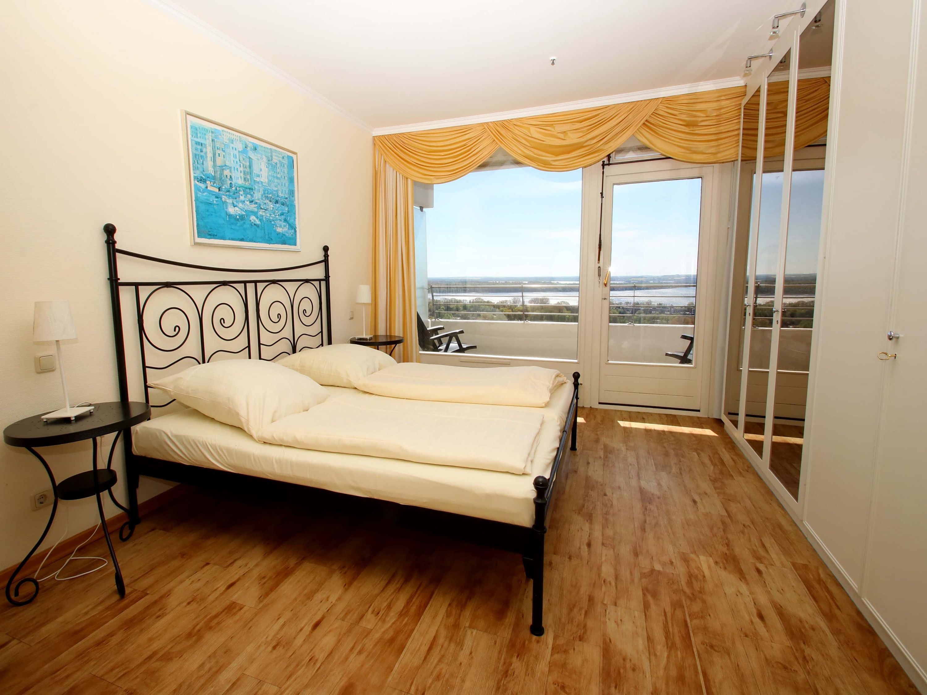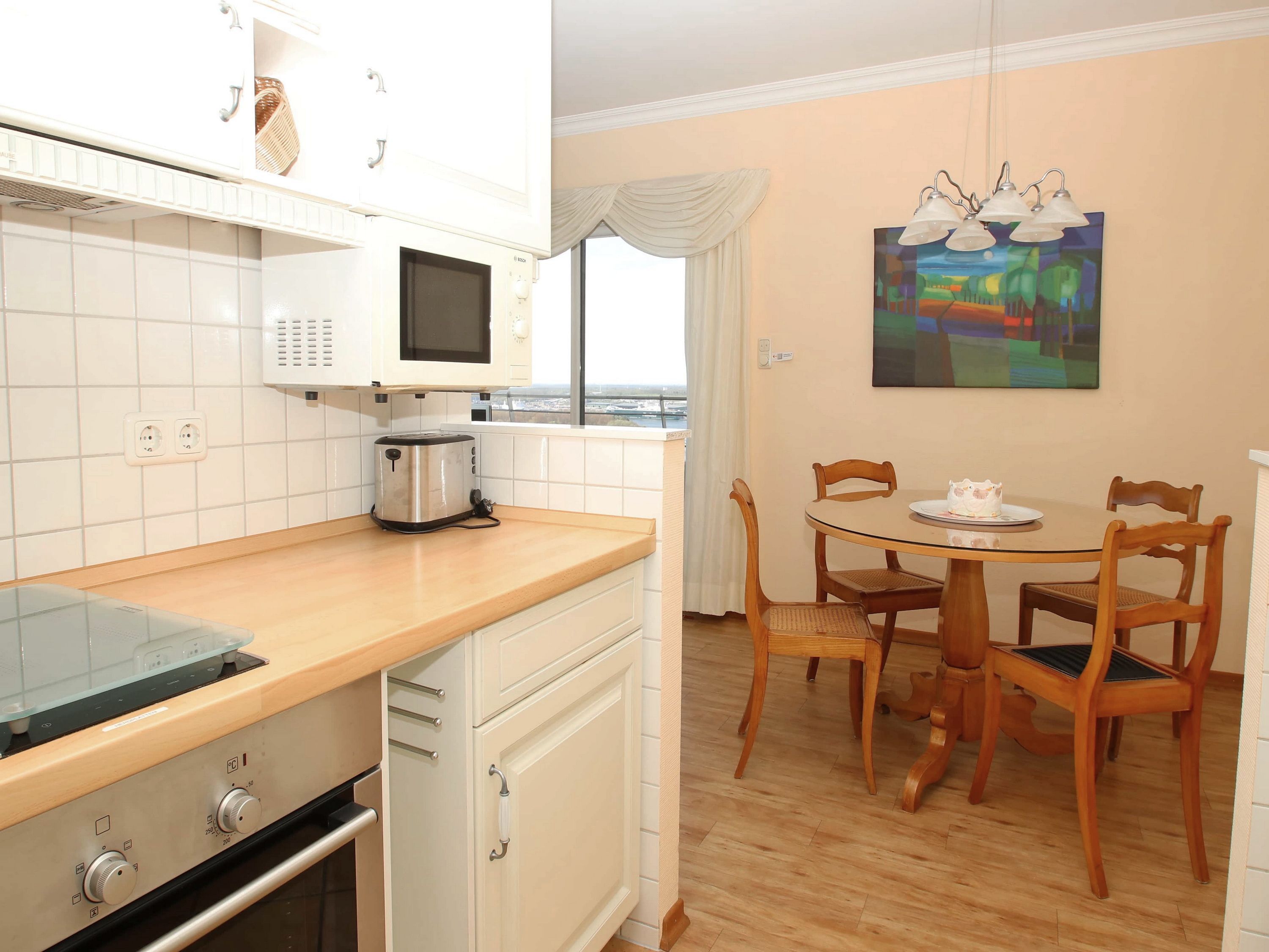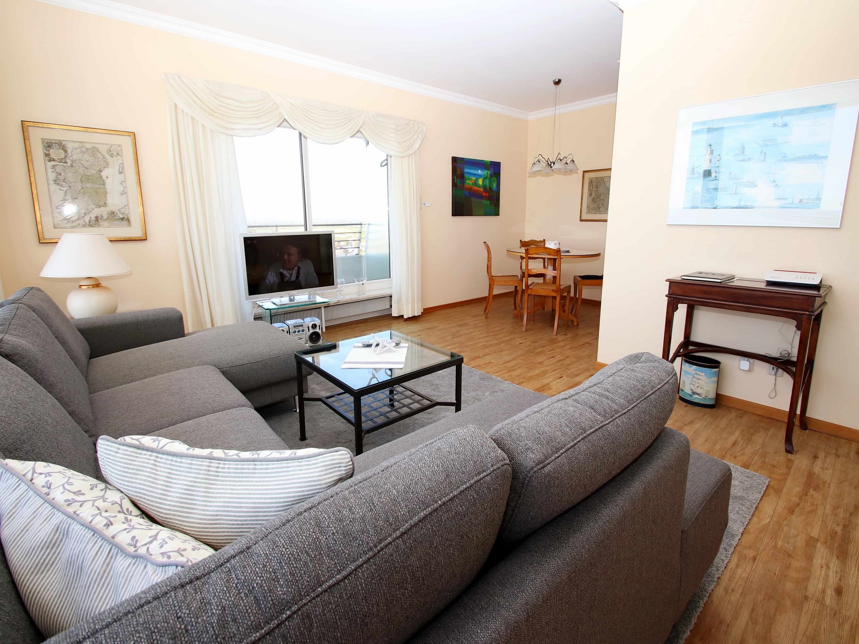 Dieses schöne Appartement in traumhafter Lage mit einer hochwertigen und stilvollen Inneneinrichtung ist einmalig. Auch Ihr Vierbeiner ist in diesem Appartement herzlich willkommen. Für den Wohnraum, inklusive der schönen Essecke, wurden elegante Möbel und Dekorationen ausgewählt. Des Weiteren erwartet Sie im hellen Wohnzimmer eine gemütliche Couch mit Ottomane und einem Wohnzimmertisch. Die Küche befindet sich gegenüber der Essecke. Das Schlafzimmer ist mit einem sehr schönen Doppelbett (2x 90 cm x 200 cm) und einer Kleiderschrankwand eingerichtet. Vom Flur abgehend gelangen Sie in das moderne Bad. Den sonnigen Balkon erreichen Sie vom Wohn- und Schlafzimmer. Hier genießen Sie den Ausblick zur Mecklenburger Bucht, zur Altstadt und zur Trave mit lebhaftem Schiffsverkehr.