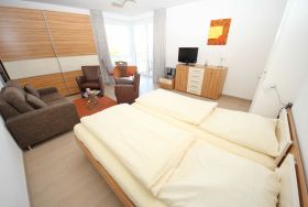 Balkon, Küchenzeile, Geschirrspüler, Mikrowelle, Duschbad/WC, Fön, TV, DVD, Stereoanlage, kostenl. W-Lan, Aufzug, inkl. Tiefgaragenstellplatz (Einfahrtshöhe: 1,85 m).