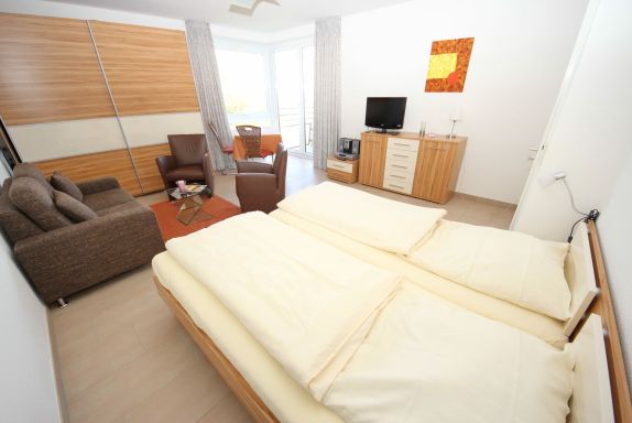 Dieses modern und komfortabel eingerichtete Appartement mit direktem Zugang zur Strandpromenade, ist einmalig schön gelegen. Ausgestattet ist der sehr ansprechende, helle Wohnraum mit einem bequemen Doppelbett (2x 90 cm x 200 cm), einem großen Kleiderschrank, einer gemütlichen Couch, zwei Ledersesseln mit Tisch sowie einem Esstisch mit zwei Stühlen. Die moderne Küchenzeile ist im Flur integriert, von dem auch das neuwertige Bad abgeht. Das farblich sehr schön abgestimmte Mobiliar verleiht dem geräumigen Appartement einen behaglichen Charakter. Rundum eine Wohnung zum Wohlfühlen. Vom Wohnraum oder vom Balkon schauen Sie direkt auf die Ostsee und auf den Strand.