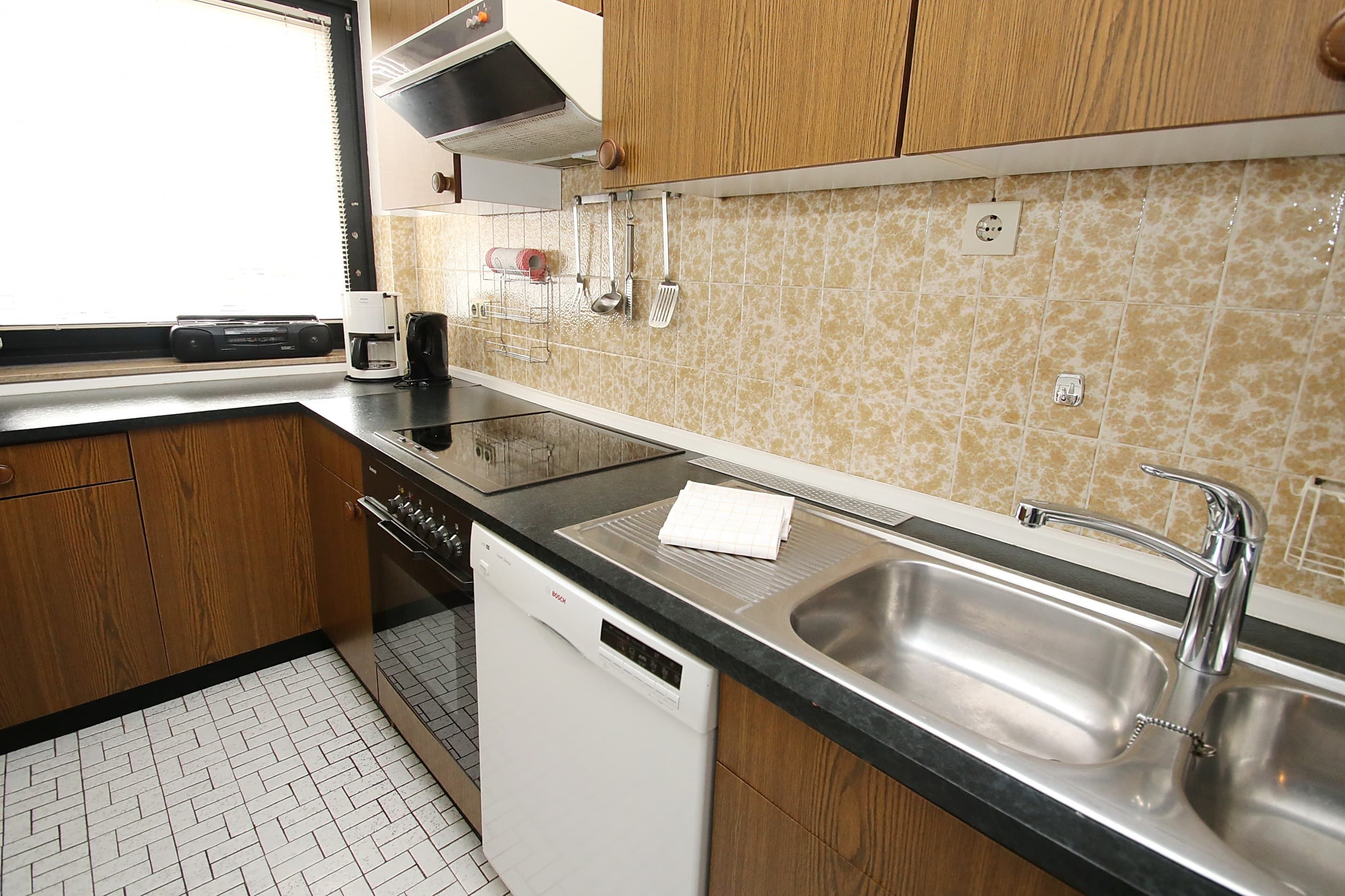 Sonnige Dachterrasse von ca. 40 m² mit Strandkorb, Küche, Geschirrspüler, Mikrowelle, Duschbad/WC, Fön, (Waschmaschine und Trockner im Haus), TV, DVD, Stereoanlage, Aufzug, inkl. Tiefgaragenstellplatz (Einfahrtshöhe: 1,85 m).