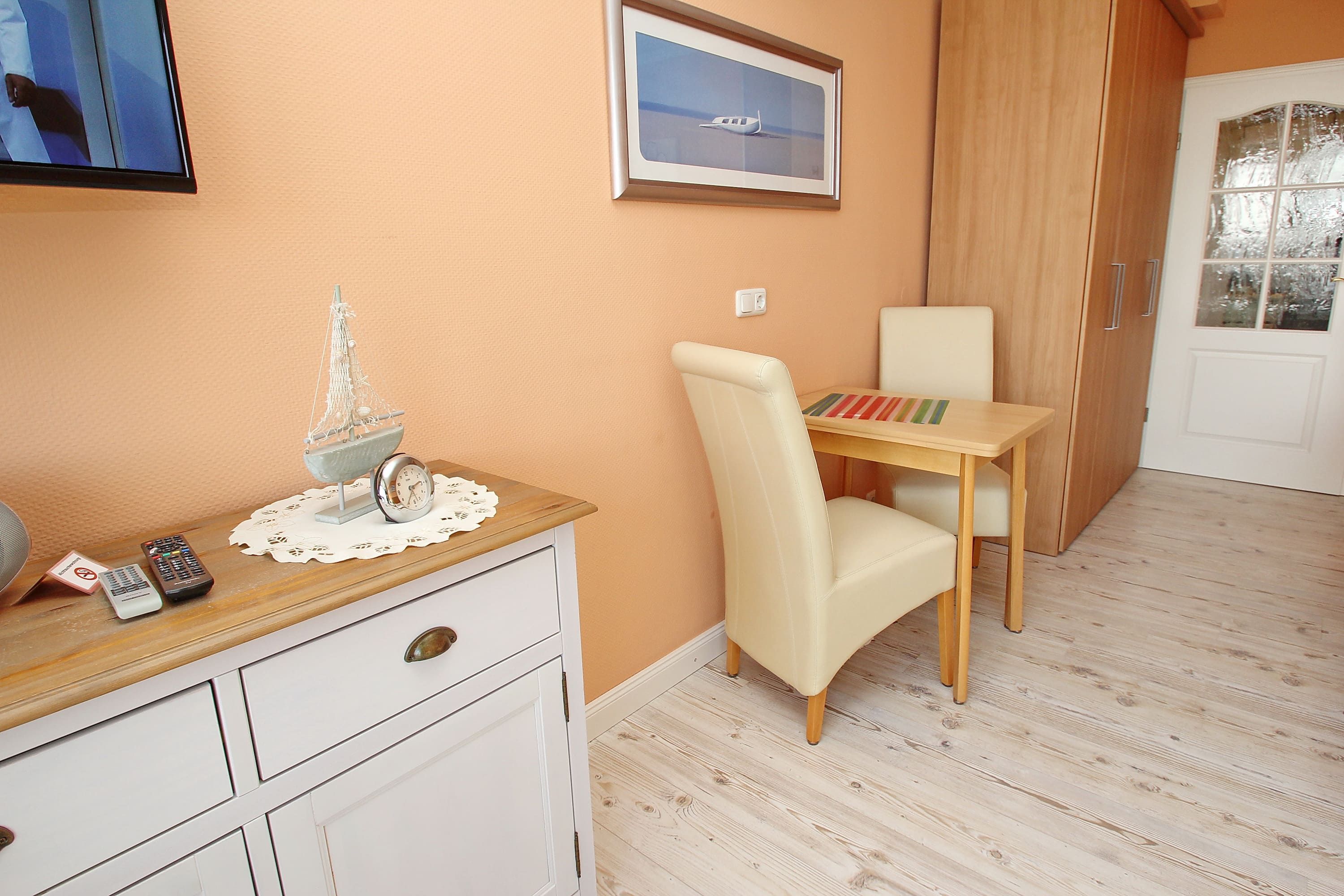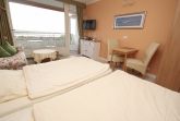 Dieses ansprechende Appartement ist exklusiv und komfortabel eingerichtet und lädt zu einem erholsamen Urlaubsaufenthalt an der Ostsee ein. Frische, warme Farben beleben das Ambiente dieser schönen Wohnung. Im Wohnraum befinden sich zwei komfortable zusammenstehende Einzelbetten (je 90 cm x 200 cm), ein Kleiderschrank und eine bequeme Couch mit Tisch. Gegenüber stehen eine schicke Anrichte und eine Essecke mit Stühlen. Die Küche ist im Flur integriert. Das helle und moderne Duschbad geht vom Flur ab. Vom Balkon genießen Sie einen traumhaften Blick auf die Mecklenburger Bucht, die Pötenitzer Wiek und auf die Trave mit ein- und ausfahrendem Schiffsverkehr.