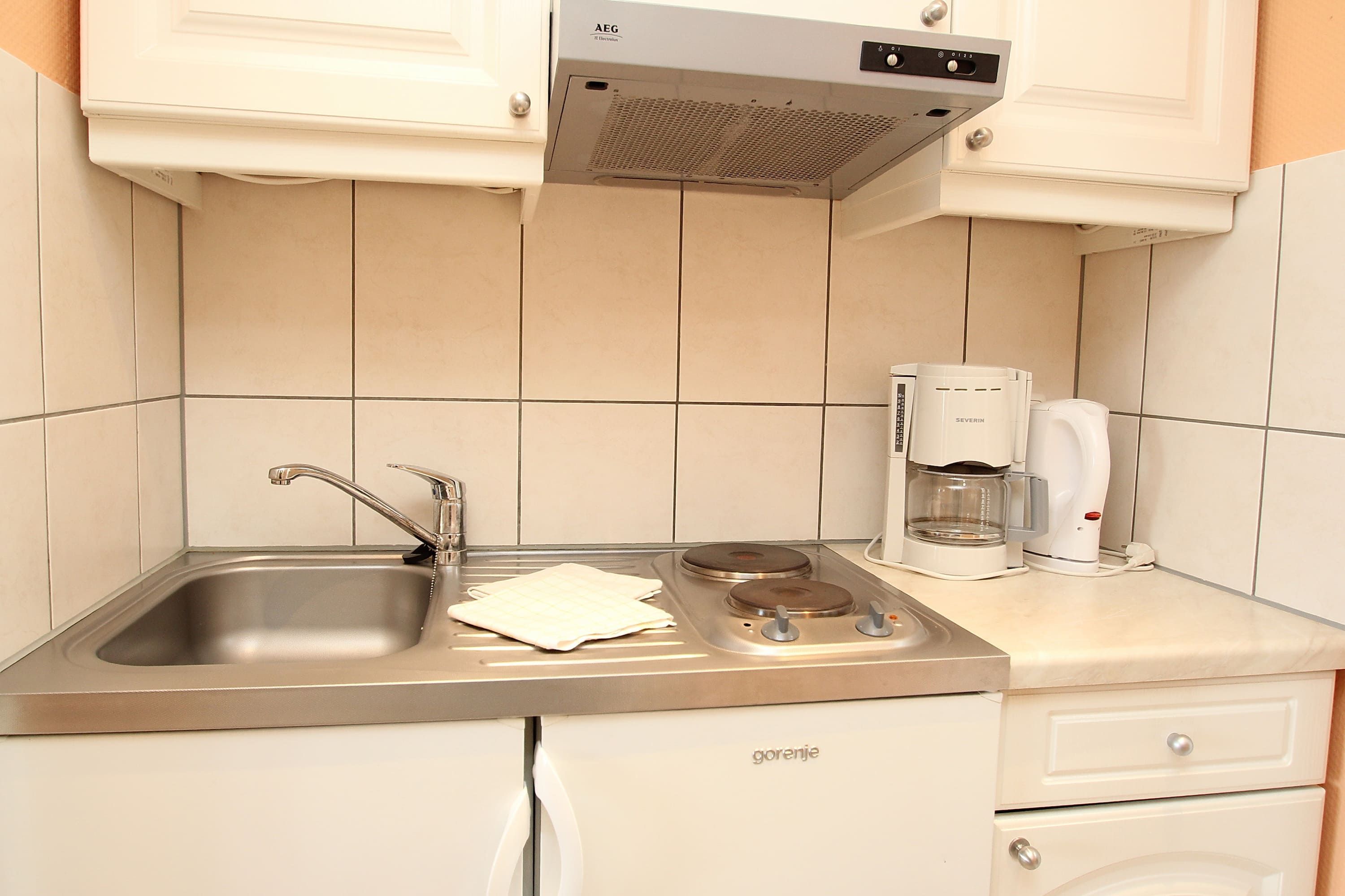 Balkon, Markise, Küchenzeile, Mikrowelle, Duschbad/WC, Fön, TV, Stereoradio mit CD, kostenl. W-Lan, Safe, Aufzug, inkl. Tiefgaragenstellplatz (Einfahrtshöhe: 1,85 m).