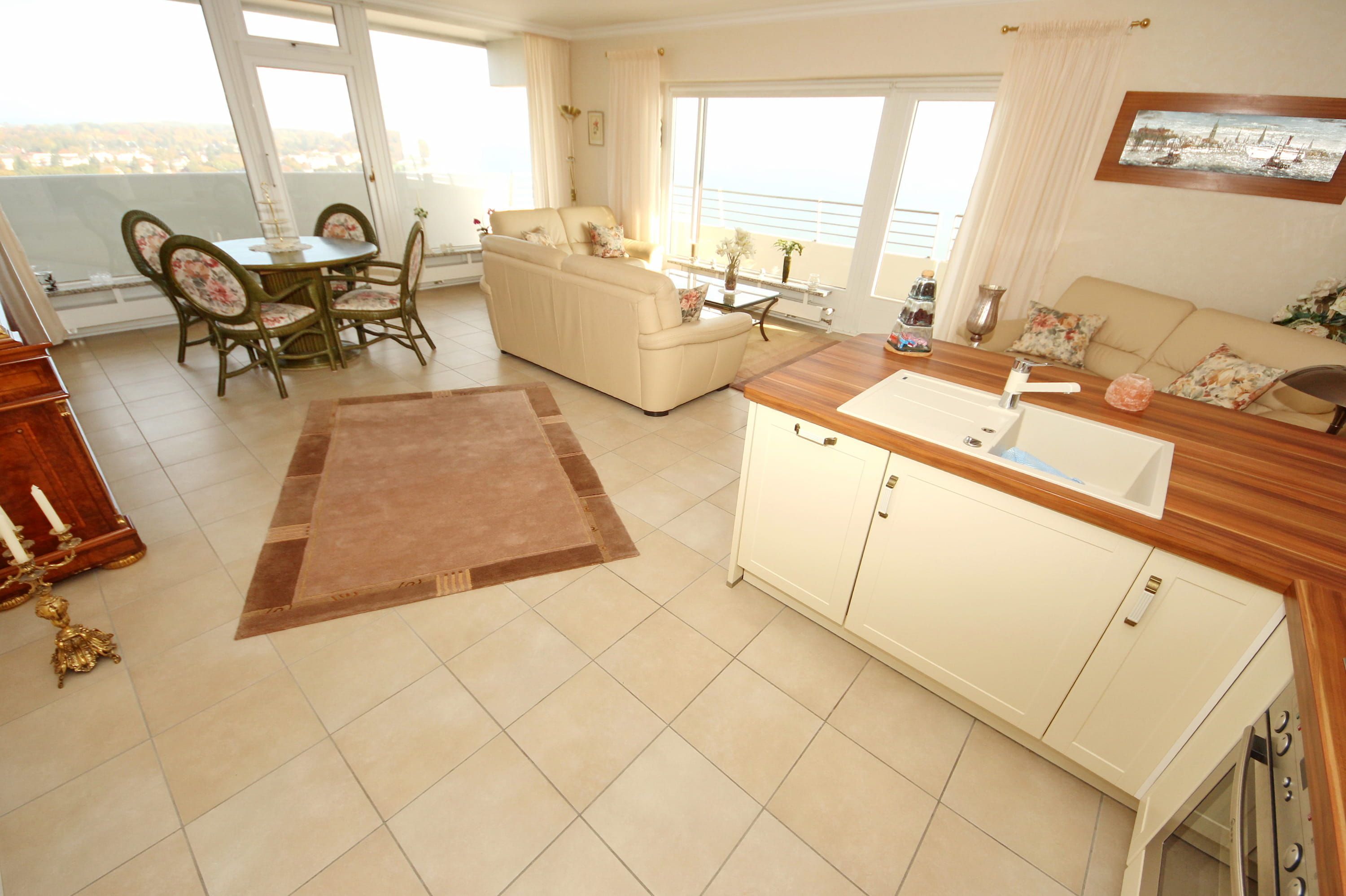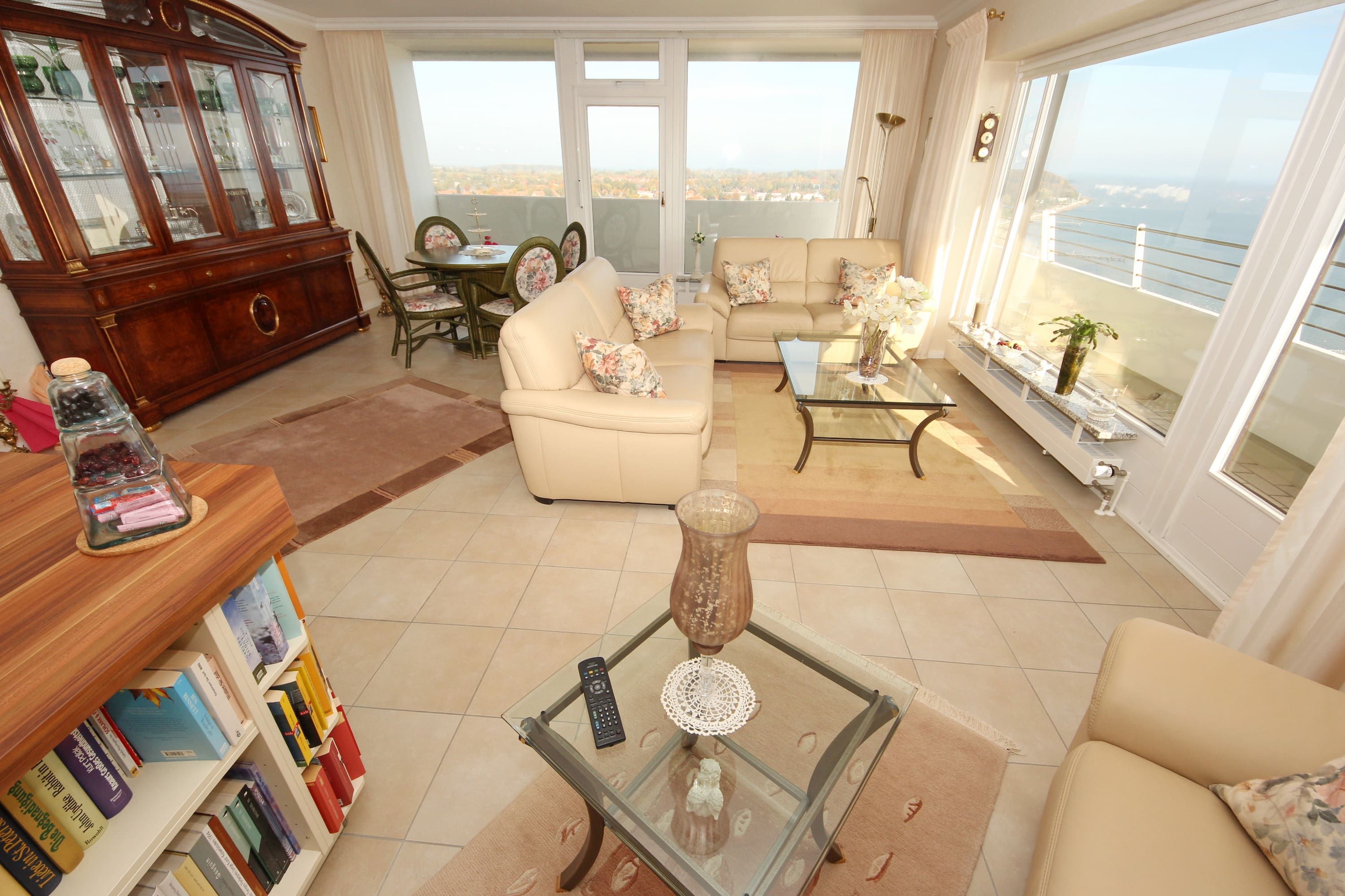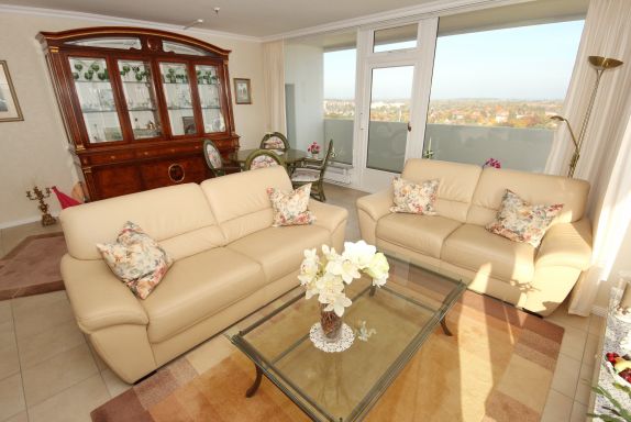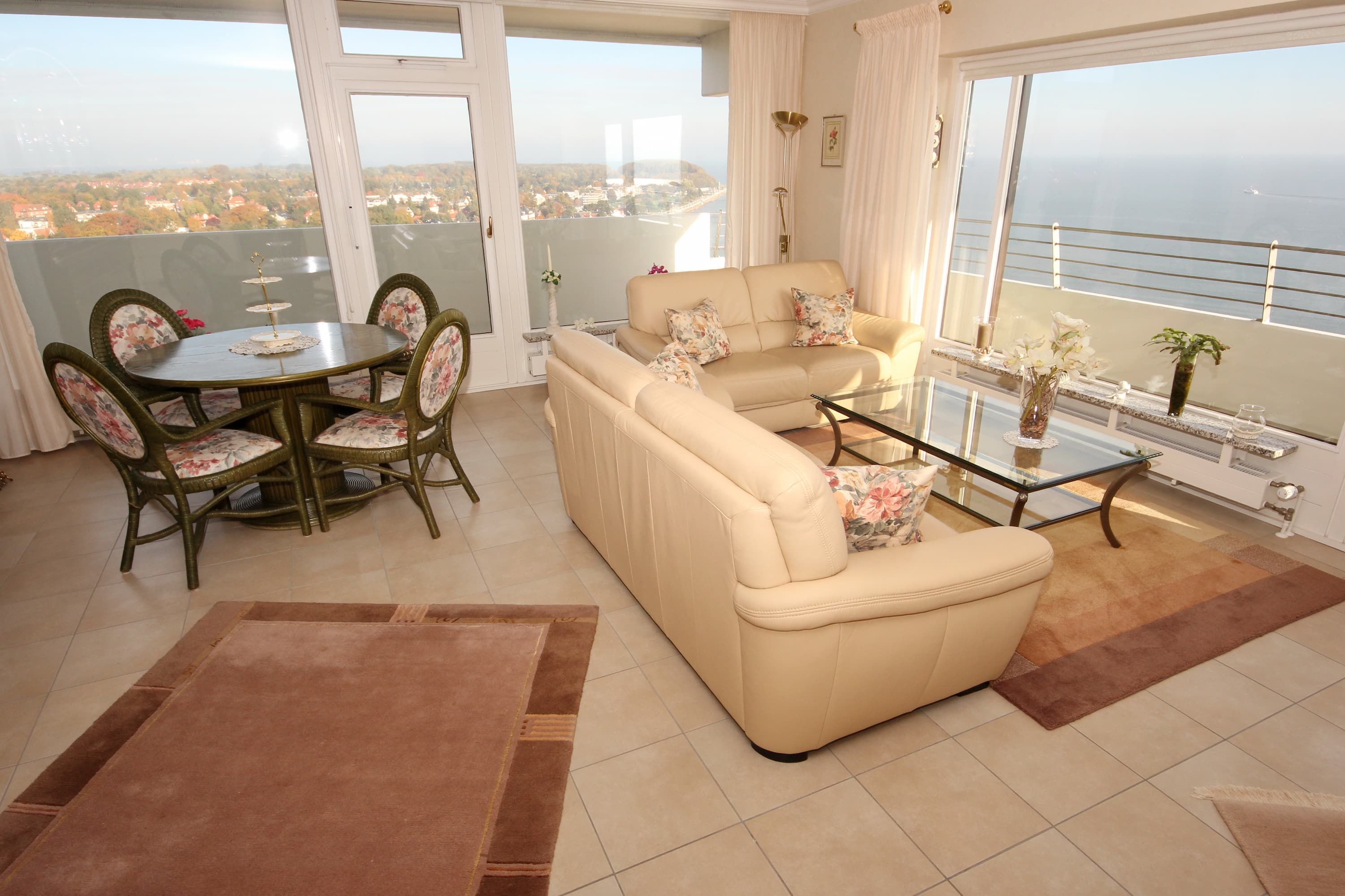 Dieses elegante 2-Zimmer-Appartement hat eine exklusive Ausstattung, die allen Ansprüchen entspricht und sofort zum Wohlfühlen einlädt. Der großzügige, helle Wohnraum hat eine moderne, offene Einbauküche. Die weitere Einrichtung besteht aus einer schönen, dreiteiligen Couchgarnitur mit Tischen, einer Essecke direkt am Fenster und einem antiken Glasvitrinenschrank. Im Schlafzimmer befinden sich ein großes, bequemes Doppelbett (2x 90 cm x 200 cm) und ein geräumiger Einbaukleiderschrank. Das moderne Duschbad erreichen Sie vom Flur. Beide Wohnräume sind hell und freundlich und haben einen Zugang zum großen Eckbalkon. Hier genießen Sie einen uneingeschränkten Panoramablick direkt auf die Ostsee und zur Lübecker Bucht mit lebhaftem Schiffsverkehr.