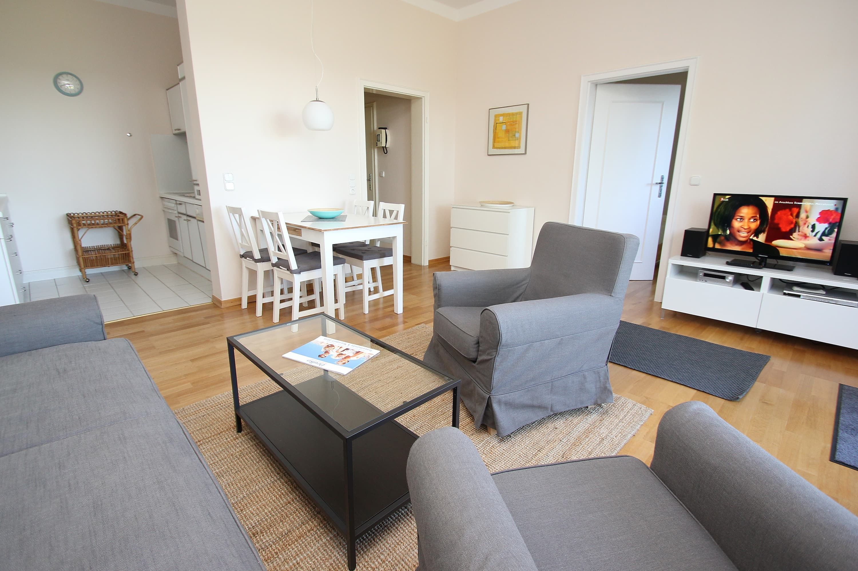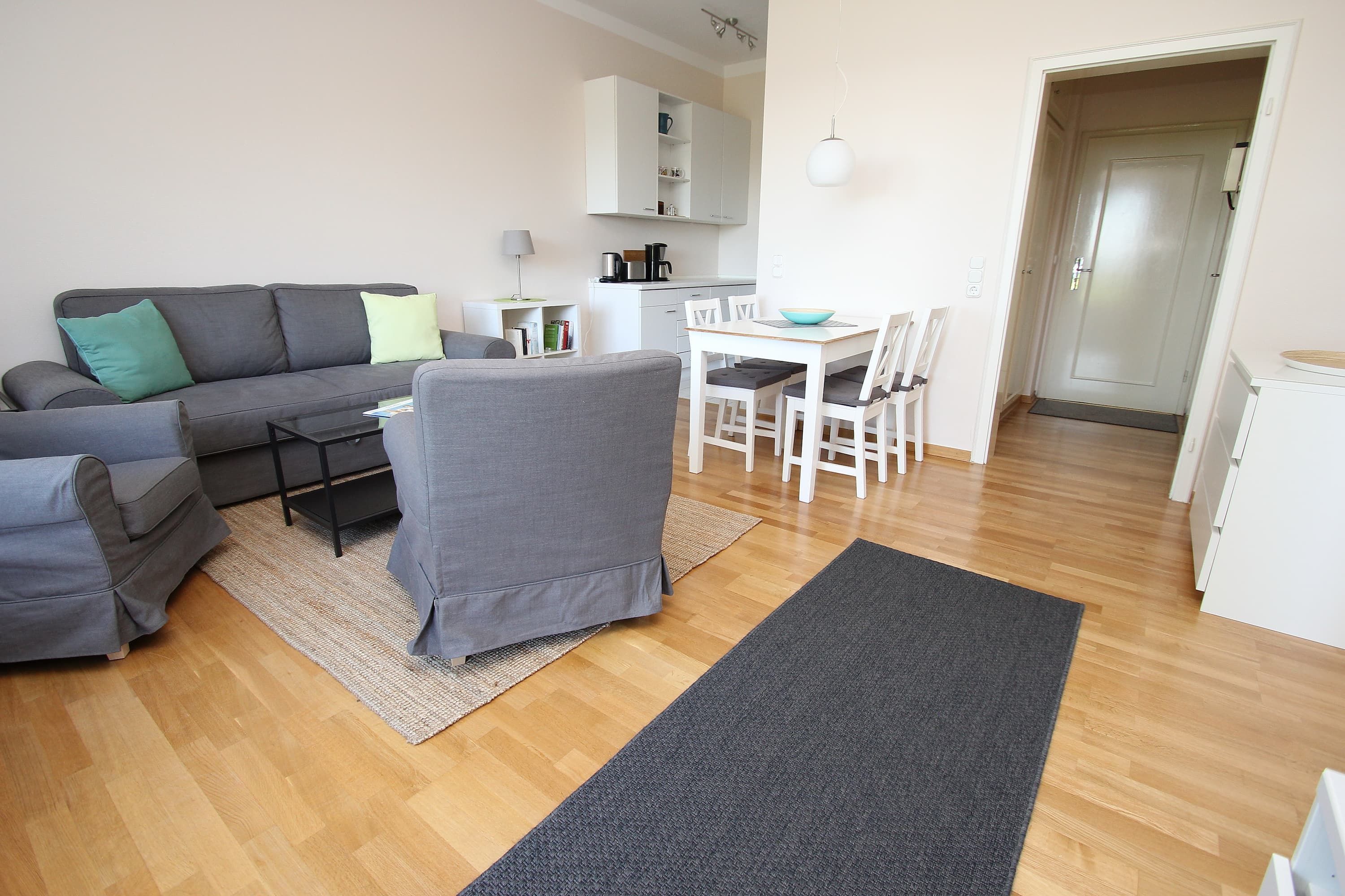 Terrasse, Außenjalousien, Küche, Geschirrspüler, Duschbad/WC, Fön, TV, Stereoanlage, kostenl. W-Lan, Aufzug, inkl. Tiefgaragenstellplatz (Einfahrtshöhe: 1,95 m).