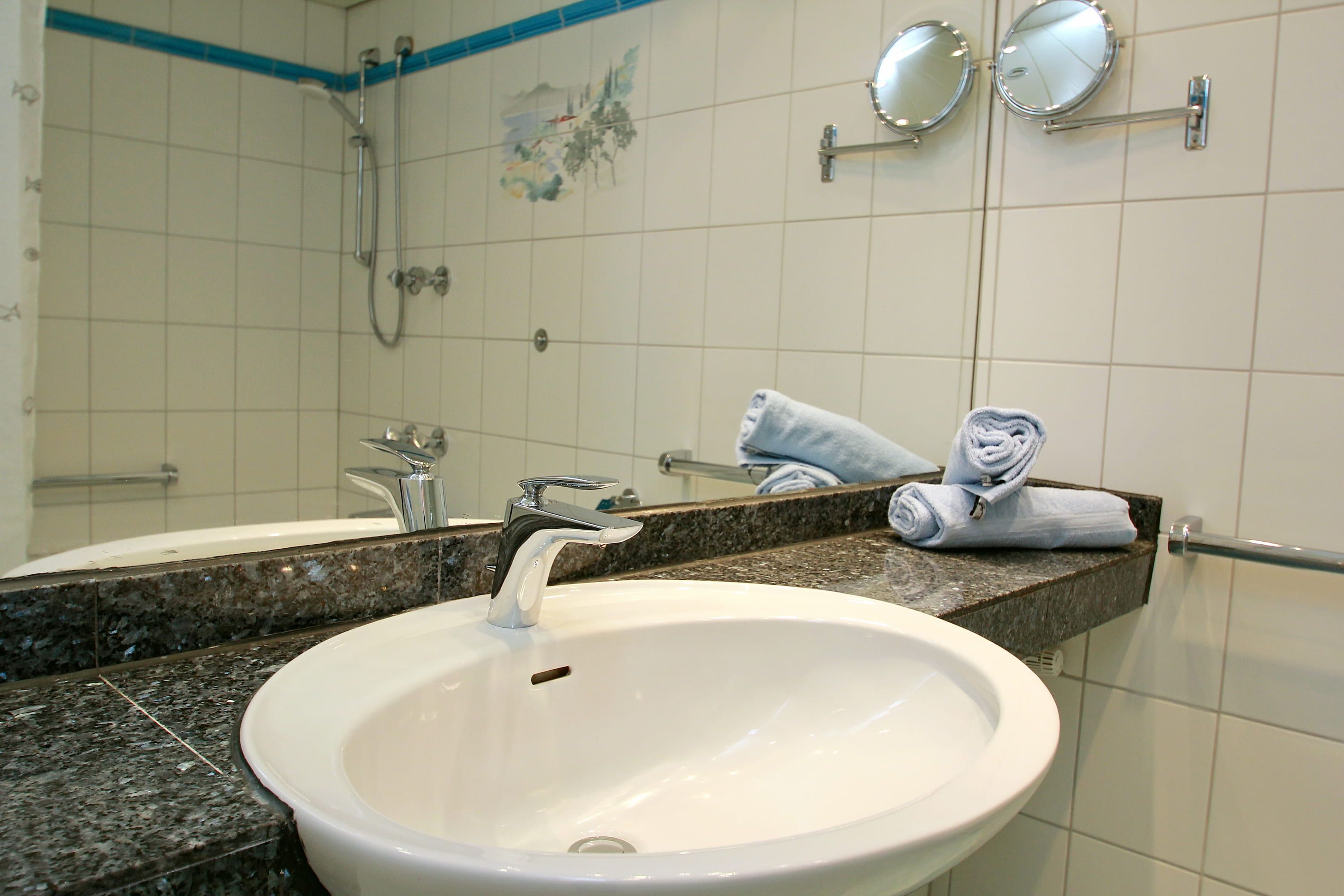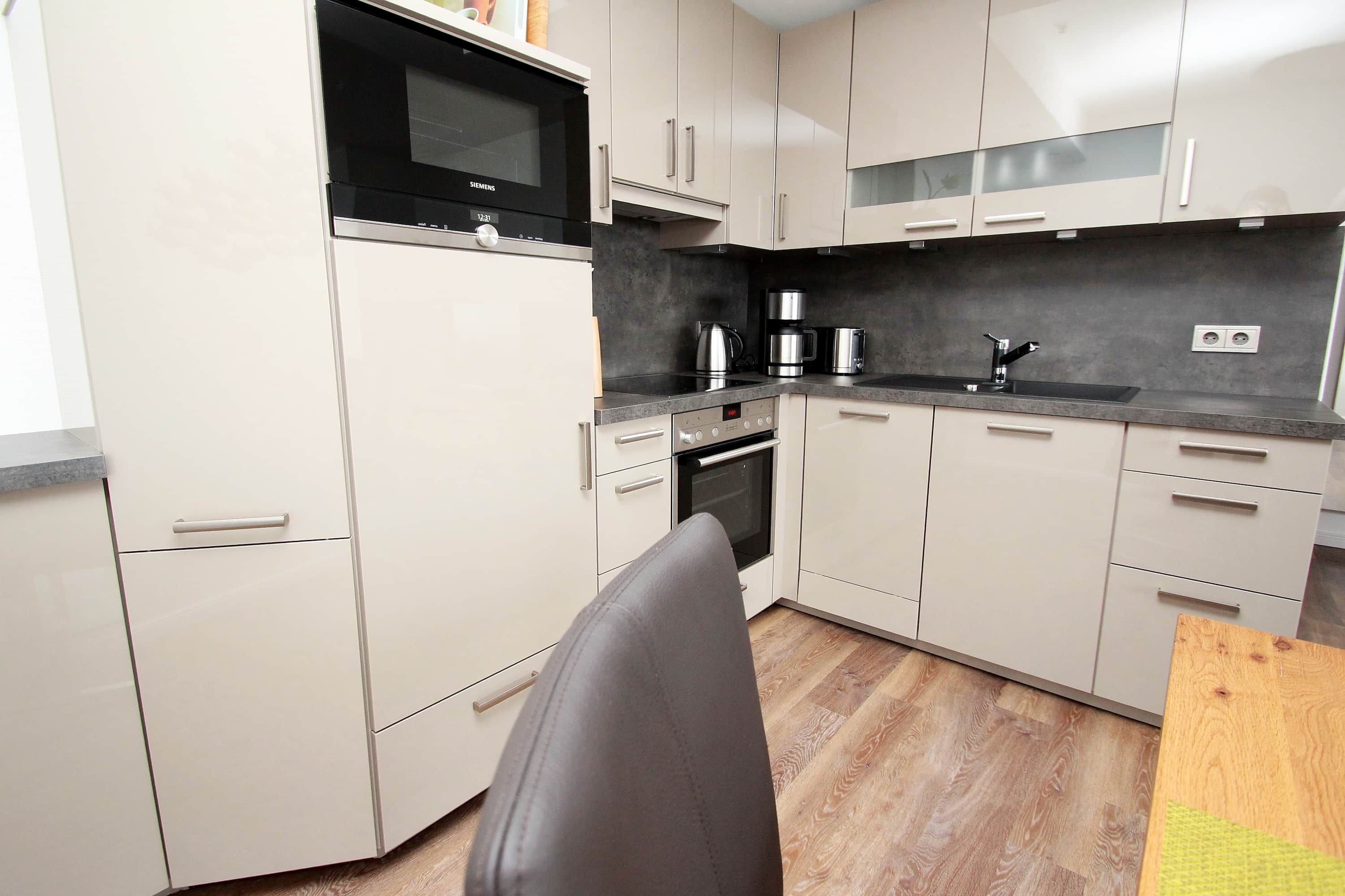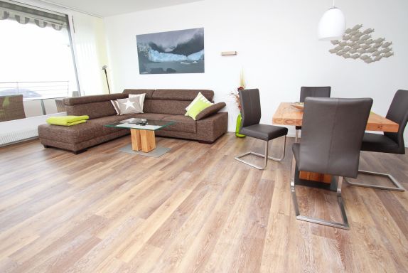 Balkon, Markisen, Küche, Geschirrspüler, Mikrowelle, Duschbad/WC, Fön, TV, DVD, Stereoradio mit CD, kostenl. W-Lan, Aufzug, inkl. Tiefgaragenstellplatz (Einfahrtshöhe: 1,85 m).
