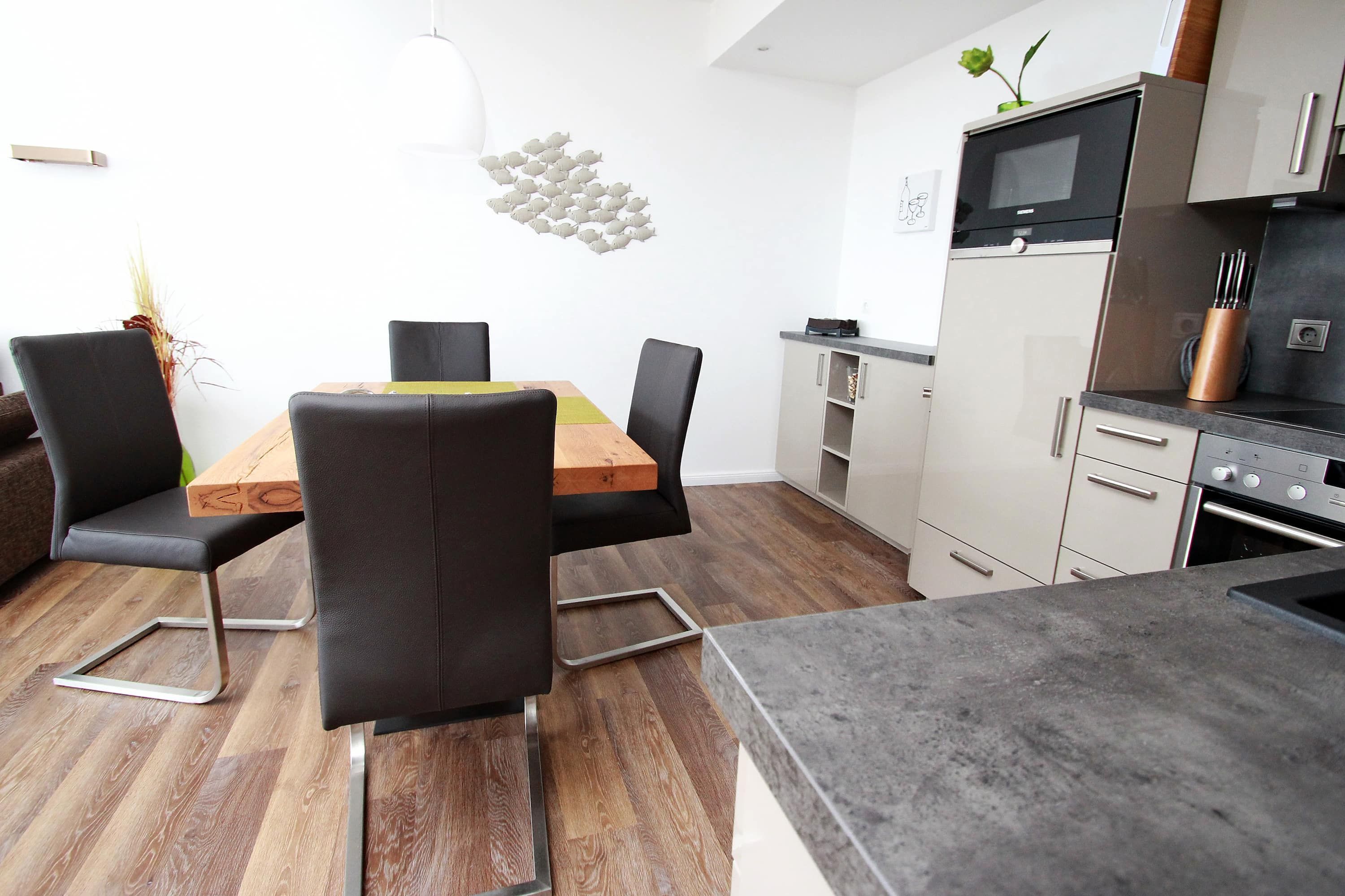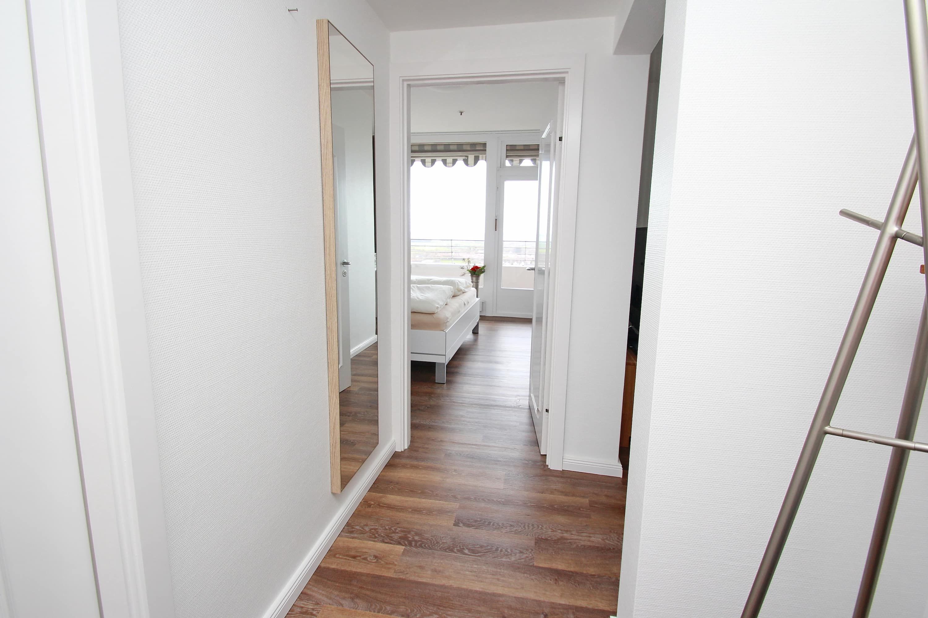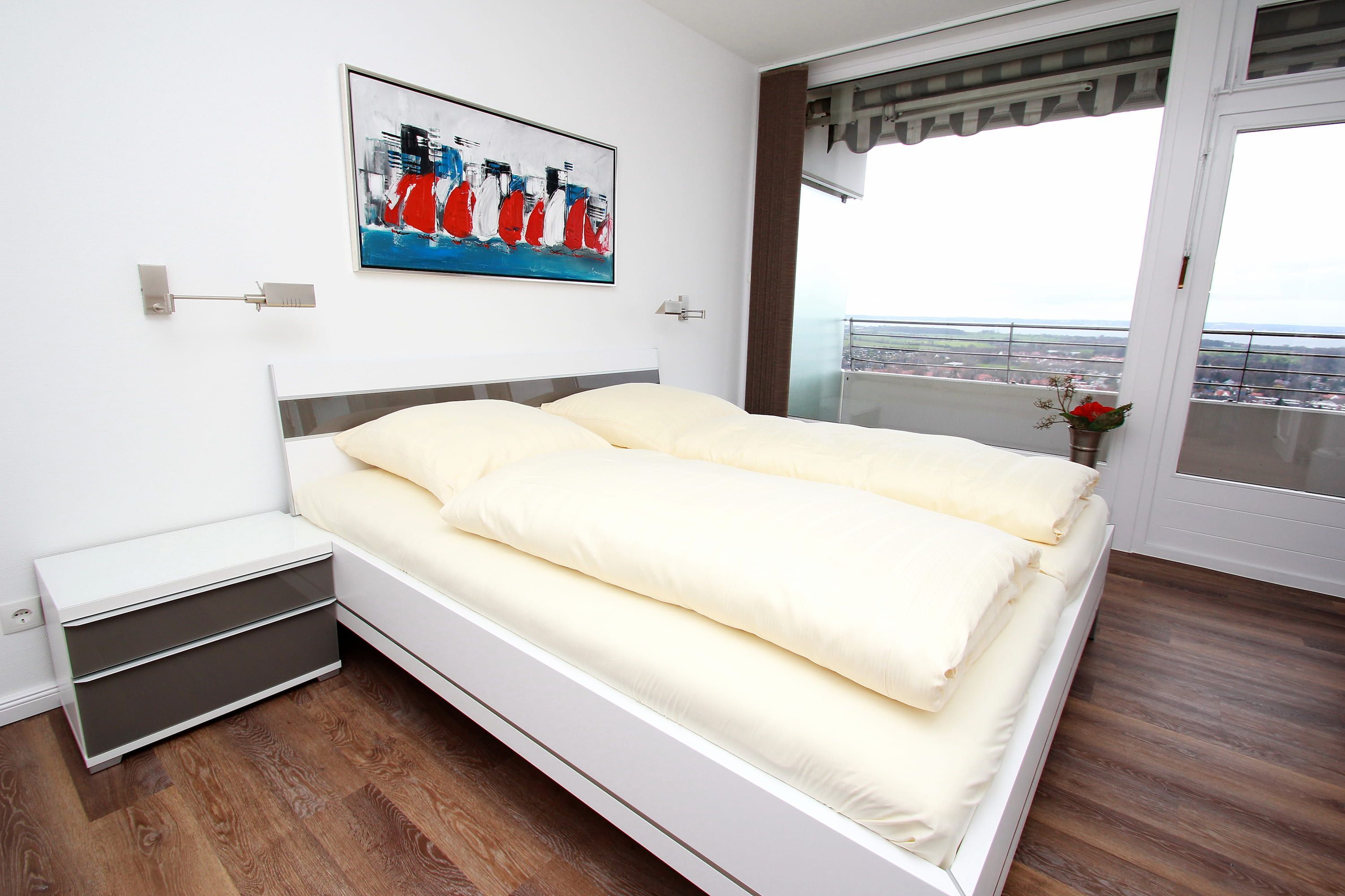 Dieses komfortable Appartement in bevorzugter Lage hat eine geschmackvolle, helle Einrichtung und lädt zu einem tollen Urlaubsaufenthalt ein. Hier können Sie aus nächster Nähe das Strandleben genießen und das beschauliche Spiel der Segelboote im Wind beobachten. Im Wohnraum stehen eine gemütliche Eckcouch mit Tisch und ein schöner Esstisch mit Stühlen neben der modernen Einbauküche. Das Schlafzimmer ist ausgestattet mit einem bequemen Doppelbett (2x 90 cm x 200 cm), einem Schminktisch und einem Einbaukleiderschrank. Das helle Duschbad geht vom Flur ab. Von Wohn- und Schlafraum erreichen sie den großen Balkon. Hier haben Sie einen traumhaften Ausblick auf die Strandpromenade, weit über die Lübecker Bucht bis hin zum Ostsee-Horizont.