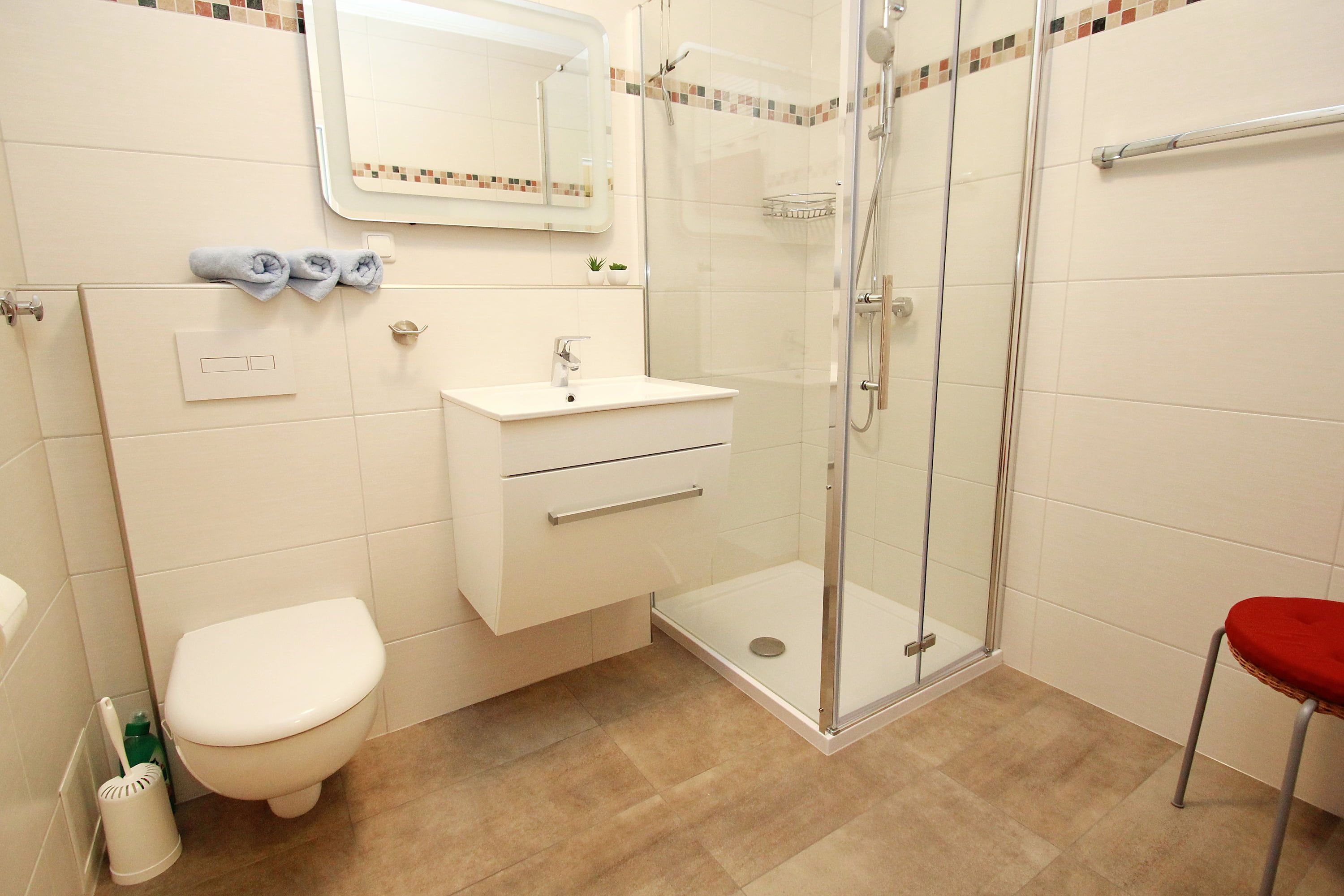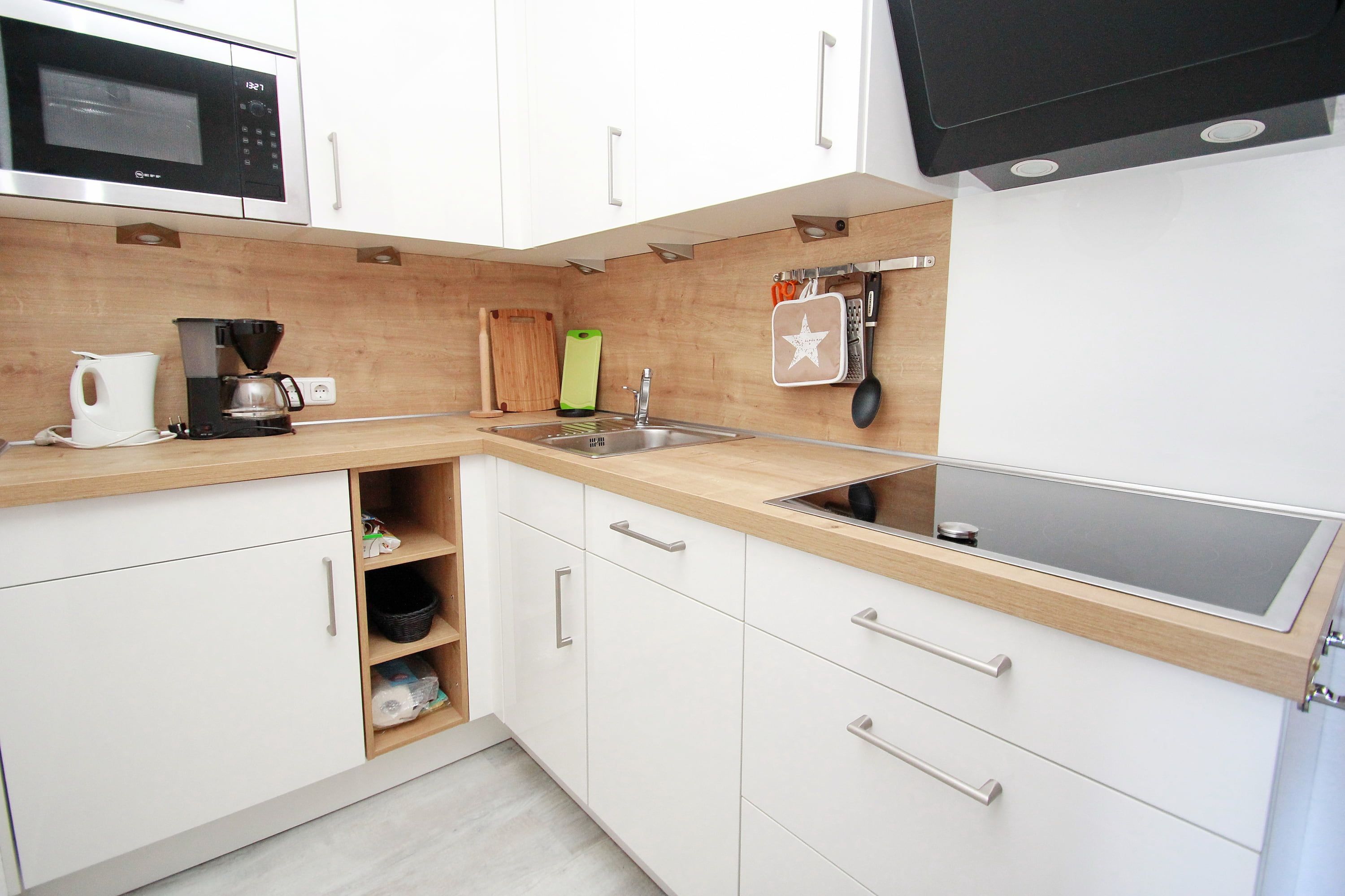 Terrasse, elektr. Außenjalousie, Küche, Geschirrspüler, Mikrowelle, Duschbad/WC, Fön, (Waschmaschine und Trockner im Haus), TV, Stereoanlage, kostenl. W-Lan, inkl. Tiefgaragenstellplatz (Einfahrtshöhe: 2,00 m).