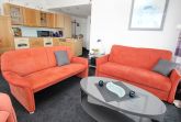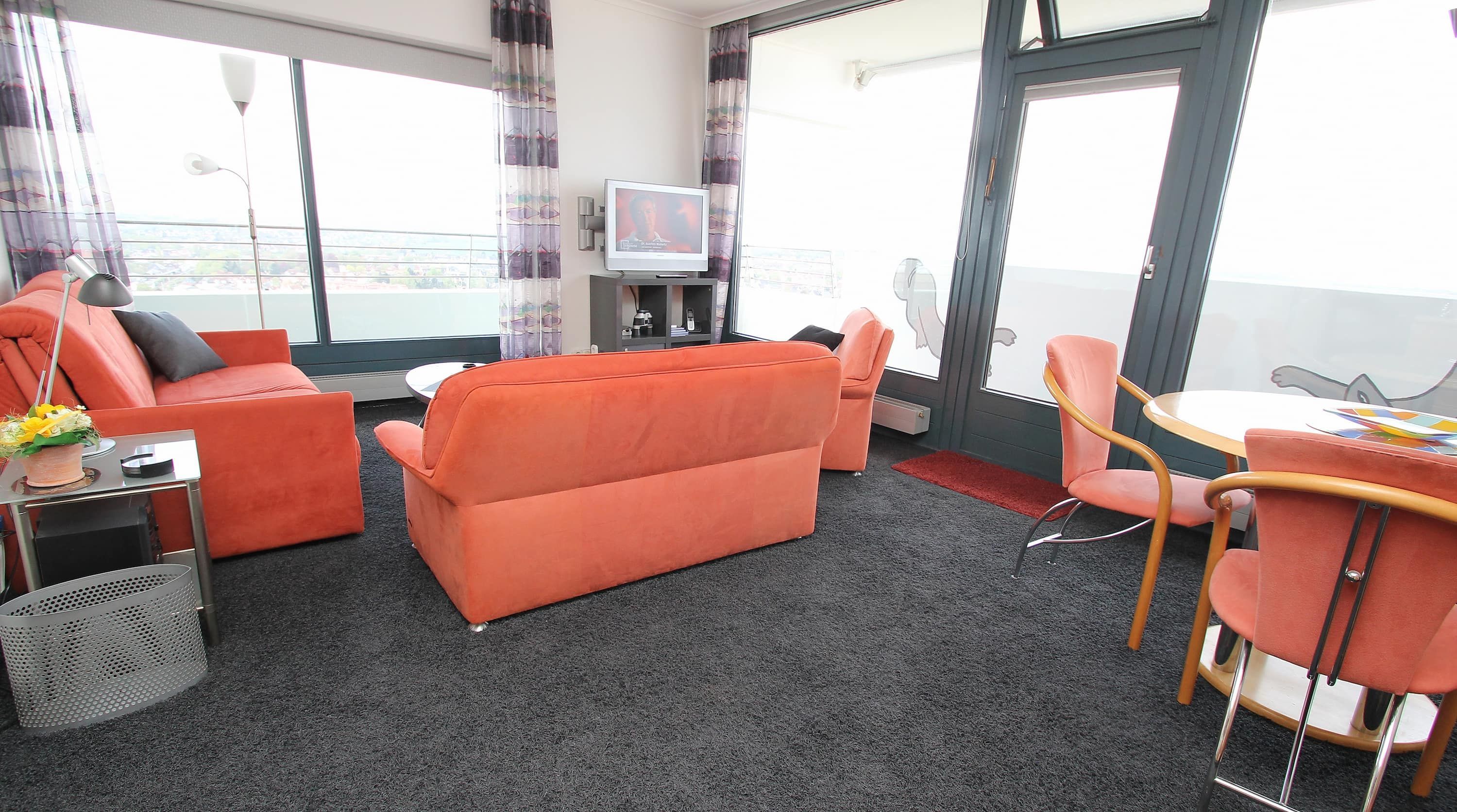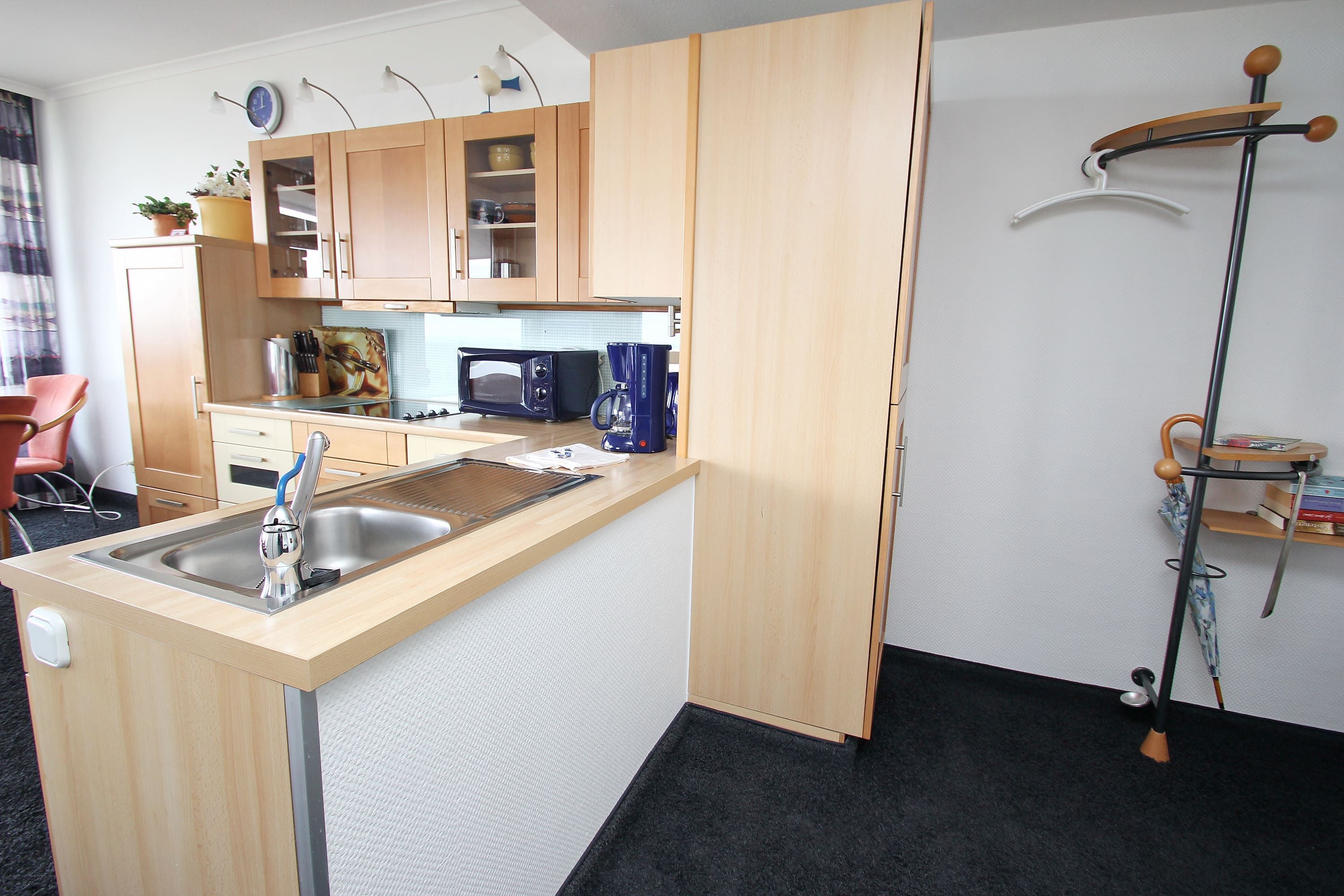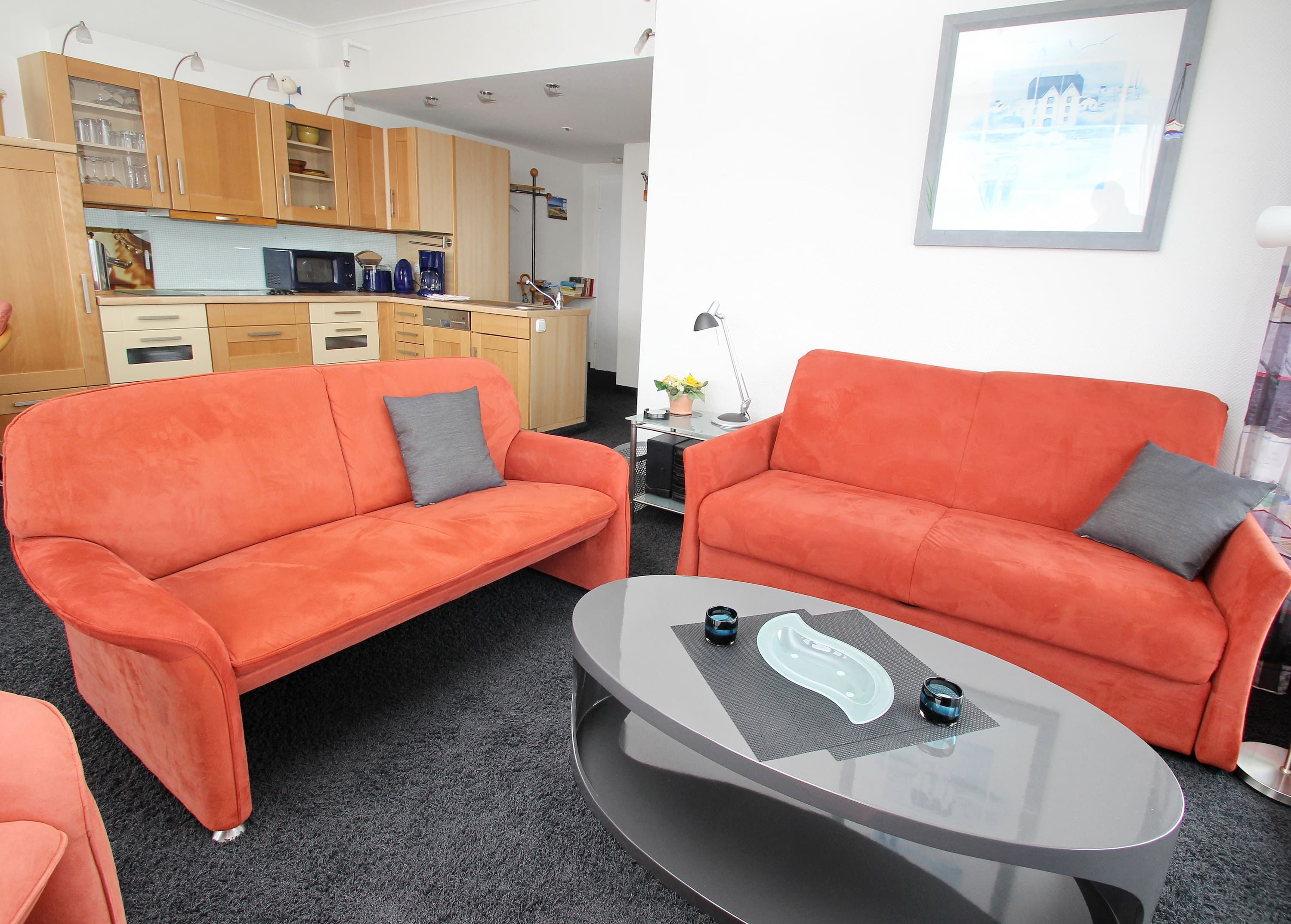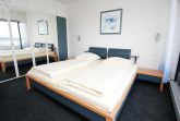 In diesem exklusiven, modernen Appartement wohnen Sie erster Klasse. Es entspricht allen Ansprüchen und lädt zum Wohlfühlen ein. Auch Ihr Vierbeiner ist in diesem Appartement herzlich willkommen. Der helle Wohnraum hat eine offene, moderne Einbauküche mit Essecke. Die weitere Einrichtung besteht aus einer komfortablen dreiteiligen Couchgarnitur und einem Tisch. Im Schlafzimmer stehen ein schönes Doppelbett (2x 100 cm x 200 cm) mit elektrisch verstellbarem Kopf- und Fußteil sowie ein großer Kleiderschrank mit Sideboard. Das moderne Duschvollbad erreichen Sie vom Flur. Von beiden Wohnräumen gelangen Sie auf den großen, sonnigen Eckbalkon, der Ihnen einen uneingeschränkten Panoramablick auf die Ostsee, die Altstadt und die Trave mit lebhaftem Schiffsverkehr ermöglicht.