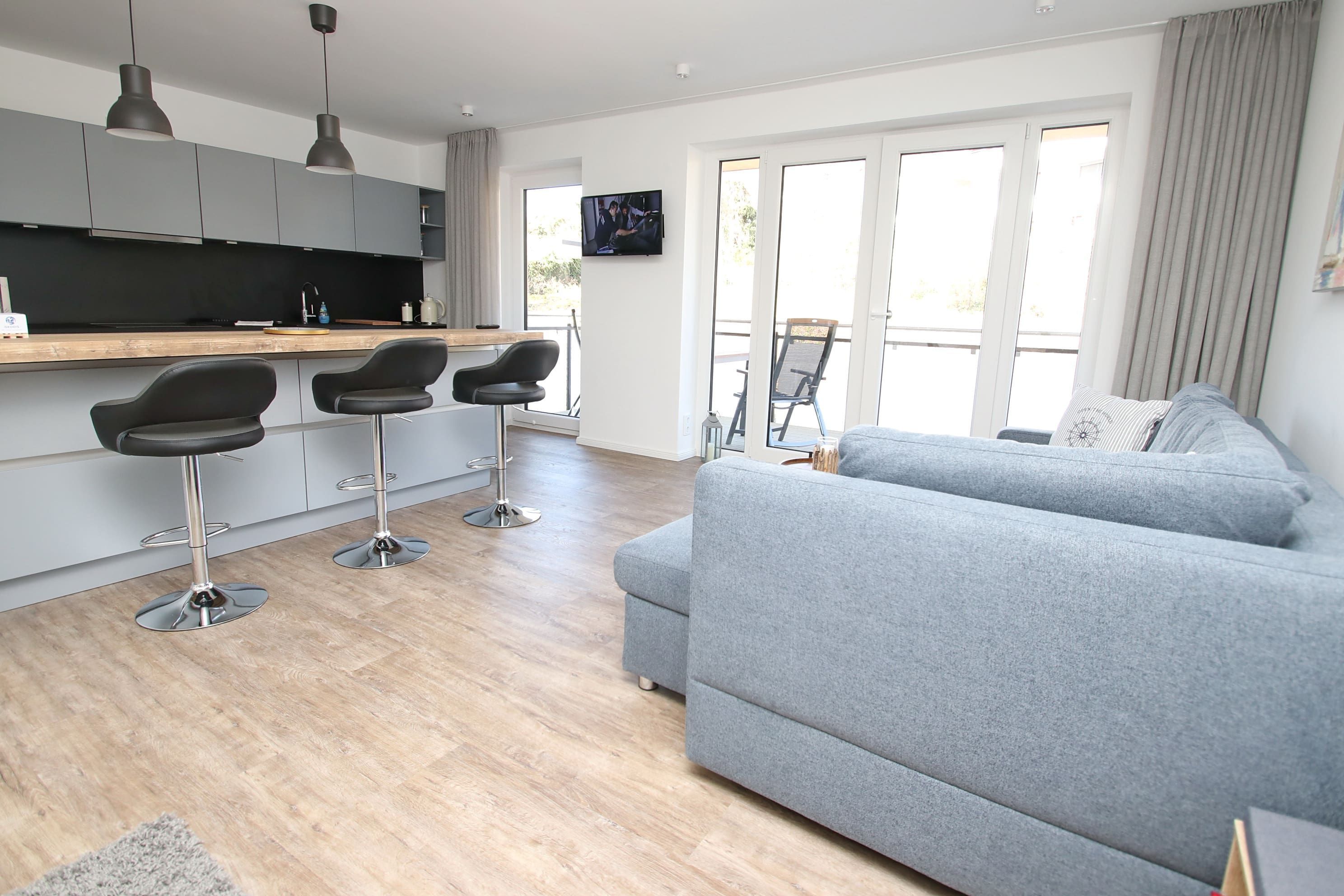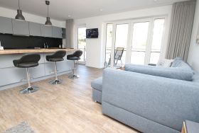 2-Zimmer-Ferienwohnung, 1. OG, ca. 70 m² mit Westbalkon.