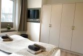 Das Schlafzimmer besitzt ein 1,80 x 2,00 m großes Bett, sowie zwei Kleiderschränke und ein TV-Gerät. Es ist mit Verdunklungsvorhängen, Verdunklungsplissees und einem Fliegengitter ausgestattet.