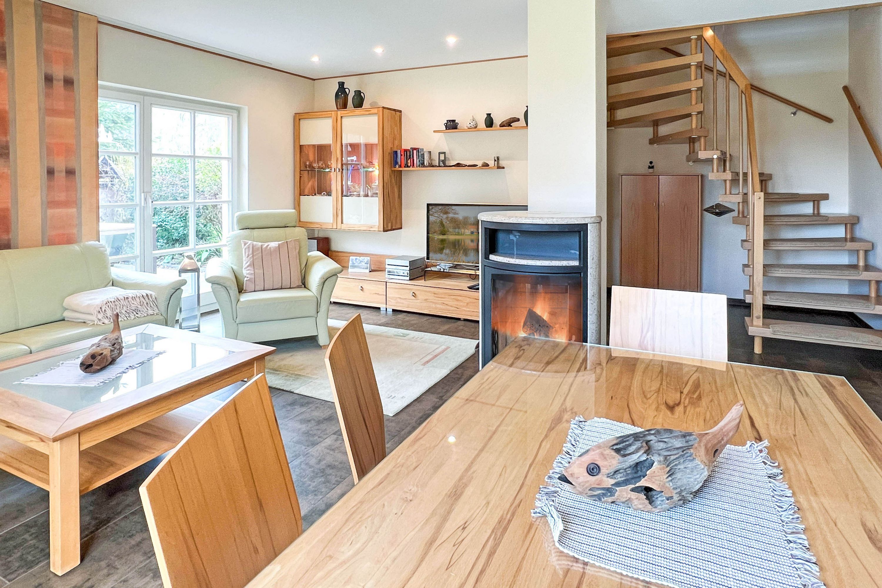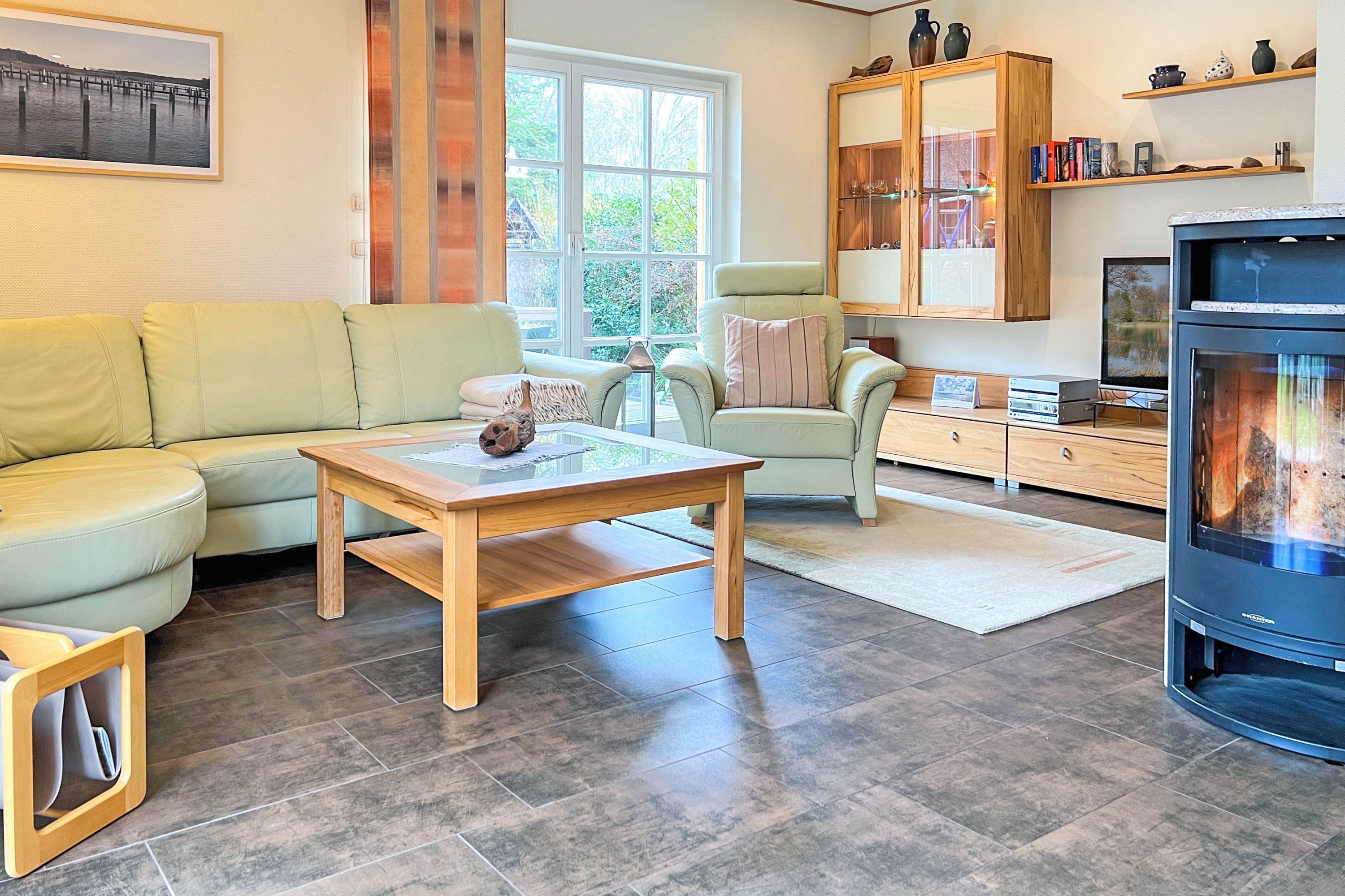 • Gemütlicher Wohnbereich mit Kamin, bequemer Sitzgruppe und Flachbild-TV